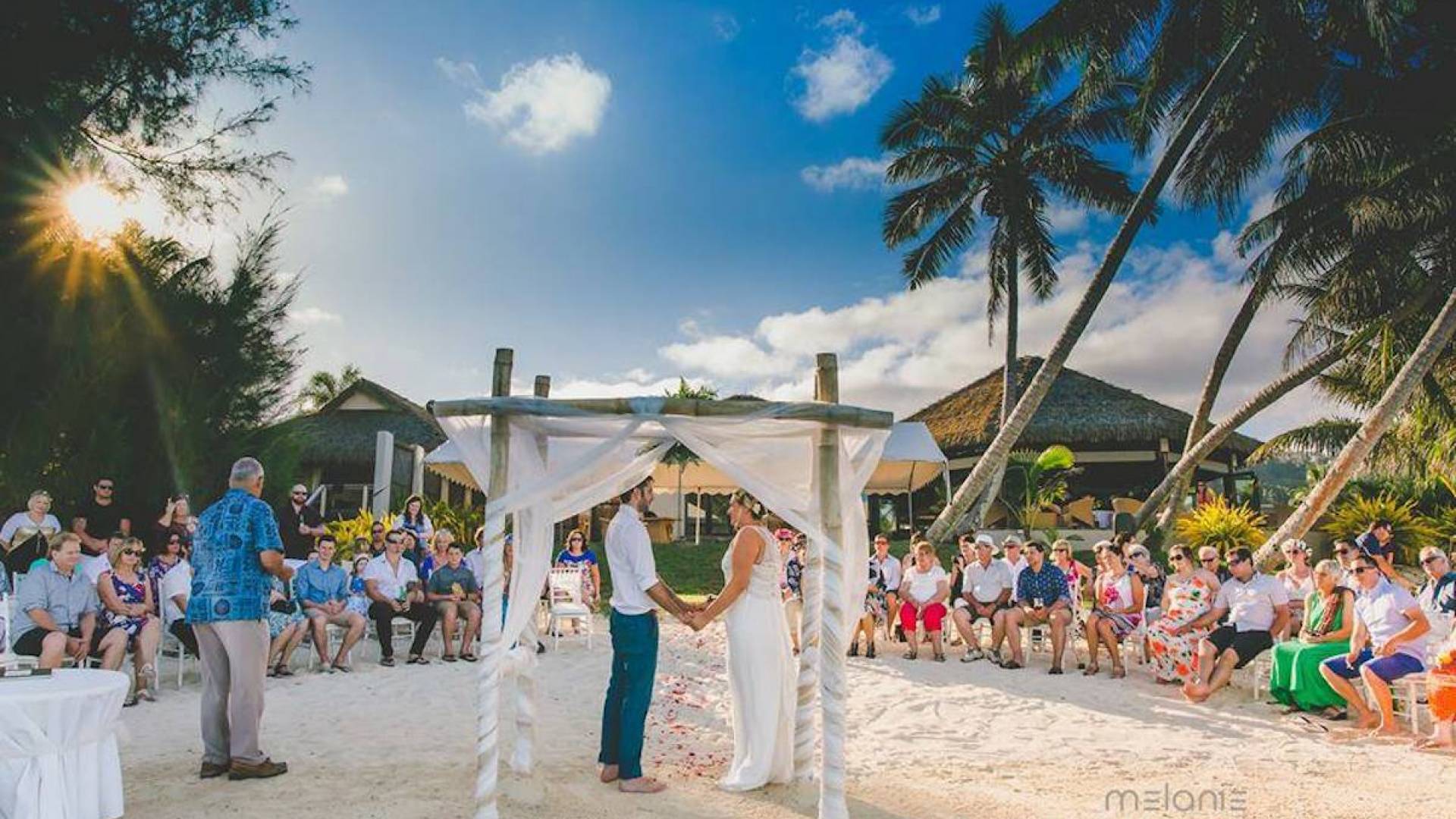 Nautilus Resort è specializzato nell'organizzazione di eventi esclusivi con particolare attenzione a cerimonie nuziali e ricevimenti in stile isolano. Offrendo una posizione davvero unica e straordinaria a Rarotonga, puoi scegliere tra la spiaggia cristallina del resort con una bellissima isola orlata di palme come sfondo, i nostri lussureggianti giardini tropicali o viaggiare attraverso la laguna verso un'isola tropicale disabitata per festeggiare in isolamento. Le strutture del resort sono state progettate specificamente per soddisfare le funzioni nuziali, con l'obiettivo di creare un'esperienza che accompagnerà voi, ospiti, in un viaggio durante il giorno dalla spiaggia alla pista da ballo, assicurando che non abbiano bisogno di nulla durante l'evento. Ci sono un certo numero di locali tra cui scegliere: tendone sulla spiaggia o a bordo piscina, ristorante del resort, sala da pranzo privata con vista sulla laguna o patio esterno sulla spiaggia: il resort può ospitare un'occasione intima per 2 o per gruppi fino a 150 per una cena formale .