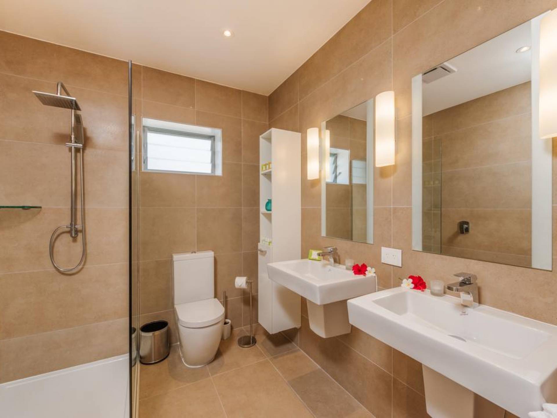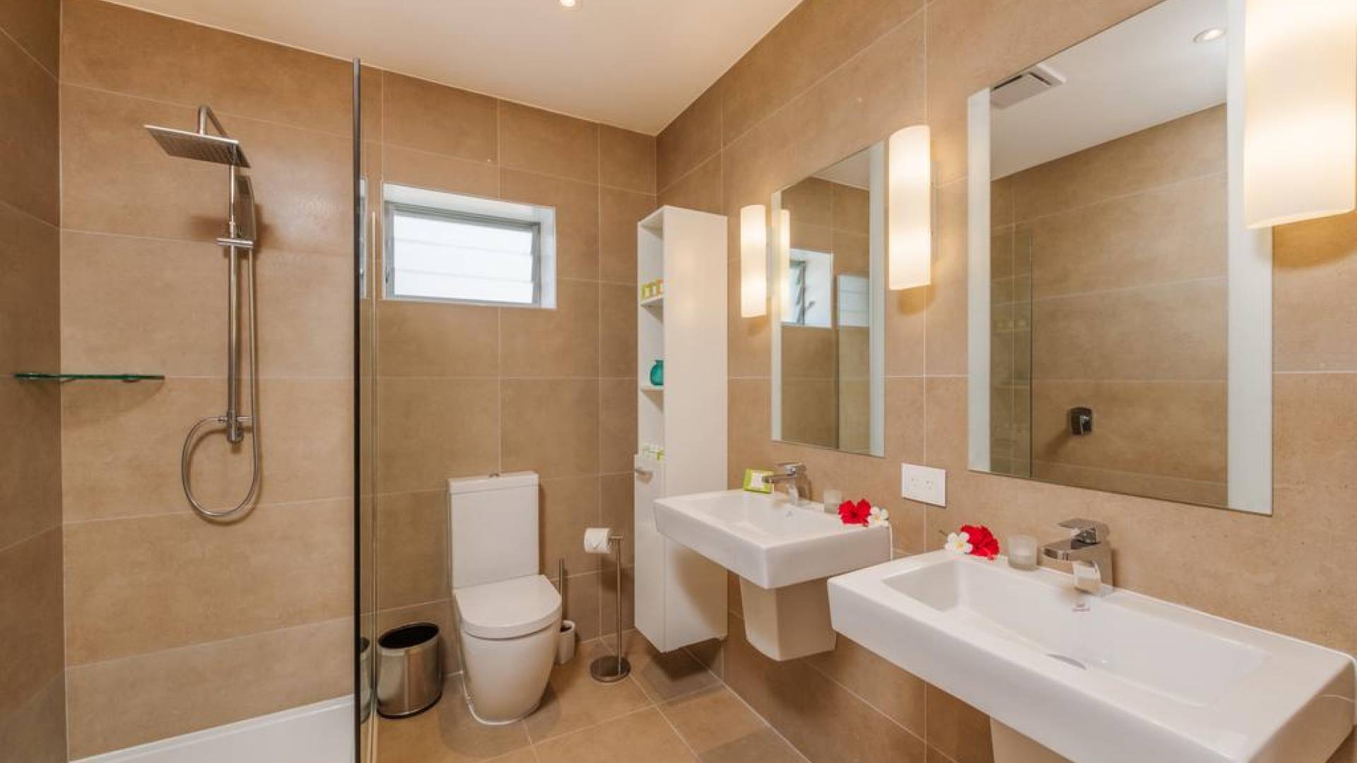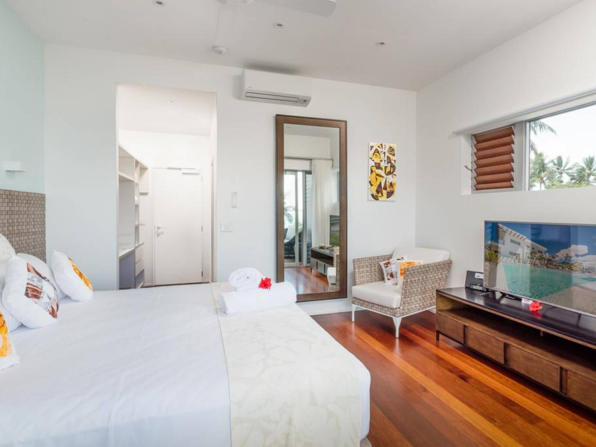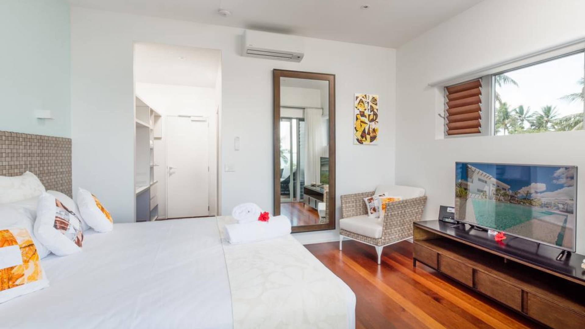 Al piano superiore la villa dispone di due eleganti camere da letto con bagno privato. Una master suite con vista tranquilla sulla piscina e vista sulla laguna blu cristallina, balcone privato arredato, cabina armadio, letto Super King, TV da 47", ampia doccia, doppio lavabo, aria condizionata e ventilatore a soffitto. La seconda camera da letto è luminosa e ariosa con vista sulle montagne, un letto king size (possibilità di dividerla in King Singles), aria condizionata, ventilatore a soffitto e TV.