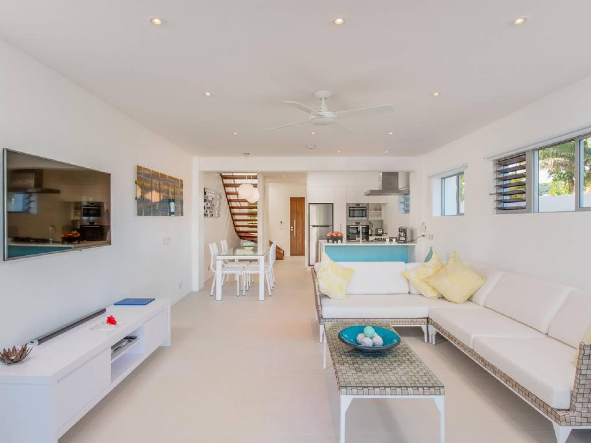 Al piano inferiore la villa ha un soggiorno a pianta aperta con un flusso naturale interno-esterno. Puoi trovare anche un balcone arredato perfetto per cenare all'aperto e rilassarti nel tuo divano letto personale. Cucina super moderna completamente attrezzata completa di macchina per caffè espresso. La villa dispone anche di un sistema home theater, TV satellitare da 55 pollici e una vasta selezione di film. Lavanderia personale dotata di lavatrice, asciugatrice, ferro e asse da stiro.
