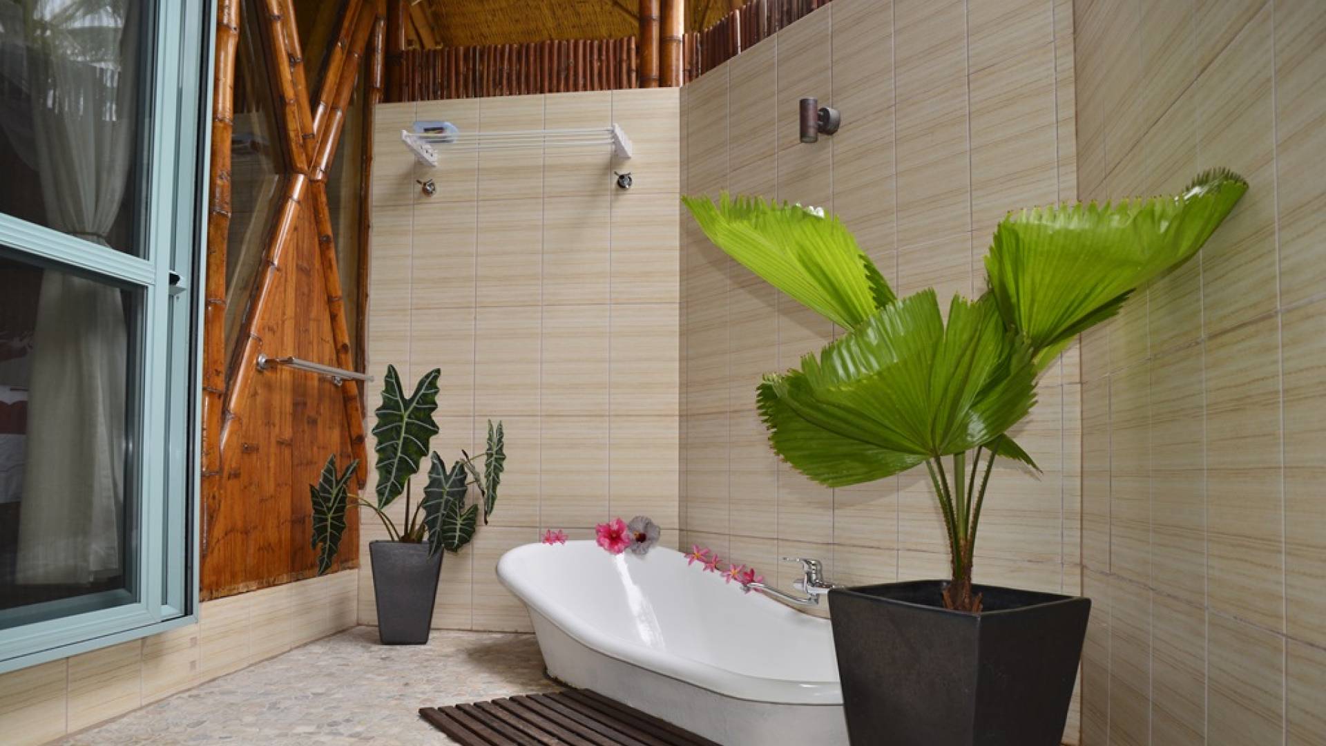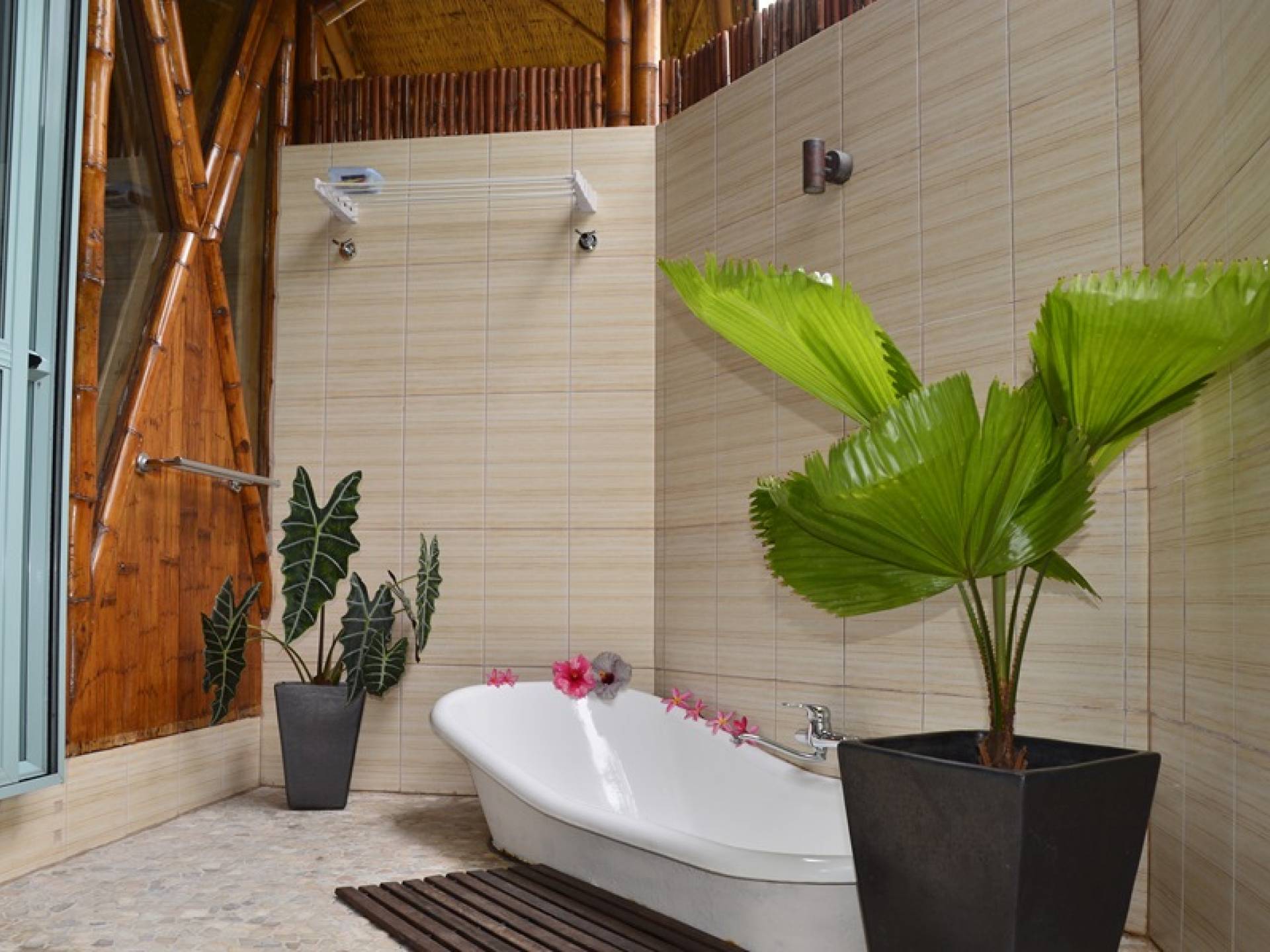 I bungalow con vista sull'oceano hanno ampie viste sul mare e sono molto privati ​​e idilliaci. Può ospitare fino a 4 persone. WC e lavabo interni. Doccia e bagno privati ​​all'aperto. 4 letti Super King, aria condizionata e ventilatori in ogni stanza, TV, lettori DVD. Porte e finestre con zanzariera, balcone con lettini prendisole, angolo cottura della cambusa. Tutti i bungalow sono immersi in lussureggianti giardini tropicali.