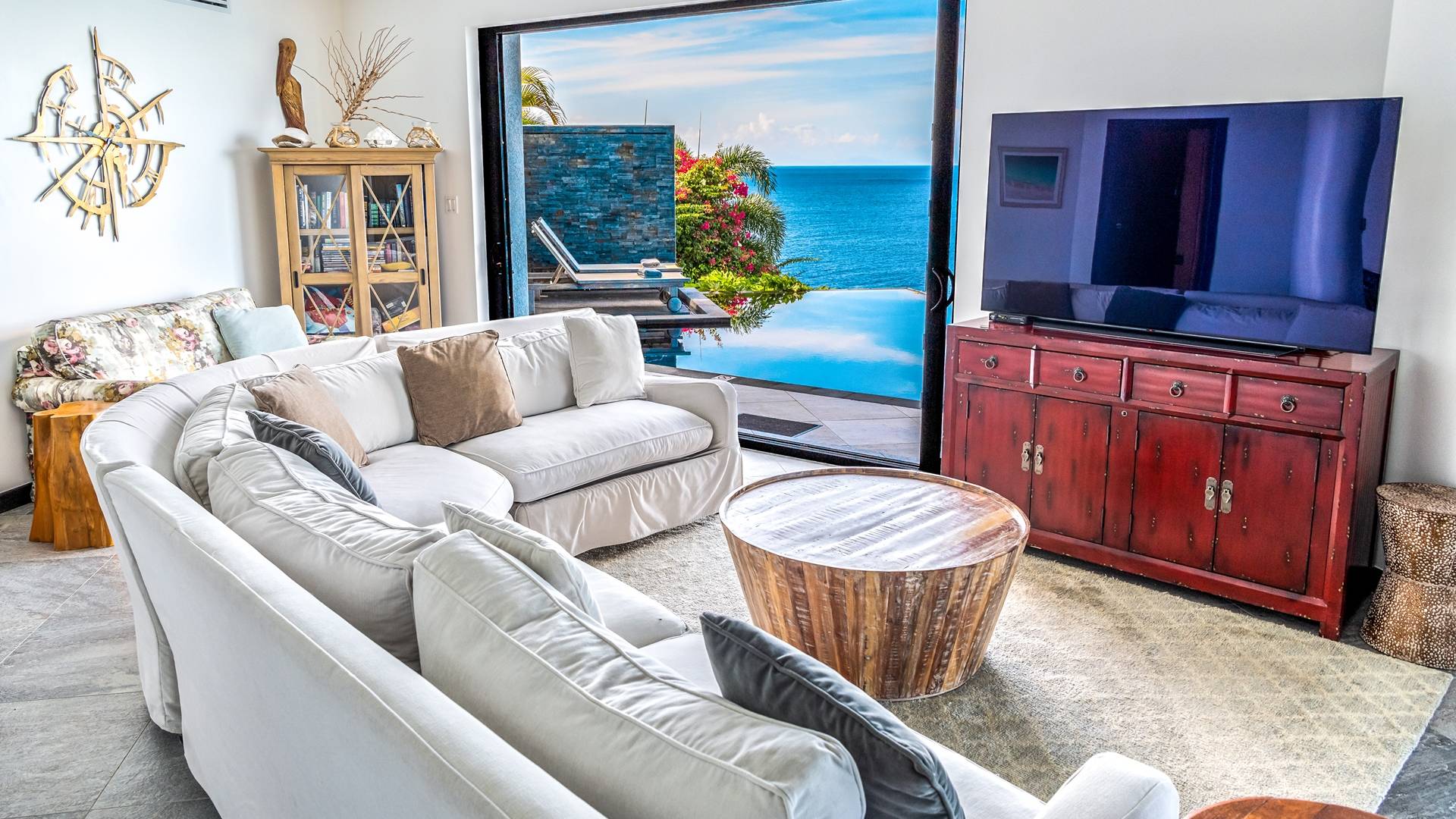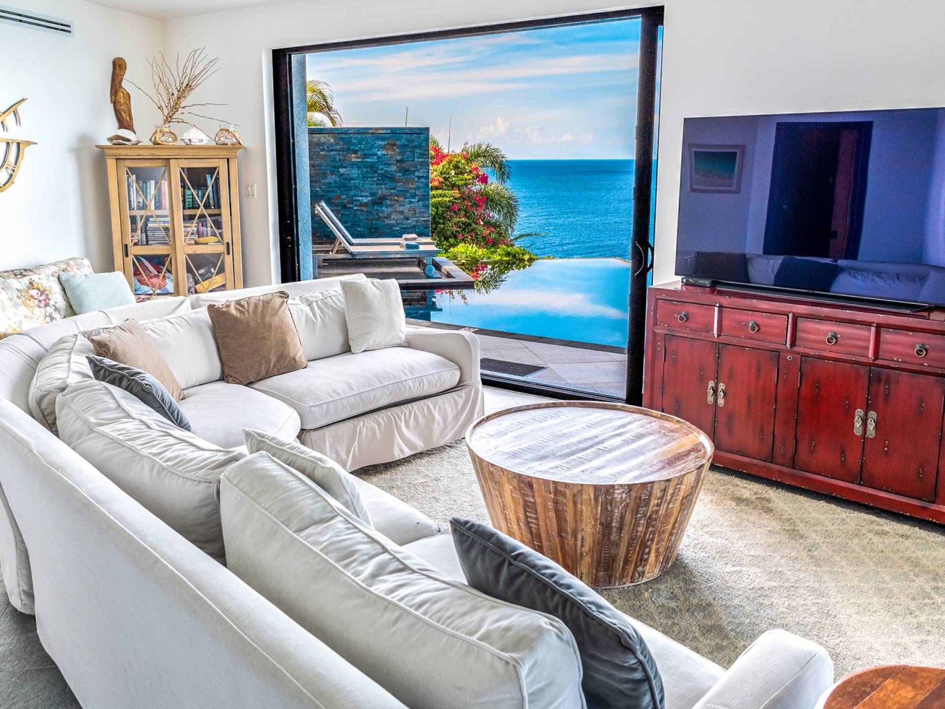 Questo magnifico appartamento con quattro camere da letto si affaccia sia sulla spiaggia di Darkwood che sull'isola di Monsterrat, sulla piscina a sfioro e sulla cucina completa. C'è una cucina a pianta aperta, soggiorno e zona pranzo al piano terra con terrazze all'aperto con gazebo e barbecue. C'è una camera da letto con bagno al piano terra e tre camere da letto con bagno al primo piano, con una favolosa master suite che offre un'enorme terrazza privata con vista sull'oceano e una vasca da bagno e doccia. C'è connessione Wi-Fi ad alta velocità e aria condizionata in tutto, e tutte le camere sono dotate di TV via cavo.