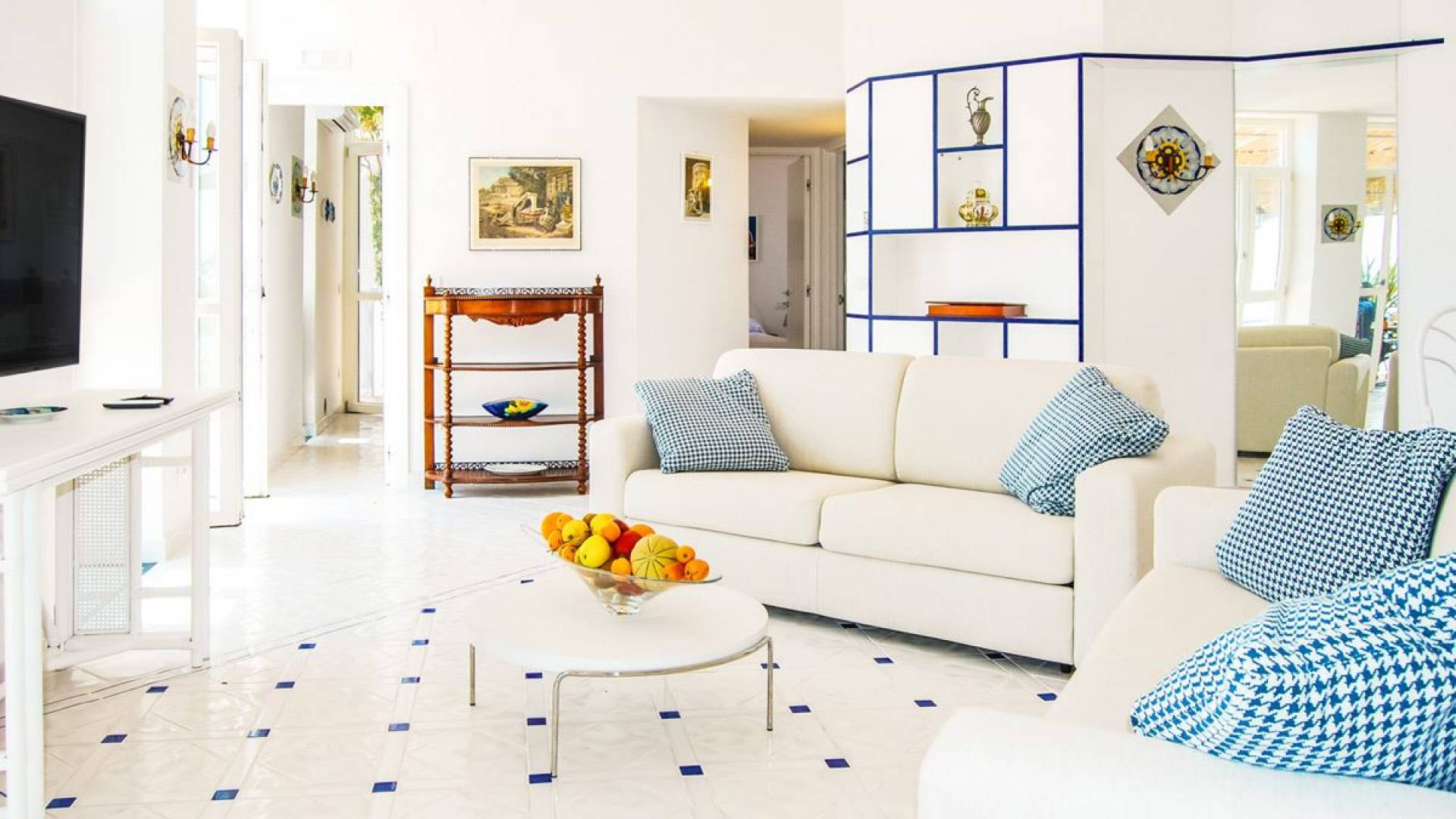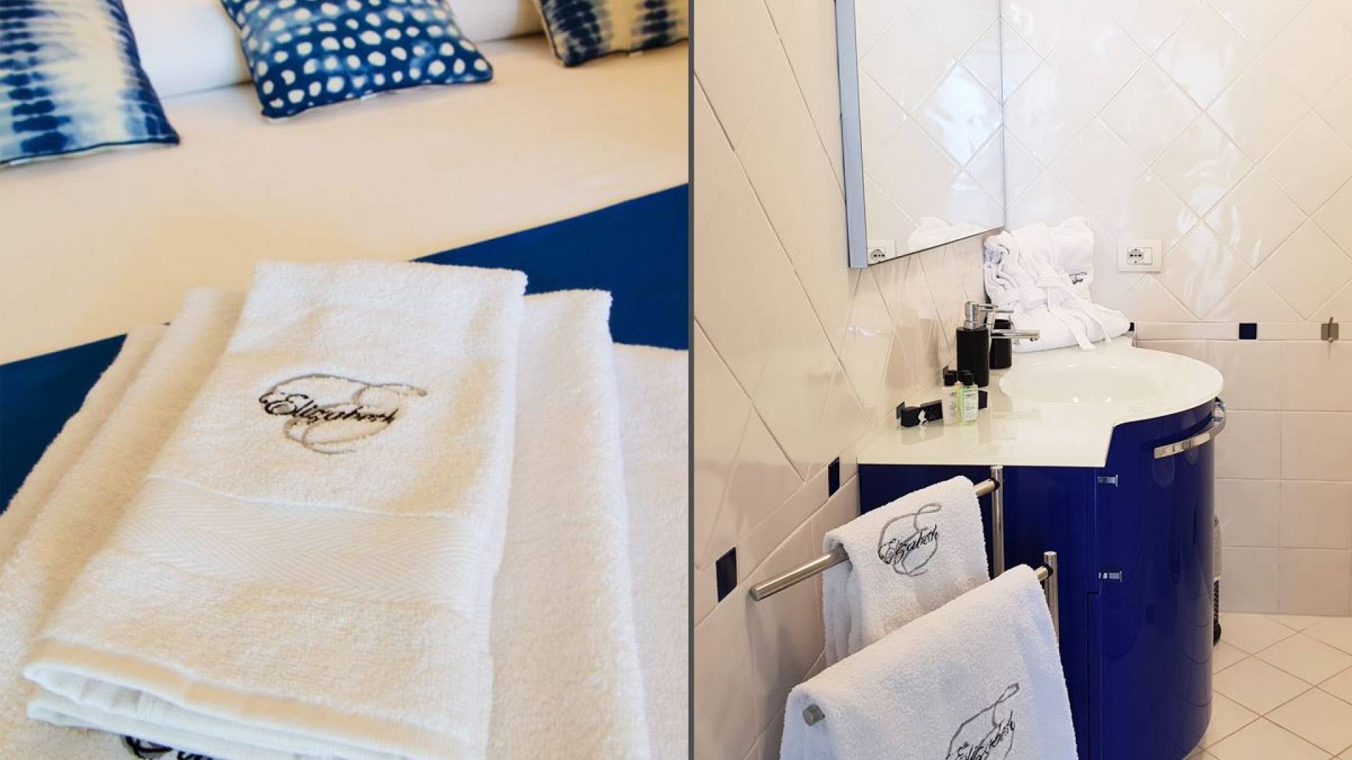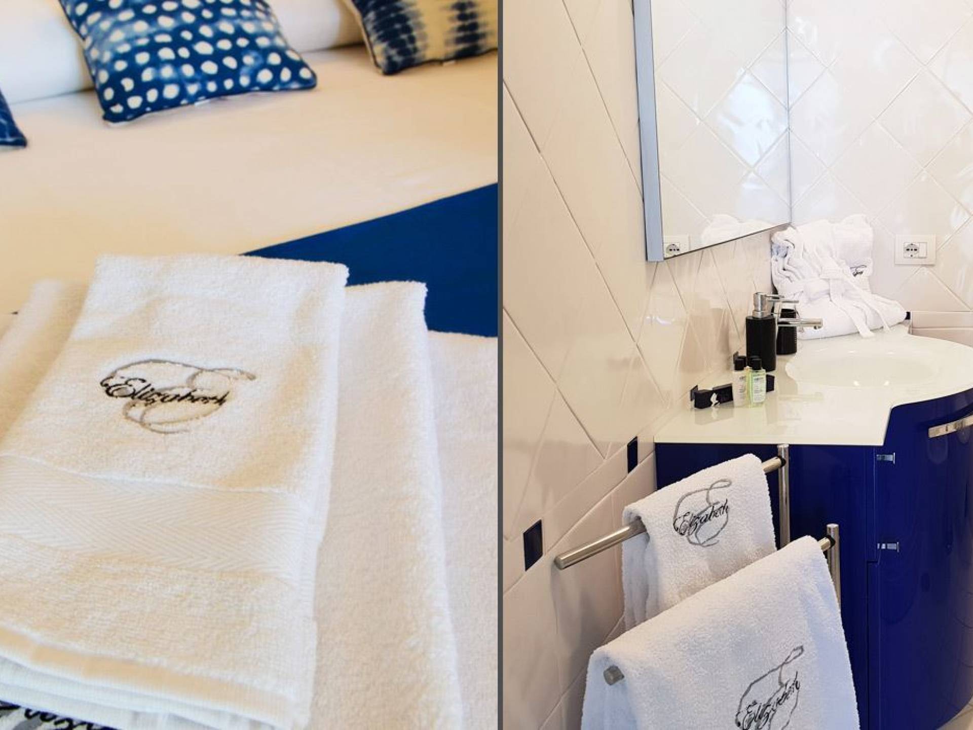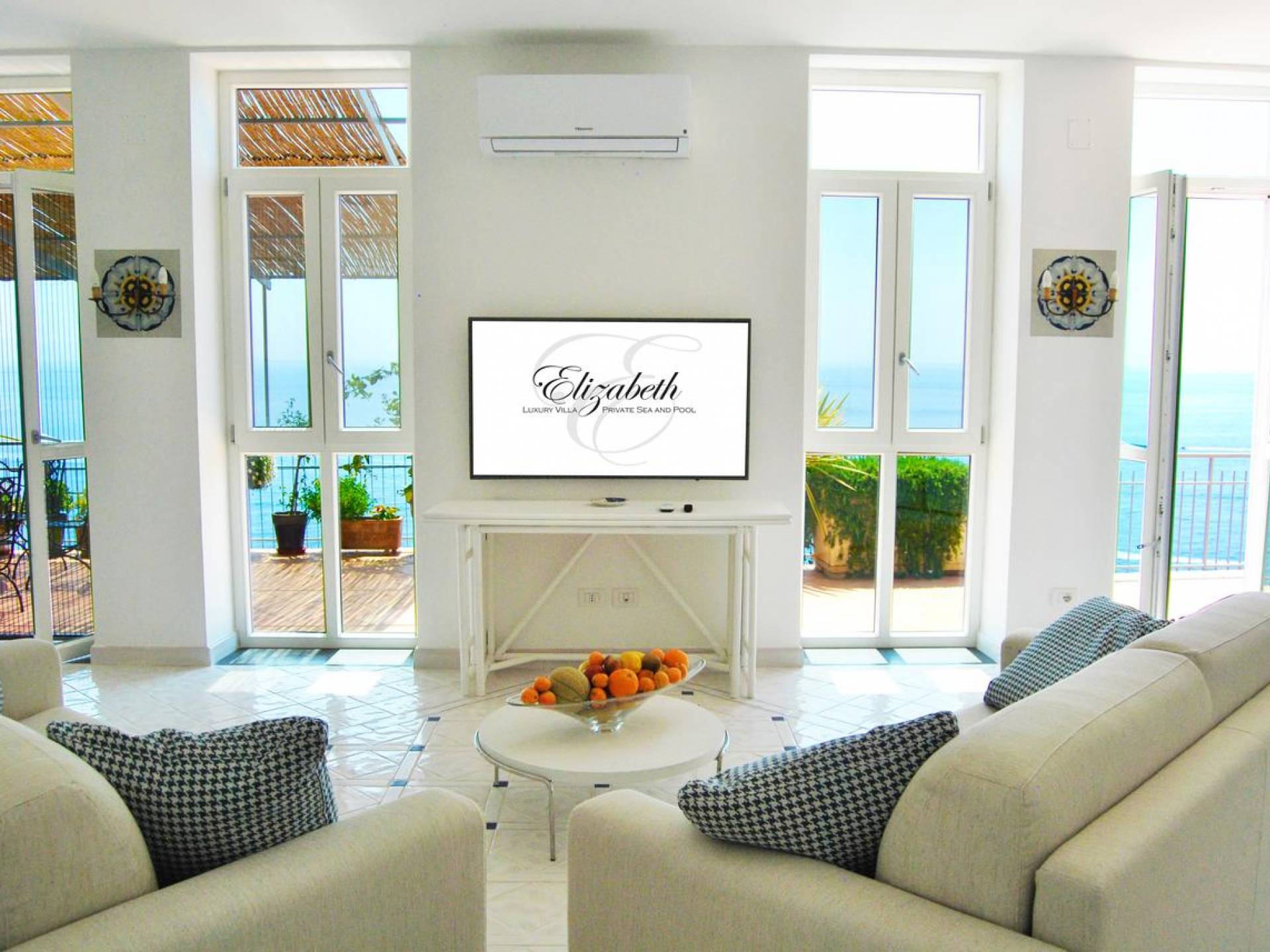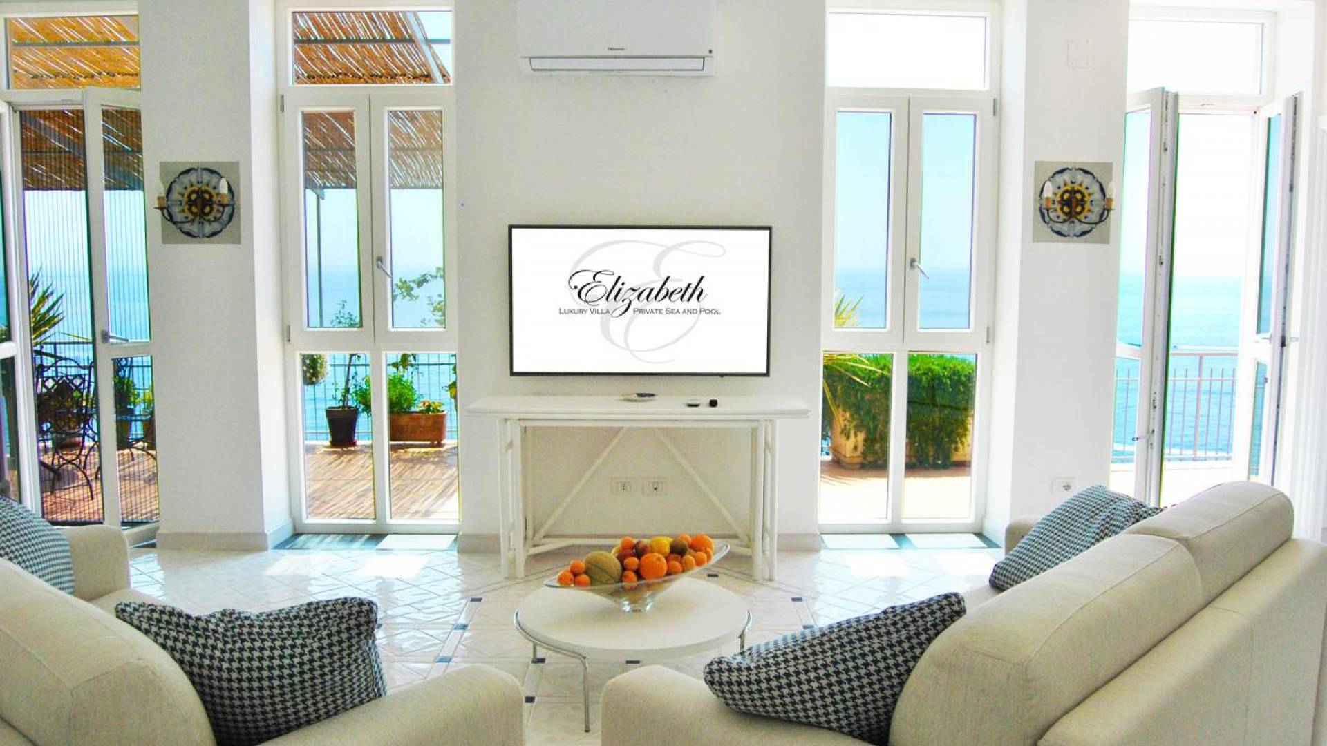 Le zone residenziali di Villa Elizabeth sono distribuite su due livelli. Oltre alle 4 camere da letto, gli ospiti hanno a disposizione 1 ampio salone, 1 salotto privato, entrambi dotati di Smart TV LCD super HD da 55” ‘curvo e 50’’. Nonostante la Villa sia unica, la suddivisione su due piani, ciascuno con 2 bagni con doccia idromassaggio e cucina, rende la Villa ideale anche per due famiglie o per quattro coppie che trascorrono le vacanze in Costiera Amalfitana. L'arredamento, recentemente ristrutturato, è un lussuoso omaggio ai colori marini, con pavimenti in maiolica bianca, intervallati da inserti blu, tutti dipinti e realizzati a mano da maestri vietresi. Le aree interne e gran parte dell'area esterna della villa sono dotate di segnale Wi-Fi gratuito.