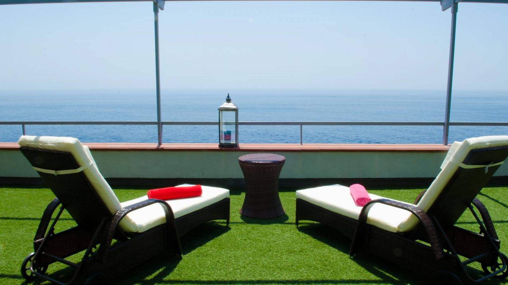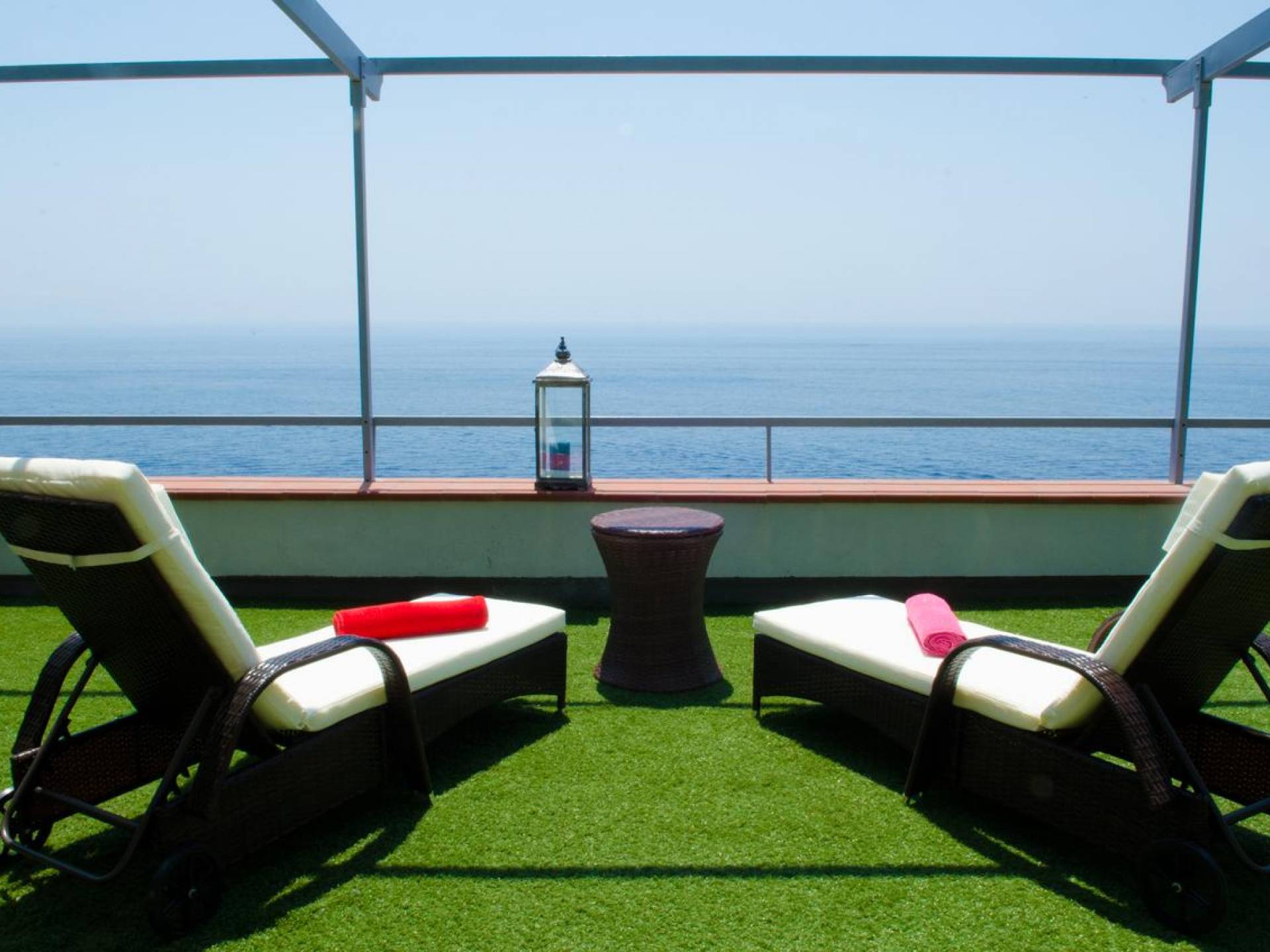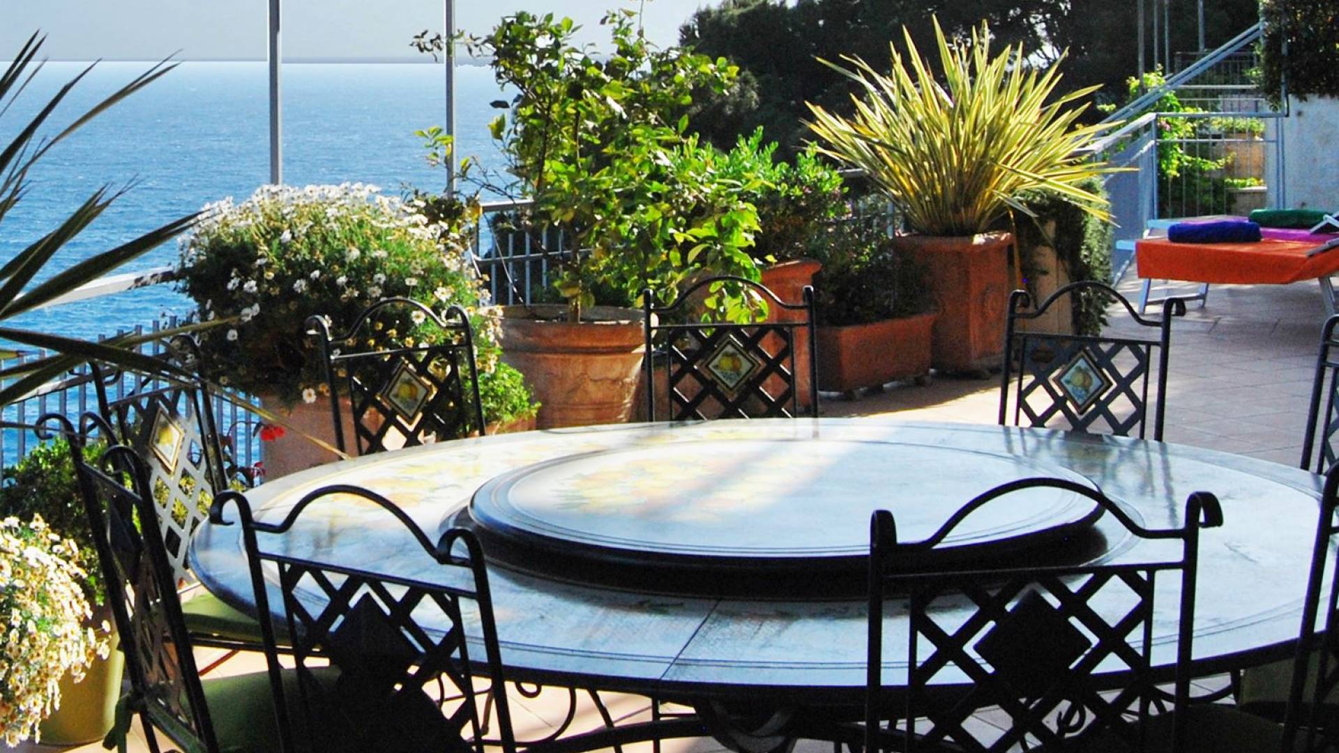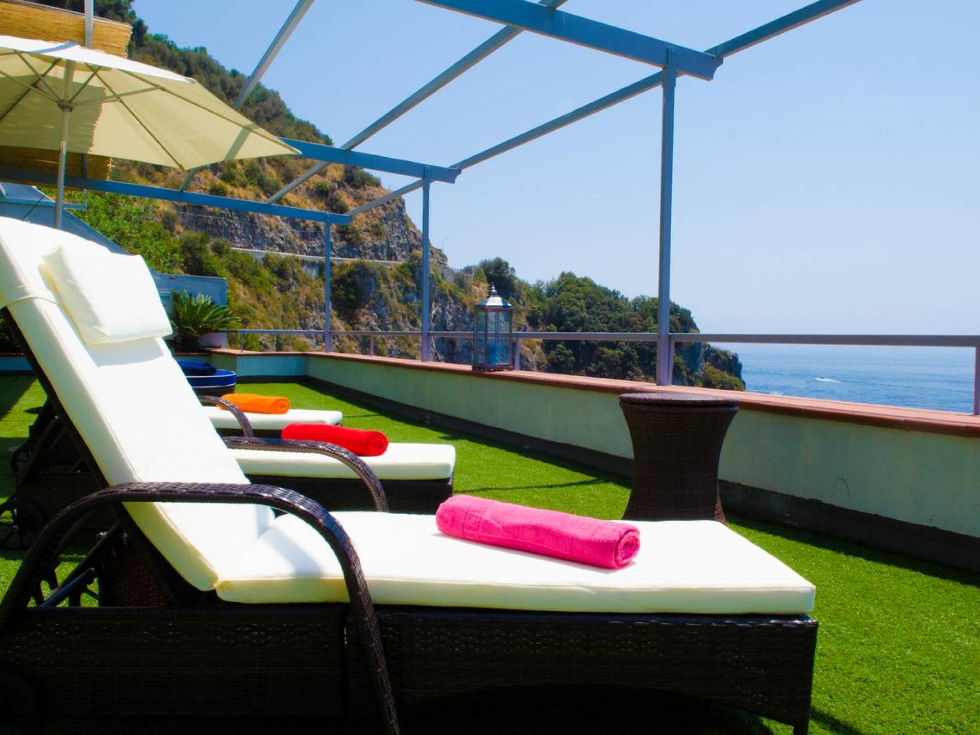 Le emozioni continuano all'esterno, dove gli ospiti hanno a disposizione tre terrazze ben attrezzate con vista mare. Il primo è arredato con vasca idromassaggio Jacuzzi 6 posti + chaise longue, doccia, sdraio, e un comodo grande divano circolare. La terrazza principale di Villa Elizabeth è uno spettacolo di pura suggestione, con i suoi colori e la vista a 180 gradi sul mare della Costiera Amalfitana. Rifinito con un pregiato pavimento in cotto, il terrazzo è attrezzato con un grande tavolo circolare in marmo decorato a mano e sedie in ferro battuto, per offrire agli ospiti la possibilità di trascorrere momenti indimenticabili a cena o in qualsiasi altro momento della giornata. Sulla terrazza principale si trova anche un angolo con frigorifero esterno, lavabo, piano di lavoro e barbecue in acciaio, ideale per fare una grigliata al chiaro di luna.