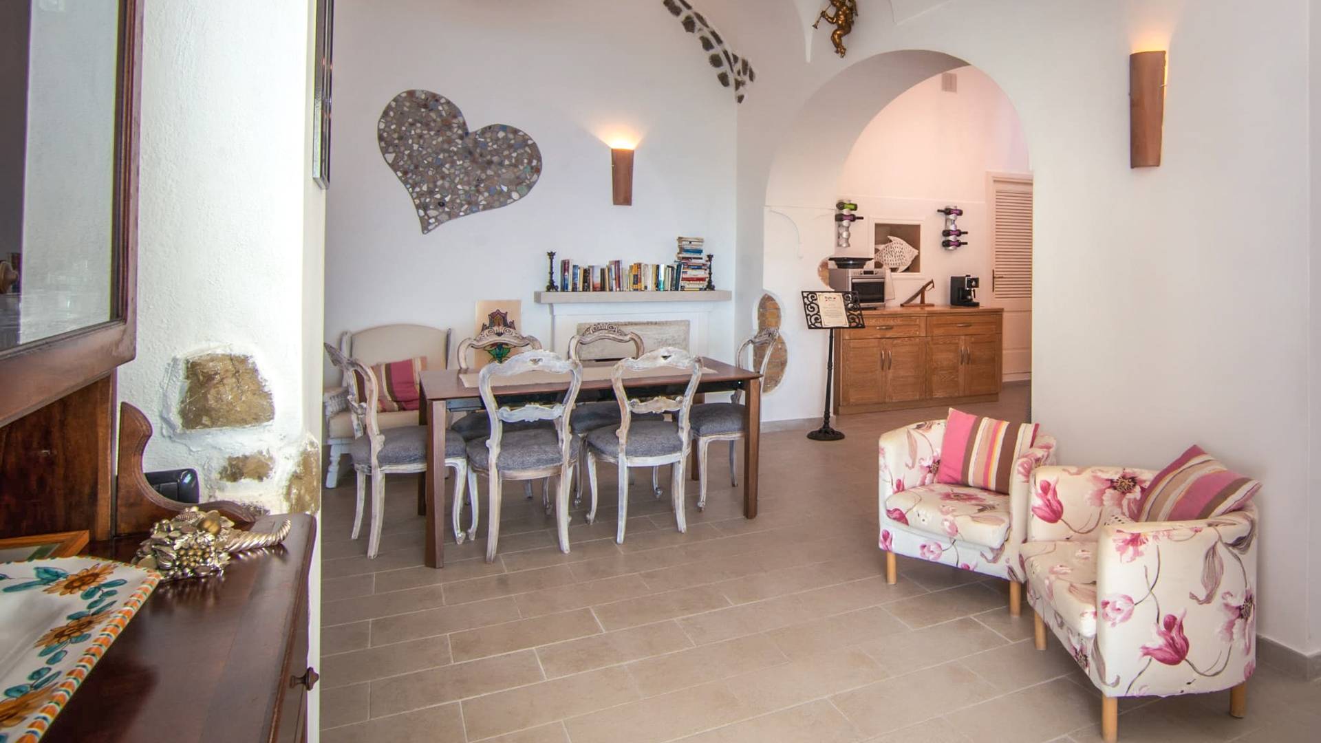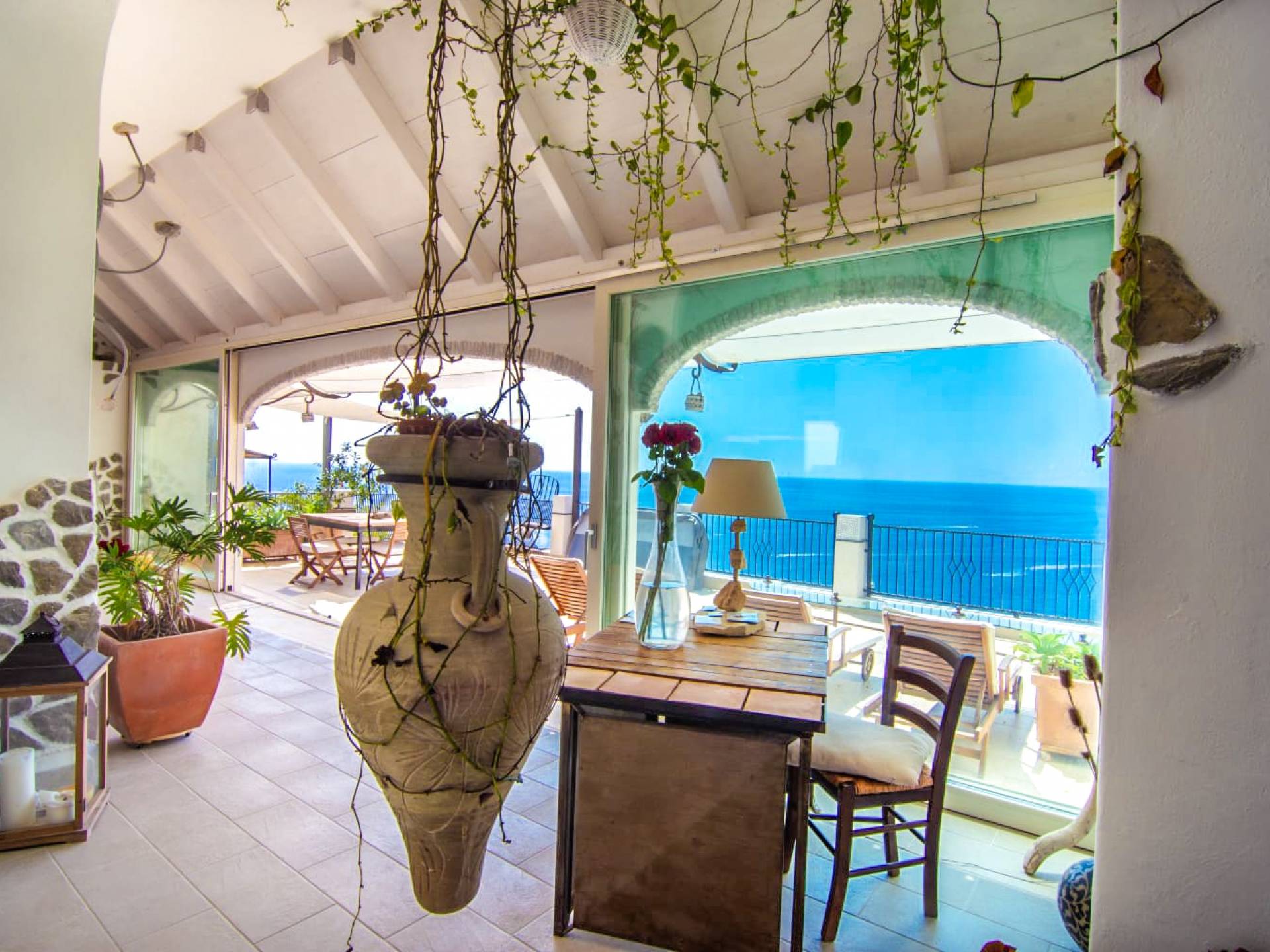 Villa dei Faraglioni vanta anche una cantina privata con oltre 500 bottiglie di vino, alcune delle quali prodotte da una famosa azienda agricola locale. All'esterno una godibilissima terrazza panoramica di 70 mq con ombrellone, lettini, tavolo e sedie per mangiare all'aperto oltre ad una veranda di 20 mq con chaise longue e poltrone.