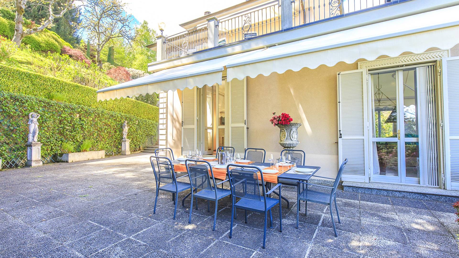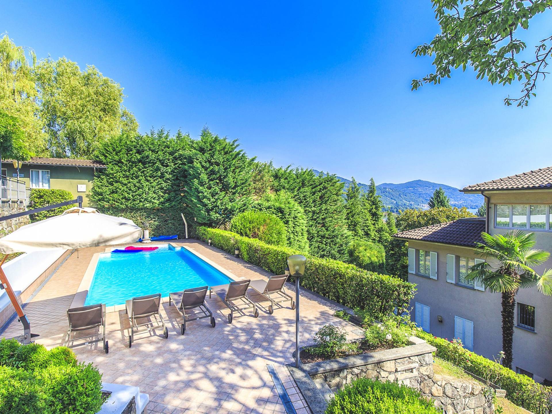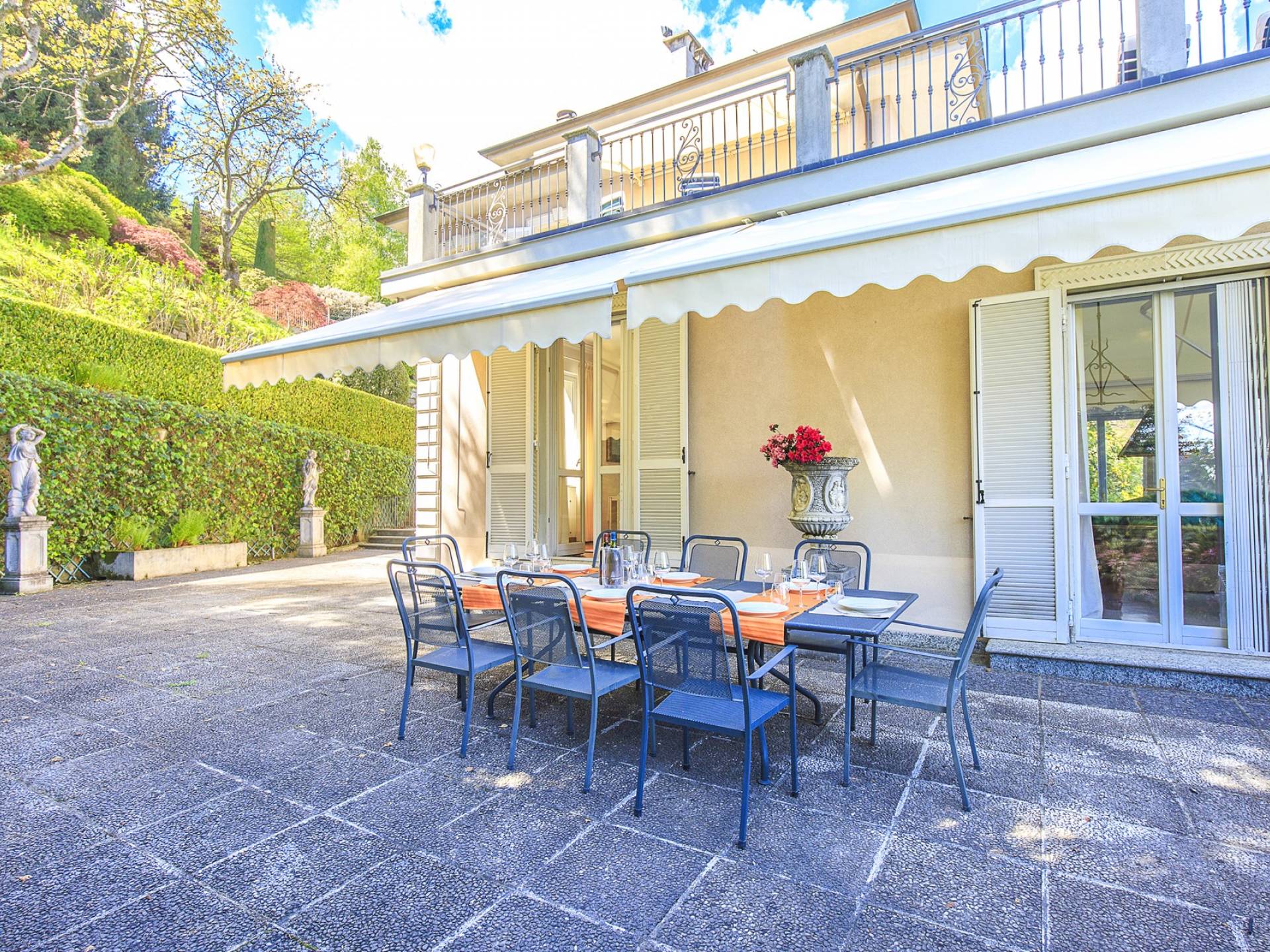 Il cortile a terrazze (4000 m²) è ben curato con un roseto, angoli appartati e una piscina con annesso pool house con spogliatoio, bagno e frigorifero. Affacciata sulla piscina è una grande terrazza ricoperta di viti con sedie a sdraio e pouf e viste mozzafiato. Puoi goderti la musica in piscina grazie al sistema Bluetooth e alla connessione internet wireless. La villa per vacanze Belvedere è situata su una collina panoramica a pochi passi (400m) dal centro del paese di Meina, dove si trovano un supermercato con un reparto salumeria, un giornalaio e tabacchi, una macelleria, un parrucchiere, un panificio, un negozio di souvenir, un'eccellente cantina di vini e alcuni ristoranti. A pochi passi dal centro si trovano la spiaggia pubblica di Meina e il suo ristorante-pizzeria alla moda Meina Beach. La stazione ferroviaria di Meina dista solo 1 km.