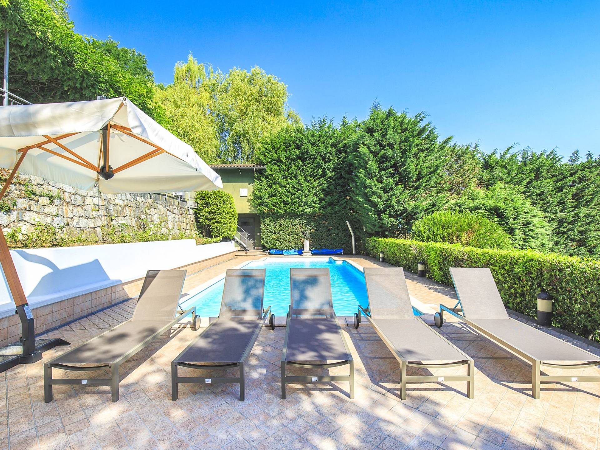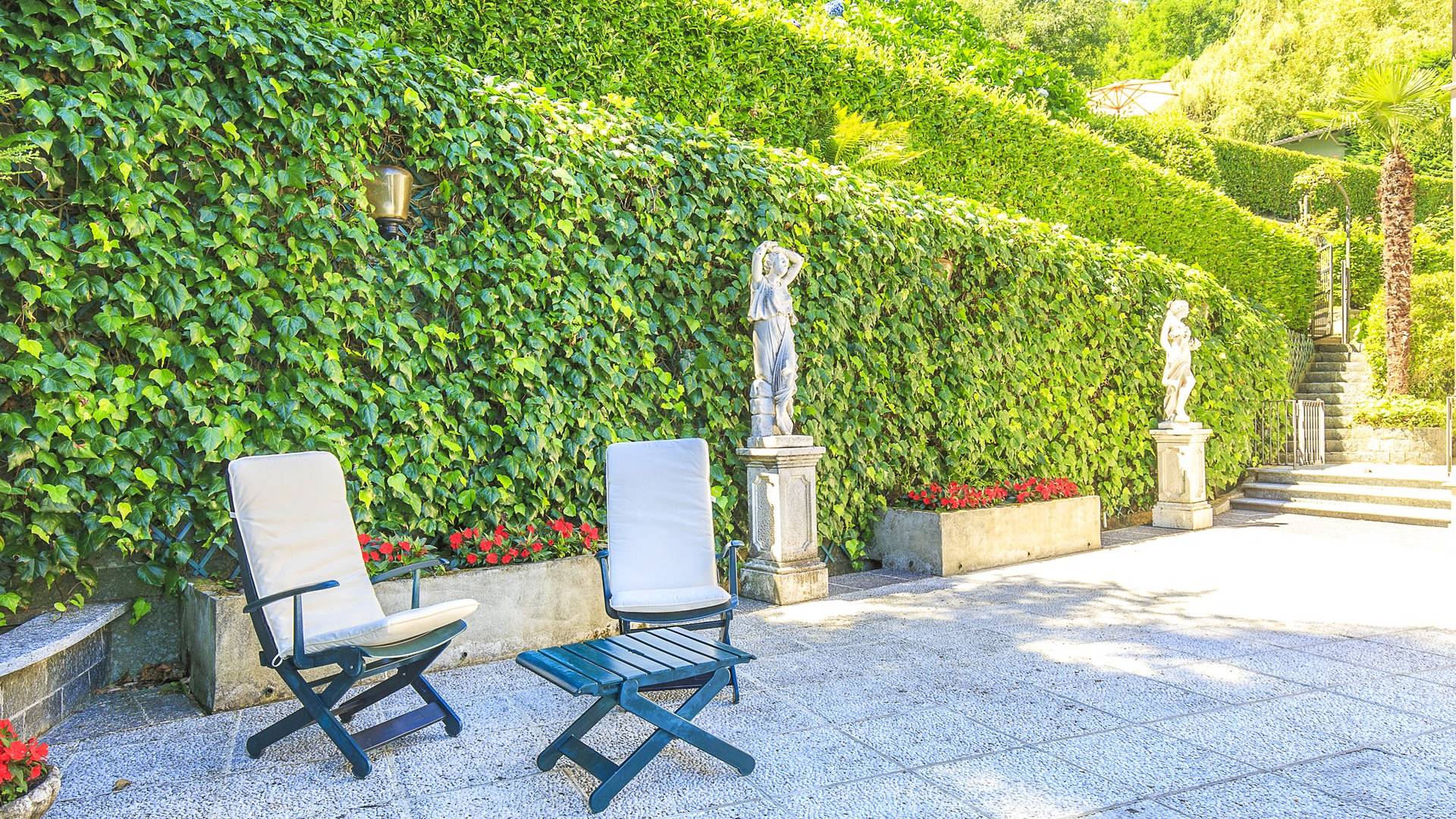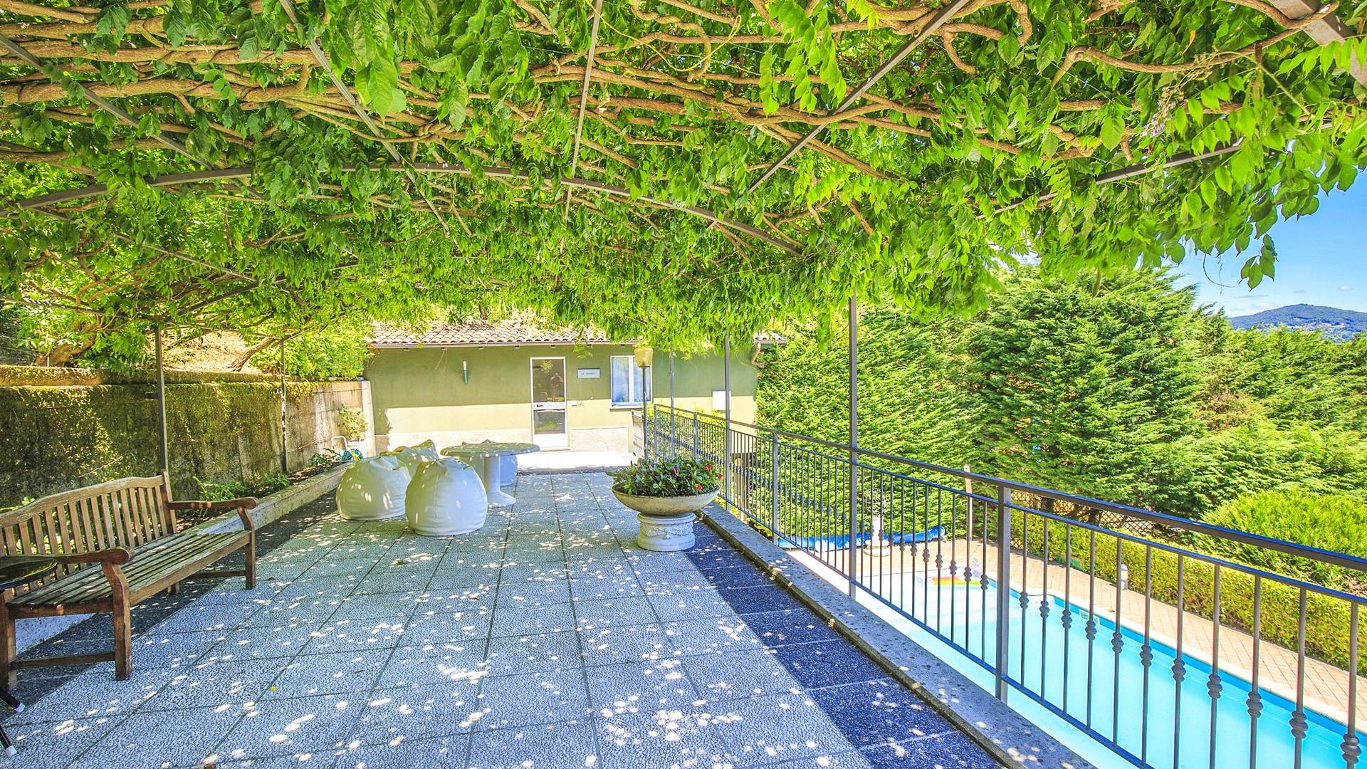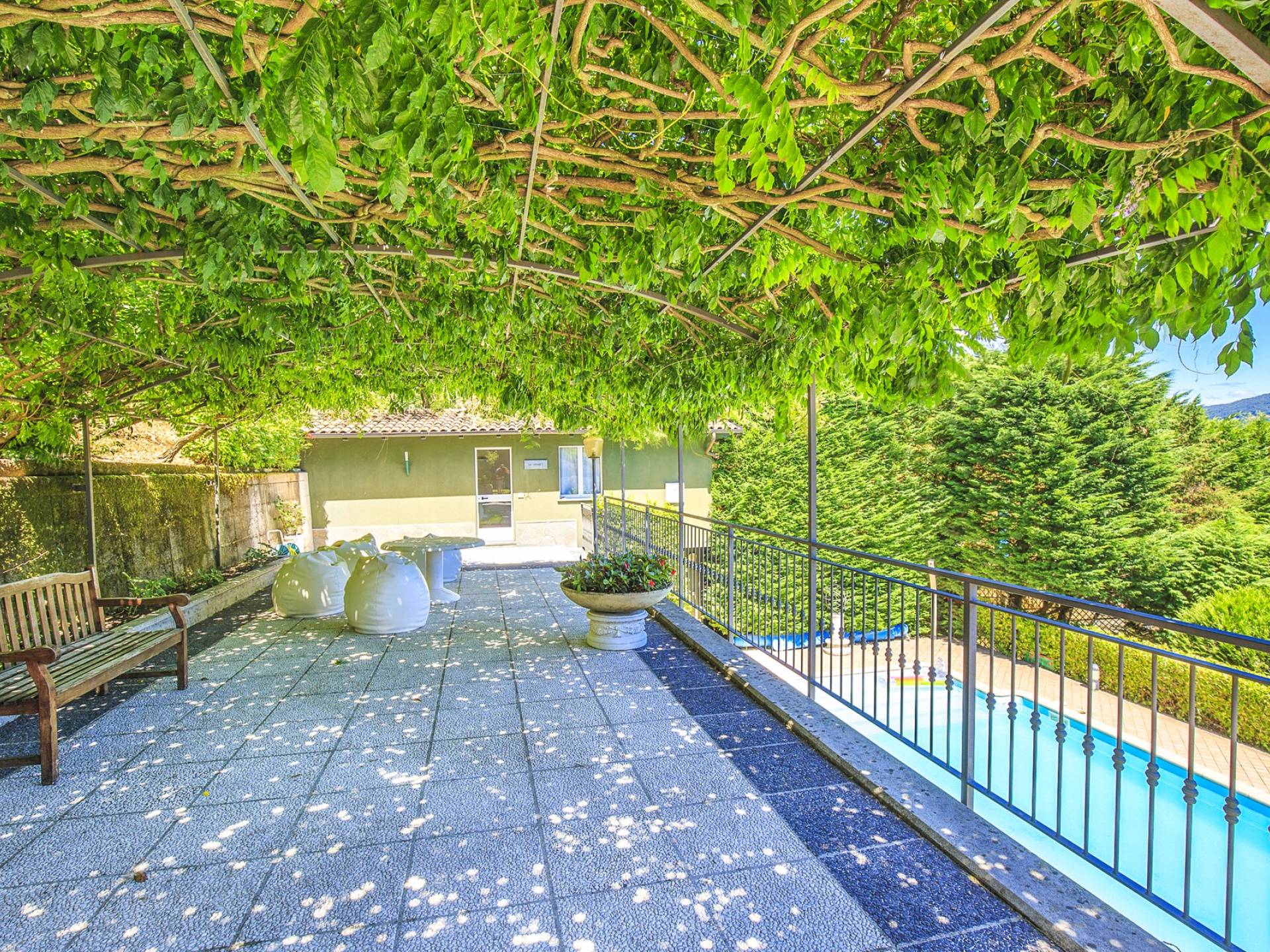 Il cortile a terrazze (4000 m²) è ben curato con un roseto, angoli appartati e una piscina con annesso pool house con spogliatoio, bagno e frigorifero. Affacciata sulla piscina è una grande terrazza ricoperta di viti con sedie a sdraio e pouf e viste mozzafiato. Puoi goderti la musica in piscina grazie al sistema Bluetooth e alla connessione internet wireless. La villa per vacanze Belvedere è situata su una collina panoramica a pochi passi (400m) dal centro del paese di Meina, dove si trovano un supermercato con un reparto salumeria, un giornalaio e tabacchi, una macelleria, un parrucchiere, un panificio, un negozio di souvenir, un'eccellente cantina di vini e alcuni ristoranti. A pochi passi dal centro si trovano la spiaggia pubblica di Meina e il suo ristorante-pizzeria alla moda Meina Beach. La stazione ferroviaria di Meina dista solo 1 km.