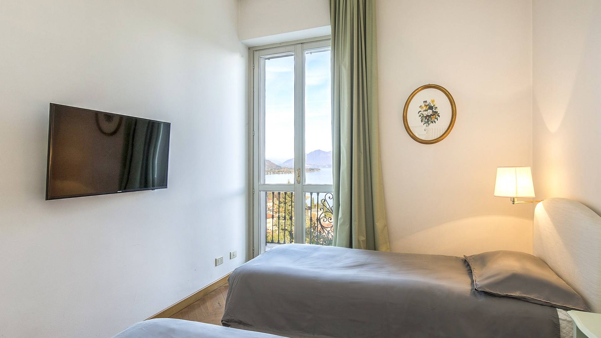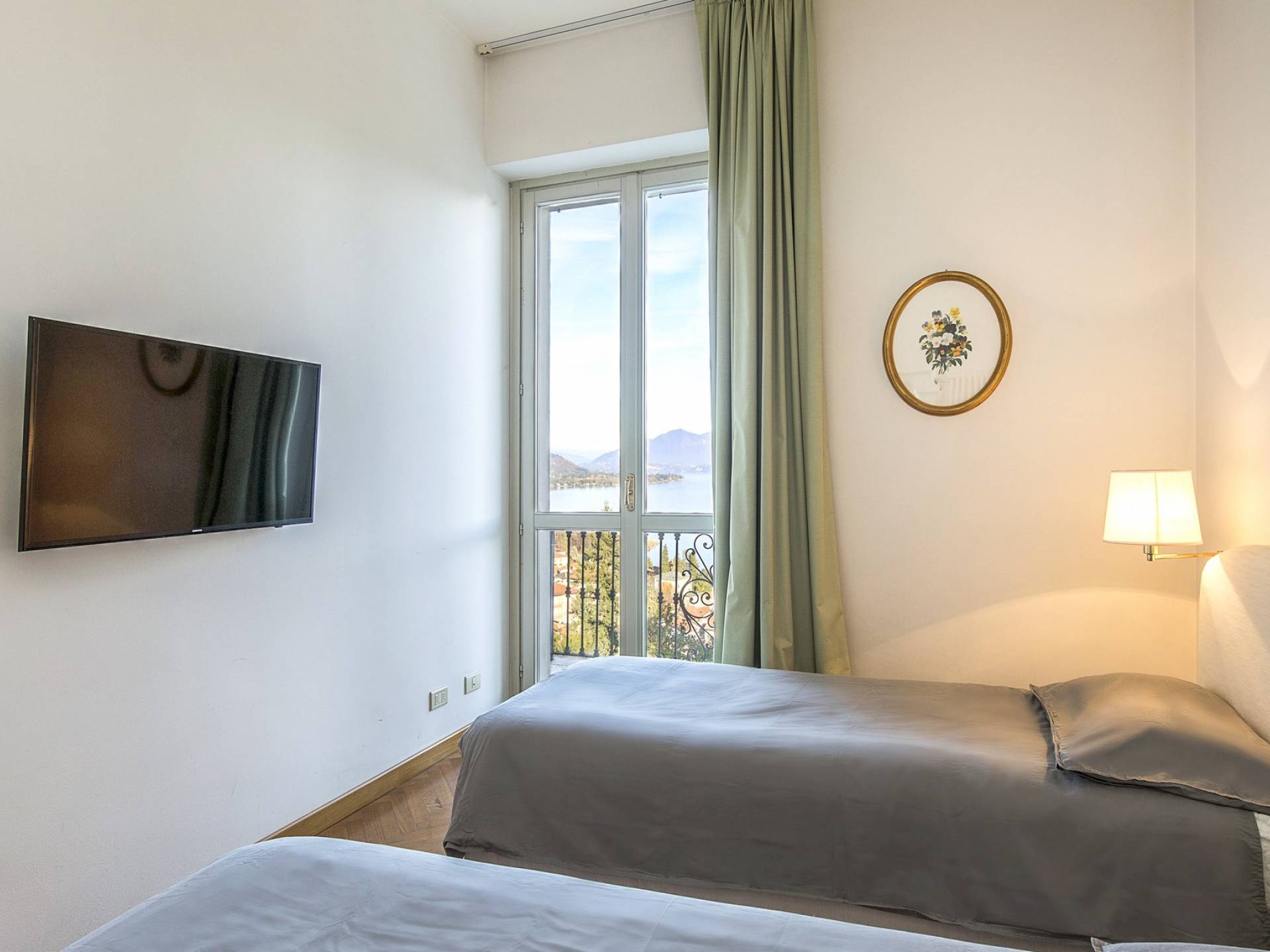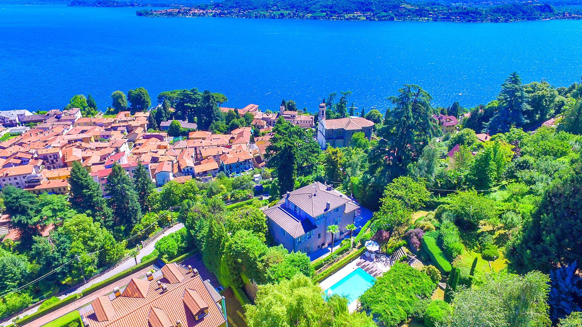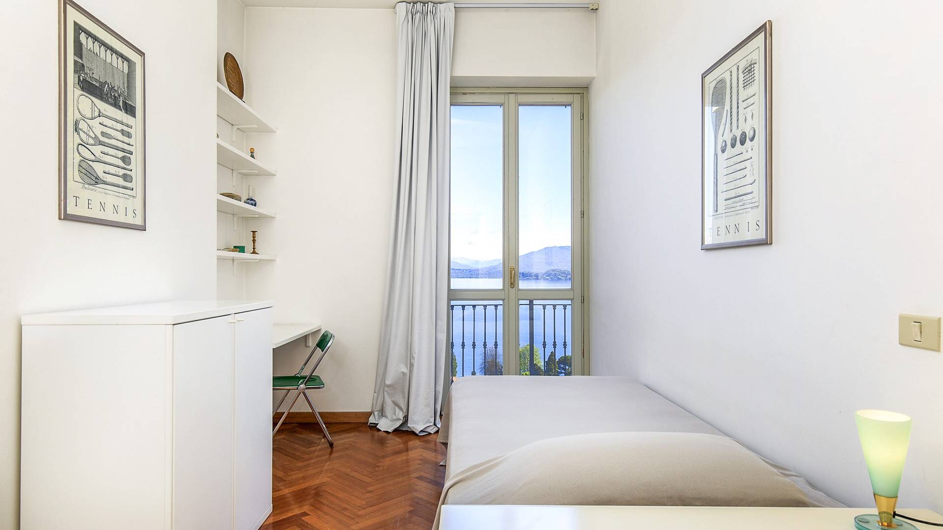 Al piano terra troverete un salone con camino, una biblioteca attrezzata con TV e PlayStation, una sala ufficio con scrivania, una cucina completamente attrezzata con adiacente zona colazione, una spaziosa sala da pranzo e un ampio soggiorno camera. La sala da pranzo ha un tavolo che può ospitare 10 persone e ha accesso alla terrazza laterale per gustare i pasti all'aperto. Il soggiorno è luminoso e accogliente con divani, smart tv, tavolo da biliardo e ampie finestre vista lago. Al primo piano si trovano 6 camere da letto climatizzate e 4 bellissimi bagni in marmo: una camera padronale con letto matrimoniale e TV e accesso a due bagni adiacenti (uno con vasca e uno con doccia) e ad una camera con letto a castello (un extra singolo letto aggiunto su richiesta), due camere con 2 letti singoli (una camera ha anche la TV), una camera con letto singolo, una camera con letto matrimoniale, due bagni ciascuno con doccia e vasca. C'è anche un ampio terrazzo fronte lago con mobili da esterno per rilassarsi e ammirare il panorama sul Lago Maggiore. Al piano seminterrato troverete una lavanderia con lavatrice e asciugatrice e un garage con parcheggio per 2 auto.