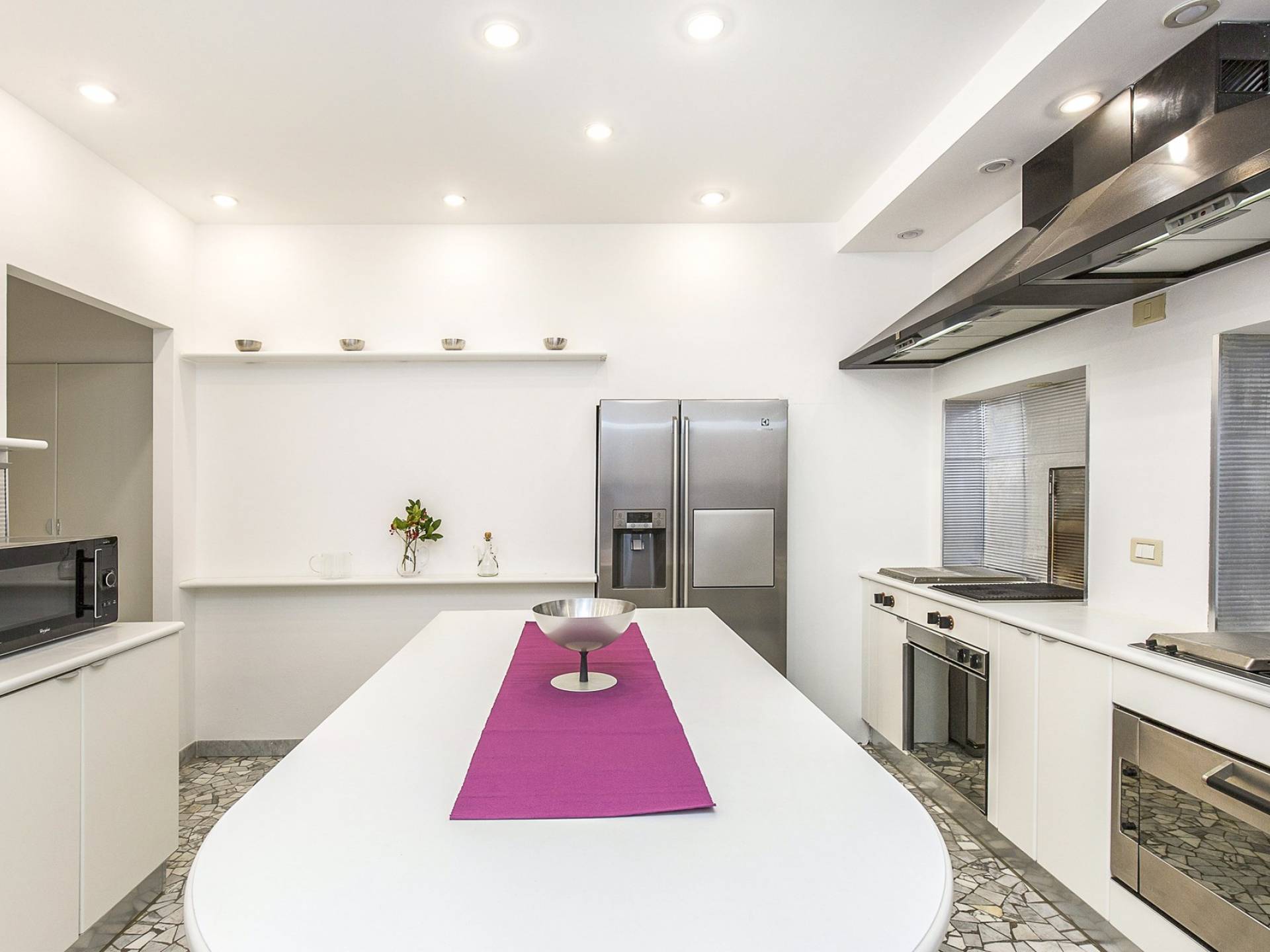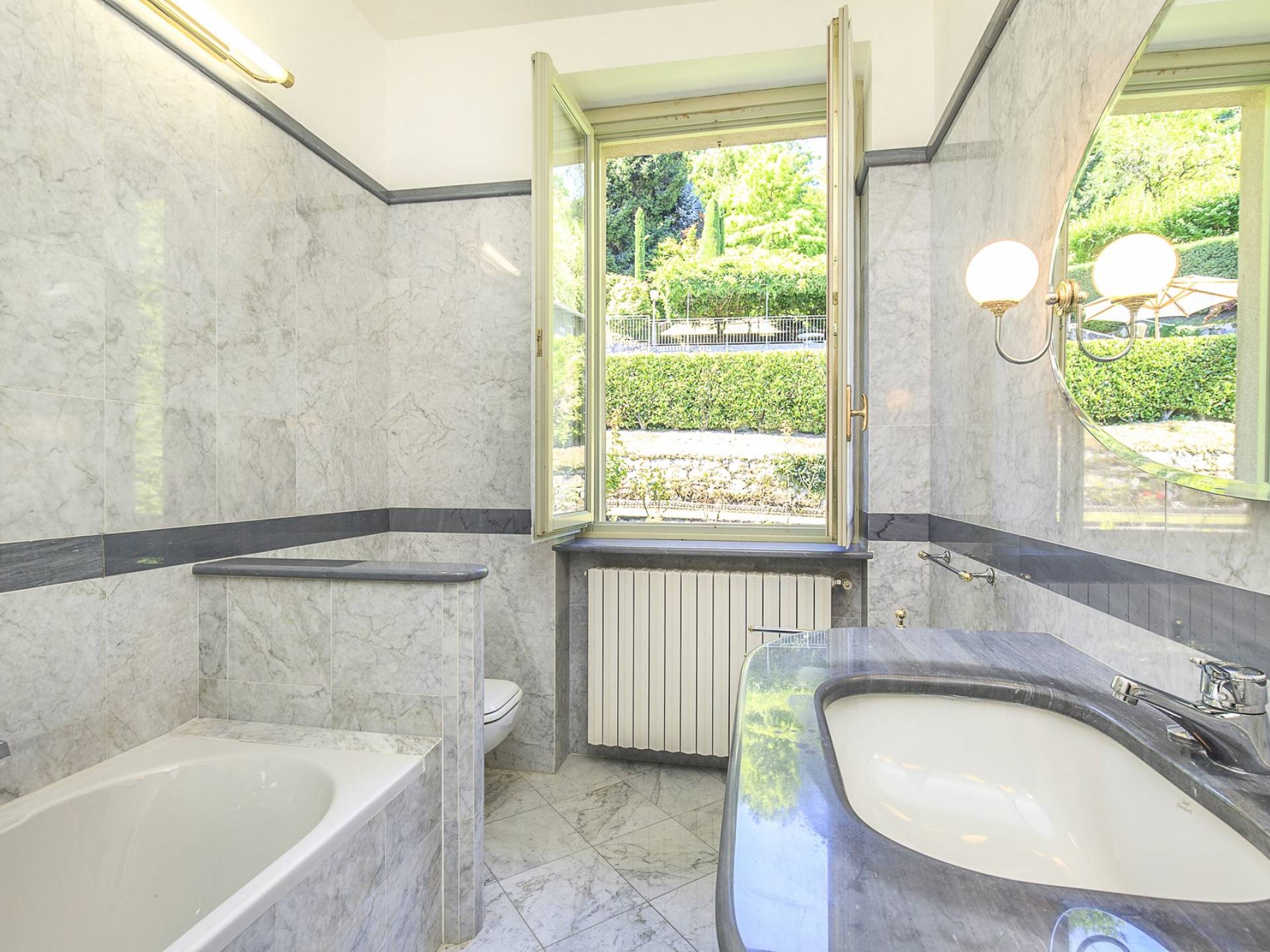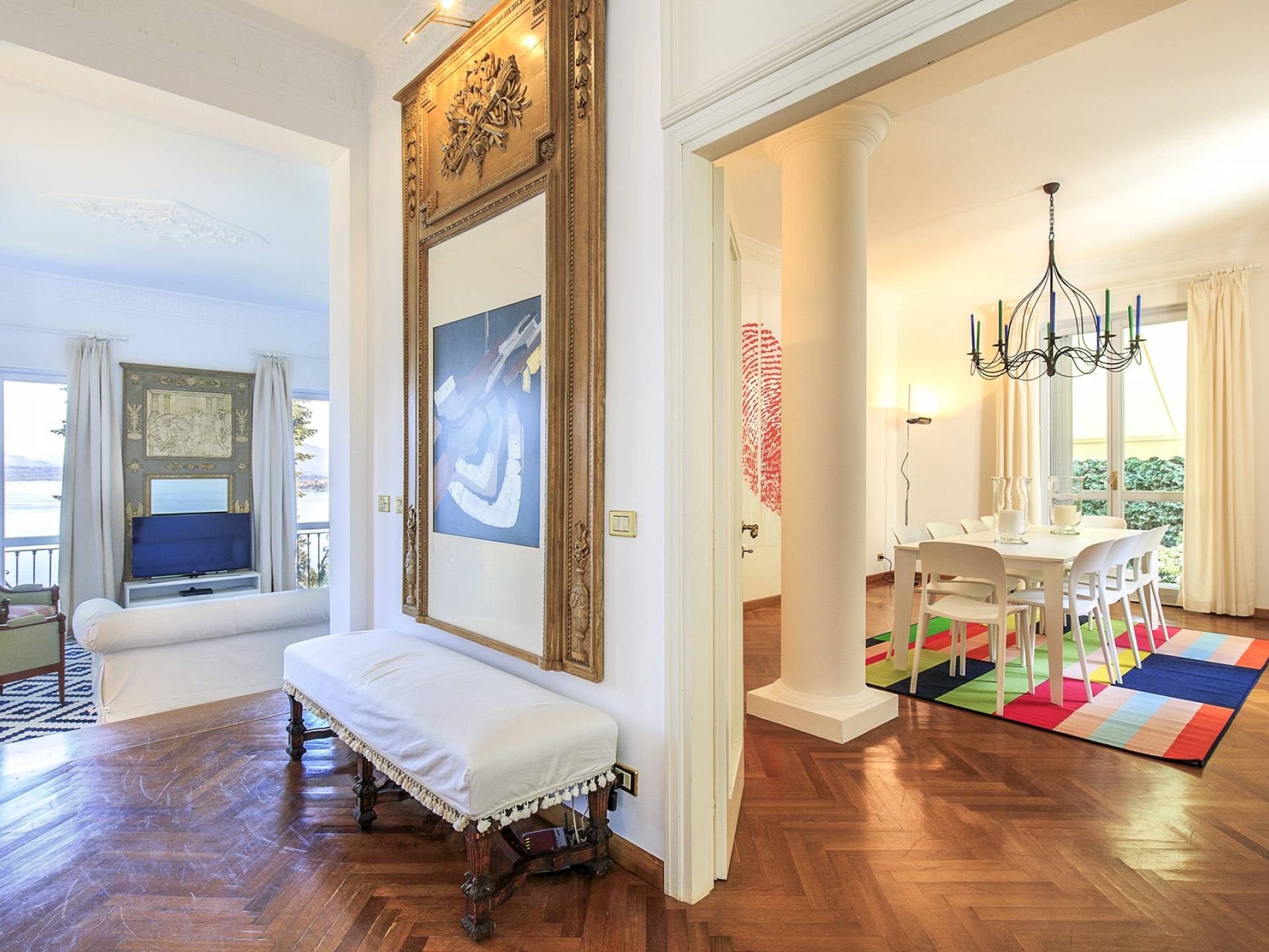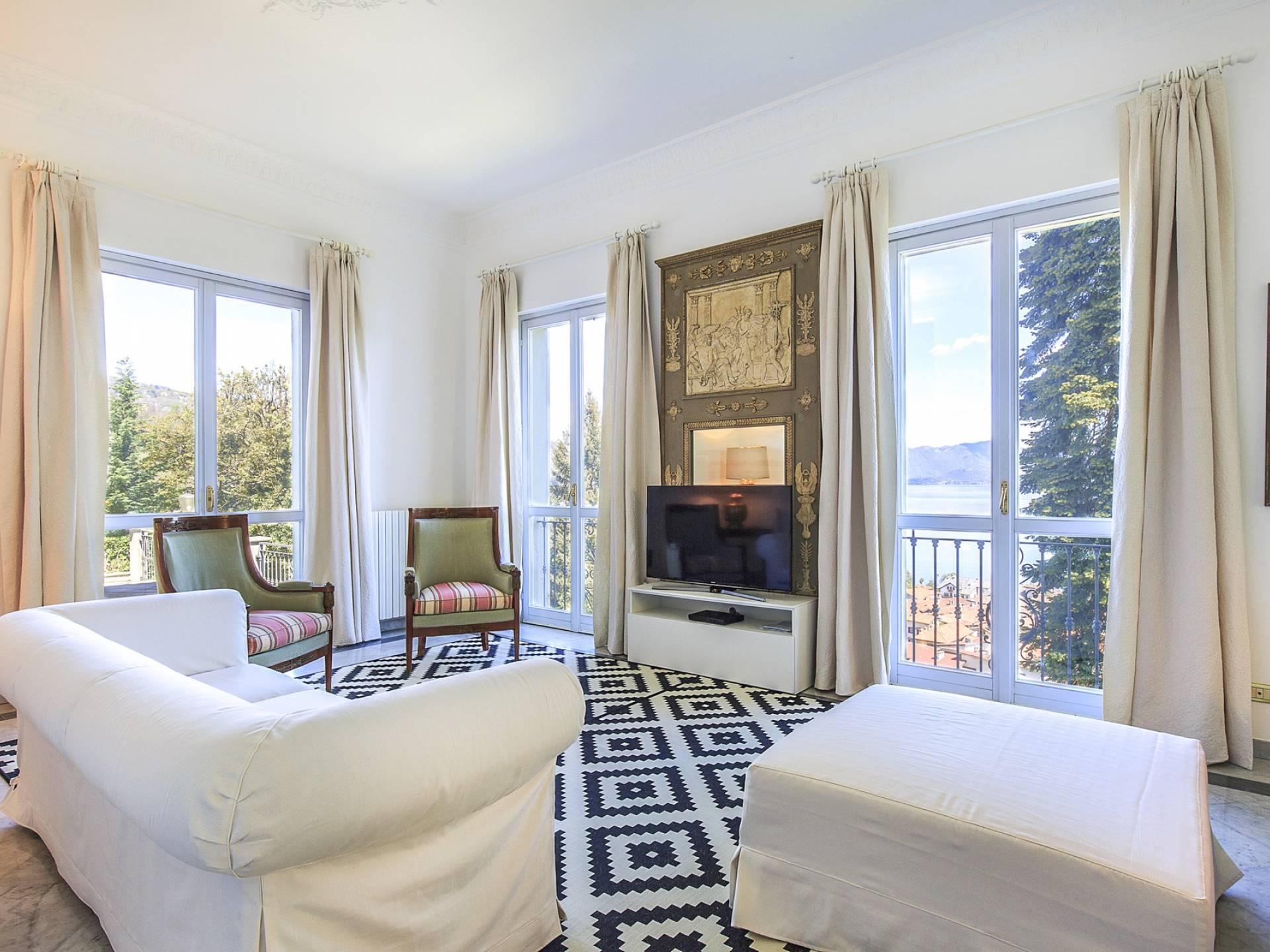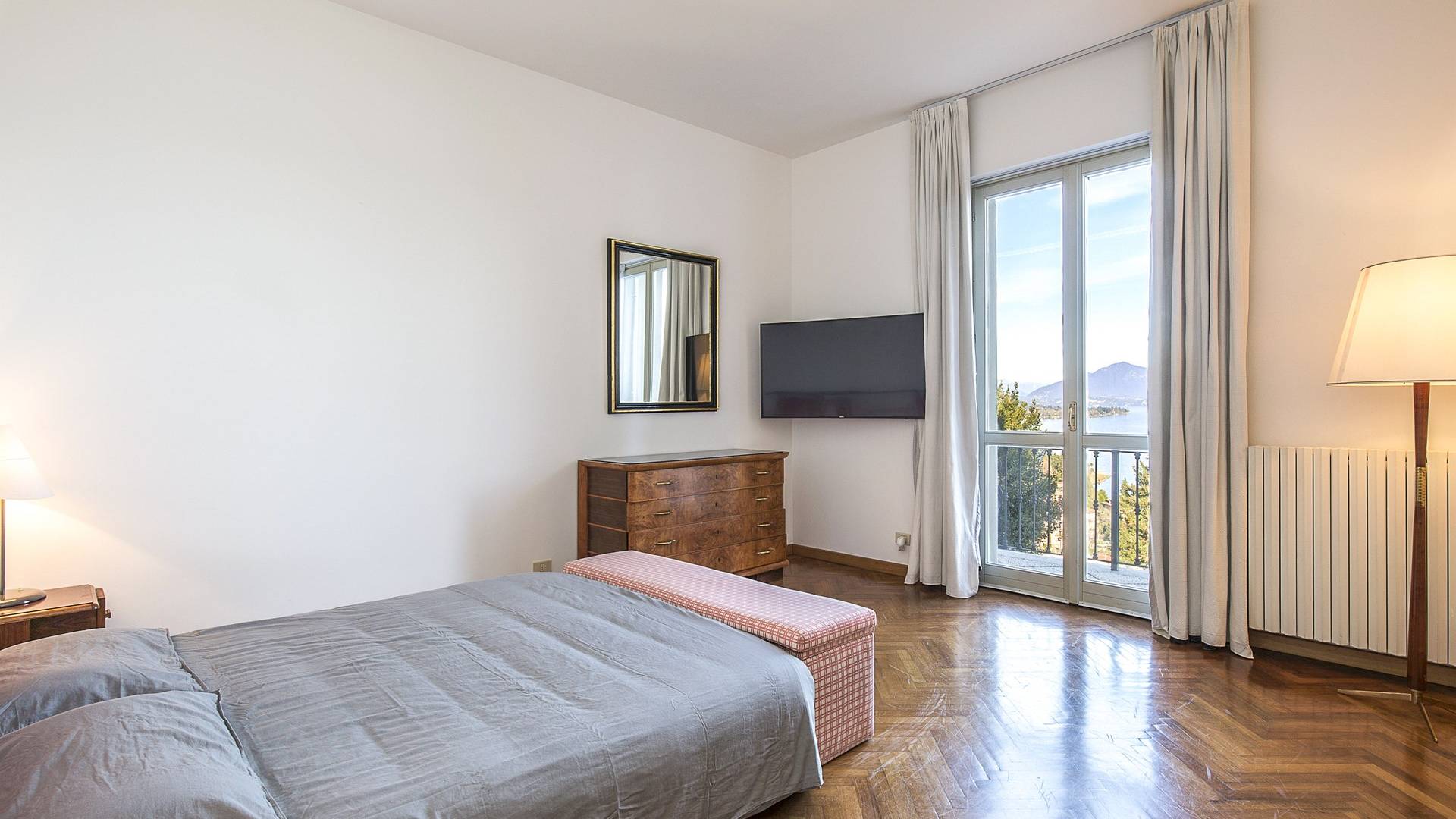 Al piano terra troverete un salone con camino, una biblioteca attrezzata con TV e PlayStation, una sala ufficio con scrivania, una cucina completamente attrezzata con adiacente zona colazione, una spaziosa sala da pranzo e un ampio soggiorno camera. La sala da pranzo ha un tavolo che può ospitare 10 persone e ha accesso alla terrazza laterale per gustare i pasti all'aperto. Il soggiorno è luminoso e accogliente con divani, smart tv, tavolo da biliardo e ampie finestre vista lago. Al primo piano si trovano 6 camere da letto climatizzate e 4 bellissimi bagni in marmo: una camera padronale con letto matrimoniale e TV e accesso a due bagni adiacenti (uno con vasca e uno con doccia) e ad una camera con letto a castello (un extra singolo letto aggiunto su richiesta), due camere con 2 letti singoli (una camera ha anche la TV), una camera con letto singolo, una camera con letto matrimoniale, due bagni ciascuno con doccia e vasca. C'è anche un ampio terrazzo fronte lago con mobili da esterno per rilassarsi e ammirare il panorama sul Lago Maggiore. Al piano seminterrato troverete una lavanderia con lavatrice e asciugatrice e un garage con parcheggio per 2 auto.
