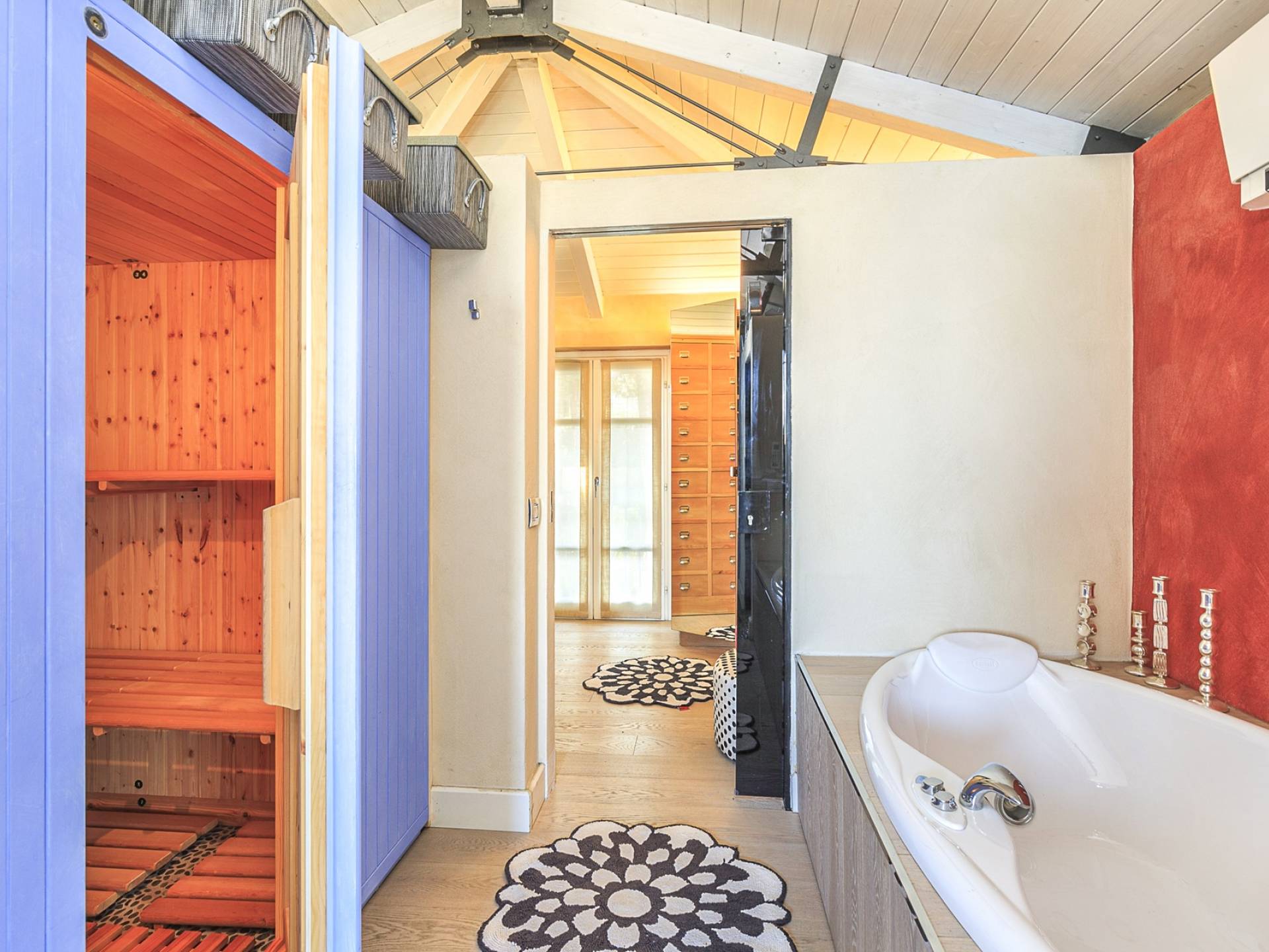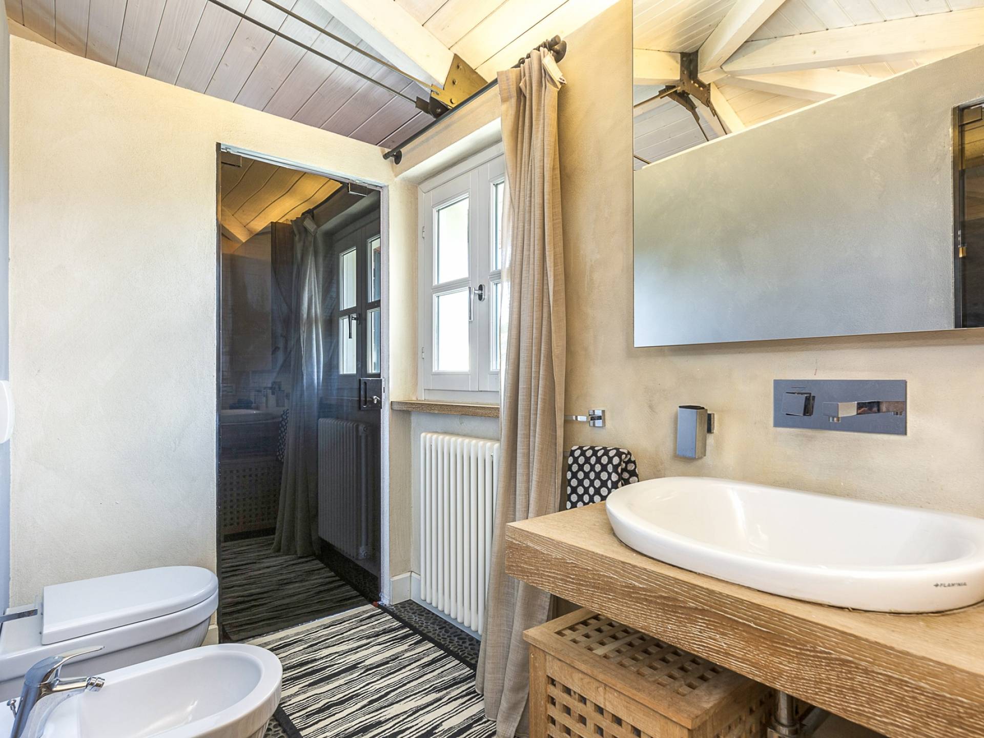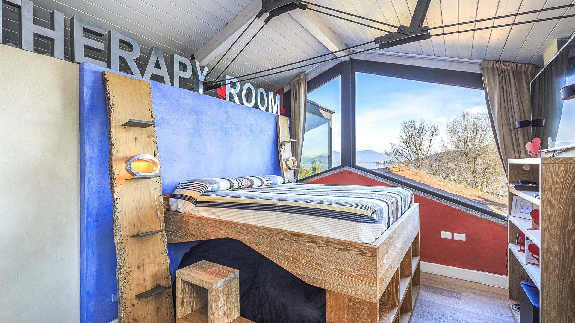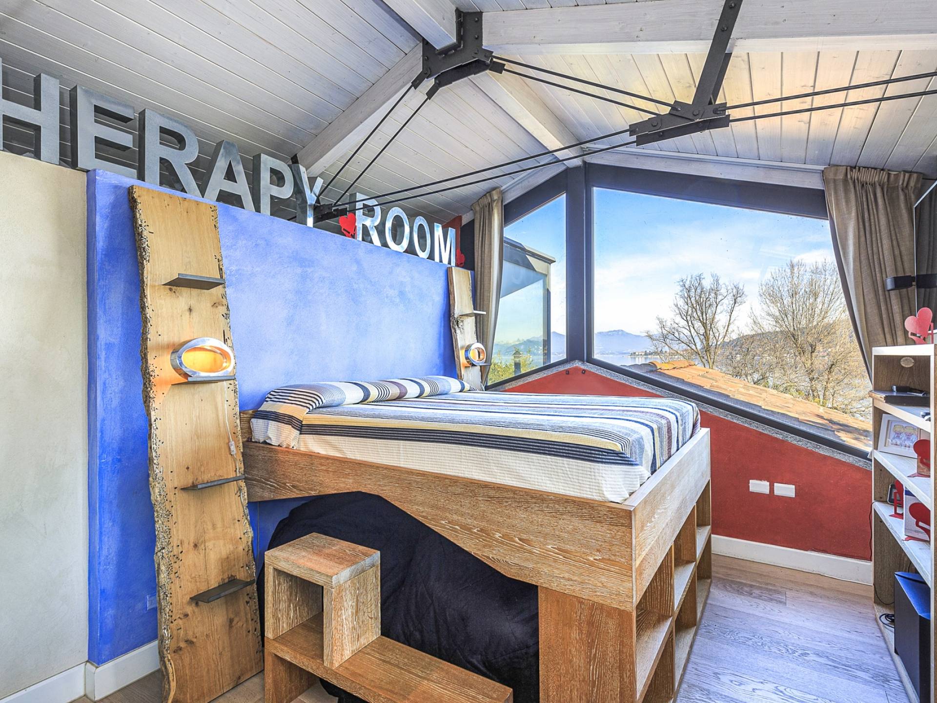Al piano terra si trovano una palestra e una sala giochi, un bagno per gli ospiti e la prima camera da letto 'la Veranda Suite' con bagno privato e accesso diretto al giardino. Al primo piano si trova il luminoso soggiorno con camino centrale, comodi divani, TV, impianto audio e tavolo da pranzo. Una cucina completamente attrezzata e un bagno per gli ospiti. Questo piano si apre su una bellissima terrazza all'aperto con sedie rilassanti e un tavolo per mangiare con vista sul lago. Un'imponente scala conduce al piano superiore e alla seconda camera da letto "la Suite Spa" che offre viste mozzafiato dal tuo letto matrimoniale rialzato, con doccia in camera, vasca idromassaggio e sauna, cabina armadio e servizi igienici.