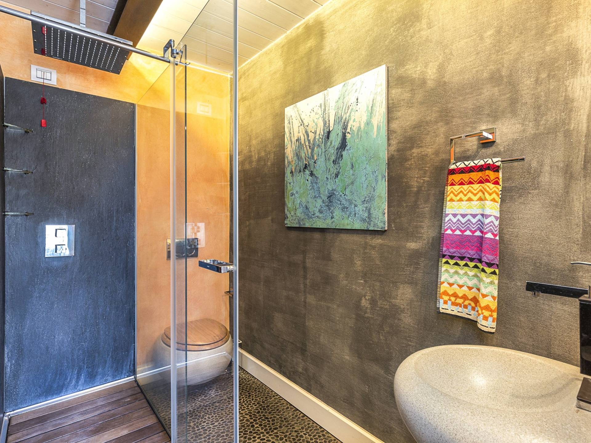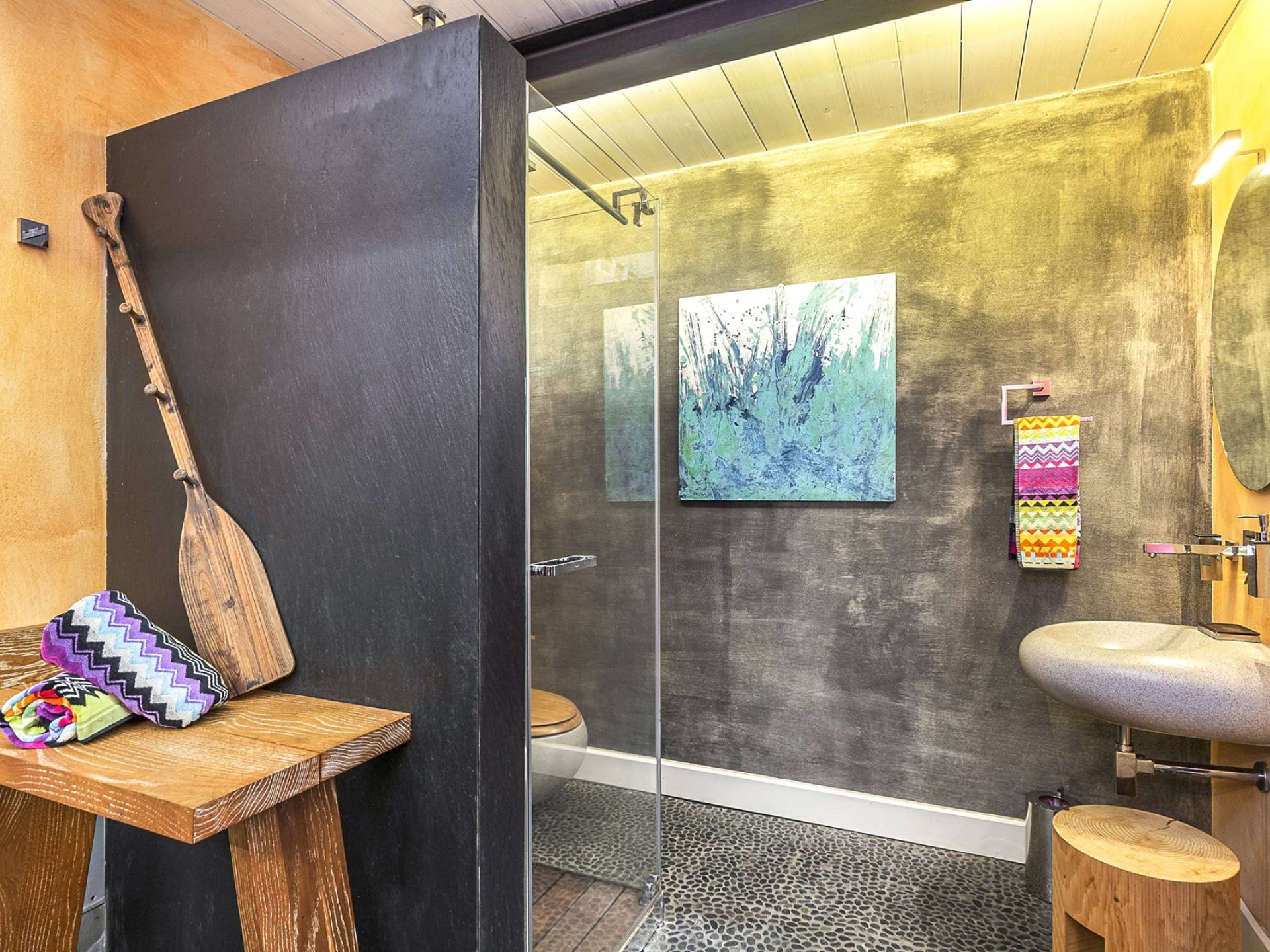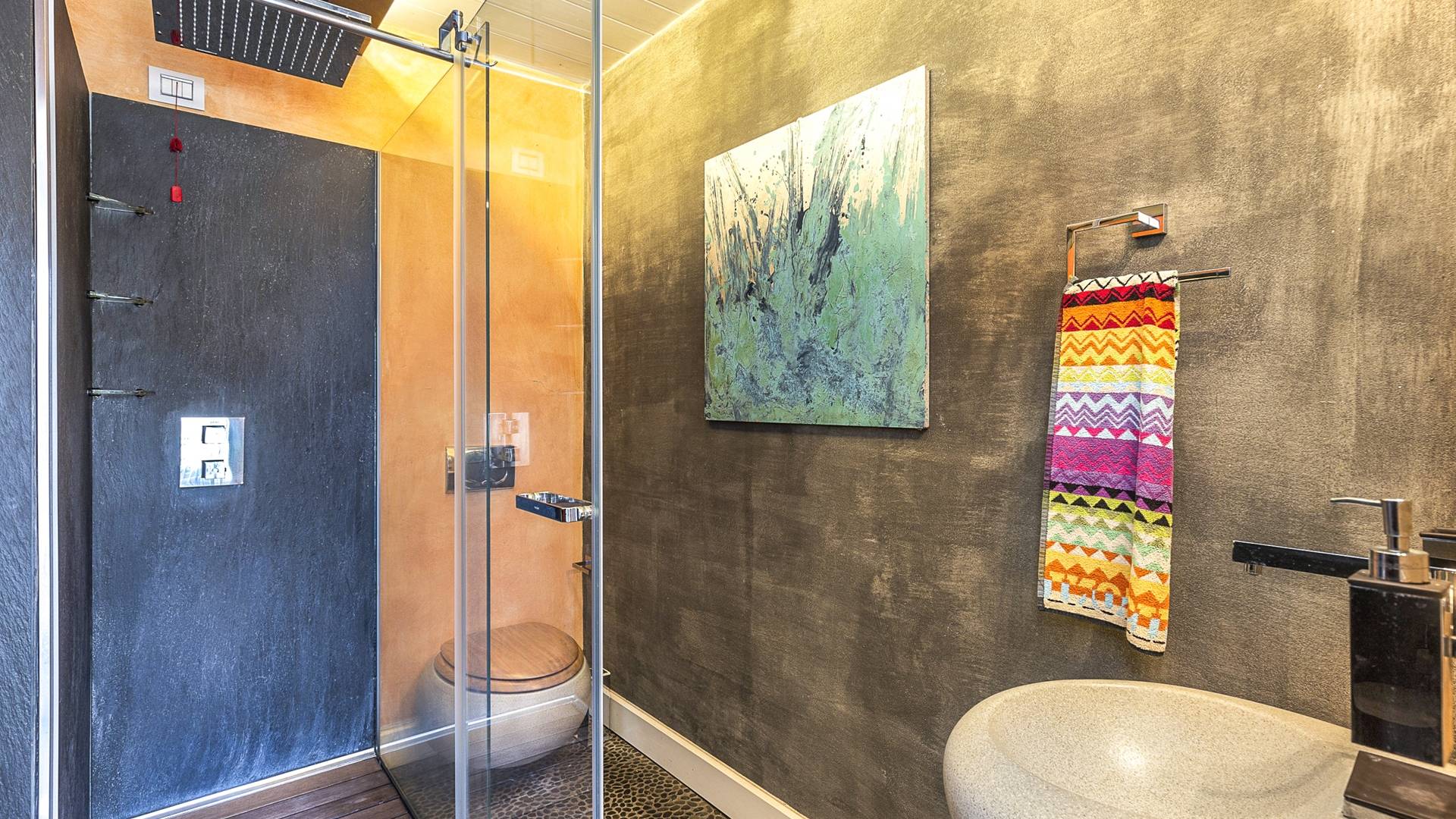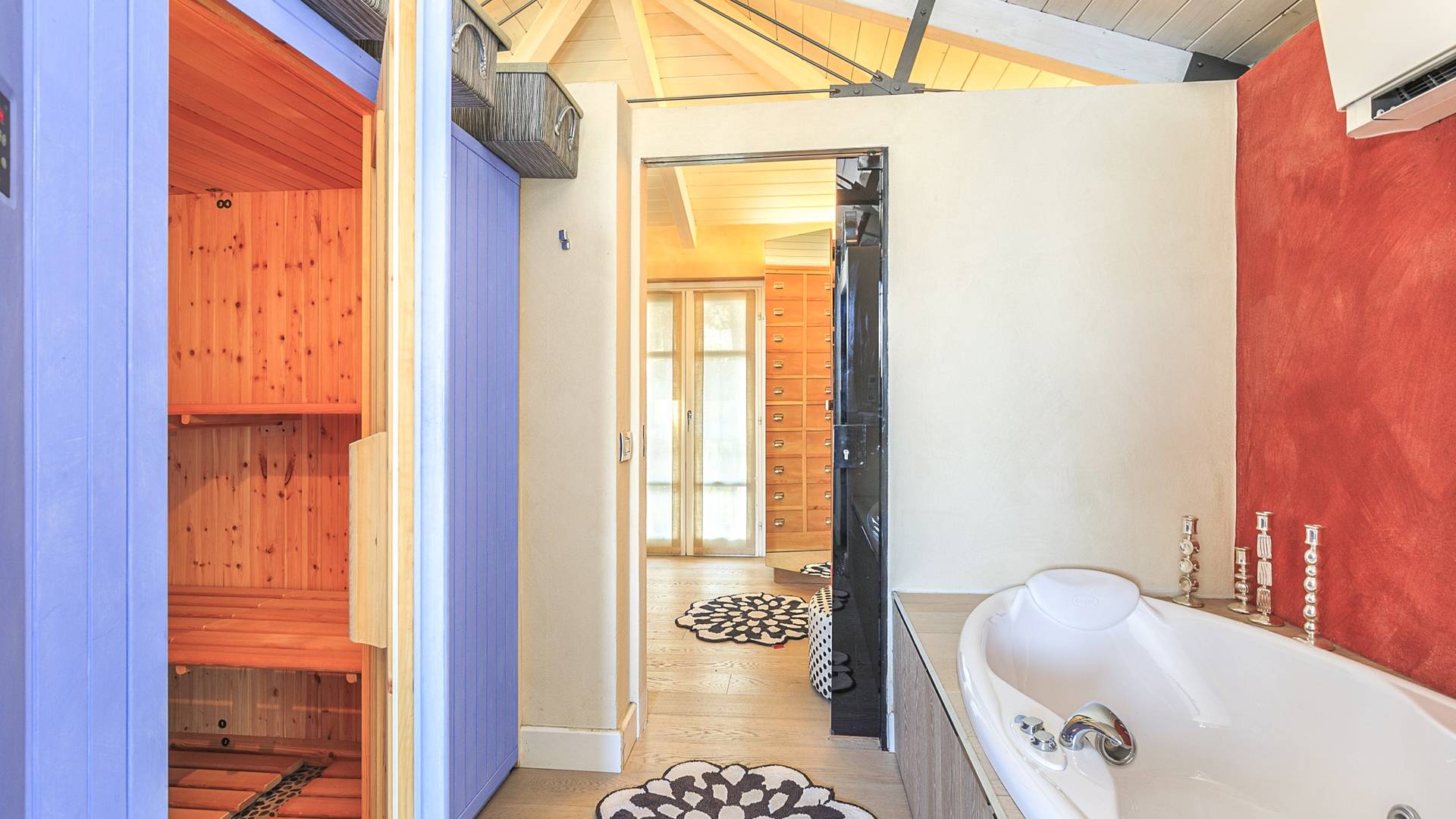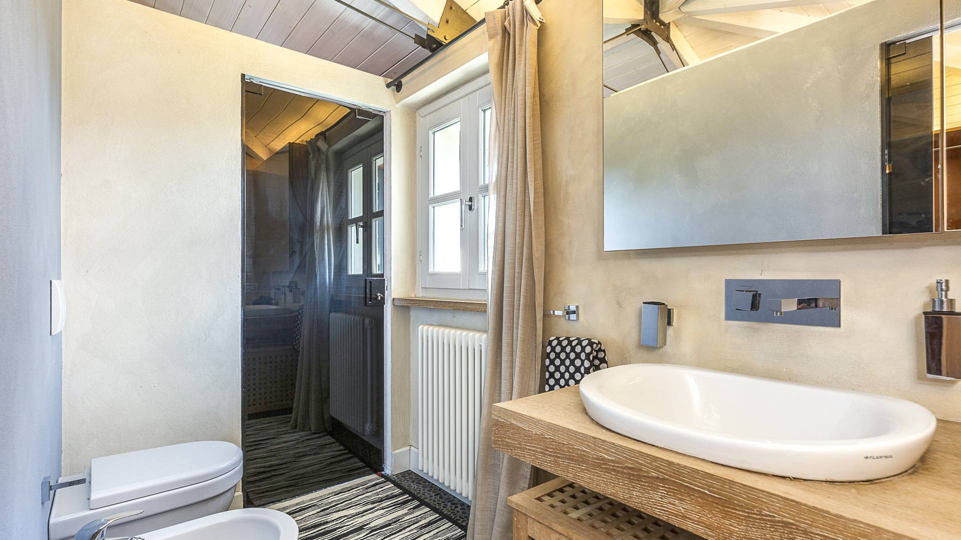 Al piano terra si trovano una palestra e una sala giochi, un bagno per gli ospiti e la prima camera da letto 'la Veranda Suite' con bagno privato e accesso diretto al giardino. Al primo piano si trova il luminoso soggiorno con camino centrale, comodi divani, TV, impianto audio e tavolo da pranzo. Una cucina completamente attrezzata e un bagno per gli ospiti. Questo piano si apre su una bellissima terrazza all'aperto con sedie rilassanti e un tavolo per mangiare con vista sul lago. Un'imponente scala conduce al piano superiore e alla seconda camera da letto "la Suite Spa" che offre viste mozzafiato dal tuo letto matrimoniale rialzato, con doccia in camera, vasca idromassaggio e sauna, cabina armadio e servizi igienici.