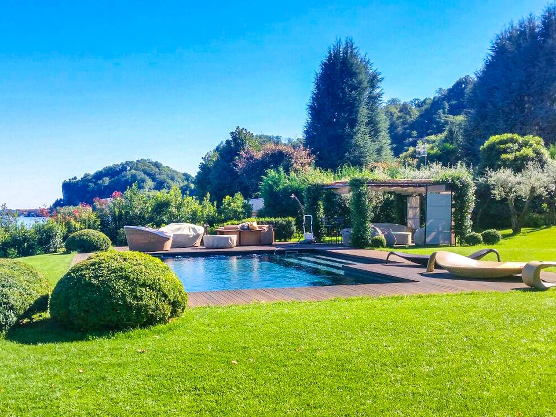 Villa sublime con piscina e bellissimo giardino che si affaccia direttamente sul lago ad Arona, Lago Maggiore. La perfetta fuga di lusso: goditi un soggiorno elegante ed esclusivo nella Villa Katia sul lungomare, arredata con gusto e amore per il design, su 3 piani (270 m²)