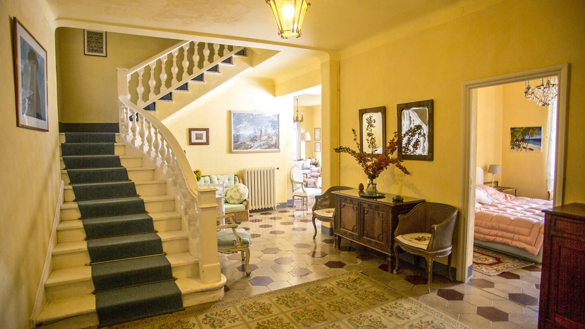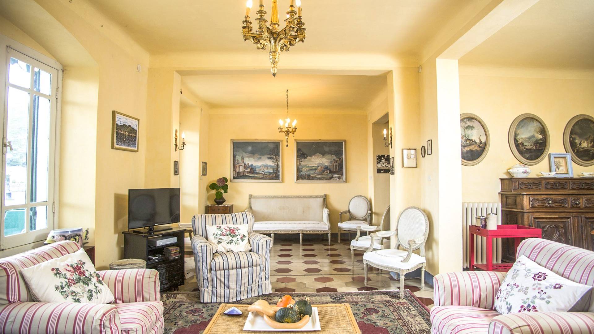 Il piano nobile è composto da soggiorno e sala da pranzo open space con accesso alla terrazza e al giardino, cucina, wc, camera con letto matrimoniale, camera con letto singolo, bagno con doccia. Al primo piano si trovano due camere con 2 letti singoli, una camera con un letto singolo e balcone, una camera con letto matrimoniale e terrazzo (10 mq), un bagno con vasca e due bagni con doccia.