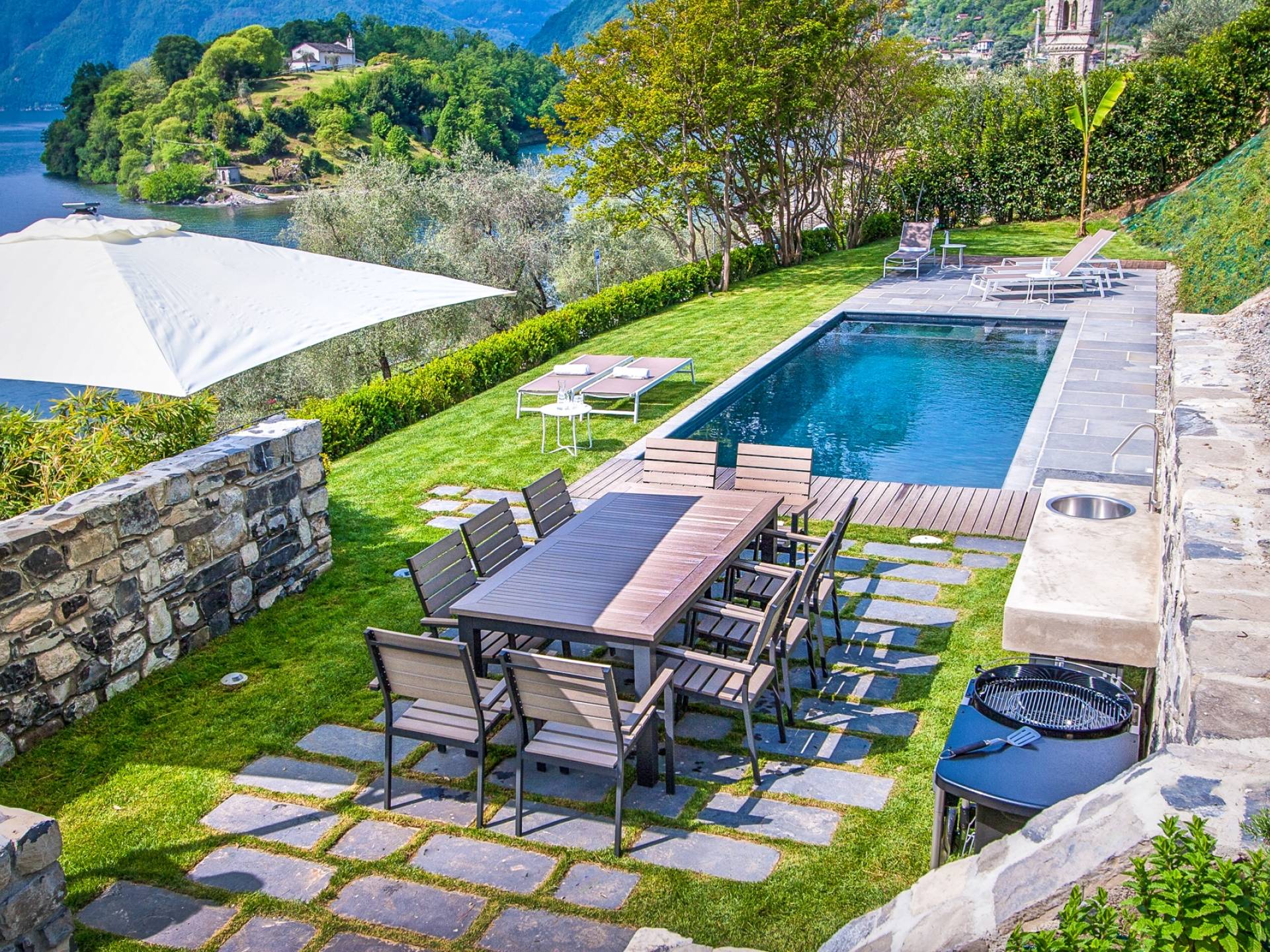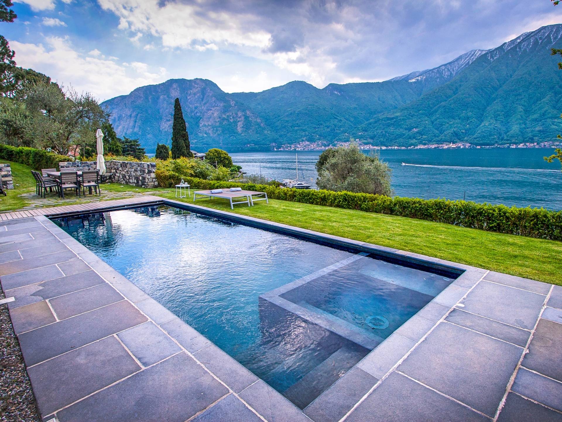 L'unicità della decorazione, dello stile e degli arredi esclusivi, si integrano perfettamente con lo stile moderno e razionalista della villa. All'esterno troverete anche una piscina riscaldata vista lago (8,5 x 3 metri) con vasca idromassaggio mentre un'area benessere e spa, con vasca idromassaggio e sauna, sarà pronta a coccolarvi e a farvi godere momenti di relax negli spazi interni dove si trovano c'è anche una zona cinema con TV 60” e collegamento a Sky e una cantina.