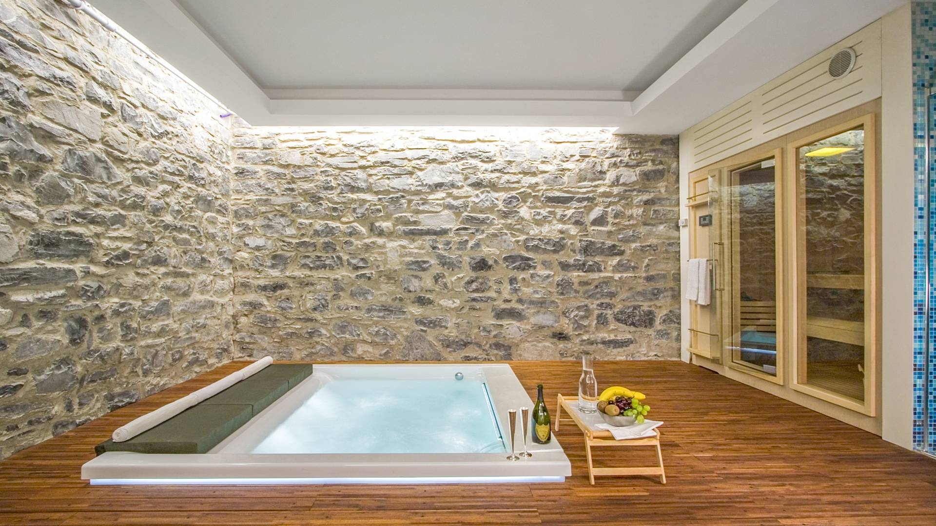 Colore blu, sole e lusso, niente può battere questa combinazione. Cos'altro c'è da chiedere per le tue vacanze? Concediti una piscina privata riscaldata nell'intimità della tua villa, sia interna che esterna. L'acqua è curativa e terapeutica e laverà…