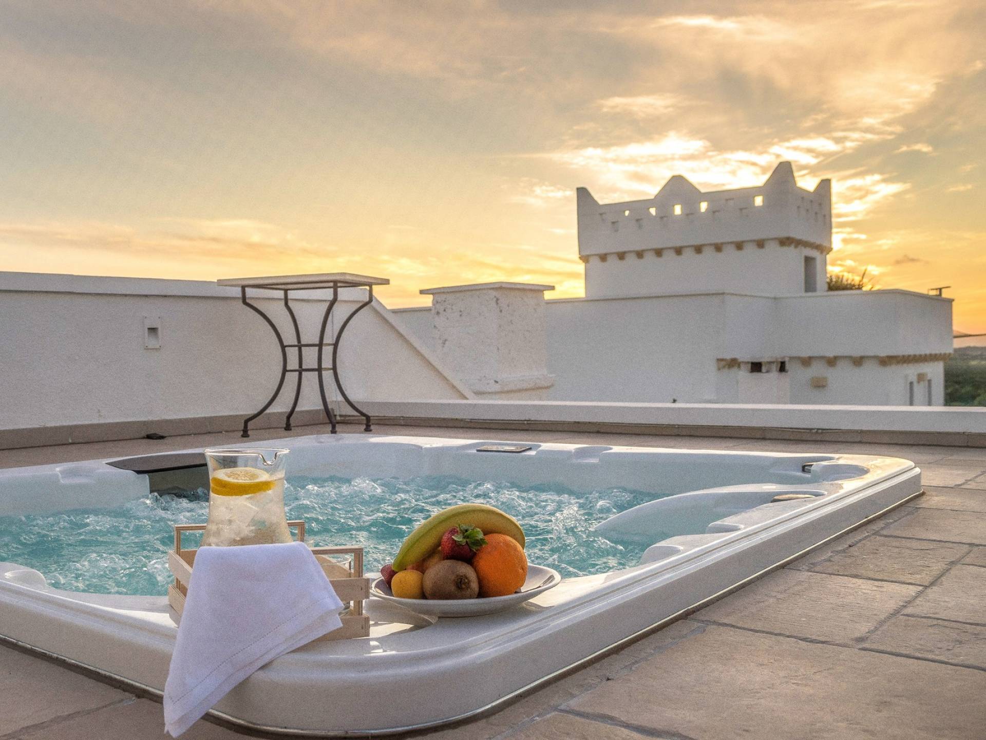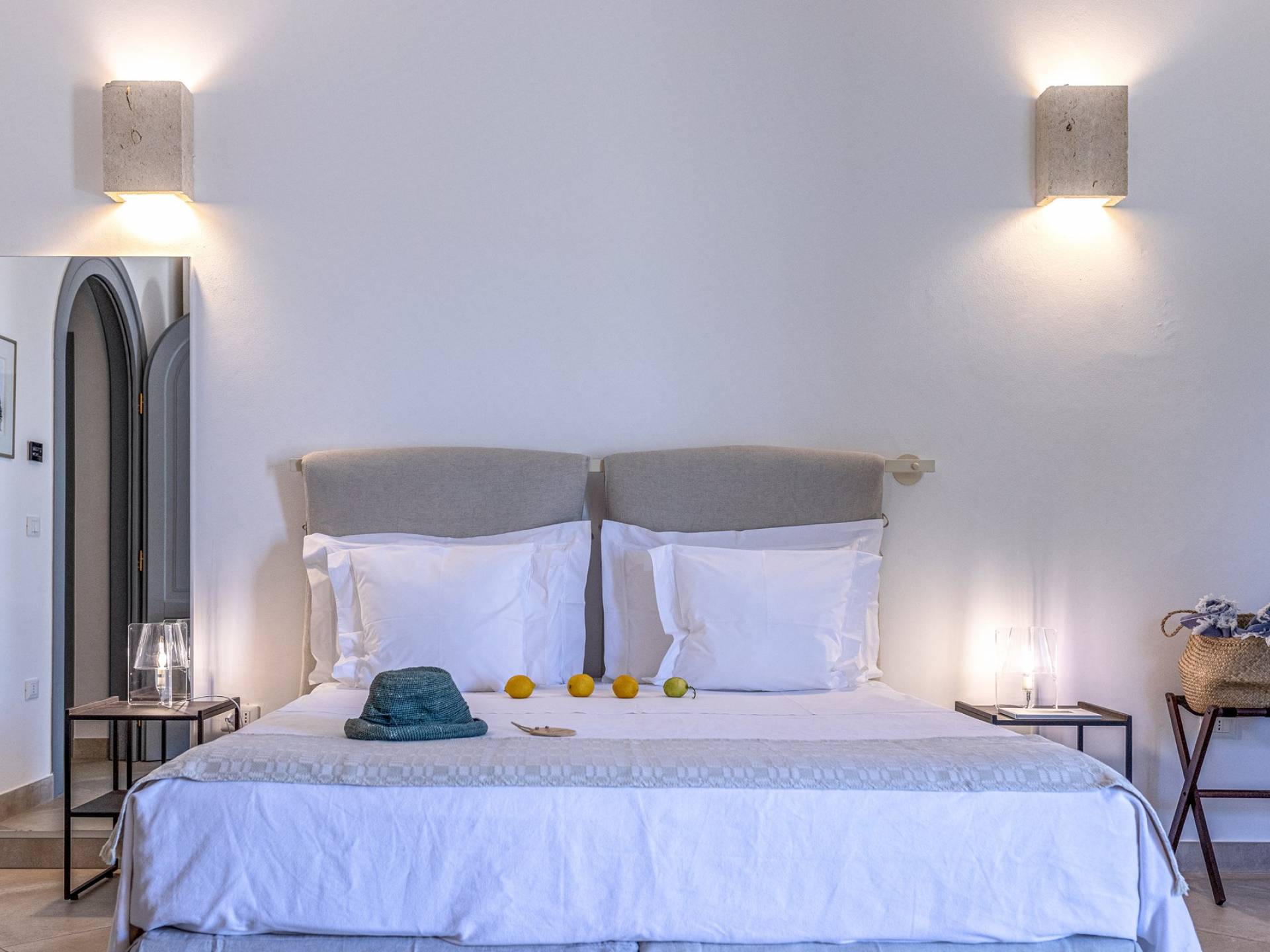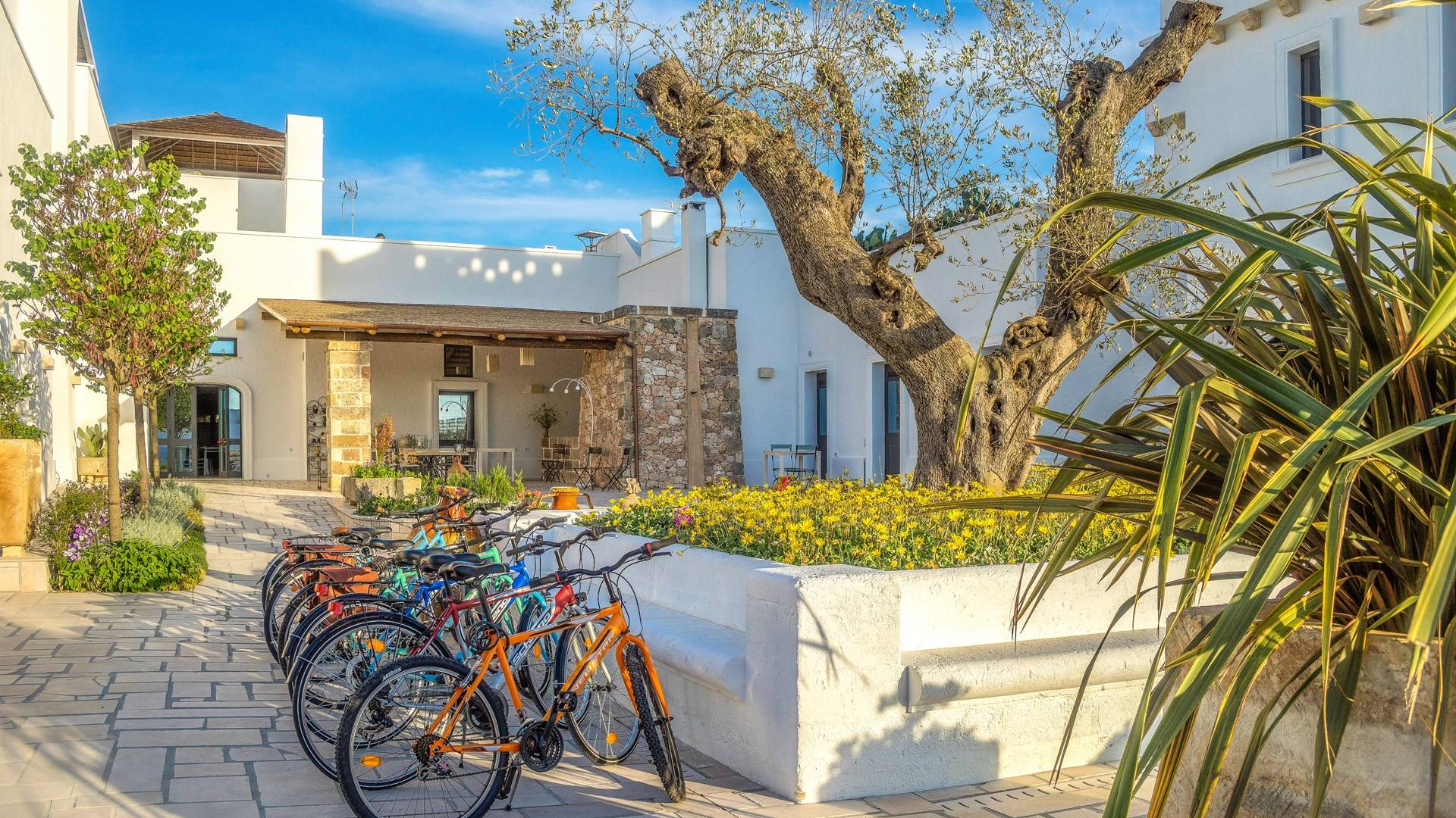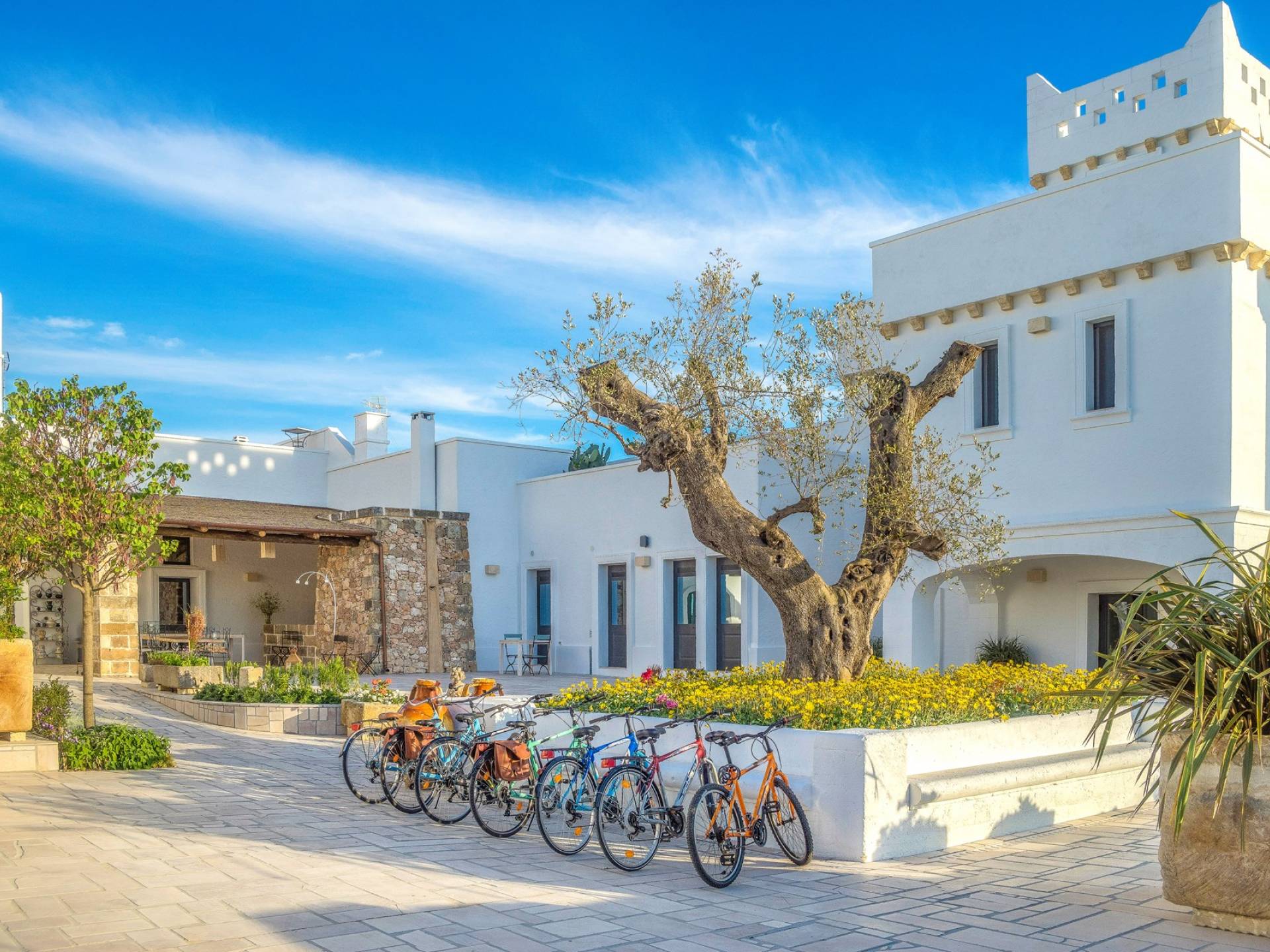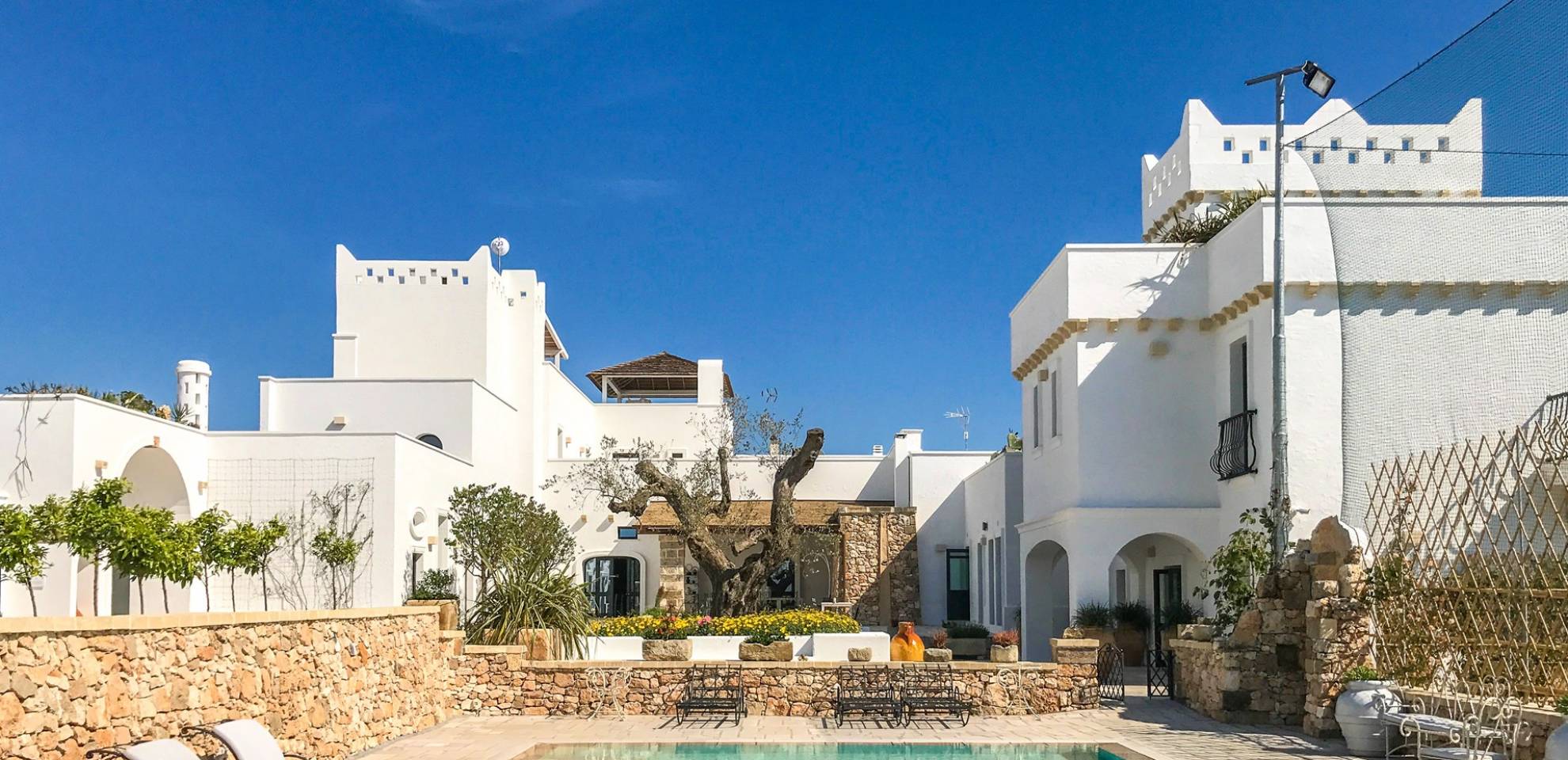 Sull'ampio terreno, c'è una piscina a sfioro con lettini per tutti gli ospiti, un campo sportivo e un cortile interno che ospita un ulivo centenario. A ridosso del centro cittadino, gli interni della Masseria comprendono un soggiorno, un lounge bar, una sala colazione/pranzo, una palestra e un totale di quattordici camere matrimoniali di diversa tipologia. Il design della casa, affrontato con ricerca nel contesto storico, mescola mobili di design ed elementi restaurati con le caratteristiche originali che questa proprietà conserva, risultando in uno stile eclettico con pietra locale di alta qualità e intonaco bianco incontaminato. I soffitti a volta immacolati conferiscono un tocco leggero agli interni.