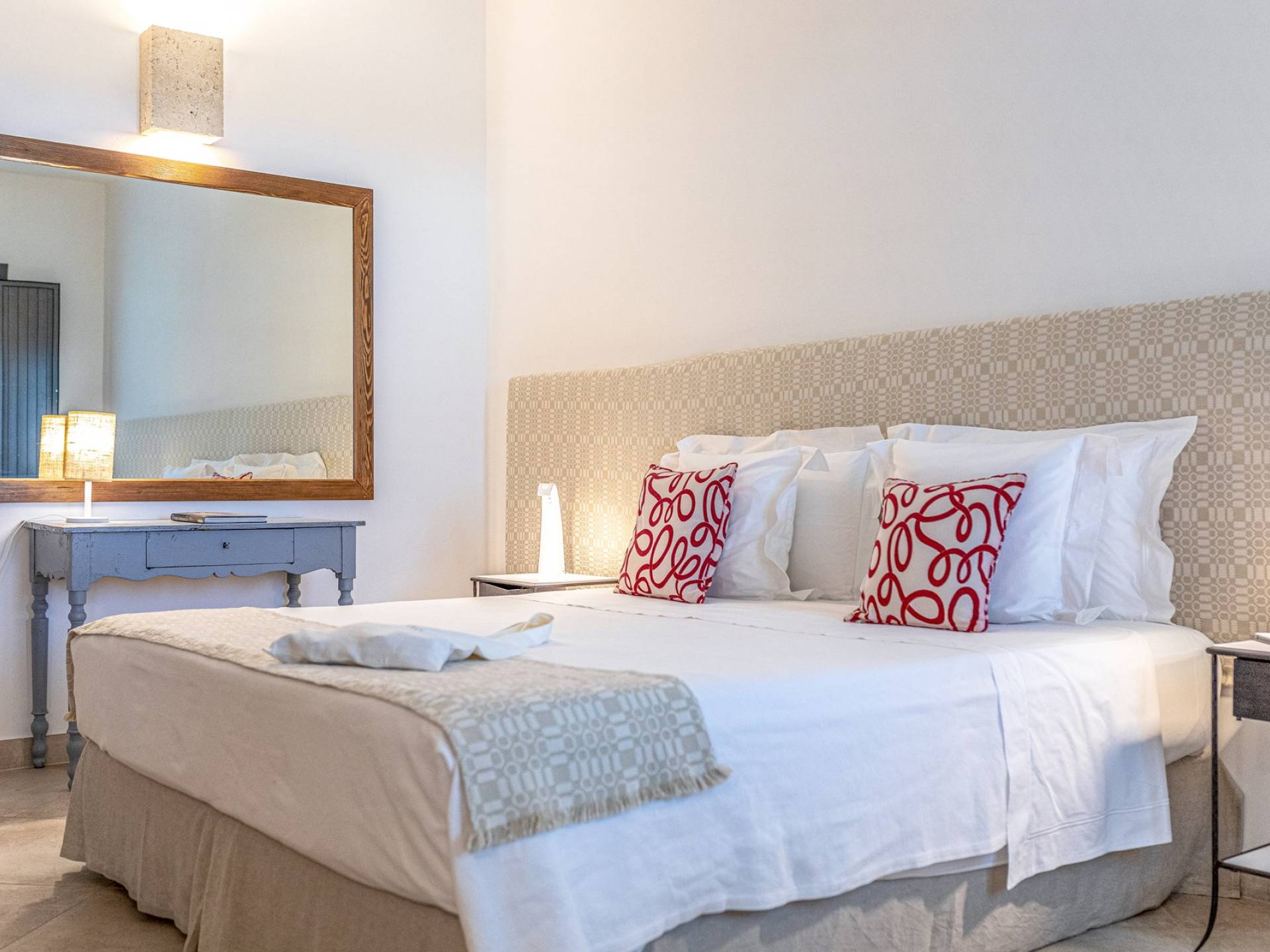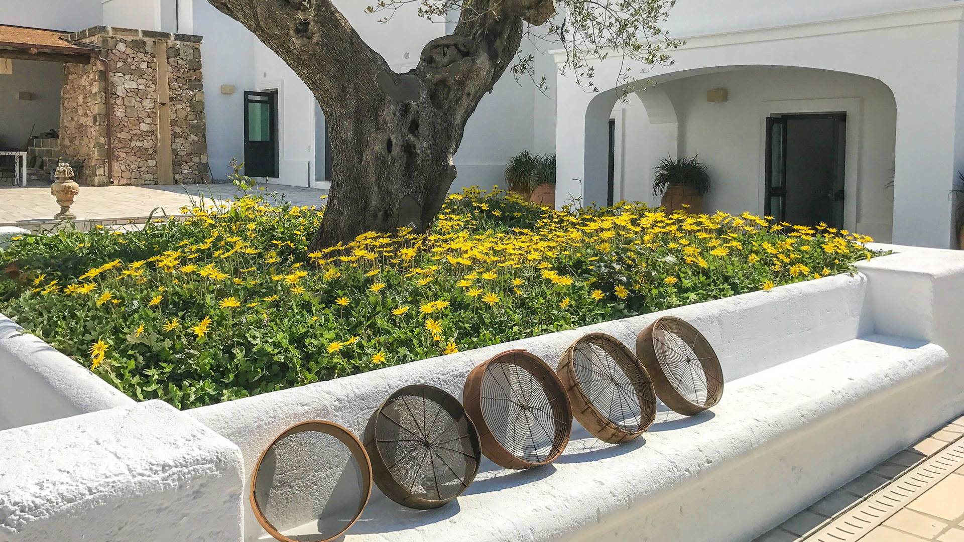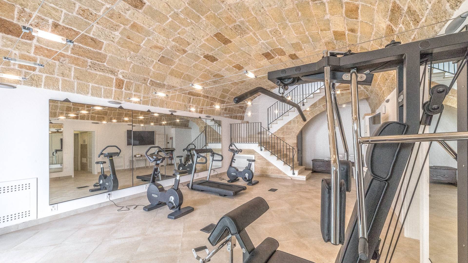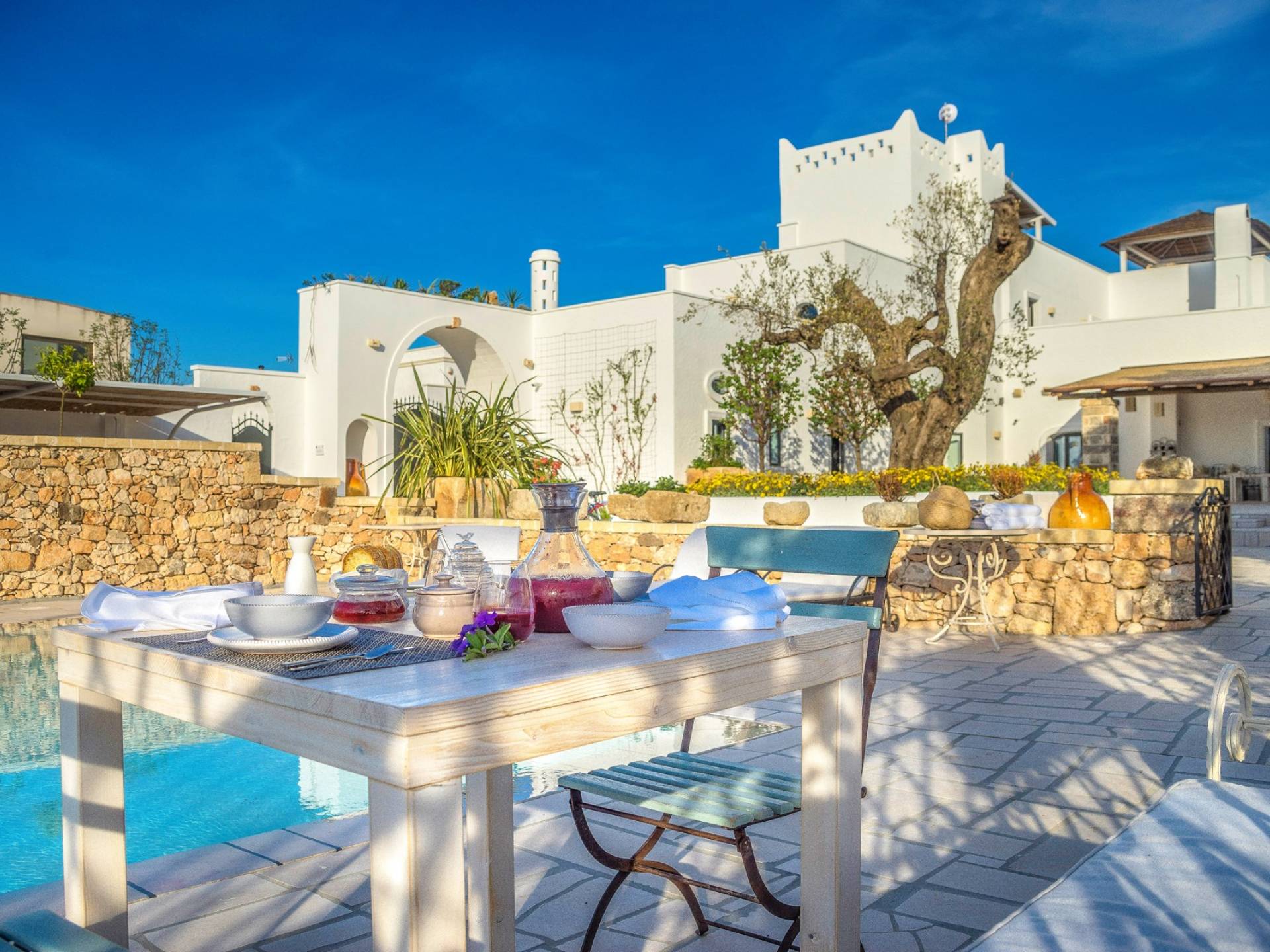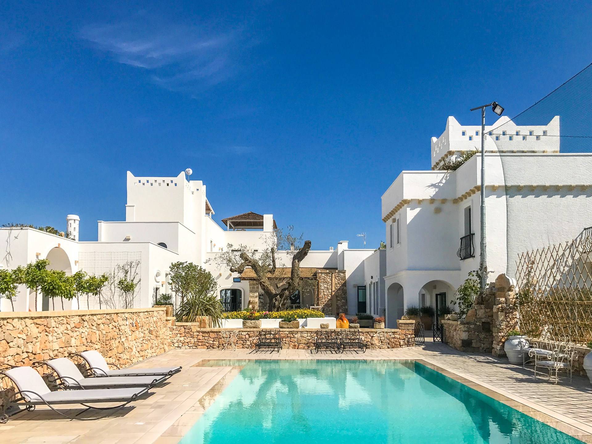 Sull'ampio terreno, c'è una piscina a sfioro con lettini per tutti gli ospiti, un campo sportivo e un cortile interno che ospita un ulivo centenario. A ridosso del centro cittadino, gli interni della Masseria comprendono un soggiorno, un lounge bar, una sala colazione/pranzo, una palestra e un totale di quattordici camere matrimoniali di diversa tipologia. Il design della casa, affrontato con ricerca nel contesto storico, mescola mobili di design ed elementi restaurati con le caratteristiche originali che questa proprietà conserva, risultando in uno stile eclettico con pietra locale di alta qualità e intonaco bianco incontaminato. I soffitti a volta immacolati conferiscono un tocco leggero agli interni.