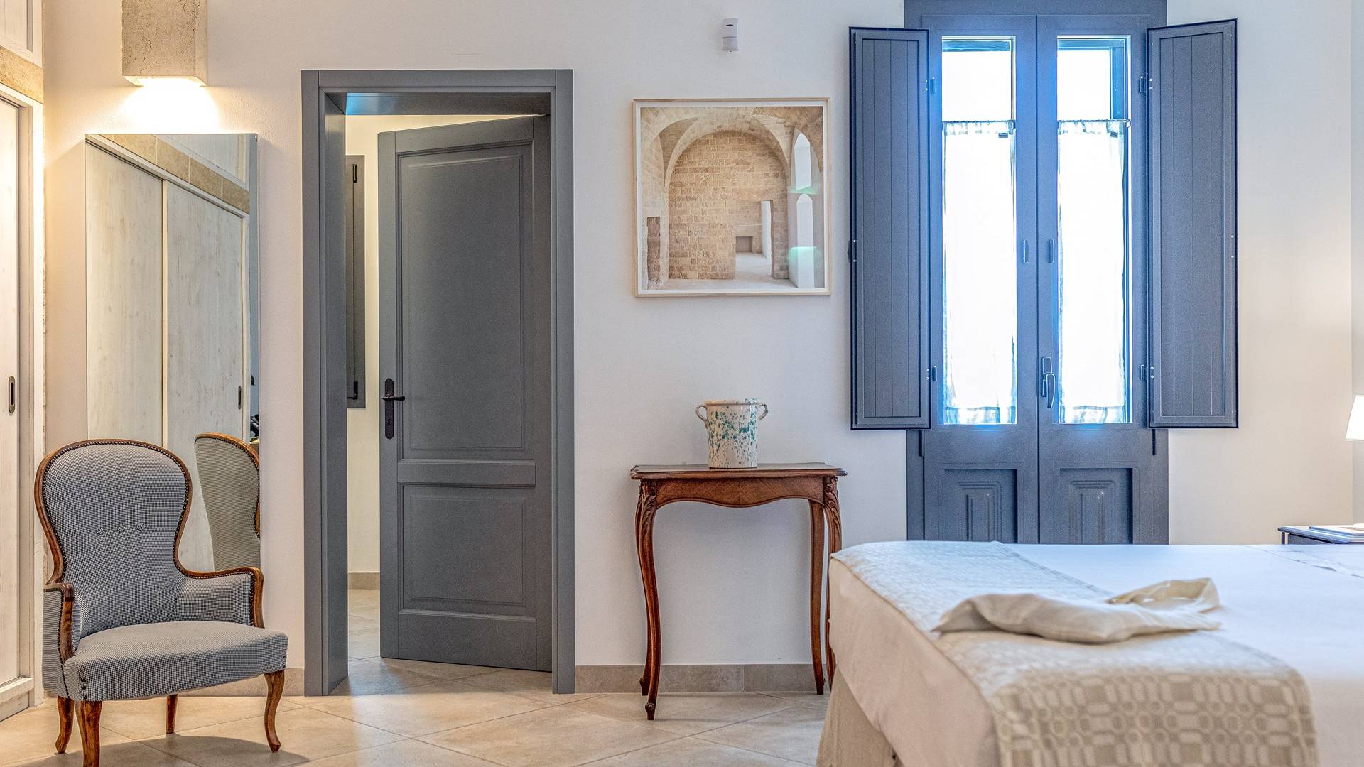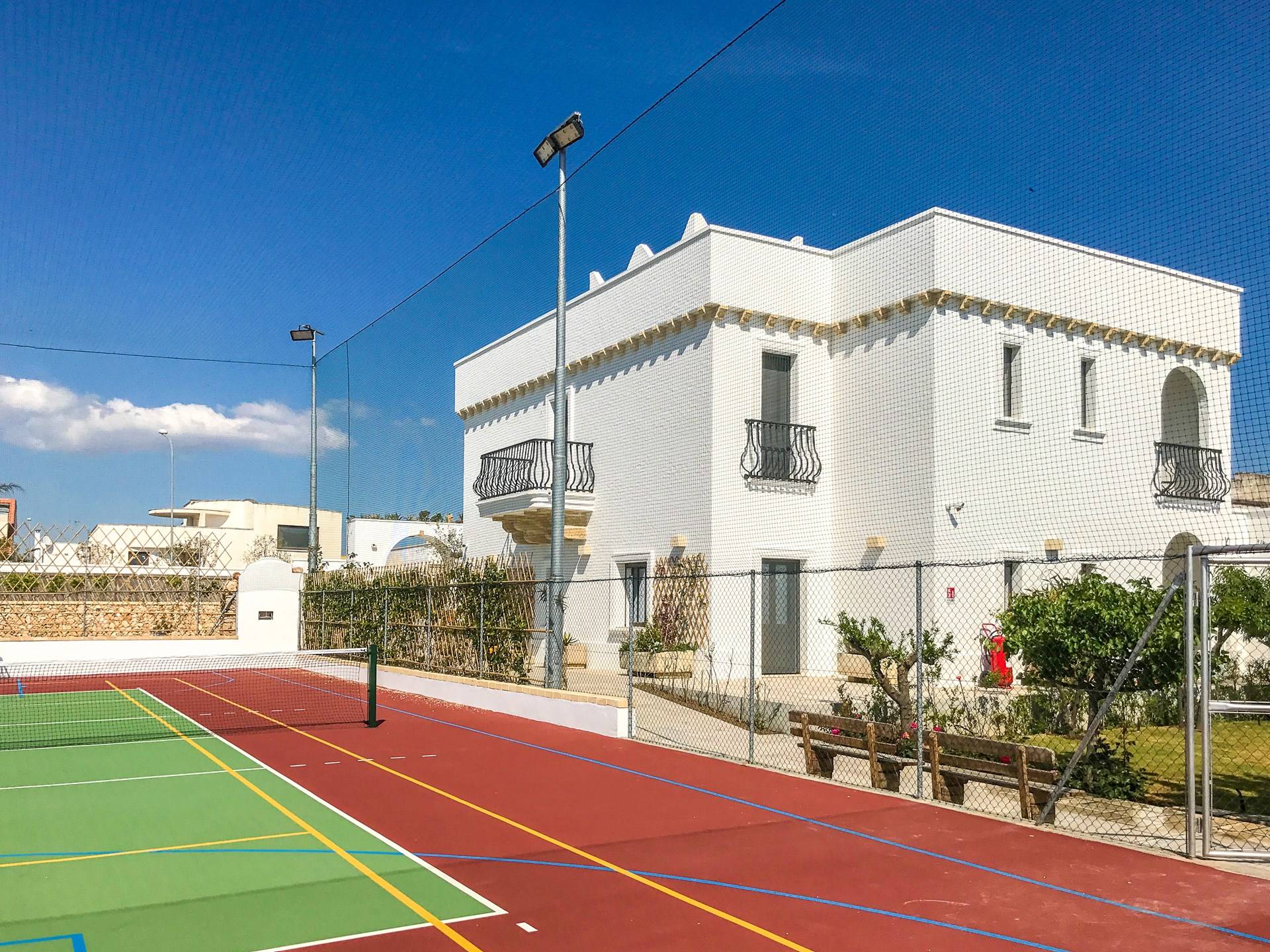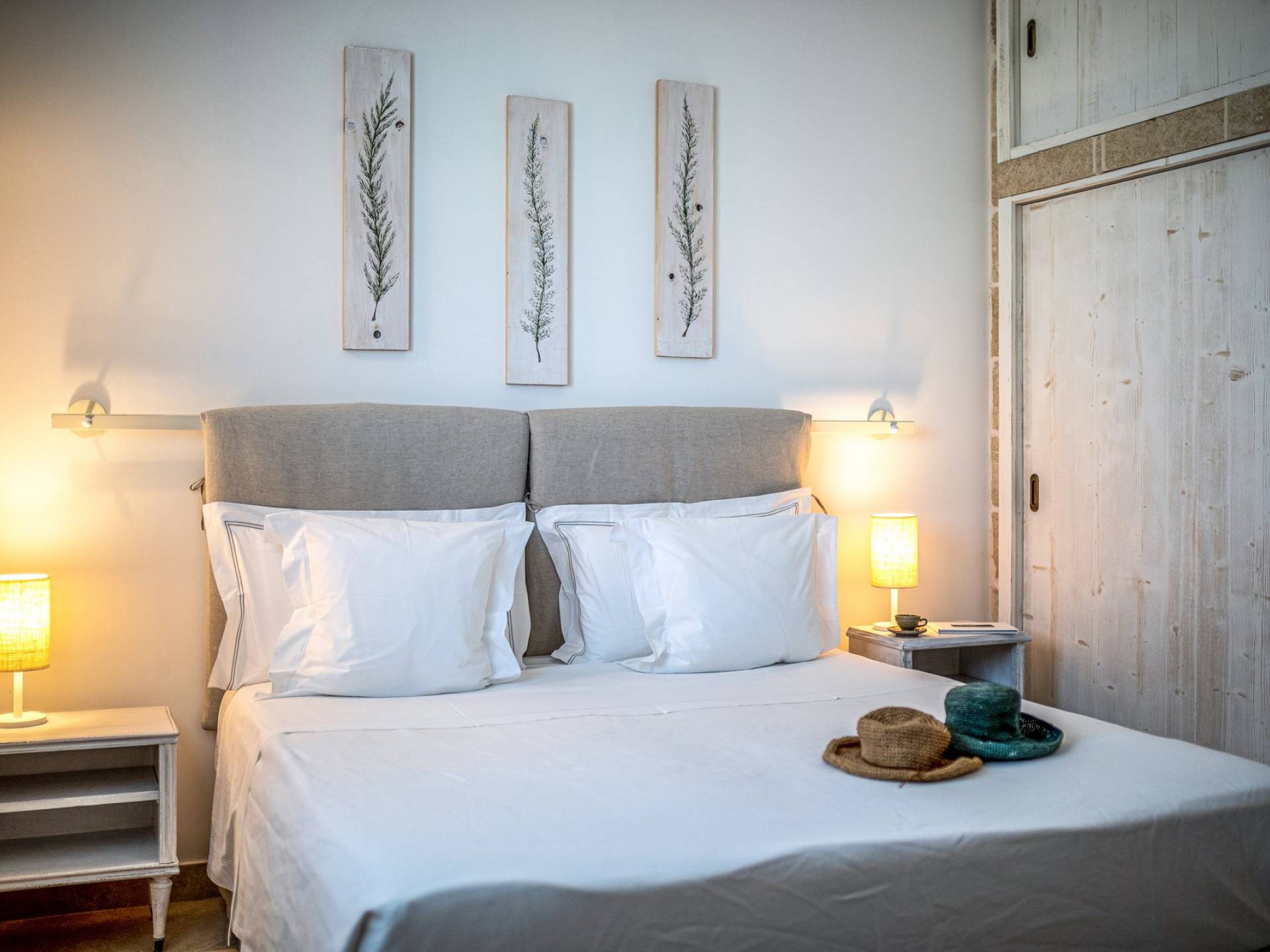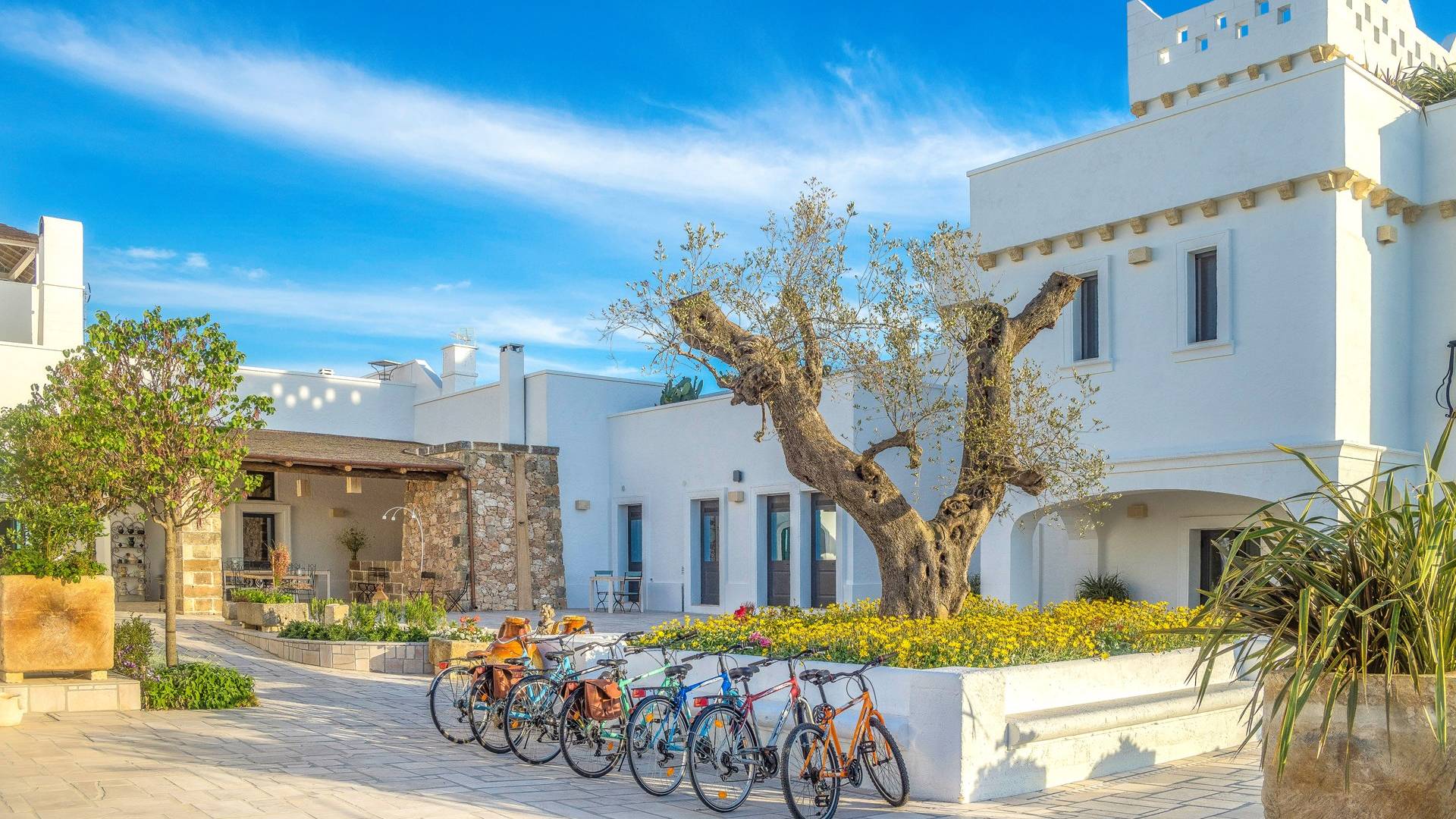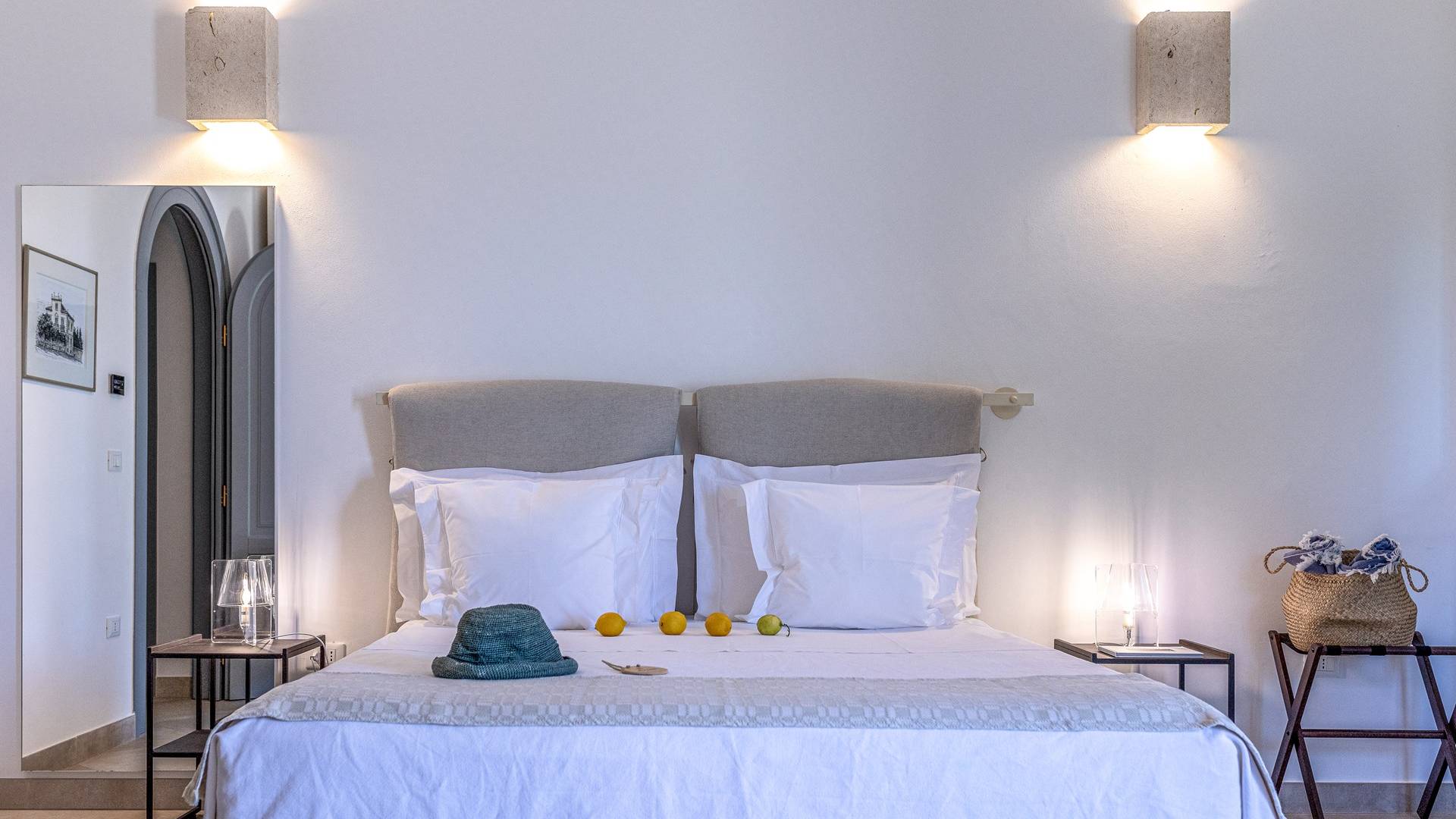 Sull'ampio terreno, c'è una piscina a sfioro con lettini per tutti gli ospiti, un campo sportivo e un cortile interno che ospita un ulivo centenario. A ridosso del centro cittadino, gli interni della Masseria comprendono un soggiorno, un lounge bar, una sala colazione/pranzo, una palestra e un totale di quattordici camere matrimoniali di diversa tipologia. Il design della casa, affrontato con ricerca nel contesto storico, mescola mobili di design ed elementi restaurati con le caratteristiche originali che questa proprietà conserva, risultando in uno stile eclettico con pietra locale di alta qualità e intonaco bianco incontaminato. I soffitti a volta immacolati conferiscono un tocco leggero agli interni.