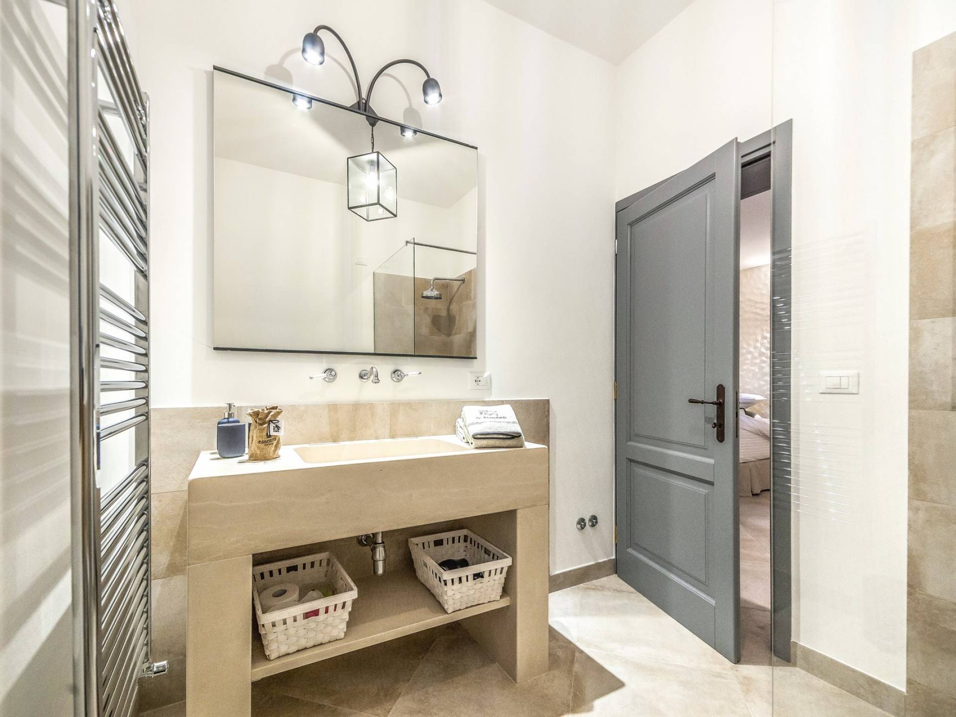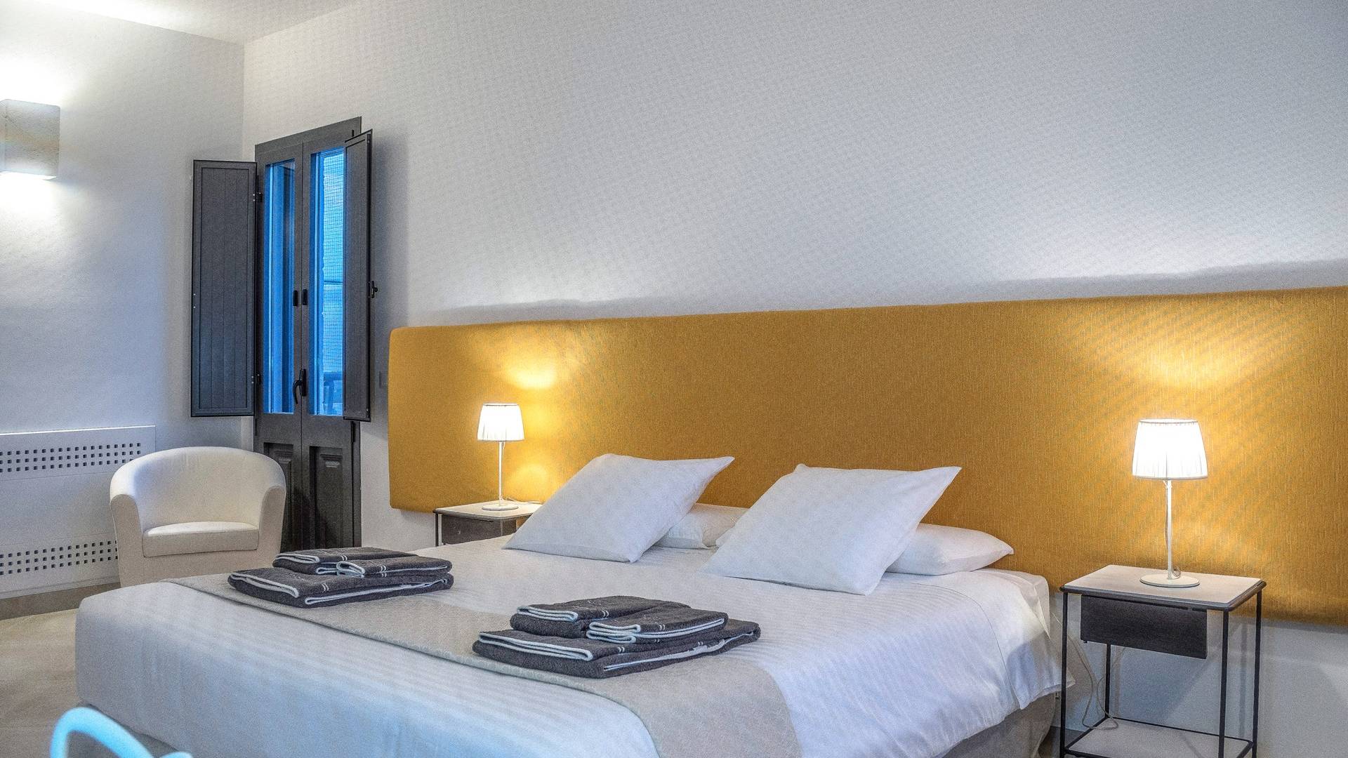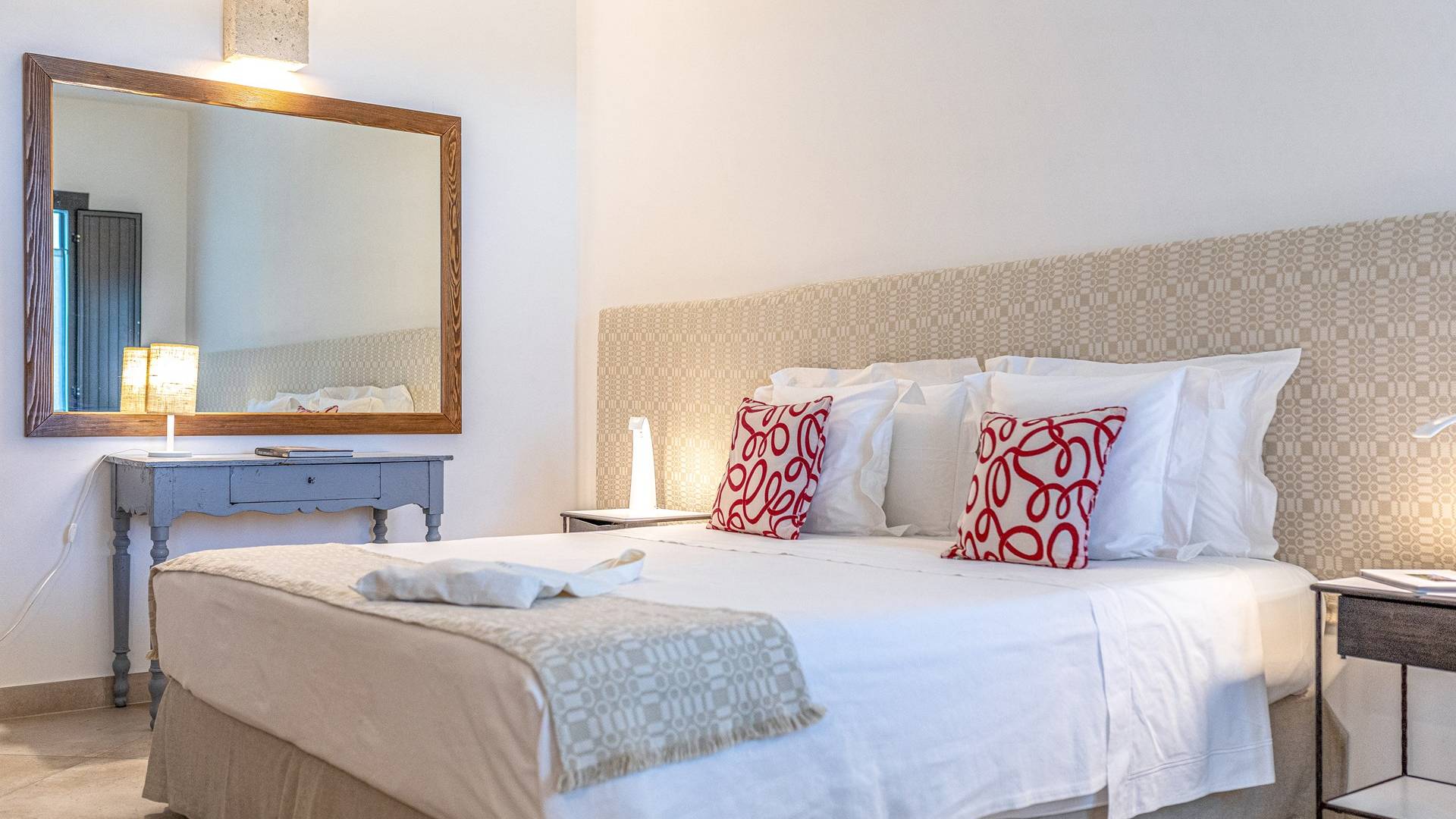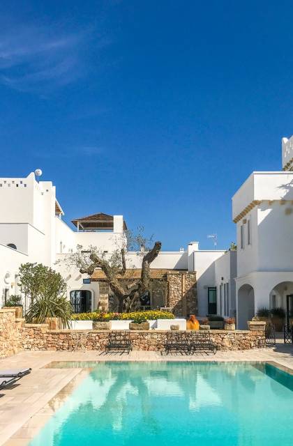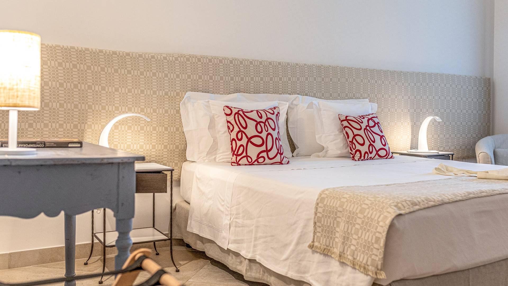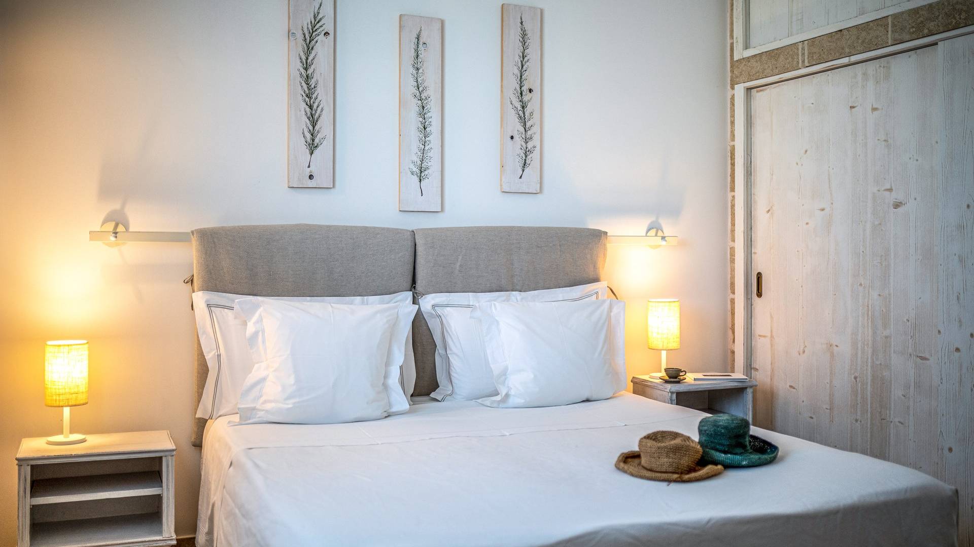 Sull'ampio terreno, c'è una piscina a sfioro con lettini per tutti gli ospiti, un campo sportivo e un cortile interno che ospita un ulivo centenario. A ridosso del centro cittadino, gli interni della Masseria comprendono un soggiorno, un lounge bar, una sala colazione/pranzo, una palestra e un totale di quattordici camere matrimoniali di diversa tipologia. Il design della casa, affrontato con ricerca nel contesto storico, mescola mobili di design ed elementi restaurati con le caratteristiche originali che questa proprietà conserva, risultando in uno stile eclettico con pietra locale di alta qualità e intonaco bianco incontaminato. I soffitti a volta immacolati conferiscono un tocco leggero agli interni.