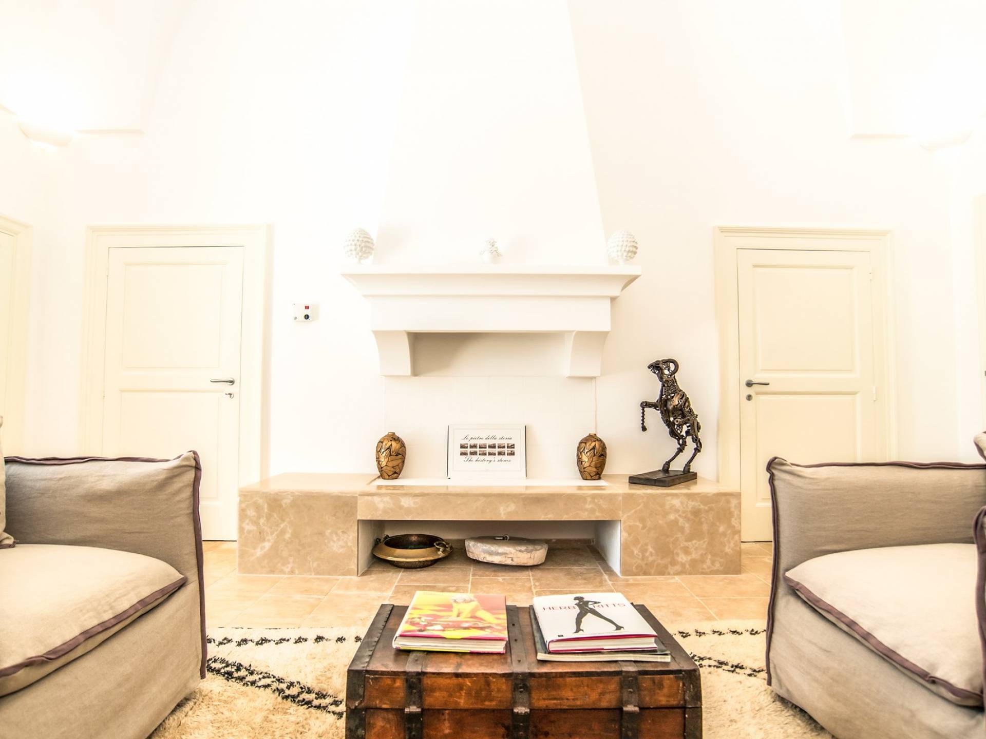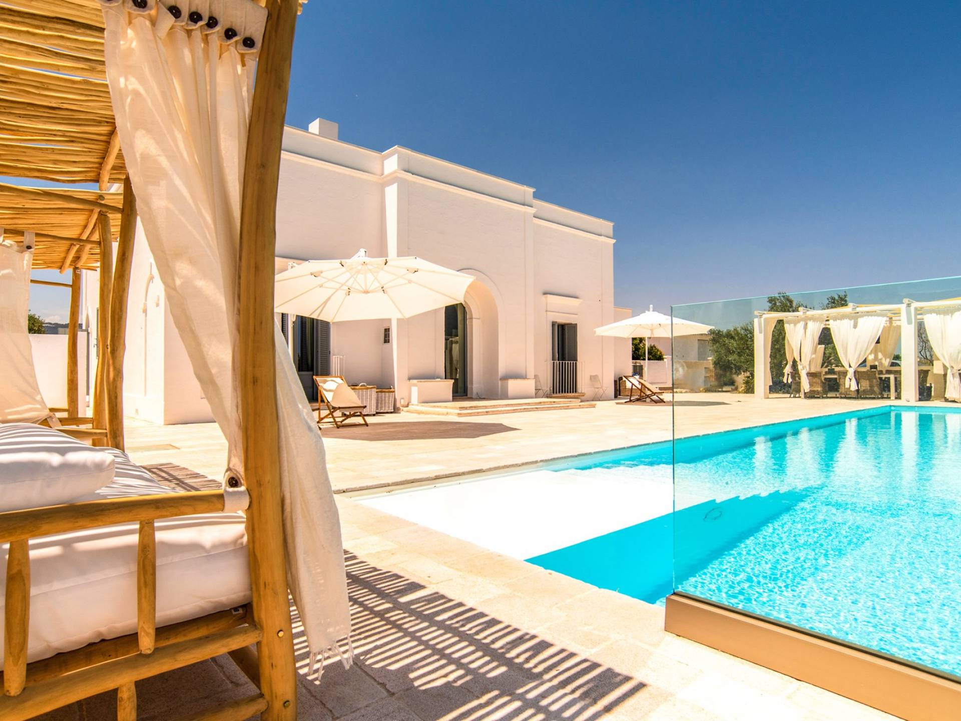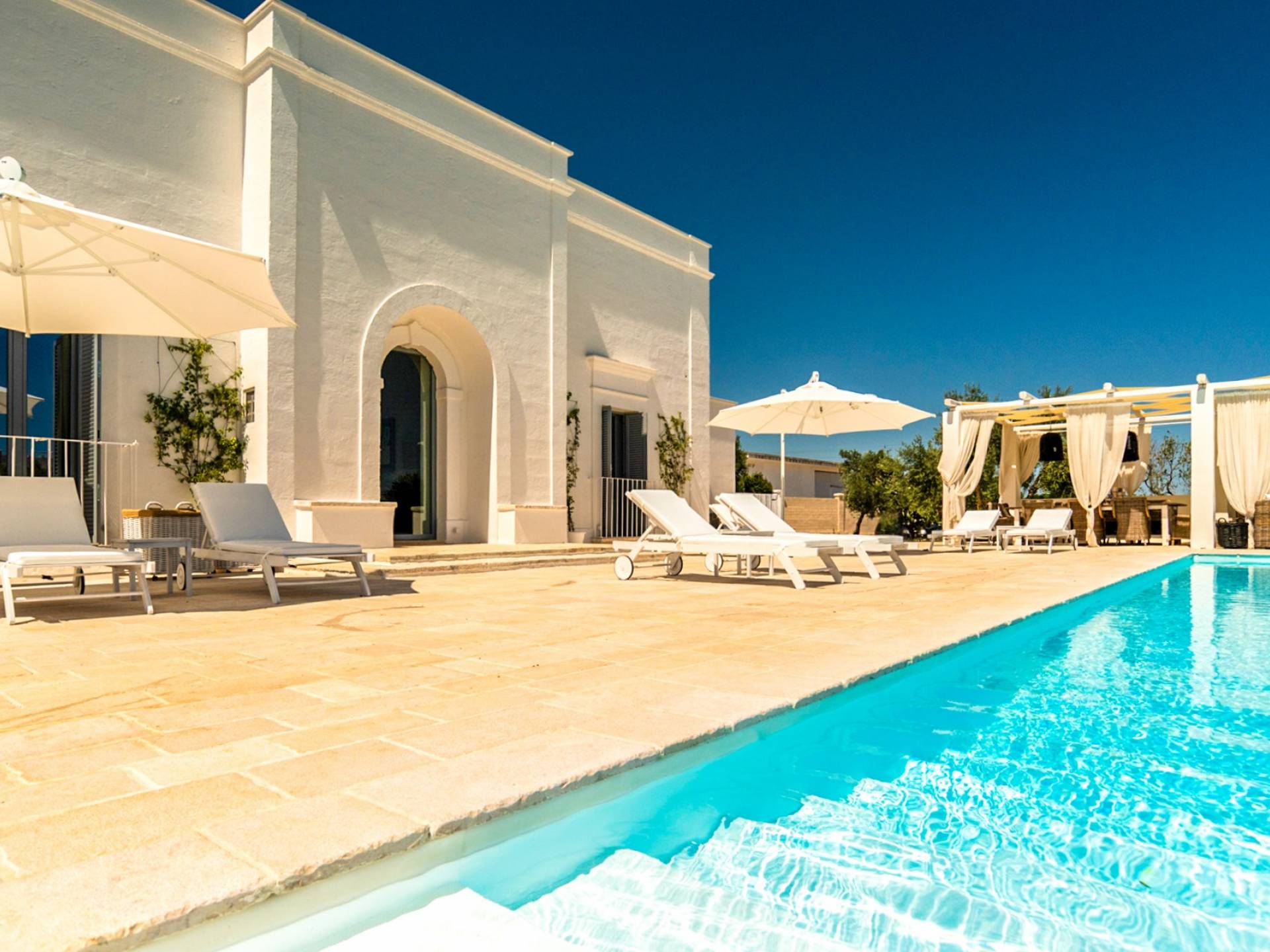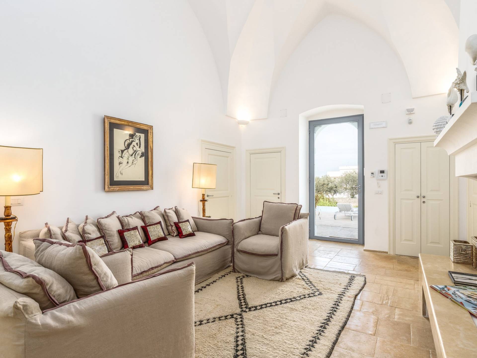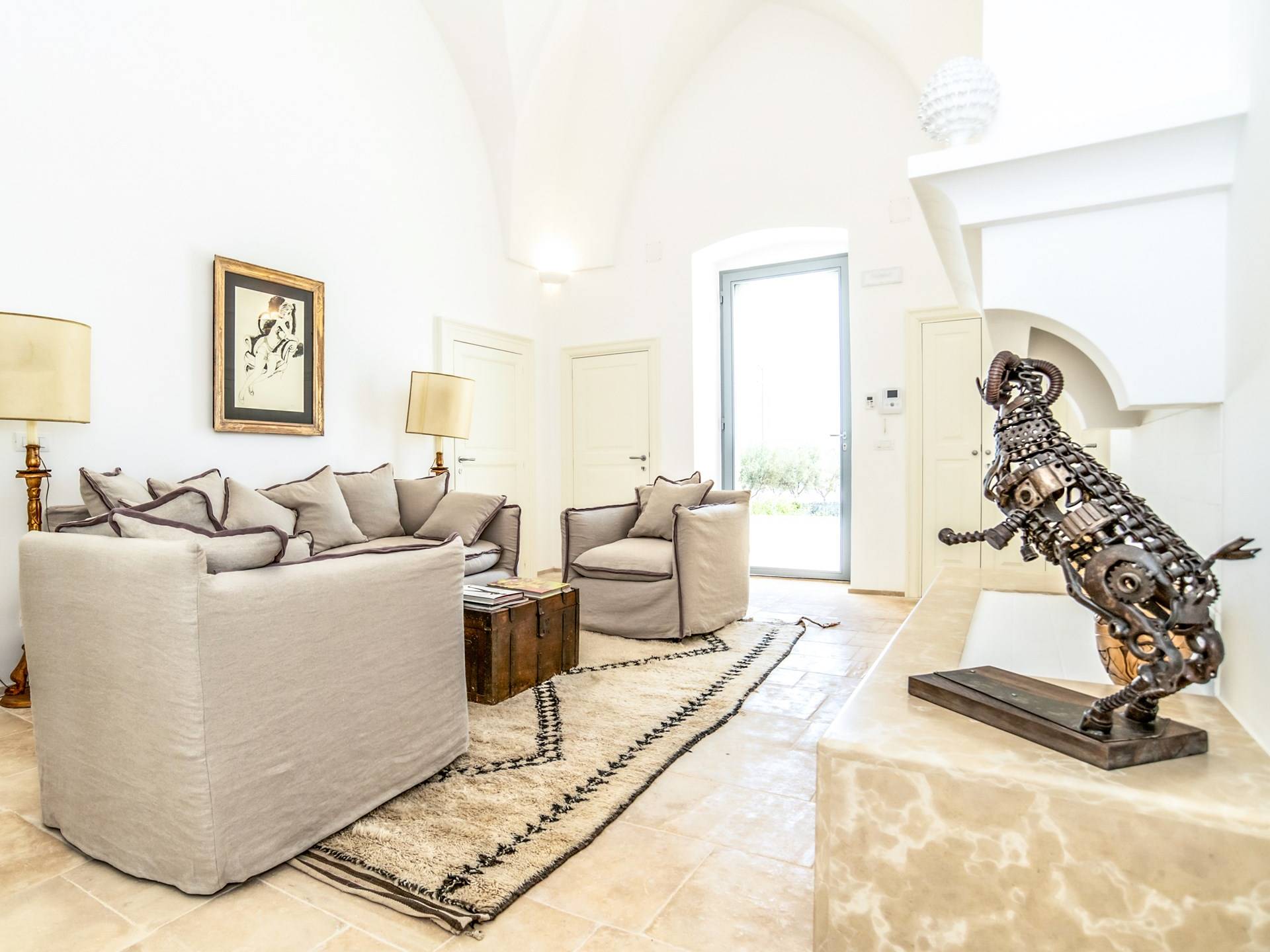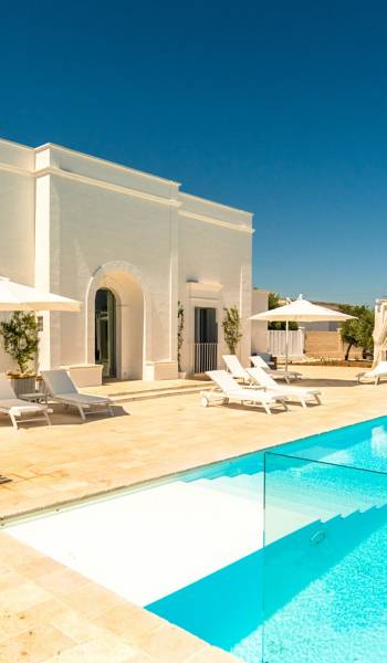 Gli interni comprendono un ampio soggiorno, una zona pranzo e un'area benessere. Sul terreno, c'è una piscina a sfioro, un solarium con sedie e divani per gli ospiti. Vicinissima al centro del paese, la Masseria dispone di cinque camere da letto arredate in stile elegante con pareti laccate in tinte tenui, tessuti contemporanei e arredi su misura di artigiani locali italiani.