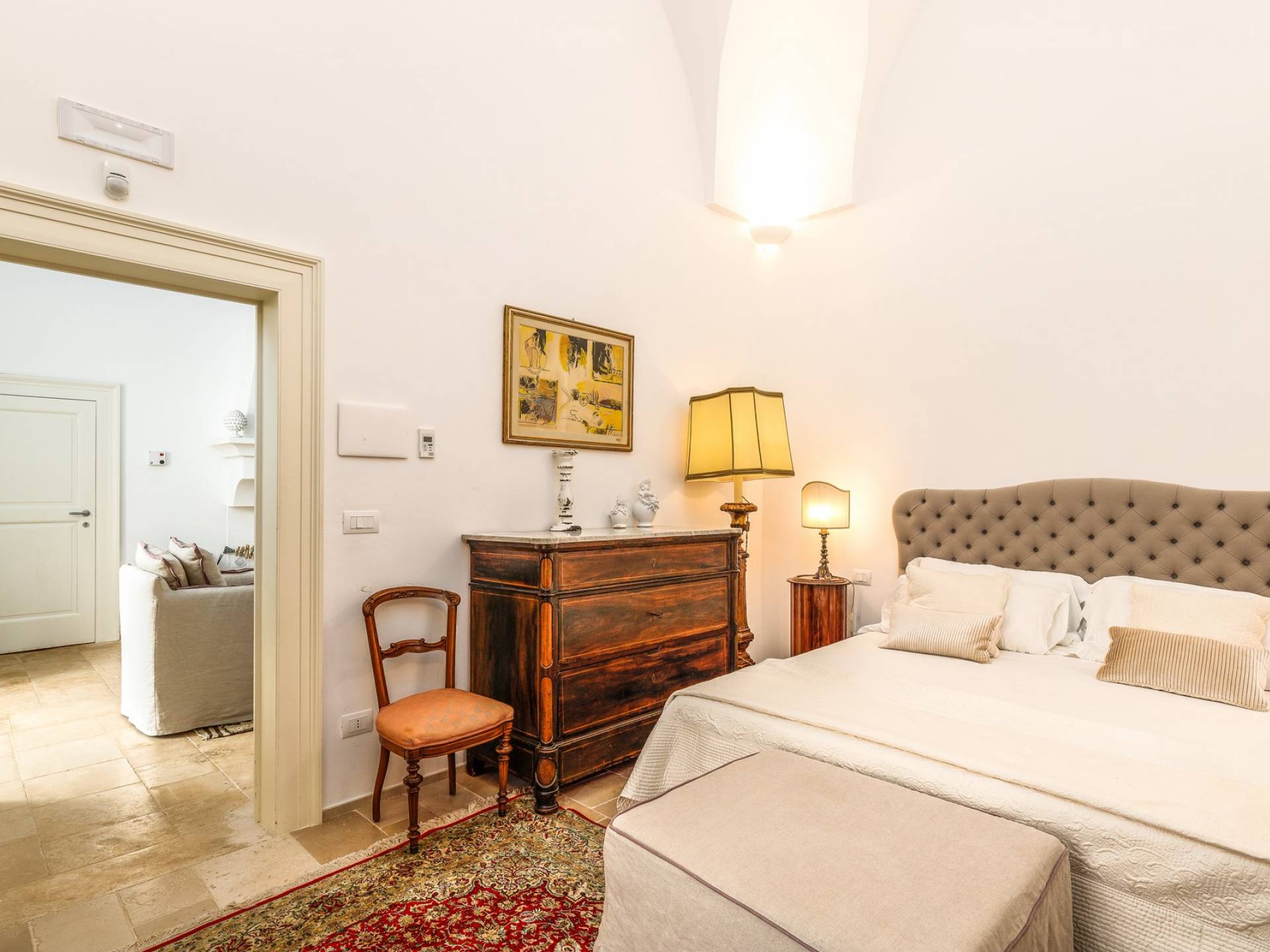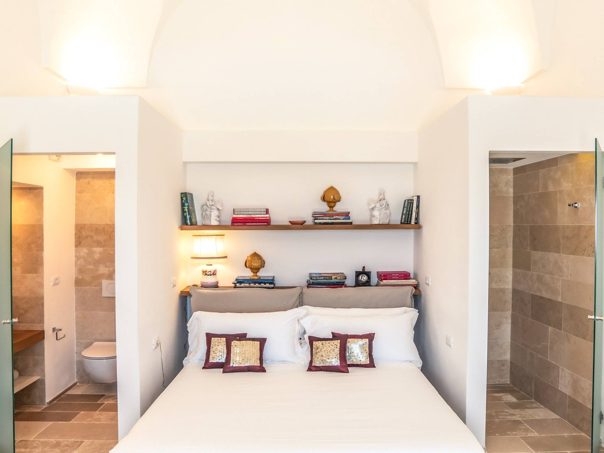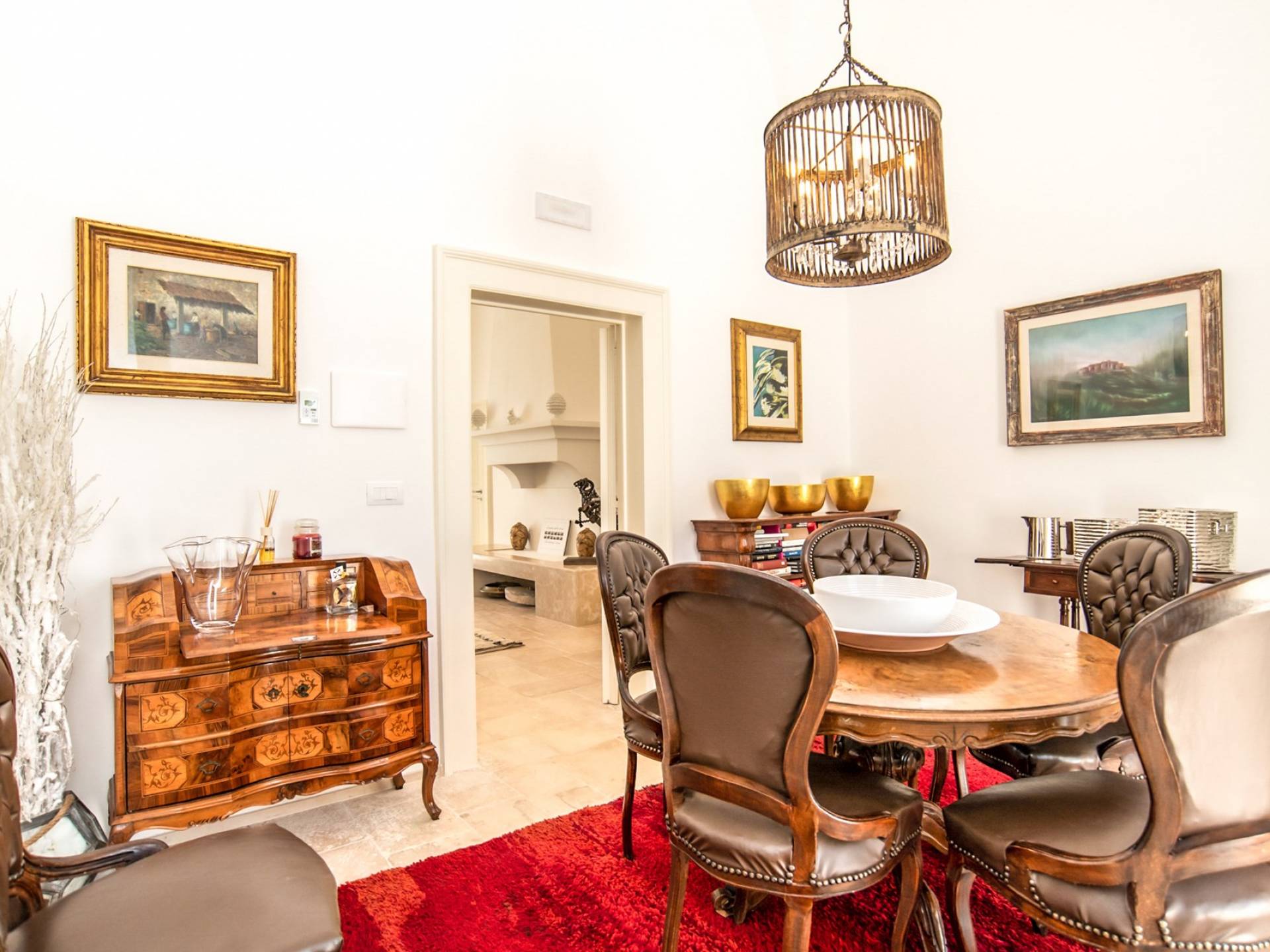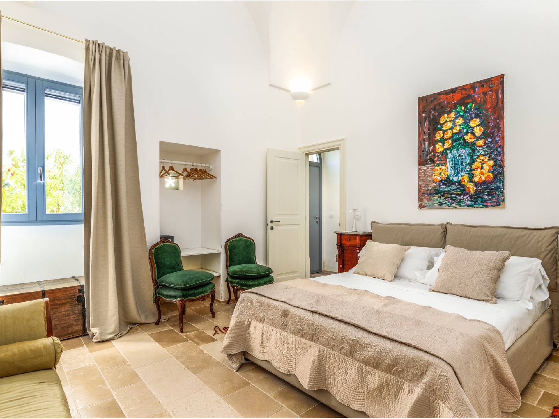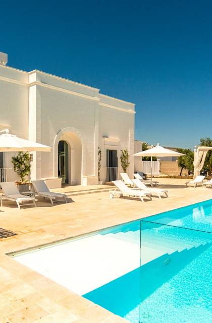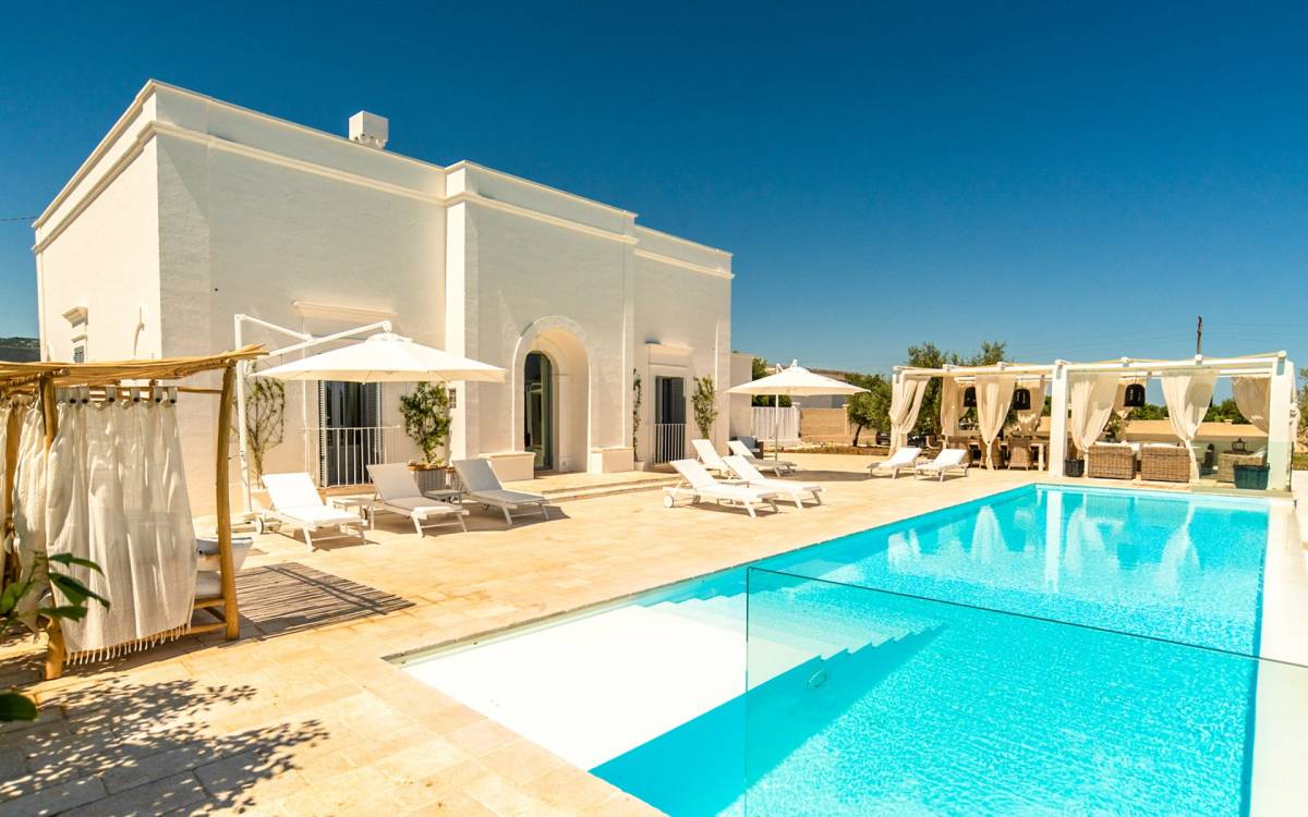 Gli interni comprendono un ampio soggiorno, una zona pranzo e un'area benessere. Sul terreno, c'è una piscina a sfioro, un solarium con sedie e divani per gli ospiti. Vicinissima al centro del paese, la Masseria dispone di cinque camere da letto arredate in stile elegante con pareti laccate in tinte tenui, tessuti contemporanei e arredi su misura di artigiani locali italiani.