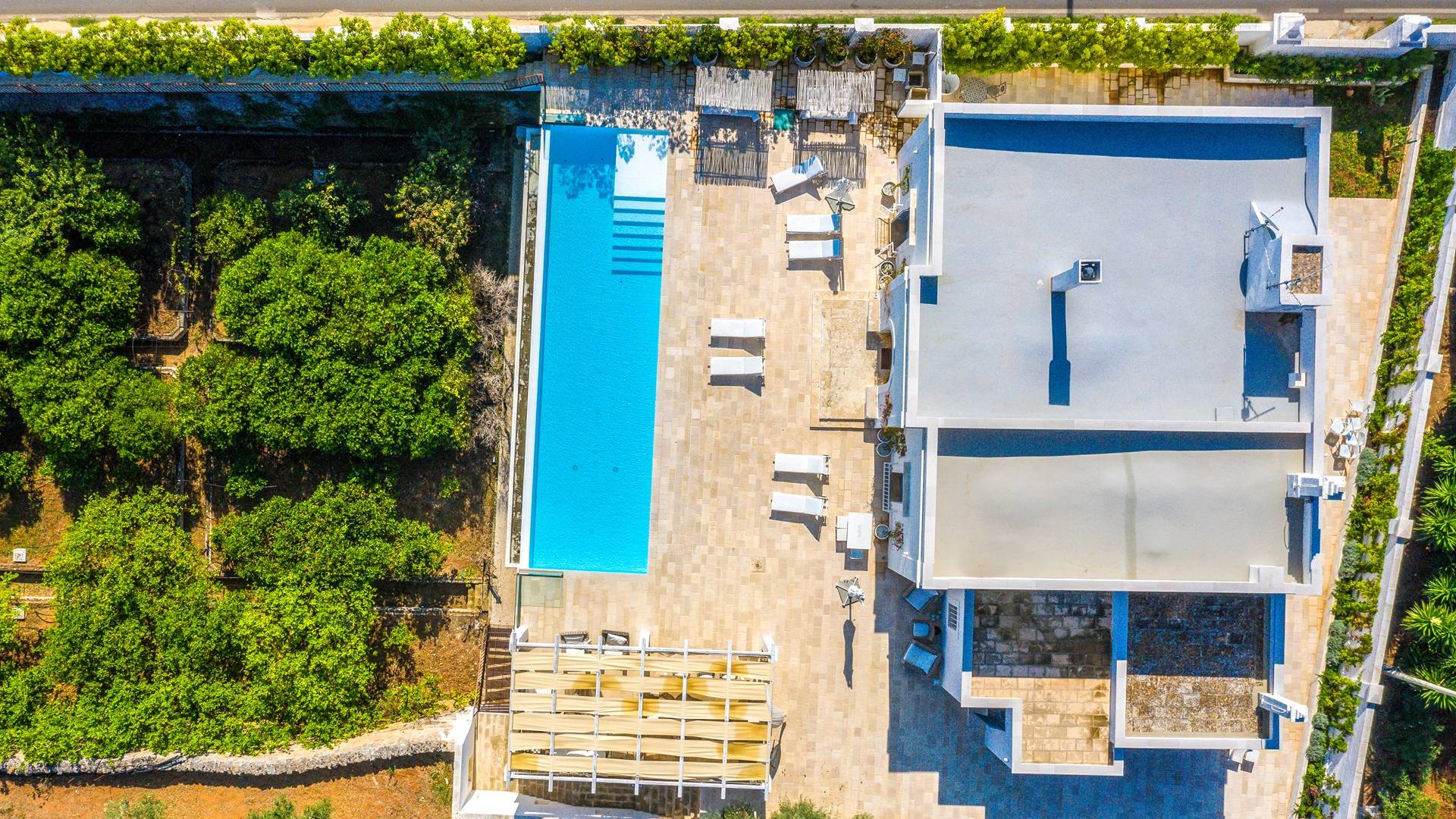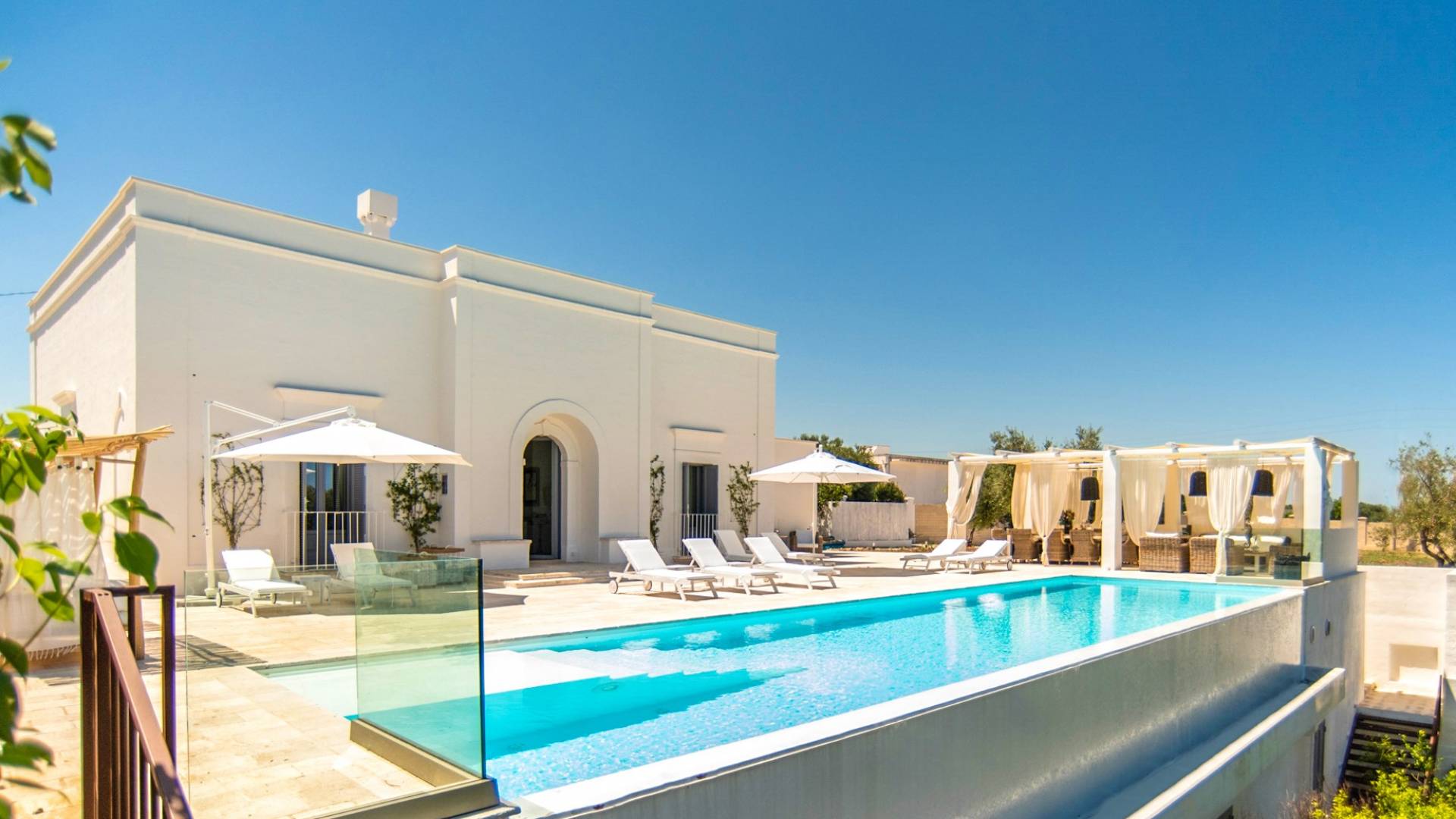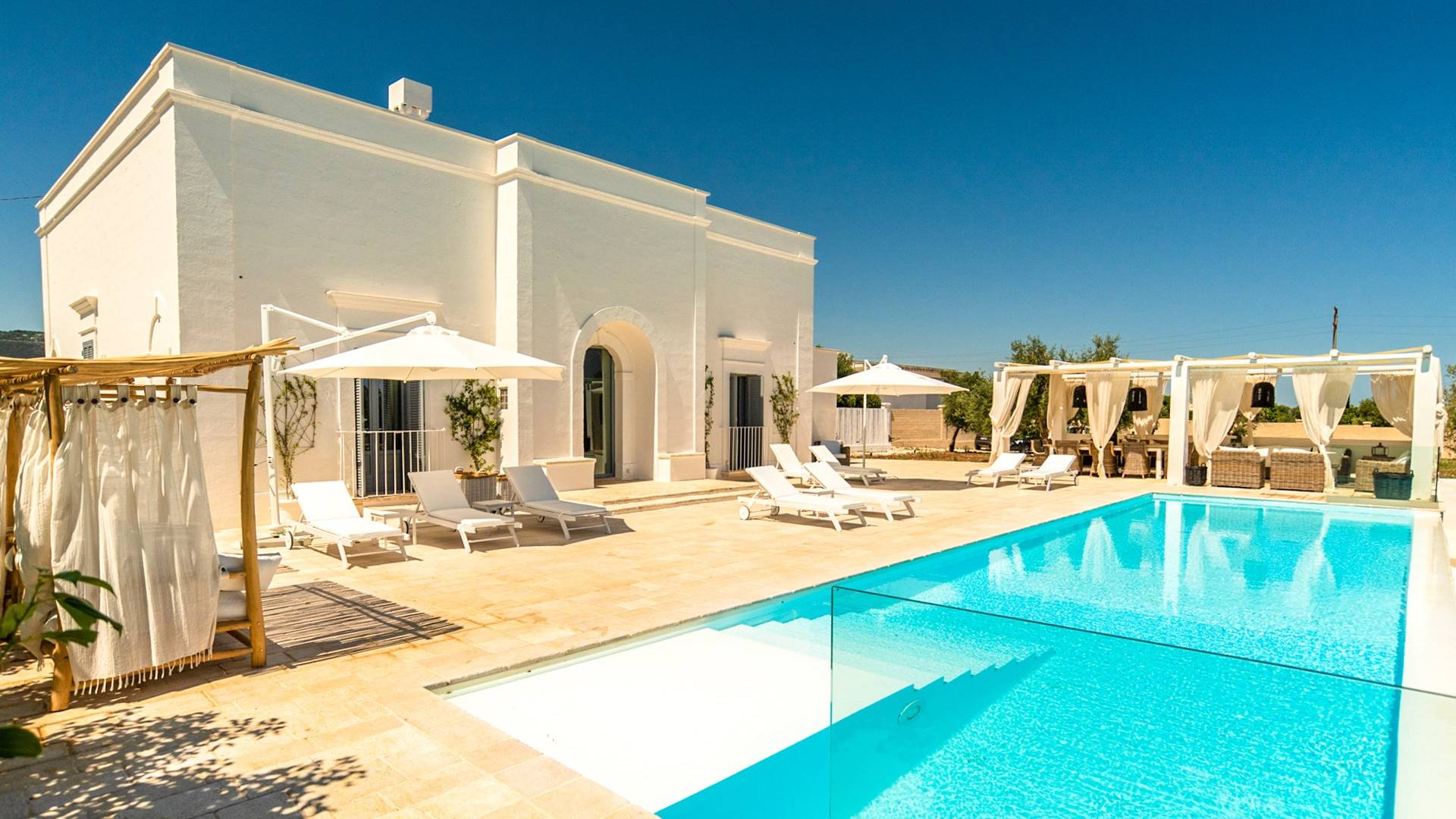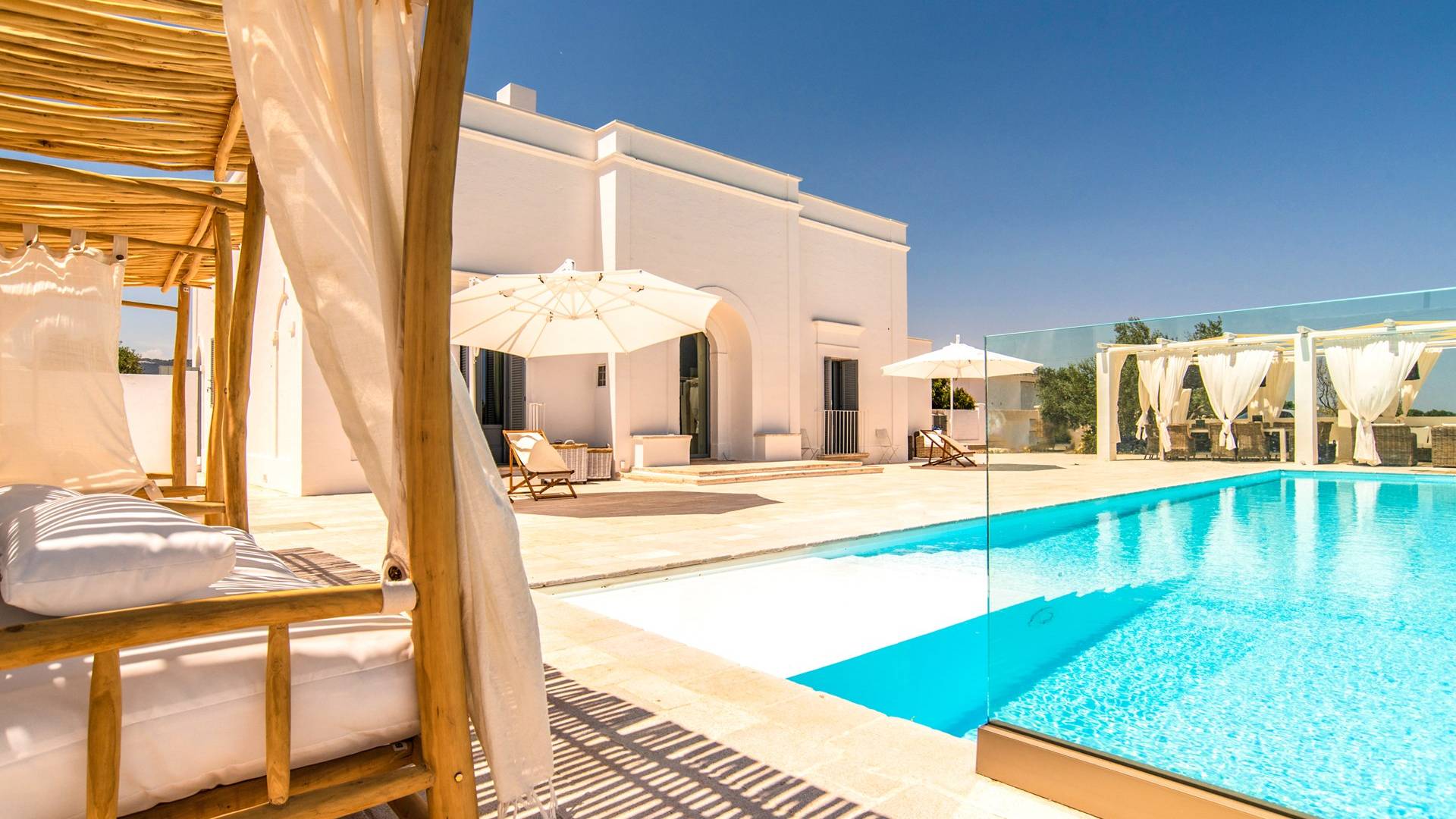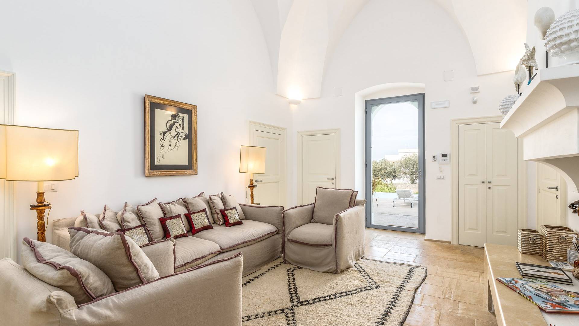 Gli interni comprendono un ampio soggiorno, una zona pranzo e un'area benessere. Sul terreno, c'è una piscina a sfioro, un solarium con sedie e divani per gli ospiti. Vicinissima al centro del paese, la Masseria dispone di cinque camere da letto arredate in stile elegante con pareti laccate in tinte tenui, tessuti contemporanei e arredi su misura di artigiani locali italiani.