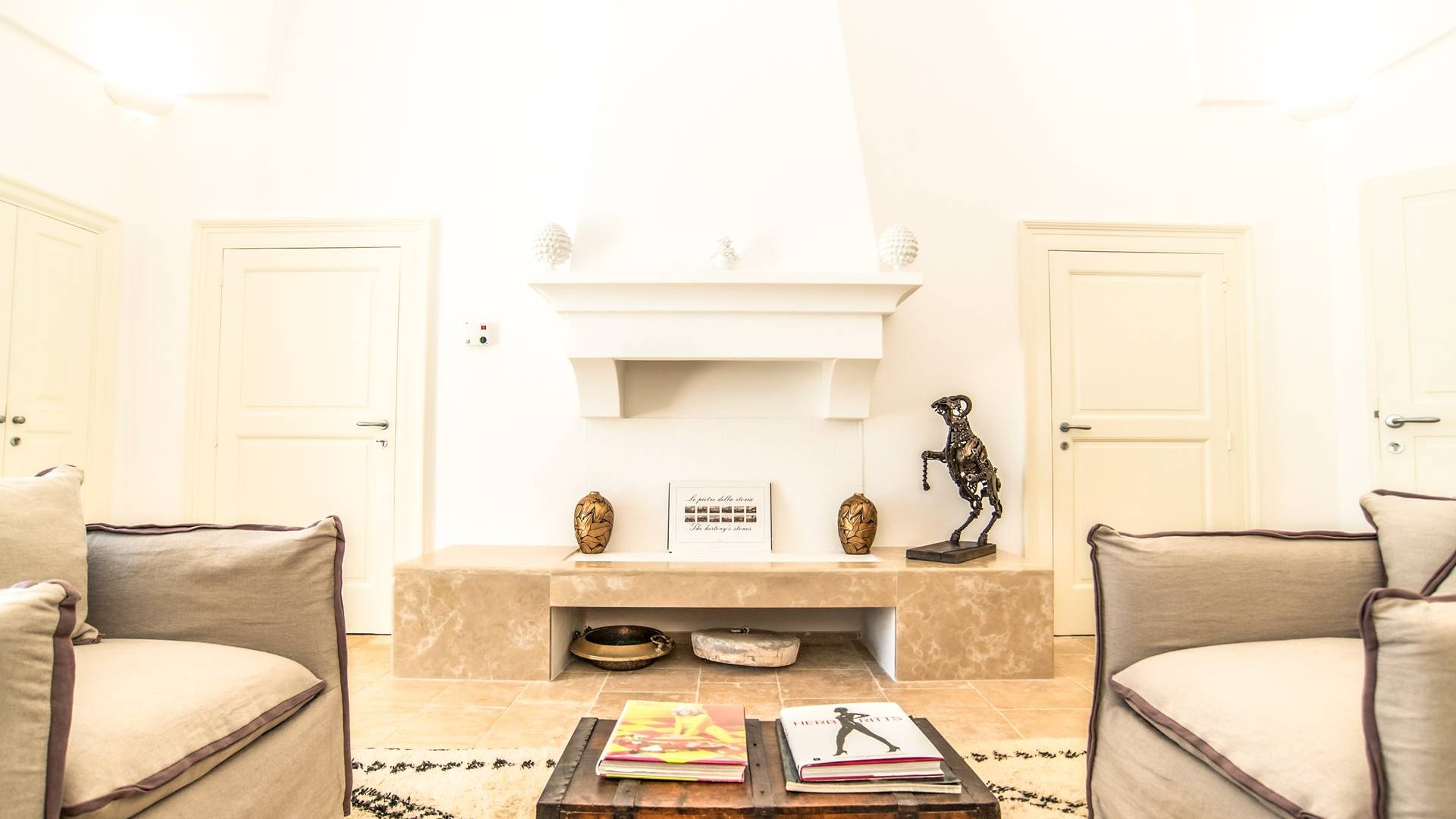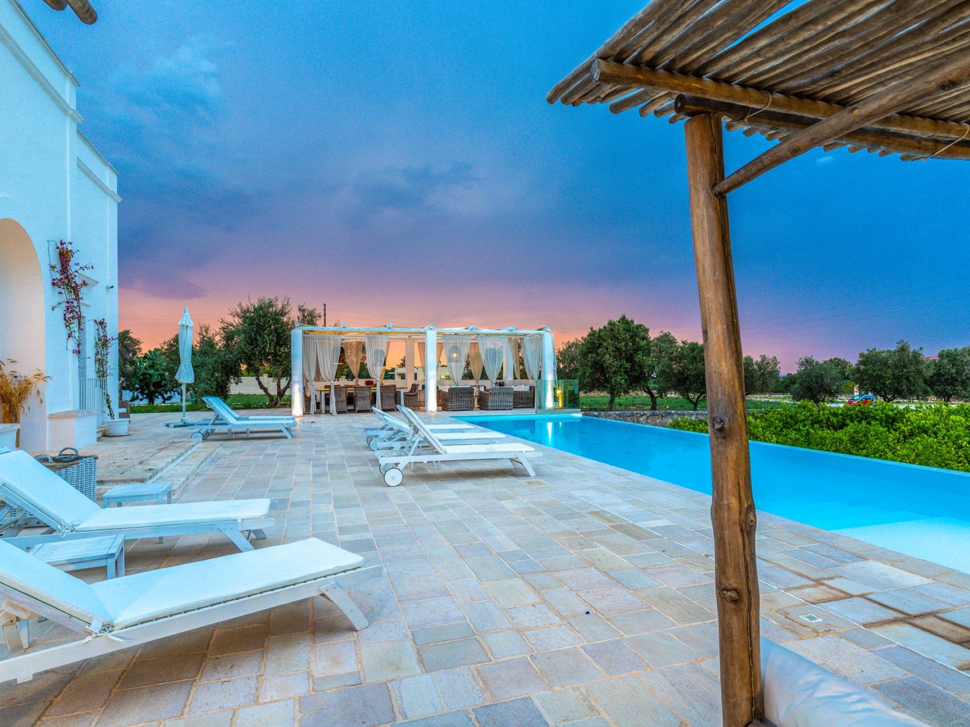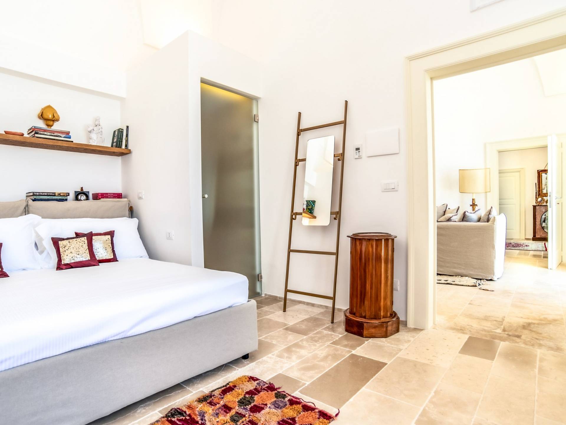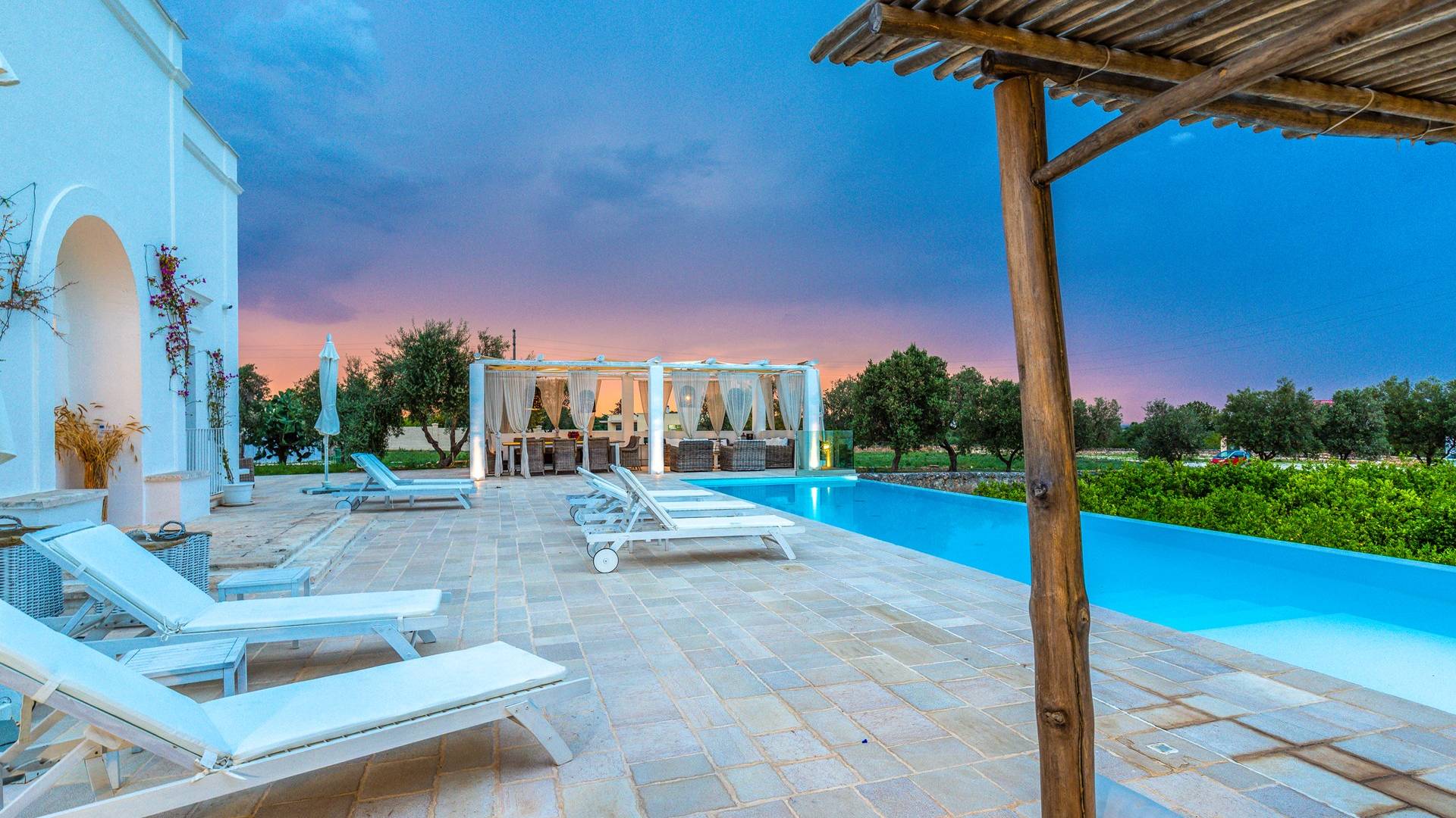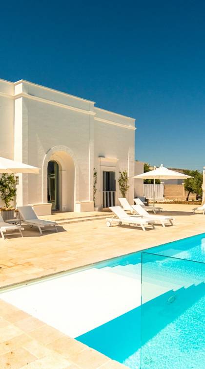 Gli interni comprendono un ampio soggiorno, una zona pranzo e un'area benessere. Sul terreno, c'è una piscina a sfioro, un solarium con sedie e divani per gli ospiti. Vicinissima al centro del paese, la Masseria dispone di cinque camere da letto arredate in stile elegante con pareti laccate in tinte tenui, tessuti contemporanei e arredi su misura di artigiani locali italiani.