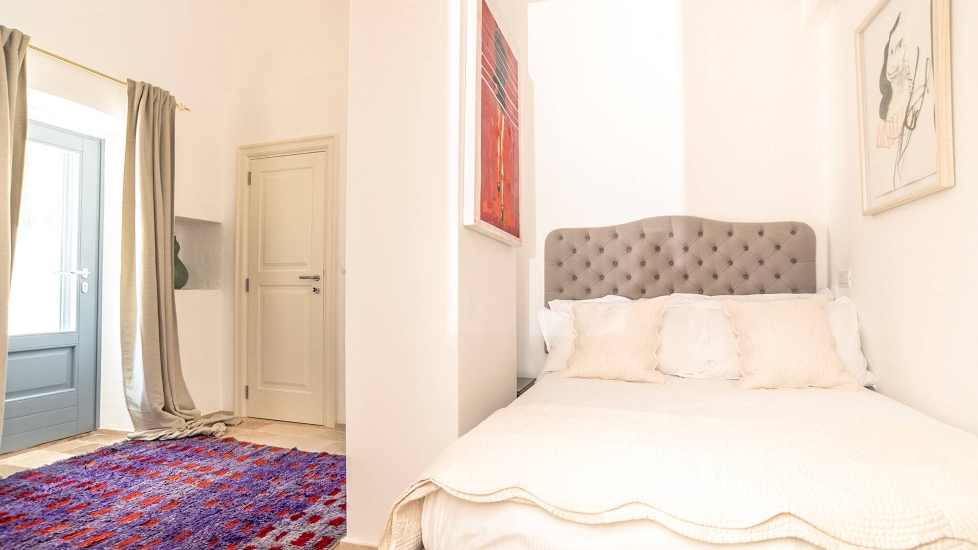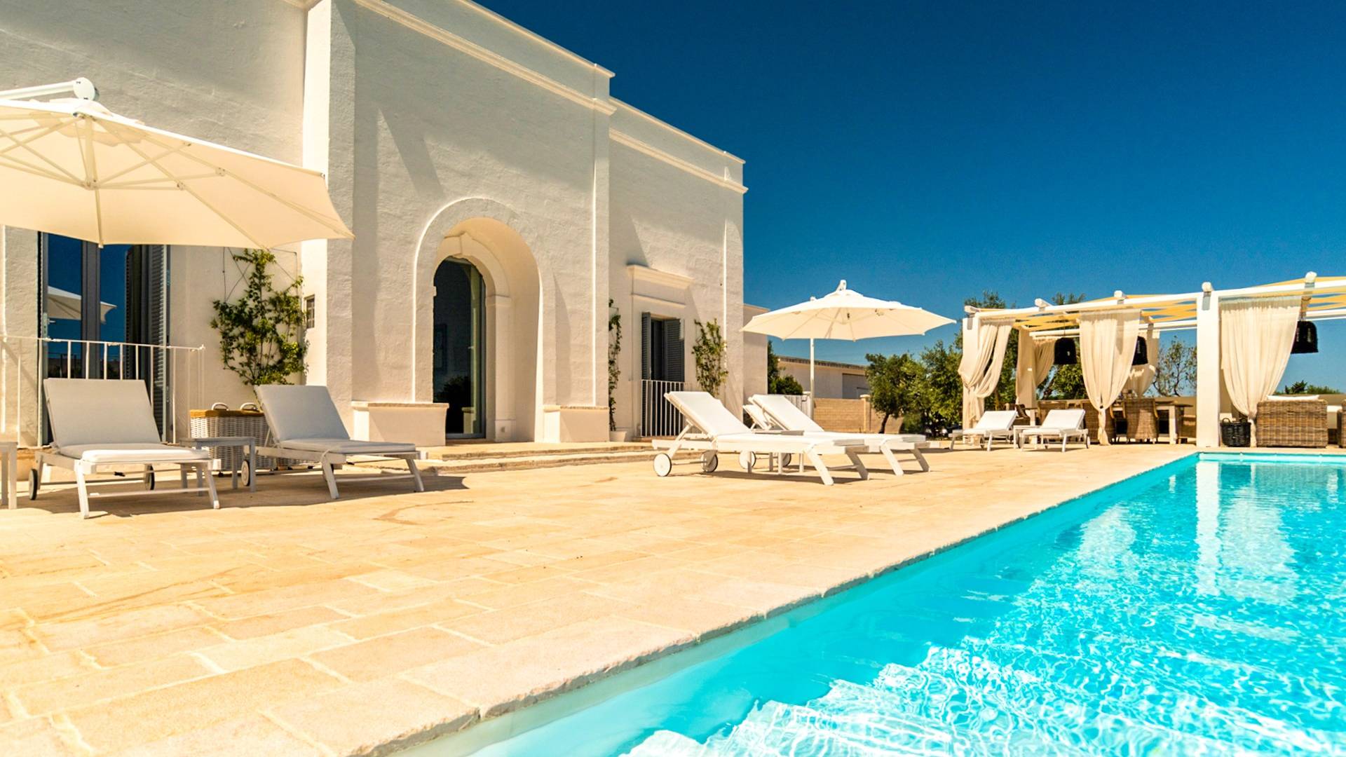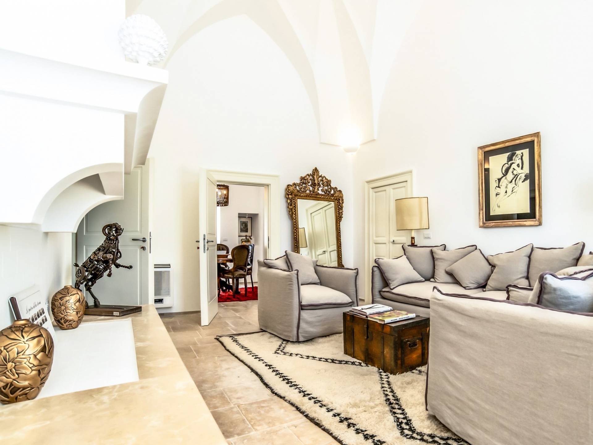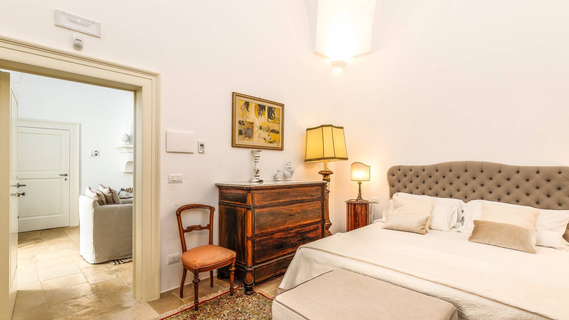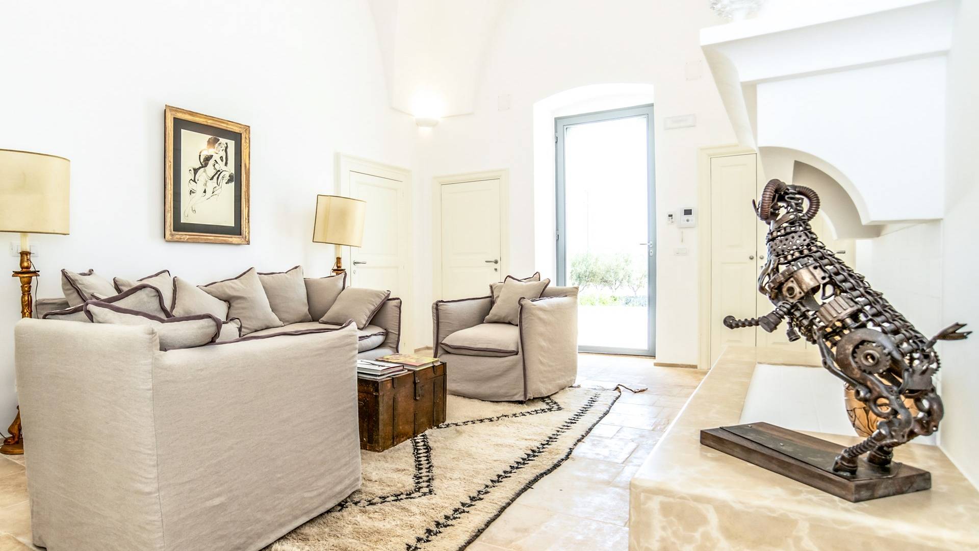 Gli interni comprendono un ampio soggiorno, una zona pranzo e un'area benessere. Sul terreno, c'è una piscina a sfioro, un solarium con sedie e divani per gli ospiti. Vicinissima al centro del paese, la Masseria dispone di cinque camere da letto arredate in stile elegante con pareti laccate in tinte tenui, tessuti contemporanei e arredi su misura di artigiani locali italiani.