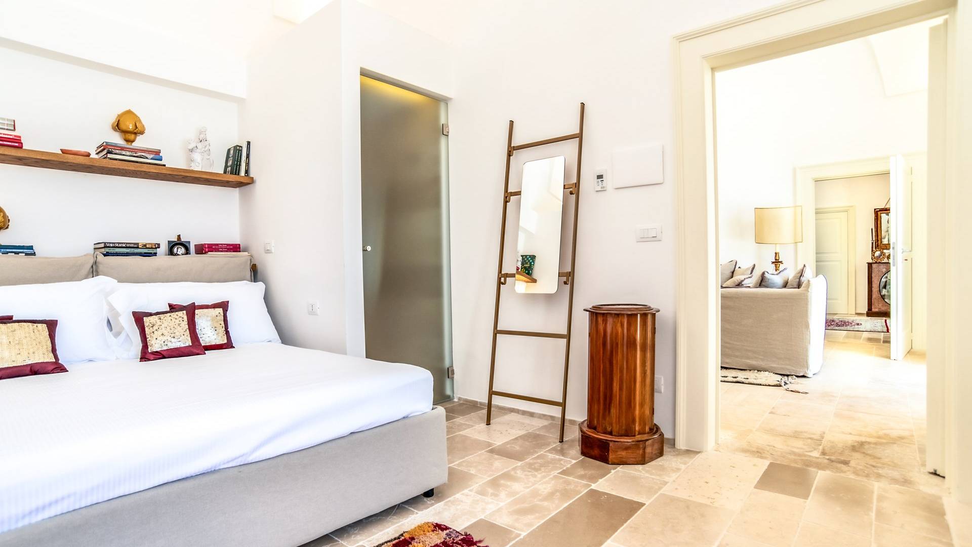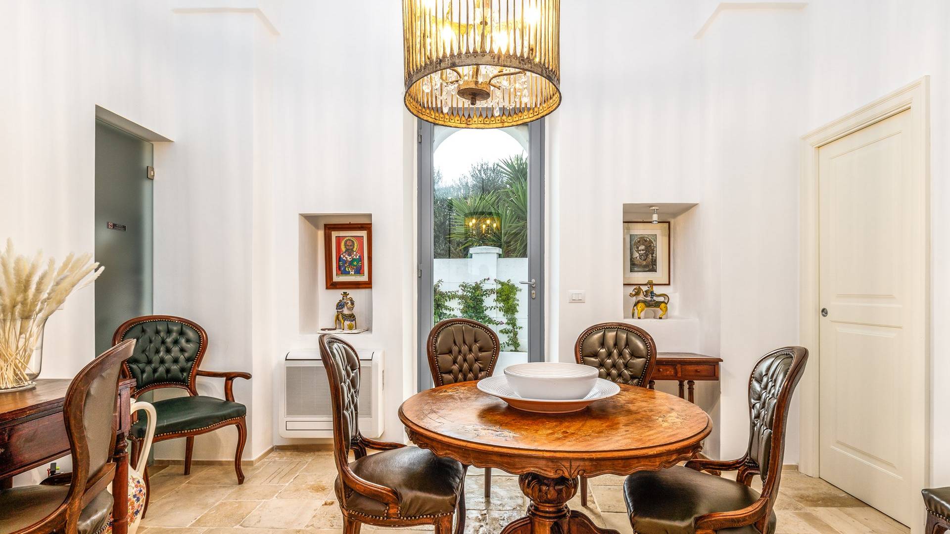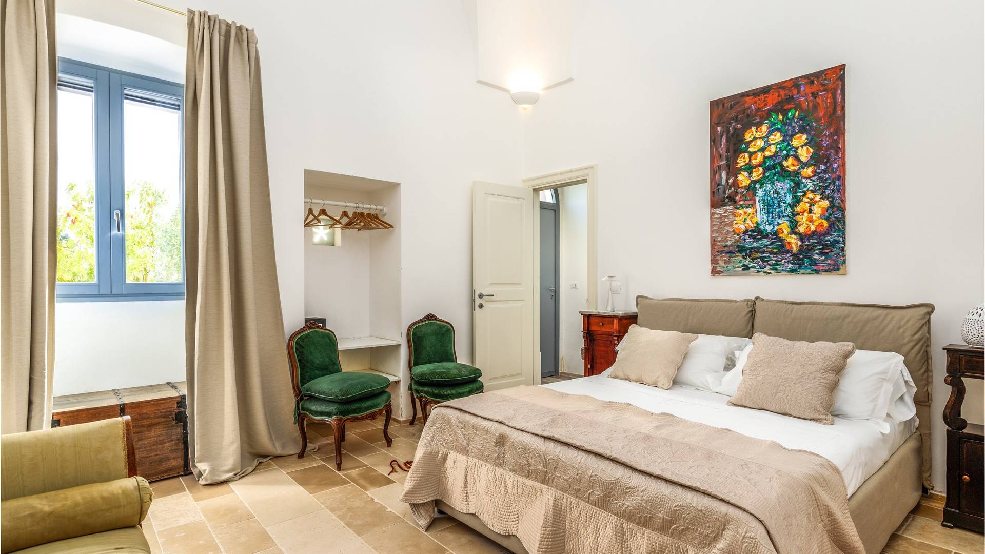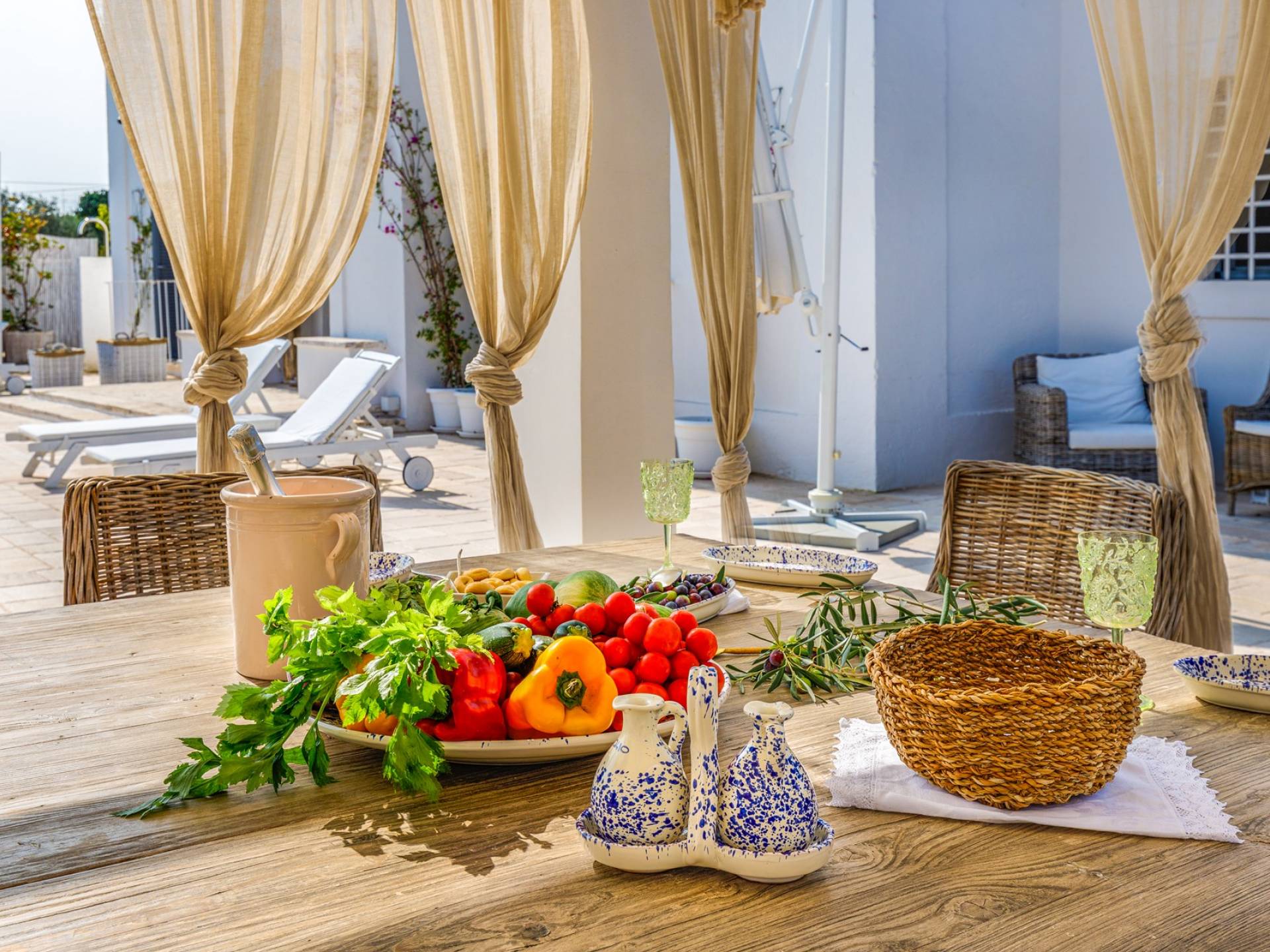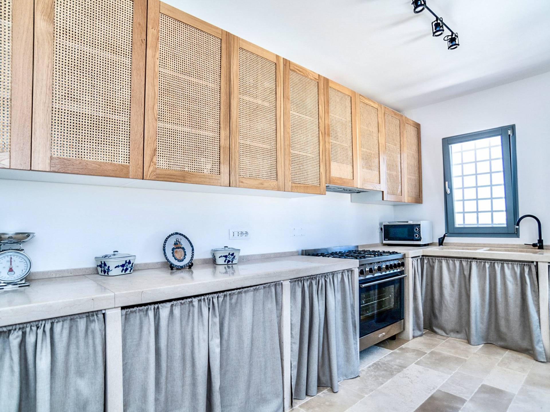 Gli interni comprendono un ampio soggiorno, una zona pranzo e un'area benessere. Sul terreno, c'è una piscina a sfioro, un solarium con sedie e divani per gli ospiti. Vicinissima al centro del paese, la Masseria dispone di cinque camere da letto arredate in stile elegante con pareti laccate in tinte tenui, tessuti contemporanei e arredi su misura di artigiani locali italiani.