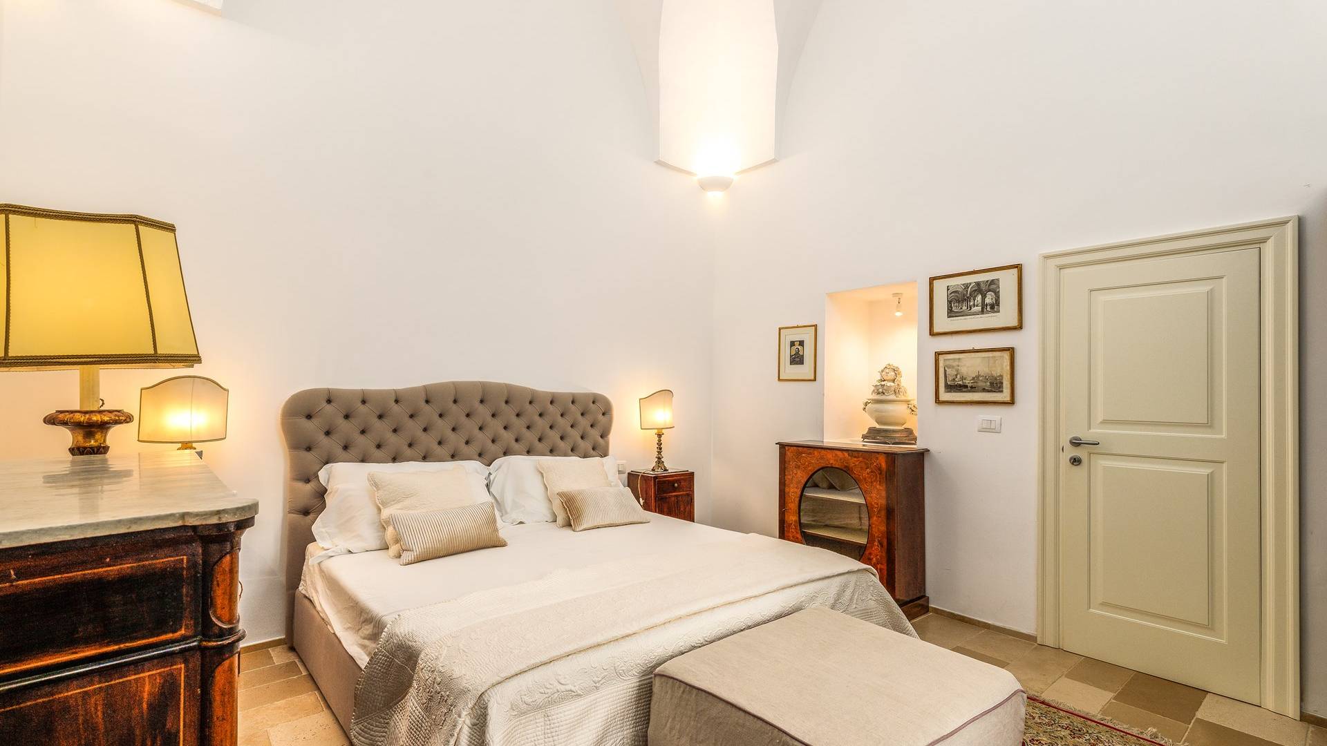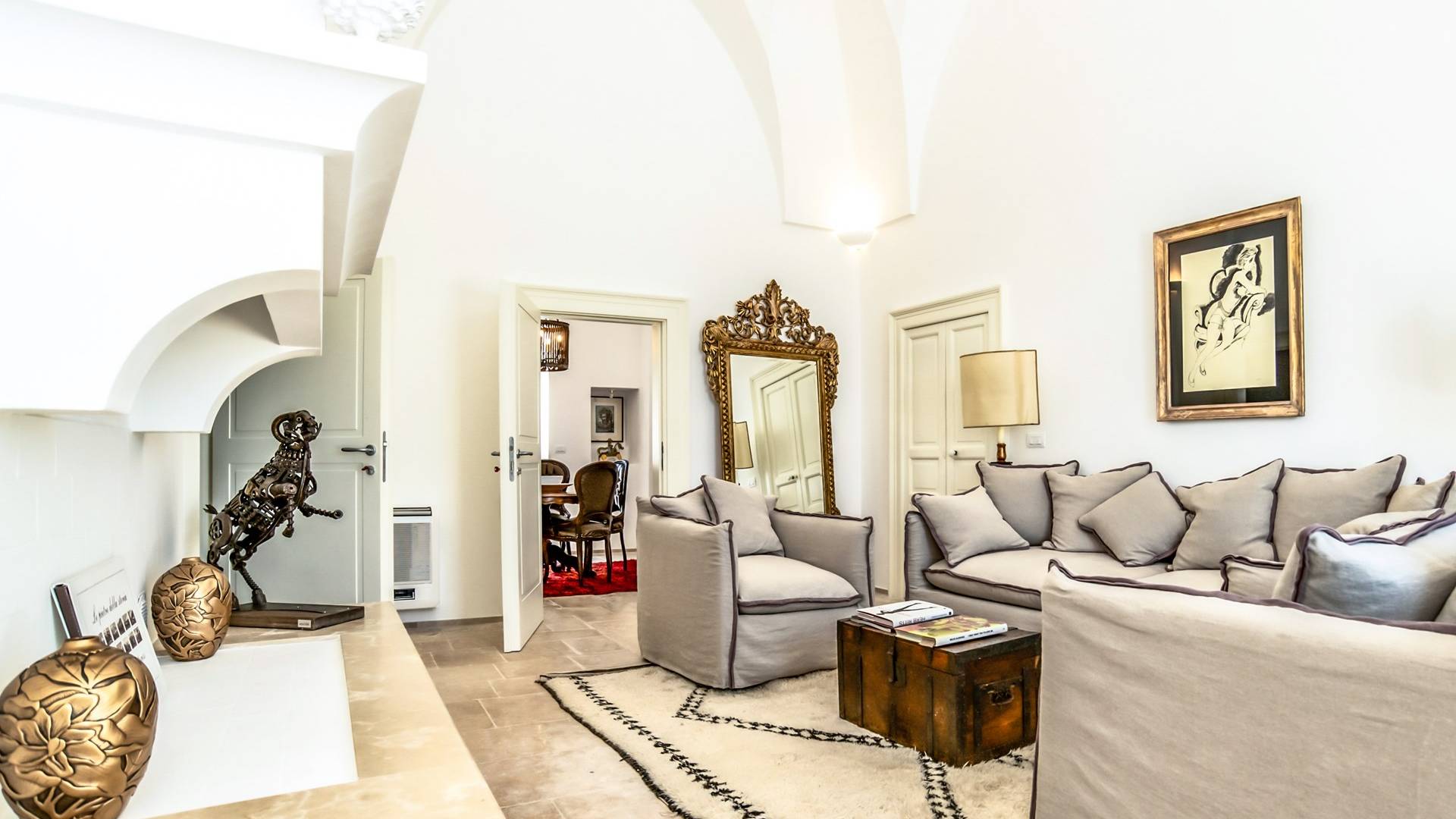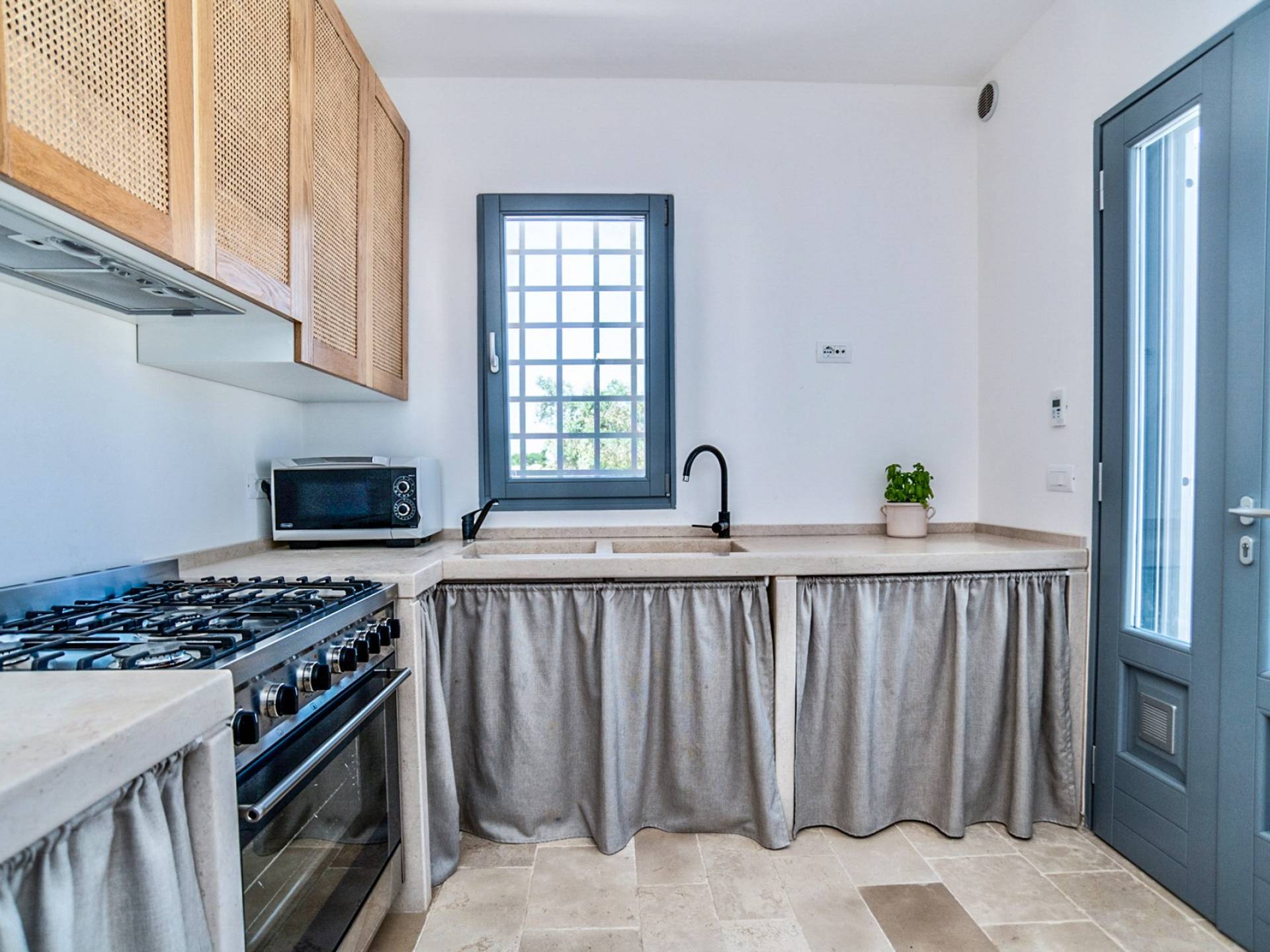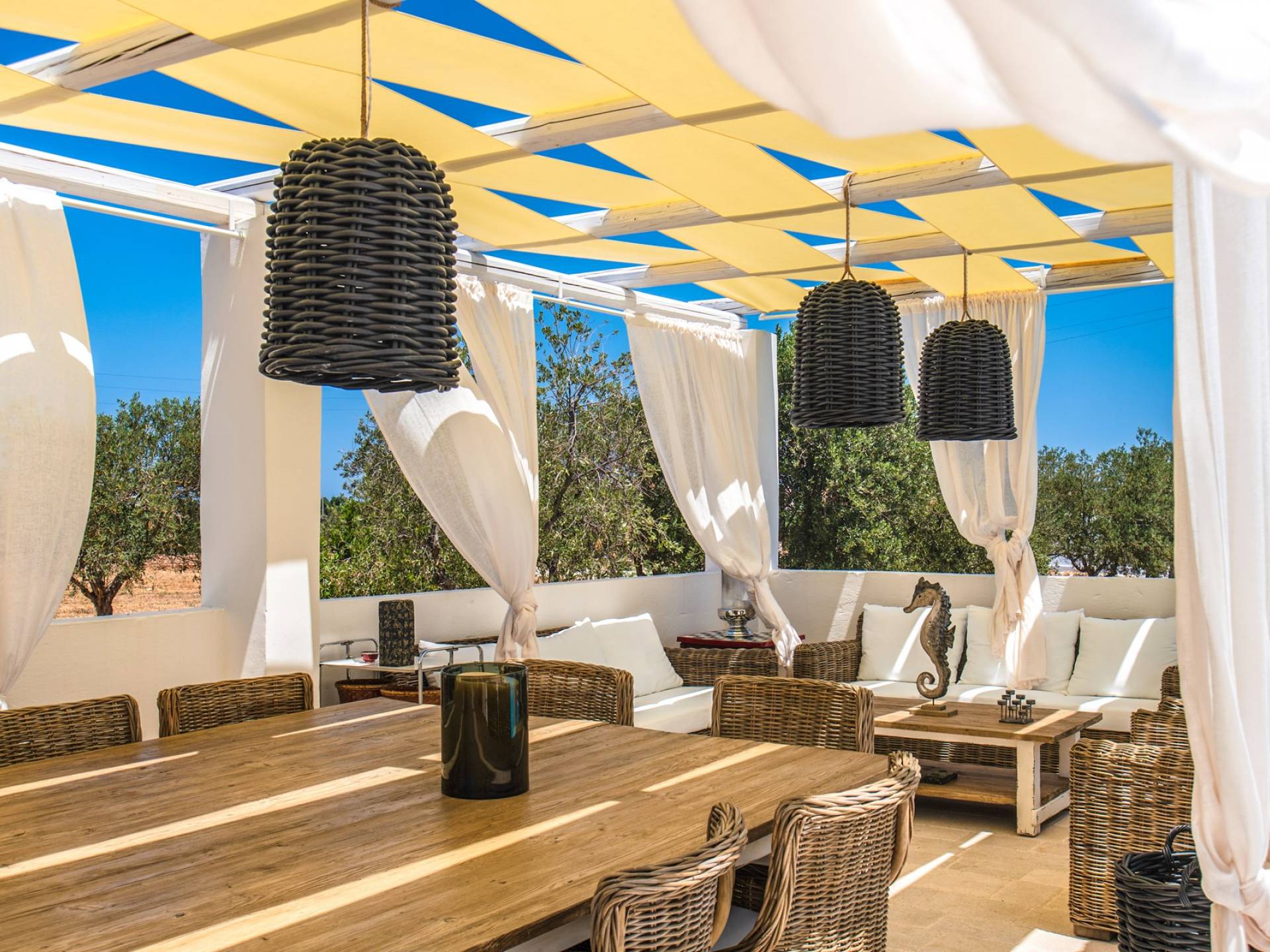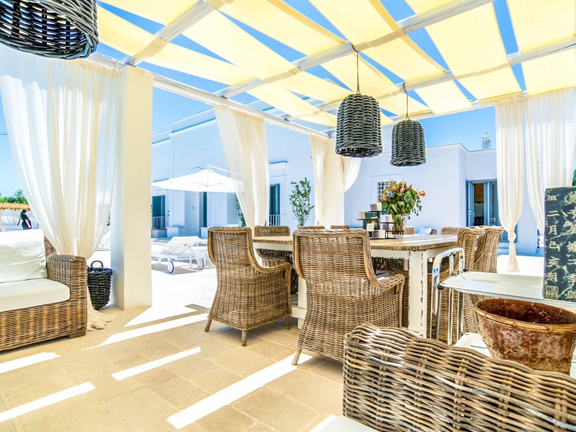 Gli interni comprendono un ampio soggiorno, una zona pranzo e un'area benessere. Sul terreno, c'è una piscina a sfioro, un solarium con sedie e divani per gli ospiti. Vicinissima al centro del paese, la Masseria dispone di cinque camere da letto arredate in stile elegante con pareti laccate in tinte tenui, tessuti contemporanei e arredi su misura di artigiani locali italiani.