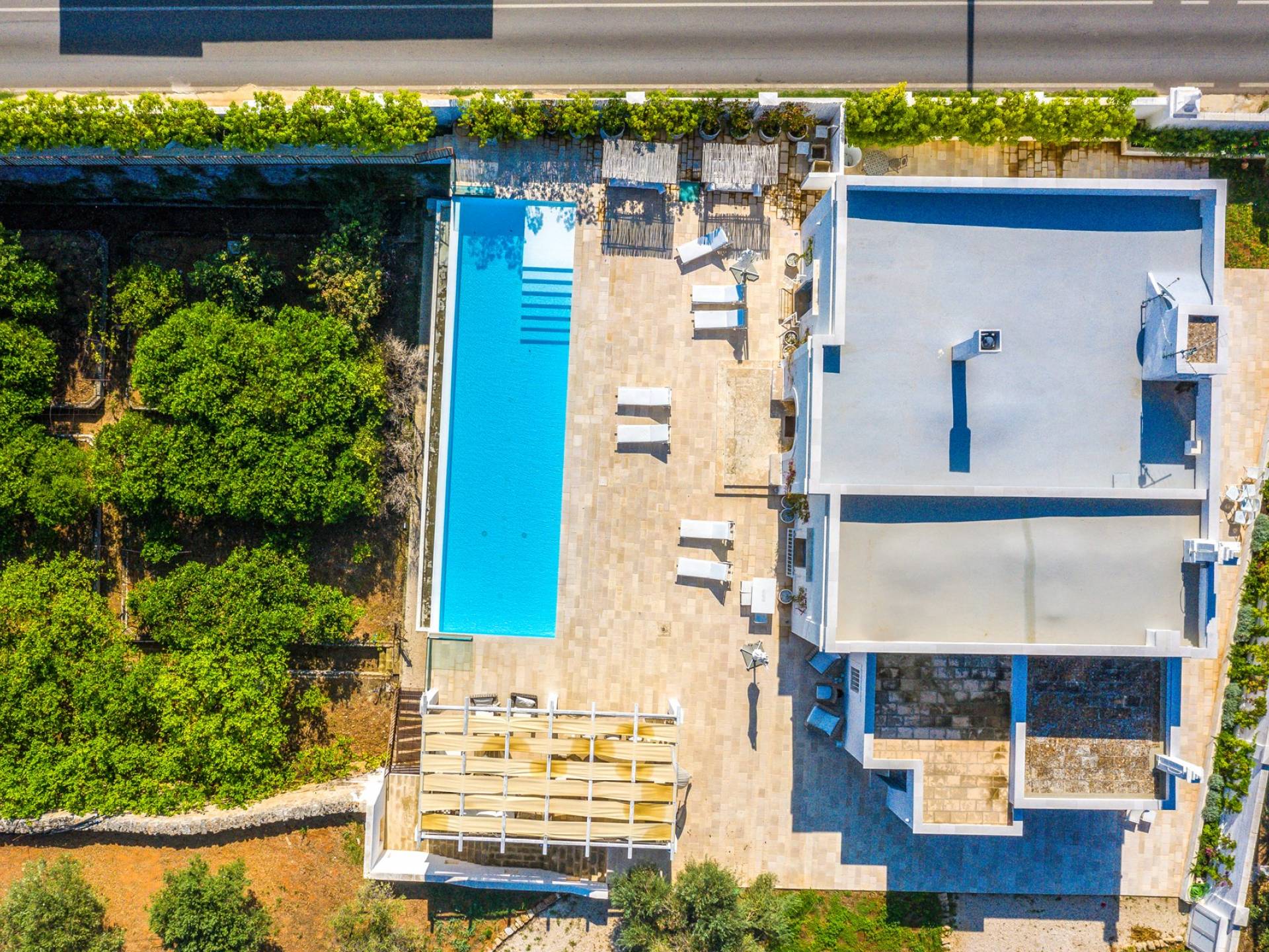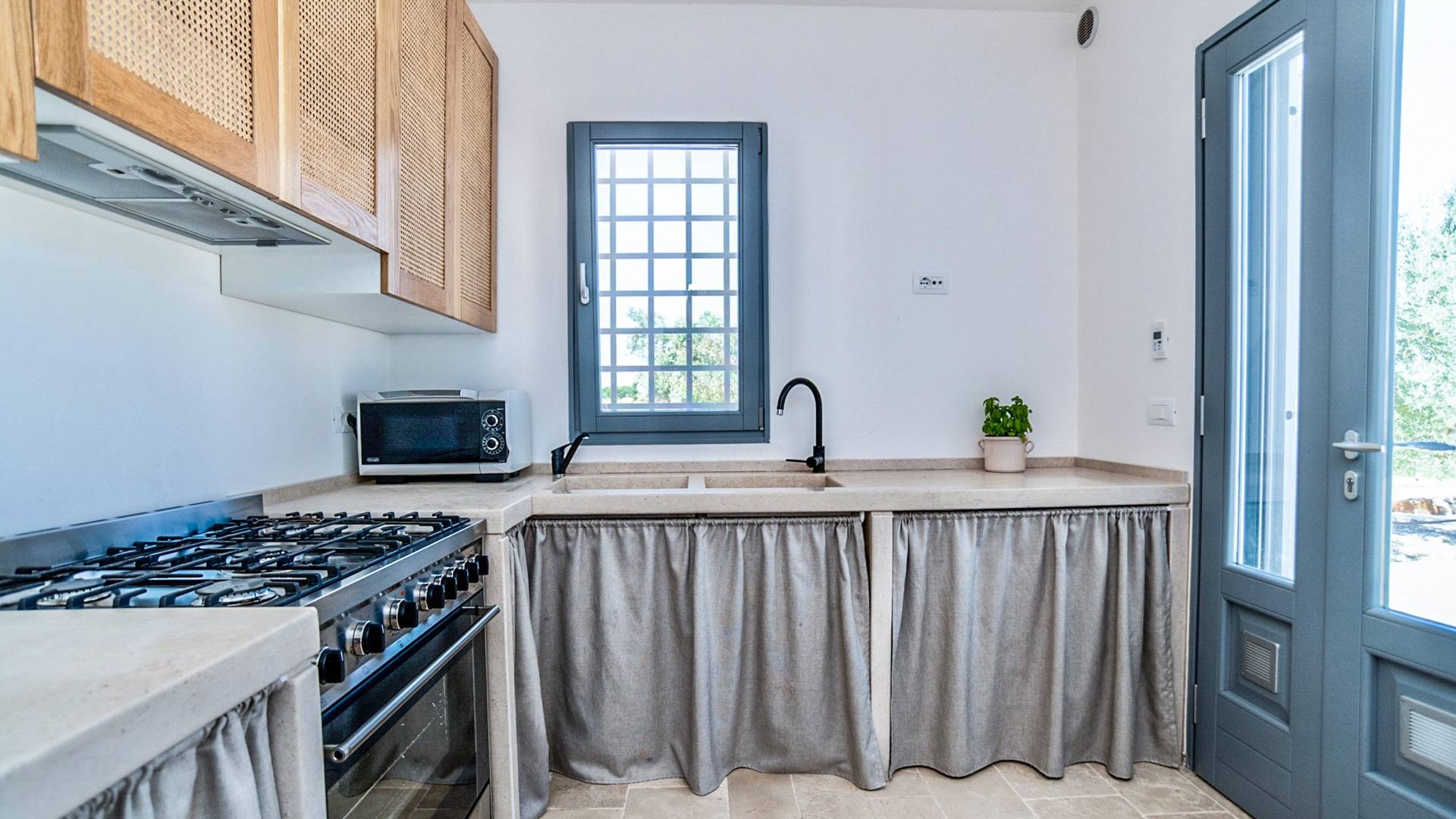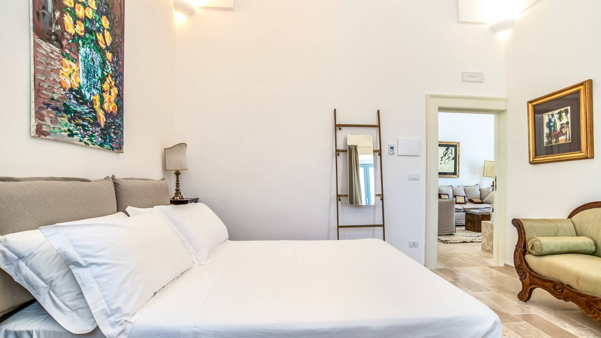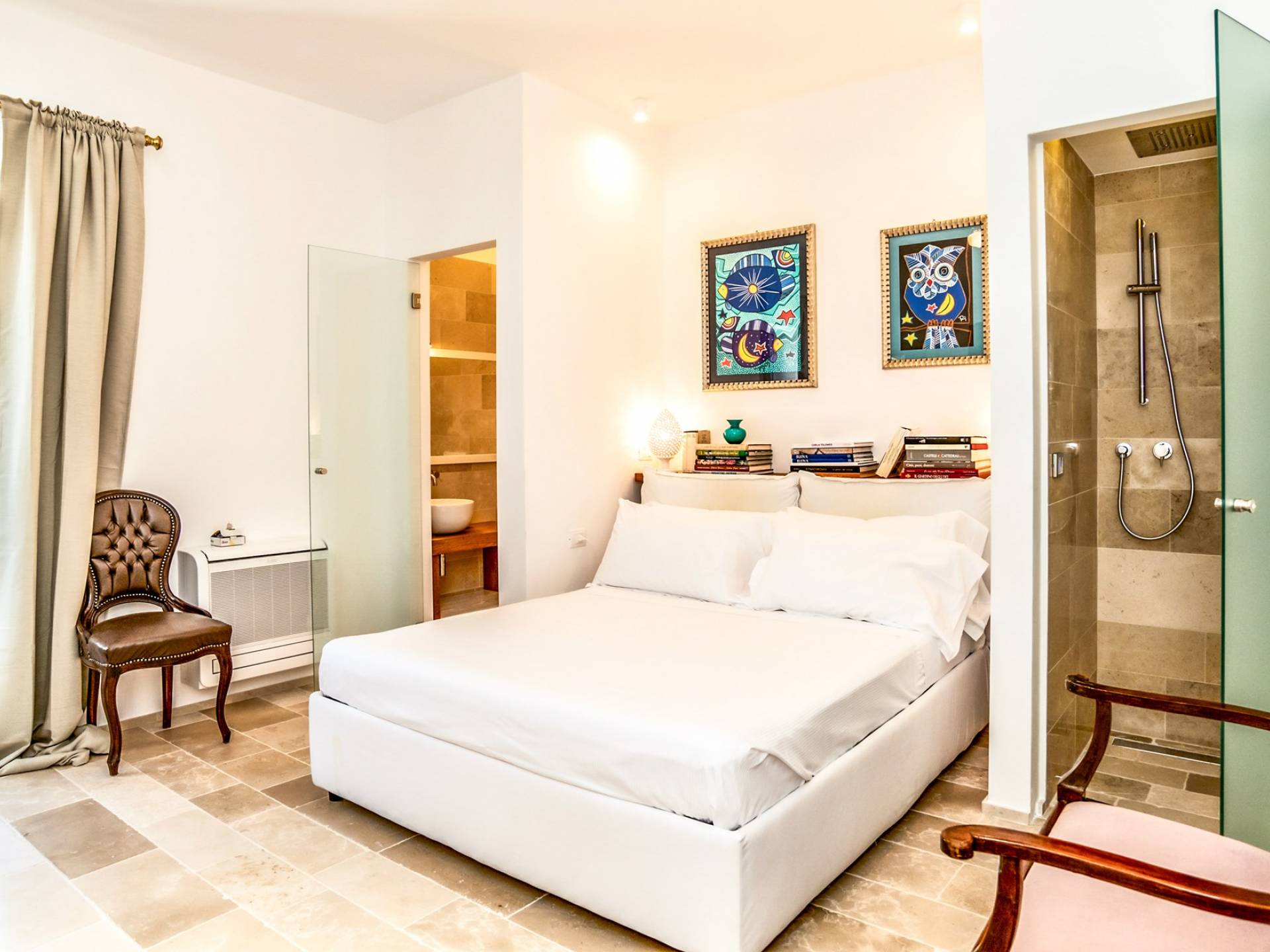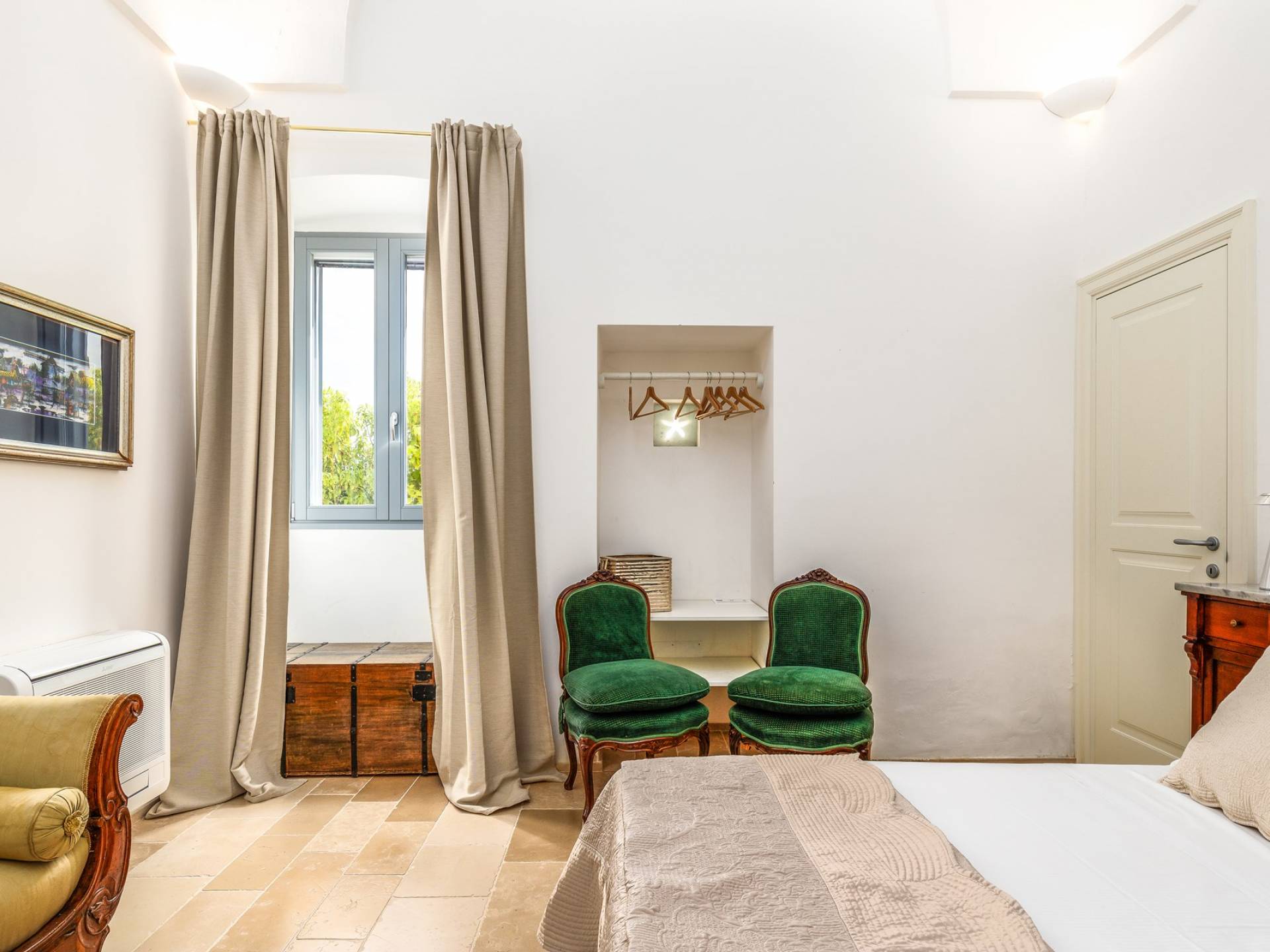 Gli interni comprendono un ampio soggiorno, una zona pranzo e un'area benessere. Sul terreno, c'è una piscina a sfioro, un solarium con sedie e divani per gli ospiti. Vicinissima al centro del paese, la Masseria dispone di cinque camere da letto arredate in stile elegante con pareti laccate in tinte tenui, tessuti contemporanei e arredi su misura di artigiani locali italiani.