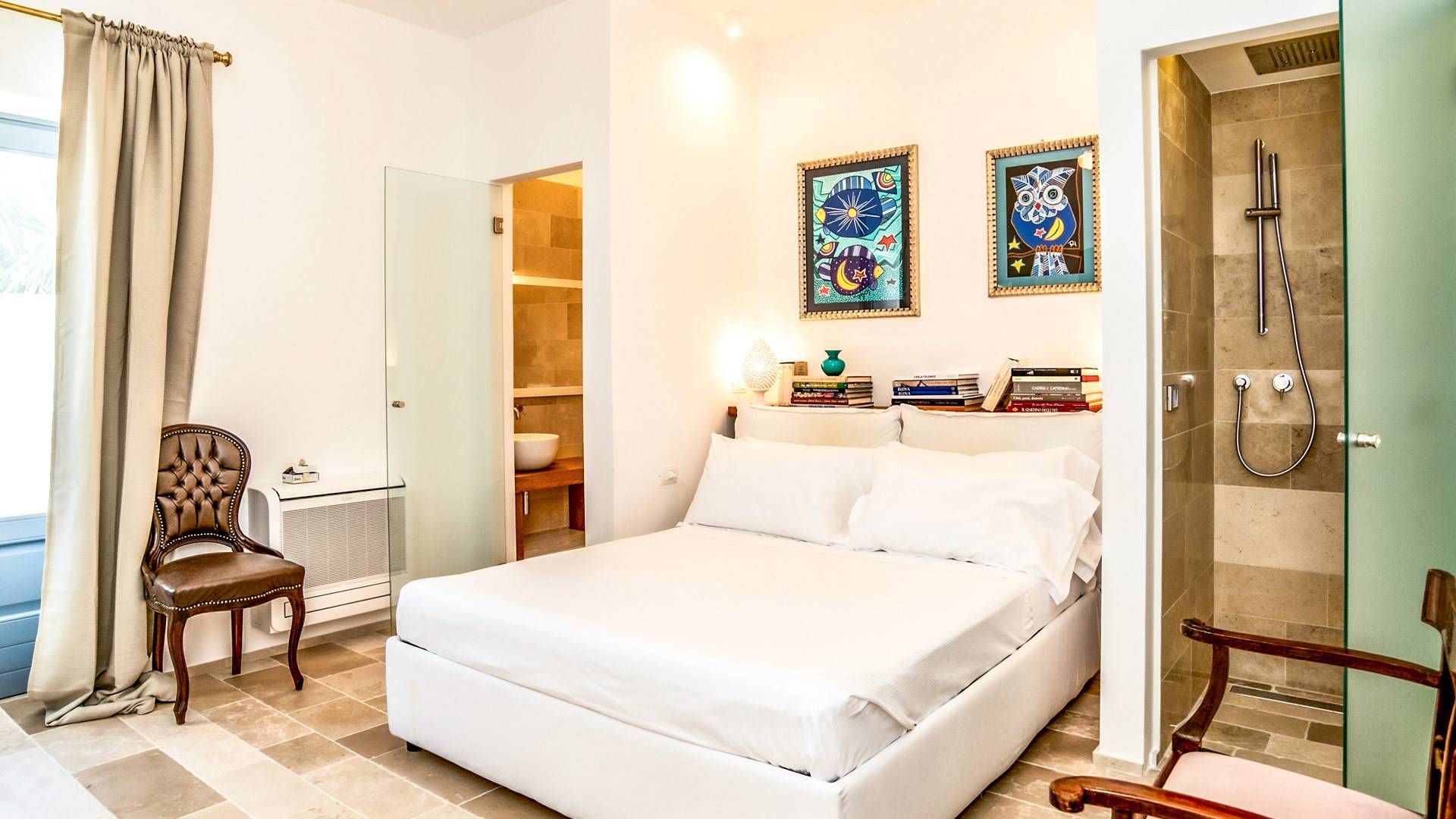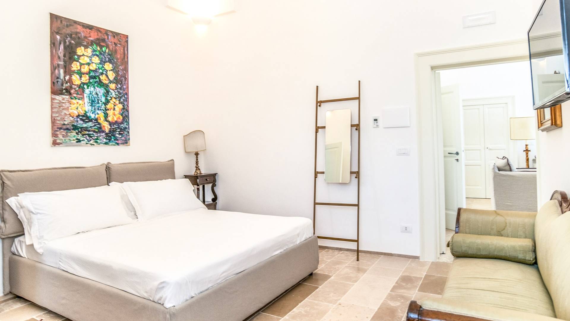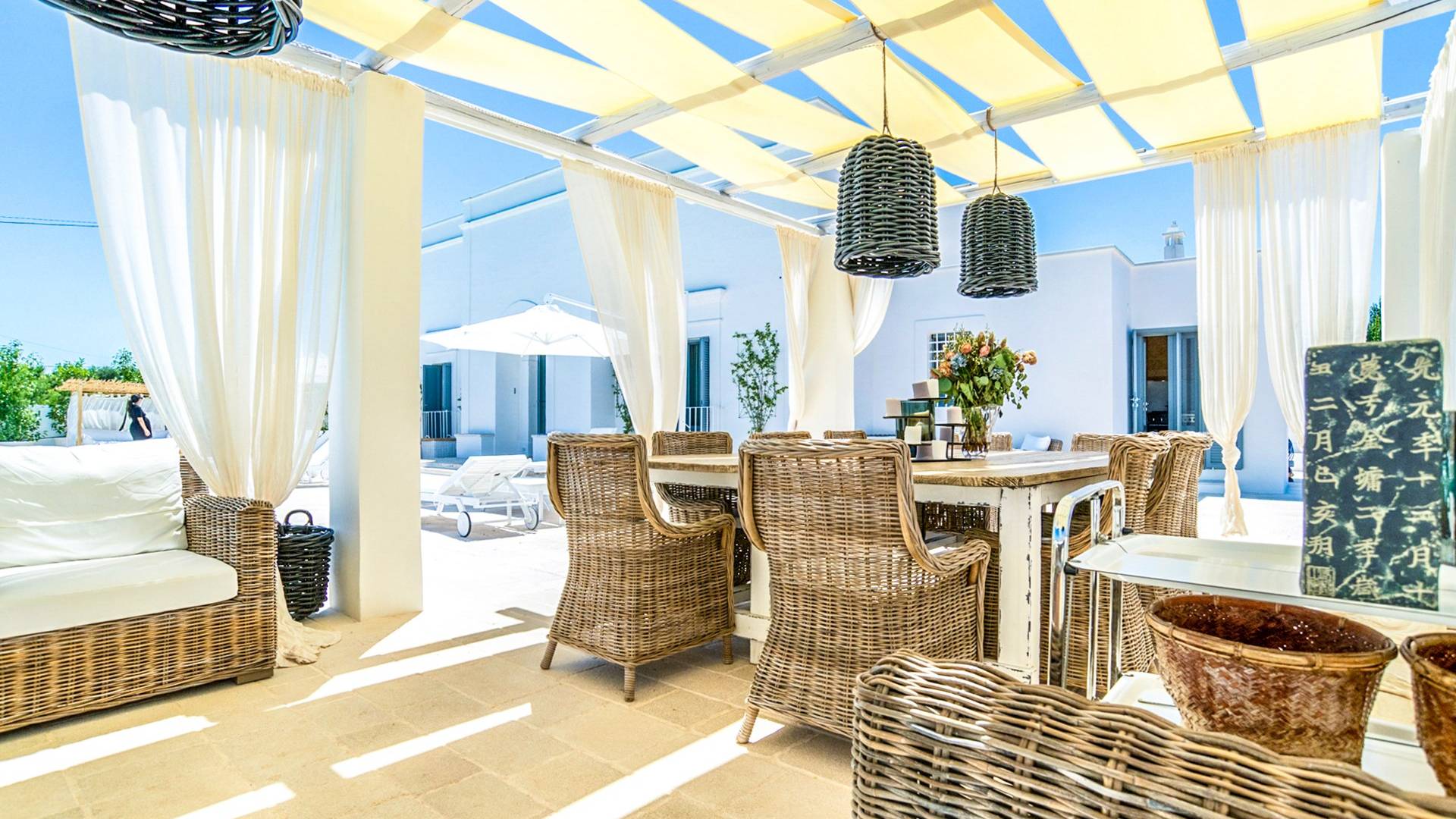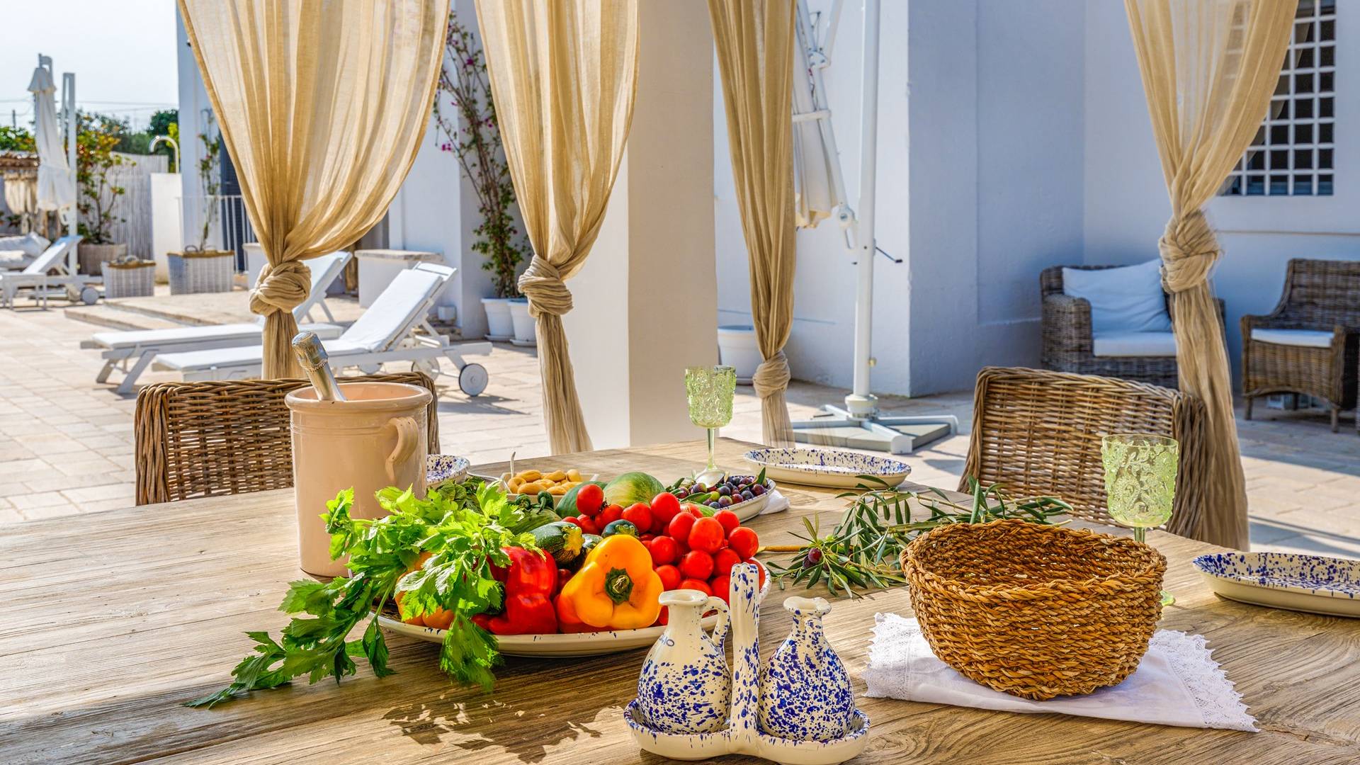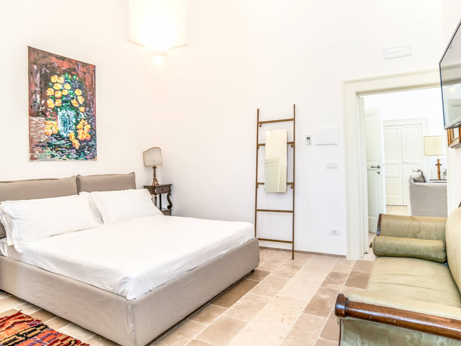 Gli interni comprendono un ampio soggiorno, una zona pranzo e un'area benessere. Sul terreno, c'è una piscina a sfioro, un solarium con sedie e divani per gli ospiti. Vicinissima al centro del paese, la Masseria dispone di cinque camere da letto arredate in stile elegante con pareti laccate in tinte tenui, tessuti contemporanei e arredi su misura di artigiani locali italiani.