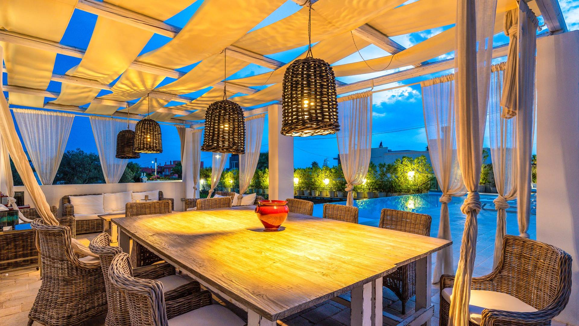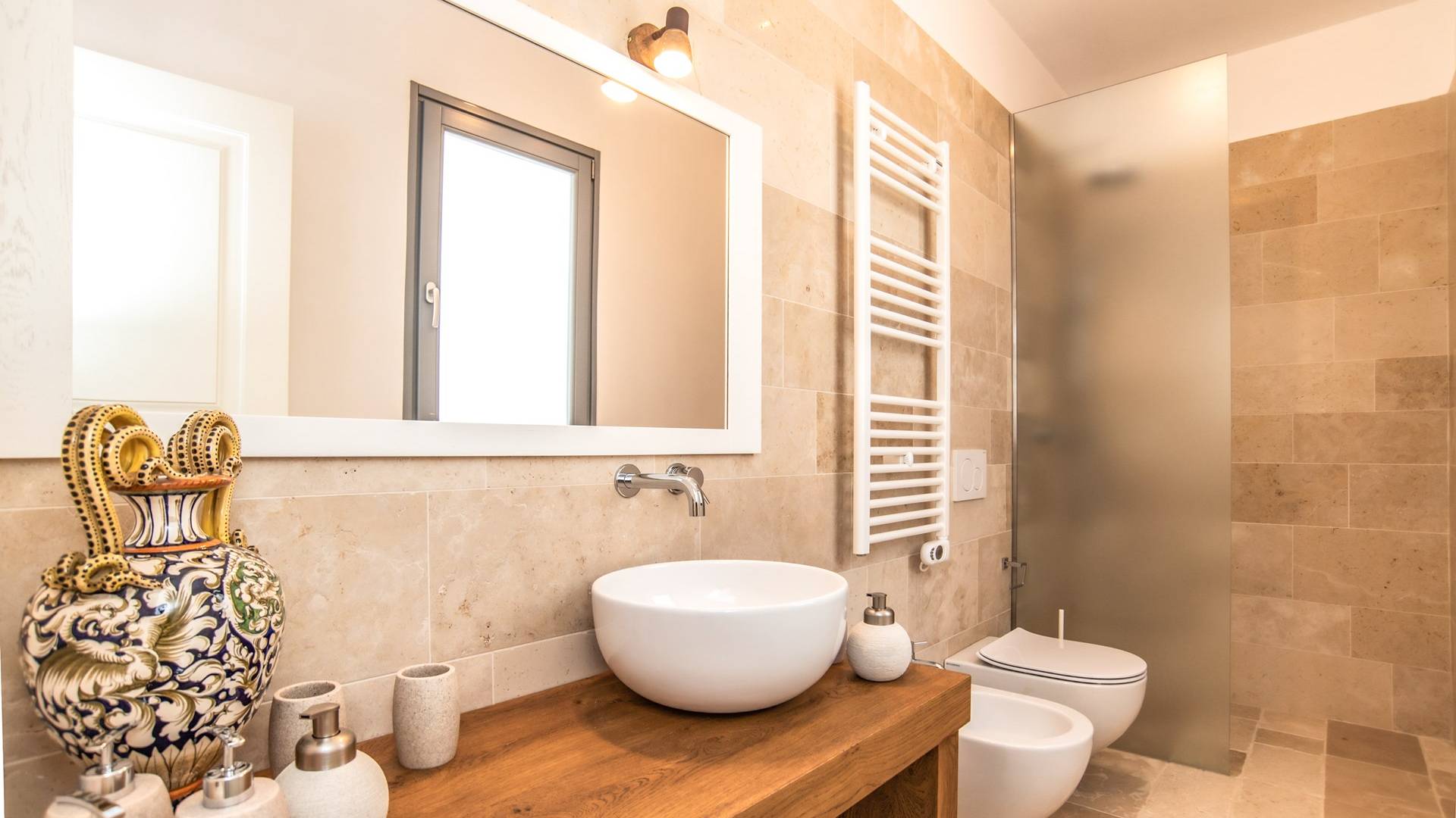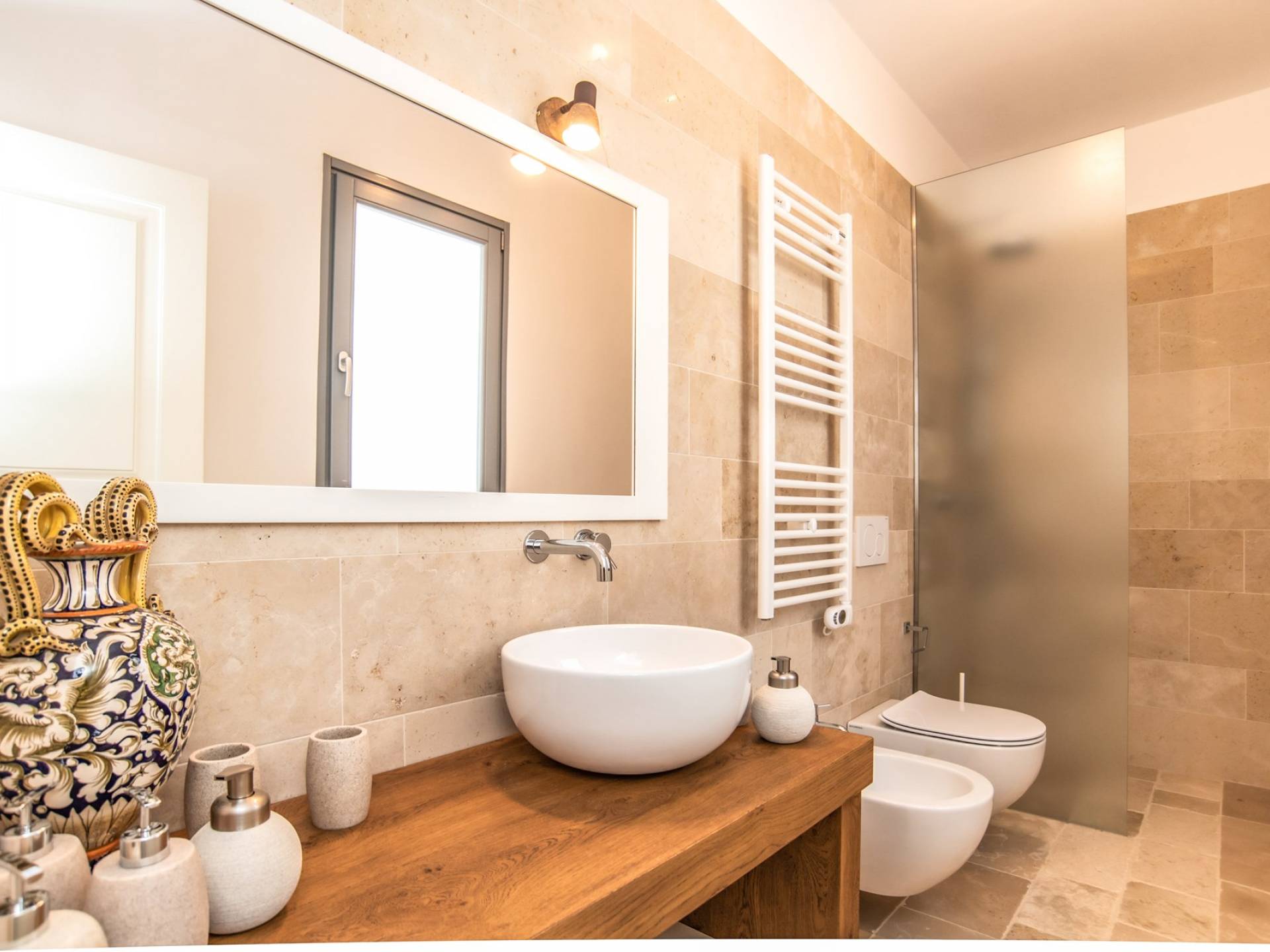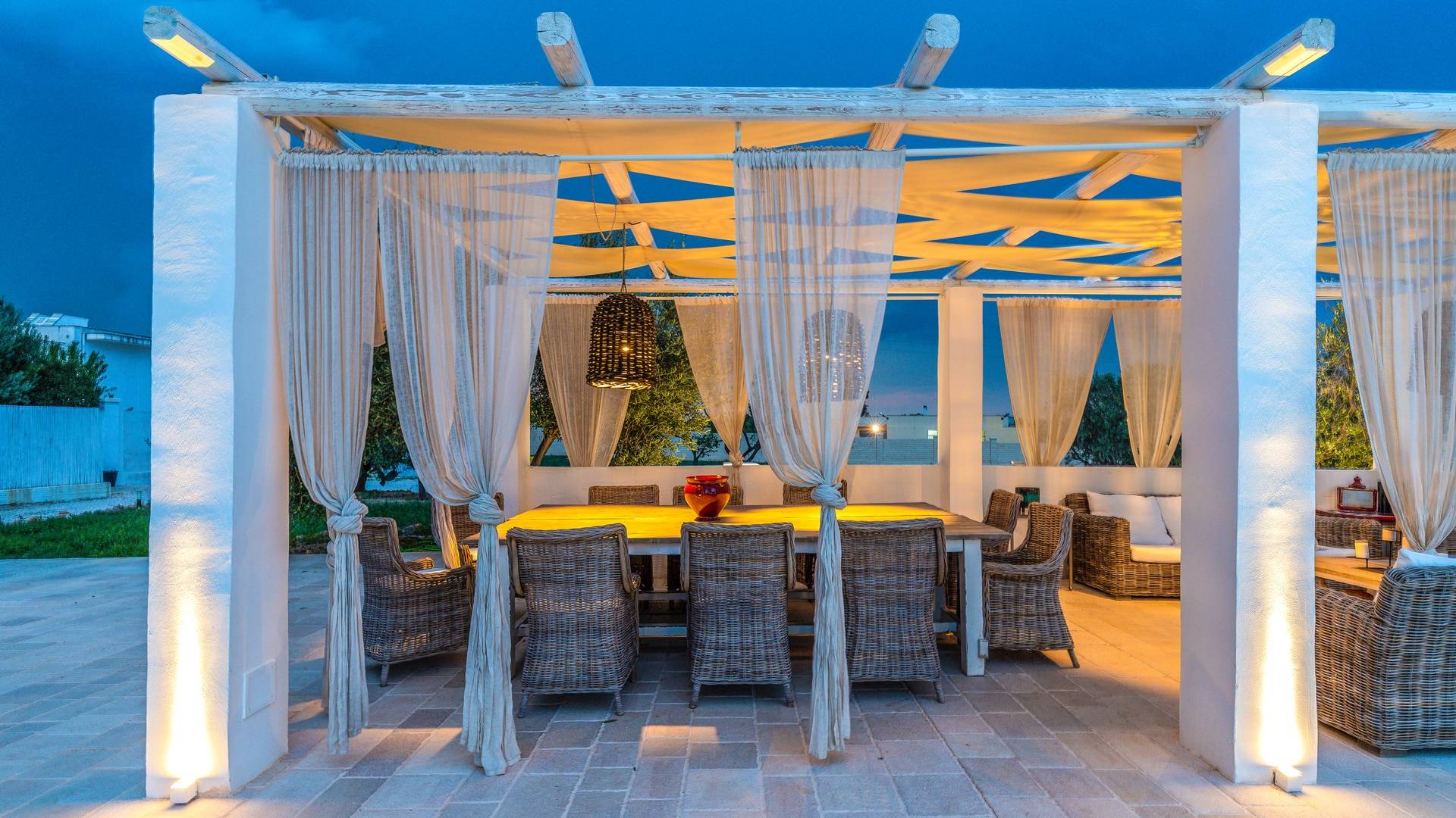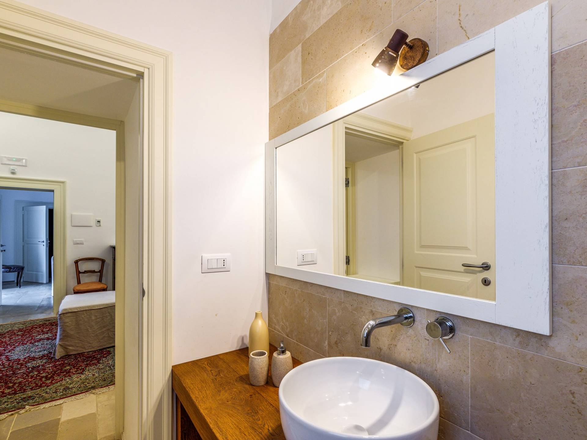 Gli interni comprendono un ampio soggiorno, una zona pranzo e un'area benessere. Sul terreno, c'è una piscina a sfioro, un solarium con sedie e divani per gli ospiti. Vicinissima al centro del paese, la Masseria dispone di cinque camere da letto arredate in stile elegante con pareti laccate in tinte tenui, tessuti contemporanei e arredi su misura di artigiani locali italiani.