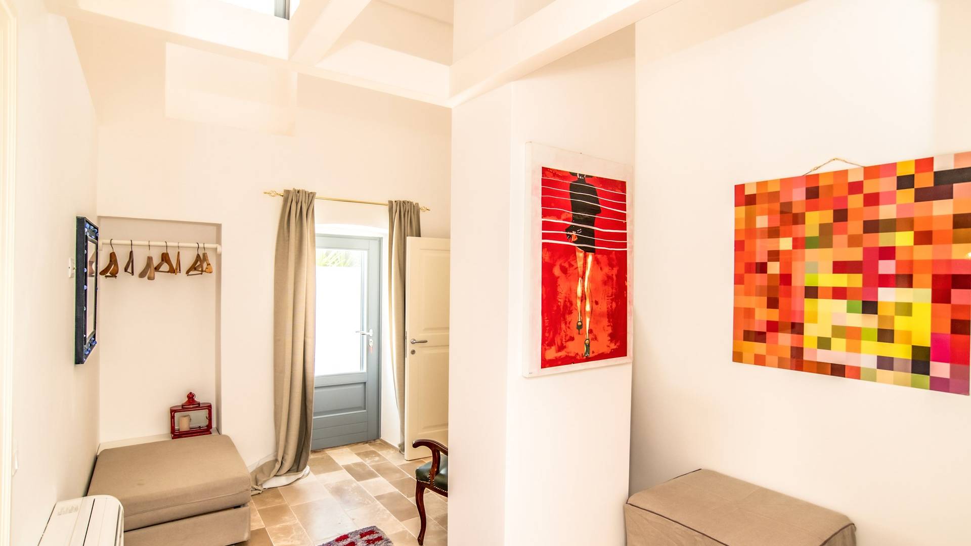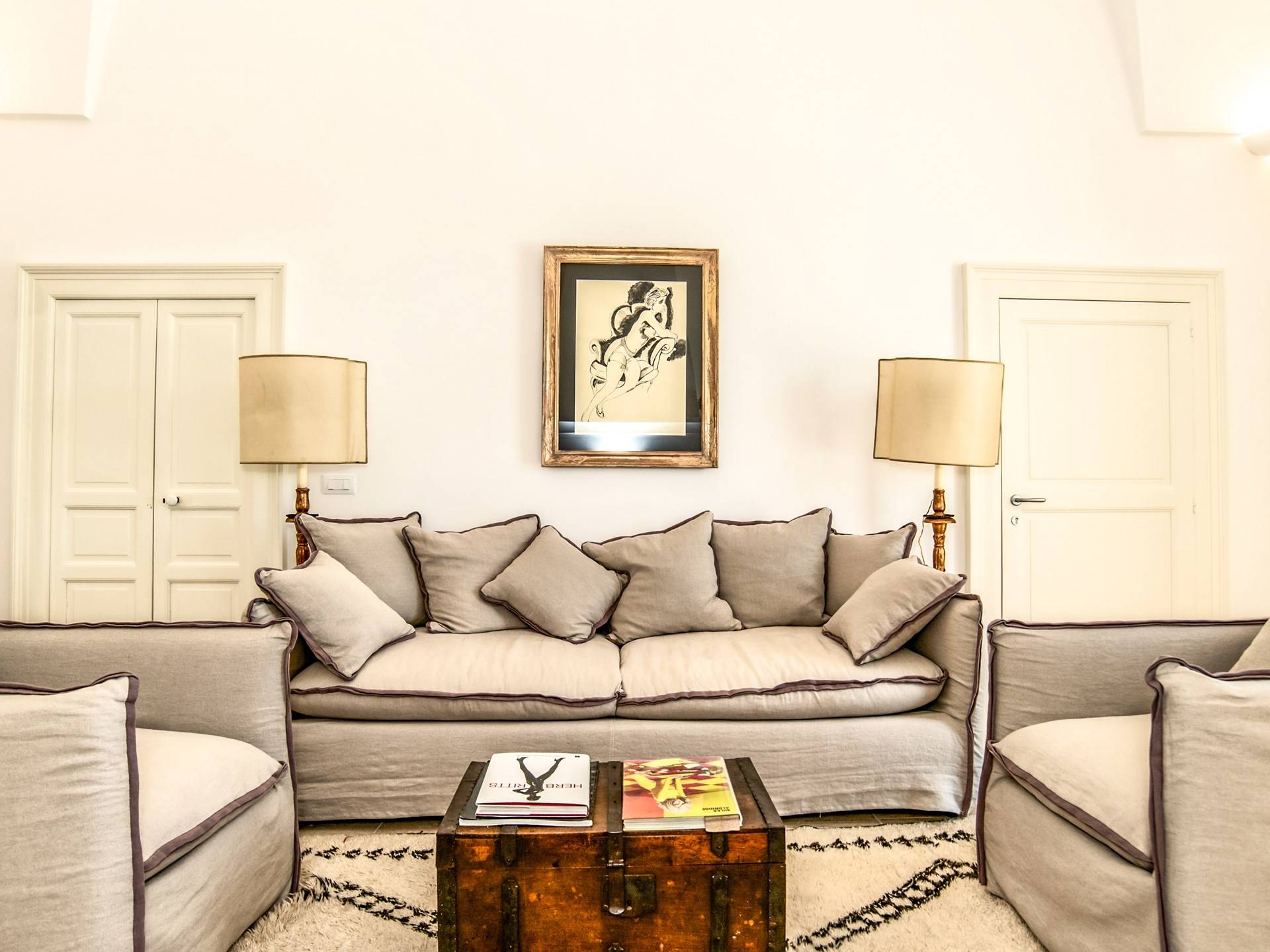 L'estensione del Wi-Fi è interna in tutte le camere e nelle aree comuni, ed esterna intorno alla piscina. L'interno della proprietà misura 200 mq e può ospitare un totale di 10 adulti, comprende 1.000 mq di giardino privato. Il design della casa, affrontato con ricerca nel contesto storico, si traduce in uno stile new-classico con pareti bianche, pavimenti in cotto lavato, testiere di qualità su misura e marmi. I soffitti bianchi a volta conferiscono un'atmosfera spaziosa agli interni. Moderno ma molto confortevole, questo è un rifugio chic pieno di luce e un'atmosfera accogliente.