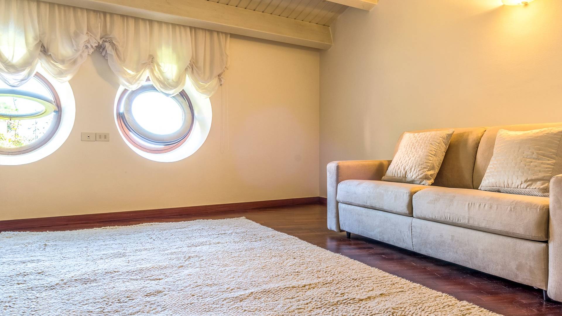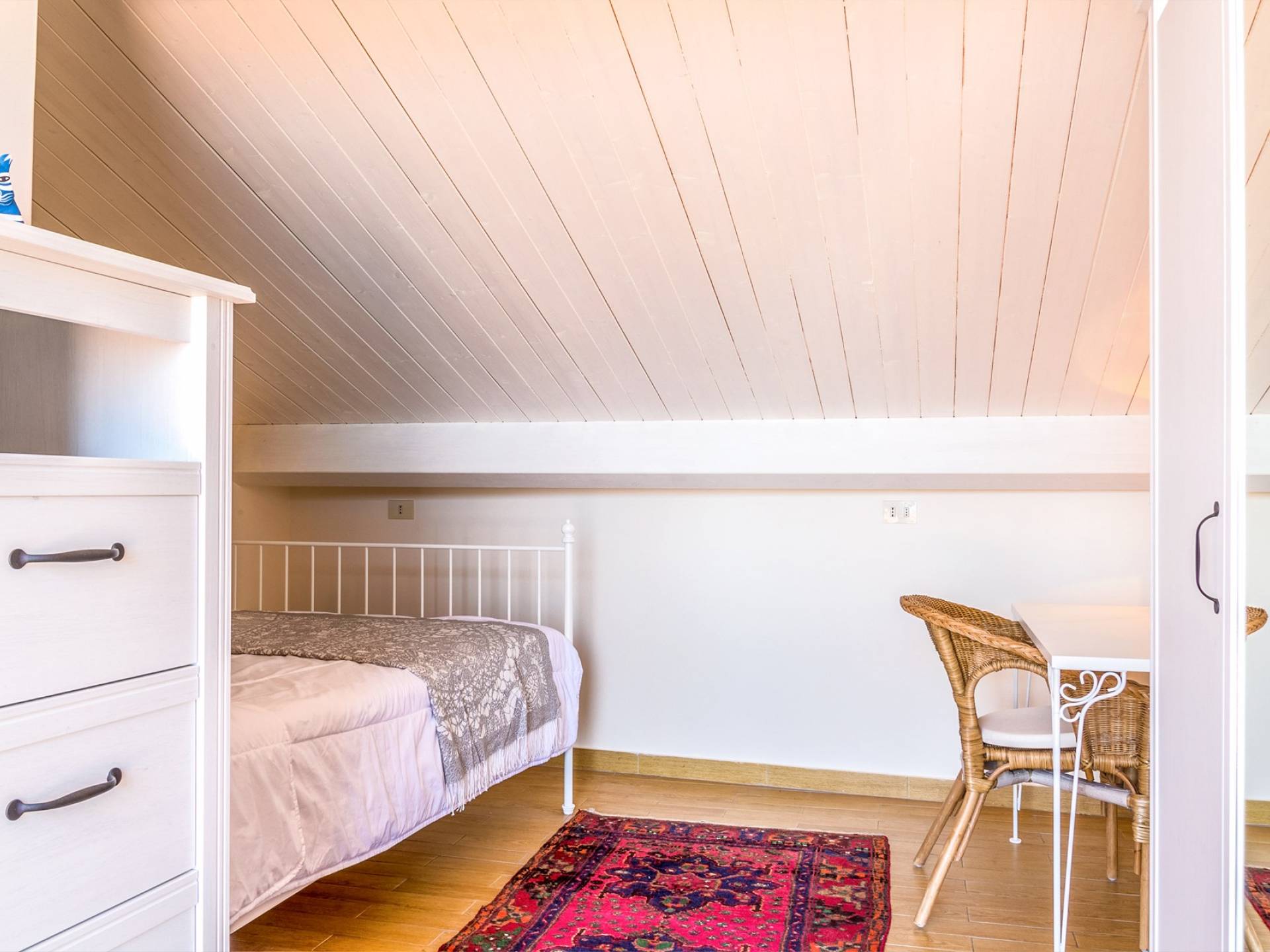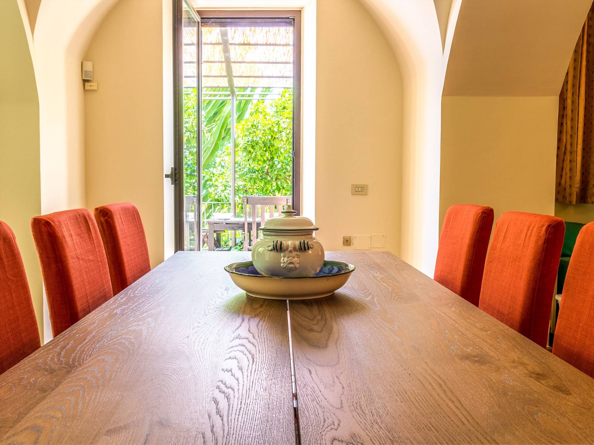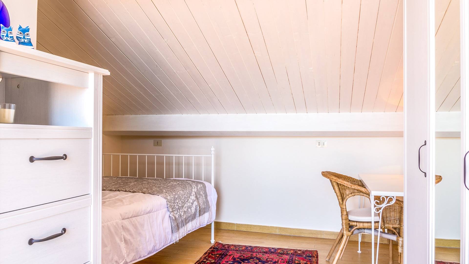 La casa è composta da un ampio ingresso, studio soppalcato, camera matrimoniale con bagno privato, cameretta con letto a castello e bagno privato e una splendida alcova in mansarda con letto a una piazza e mezza, bagno privato, e ampio terrazzo con vista mare. Al piano inferiore un ampio soggiorno con cucina attrezzata, zona pranzo interna ed esterna, ampia corte, e la splendida piscina. Struttura non adatta a bambini piccoli. Ottima posizione per conoscere la Sicilia orientale, a pochi minuti dal centro di Acireale e dallo svincolo autostradale.