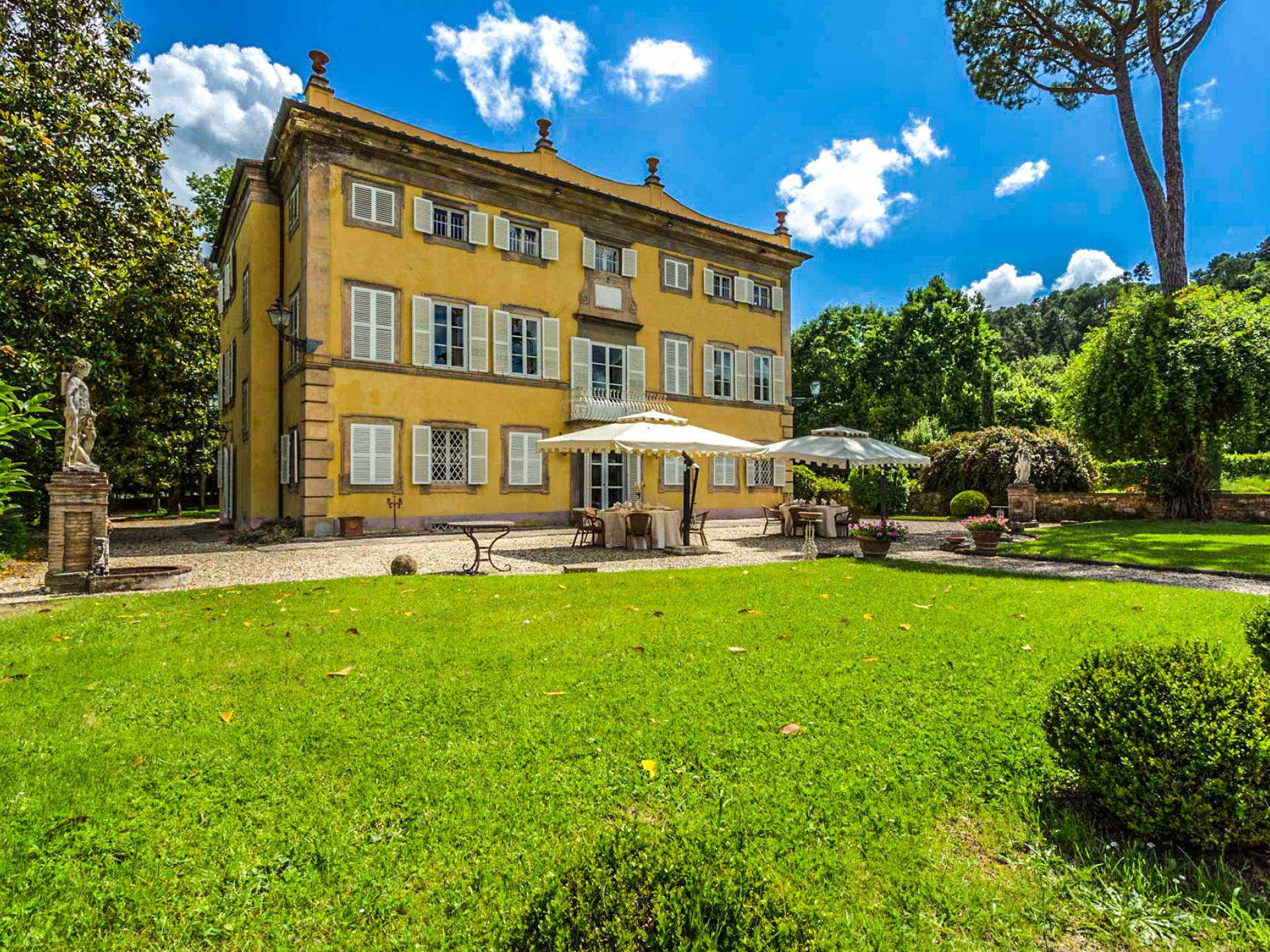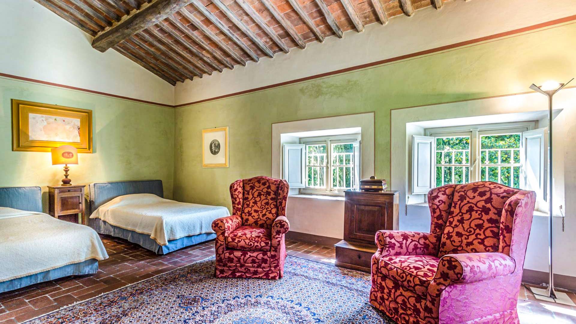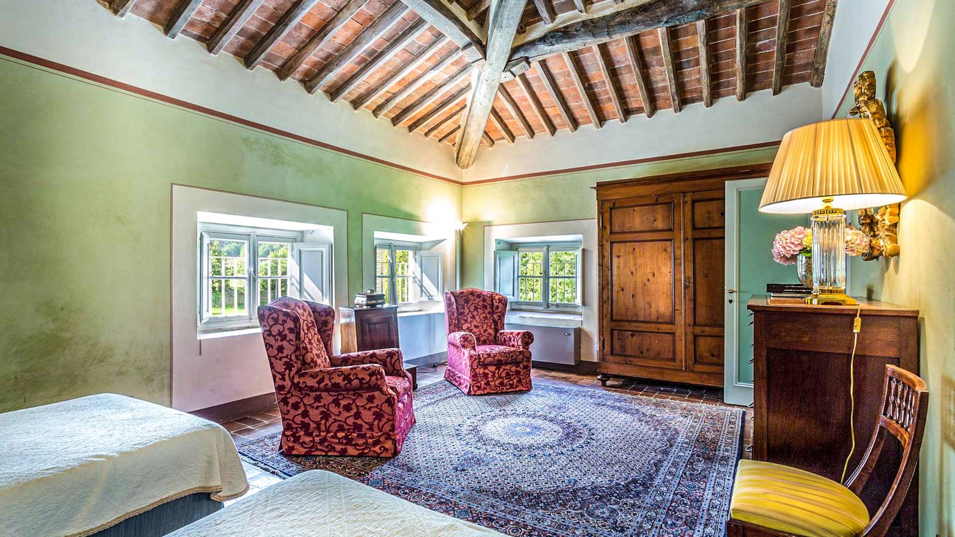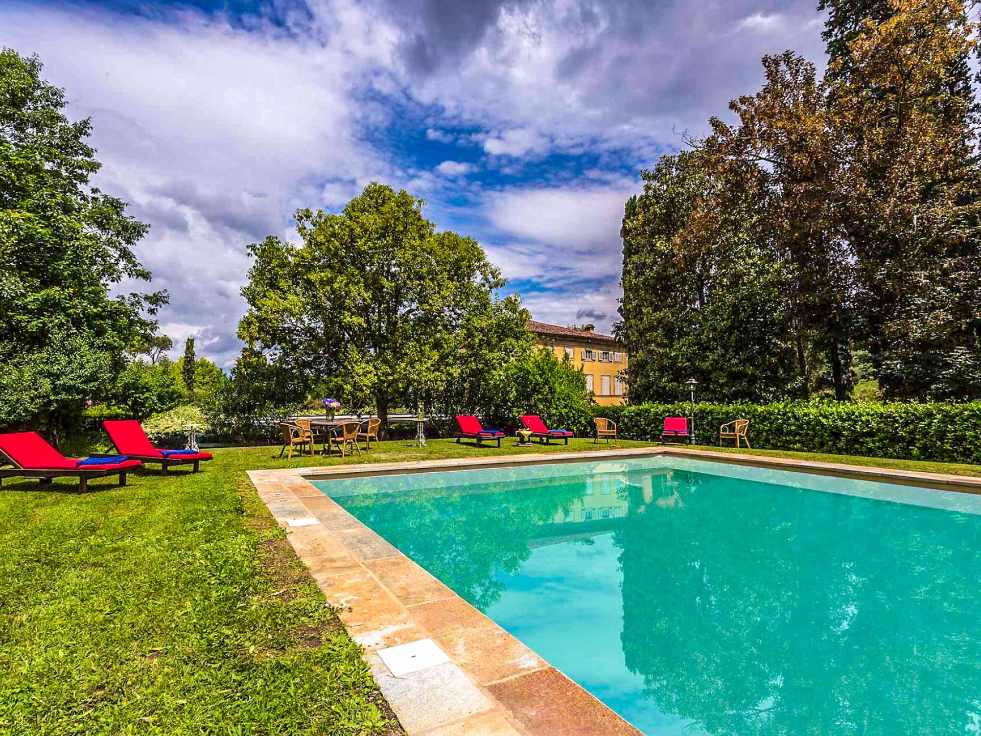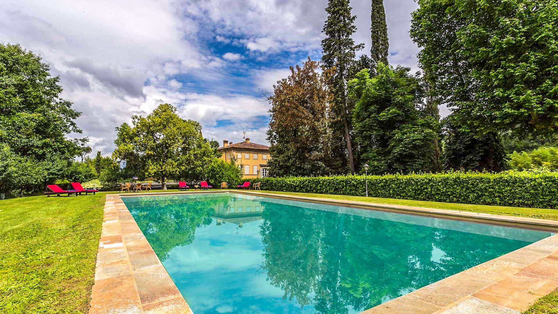 Le maestose camere affrescate si uniscono ai comfort moderni immersi in un vasto parco con piscina e laghetto privato con graziosi cigni. I nostri ospiti potranno beneficiare di 2 enormi sale da pranzo all'aperto e gazebo coperto di gelsomino. Originariamente costruita nel 1624 questa magnifica Villa fu la residenza estiva del Conte Cosimo Bernardini, la cui famiglia ha avuto per secoli un ruolo fondamentale nell'amministrazione della Repubblica di Lucca. Meravigliosi oggetti d'antiquariato, maestose stanze affrescate si uniscono ai comfort moderni per creare un'atmosfera esclusiva ed elegante.