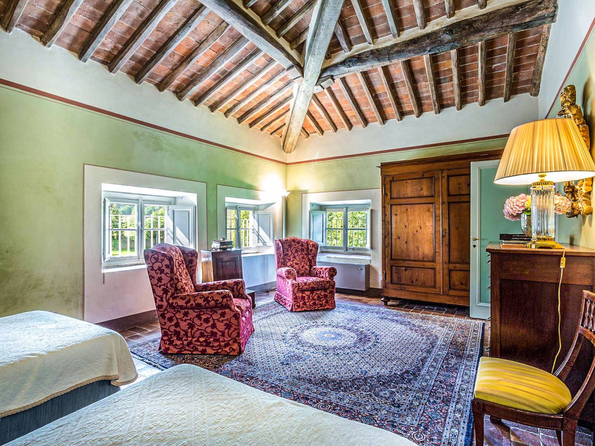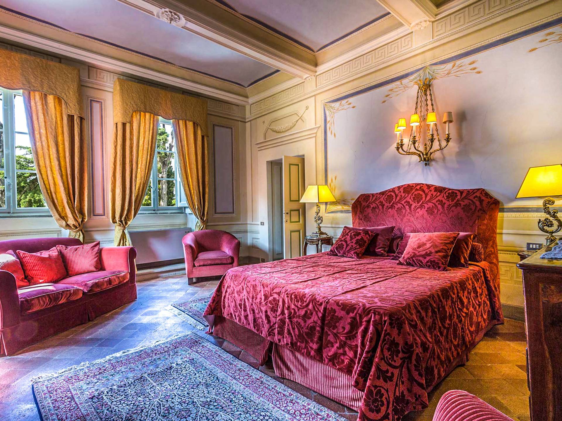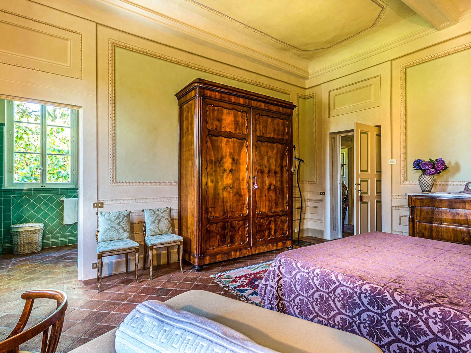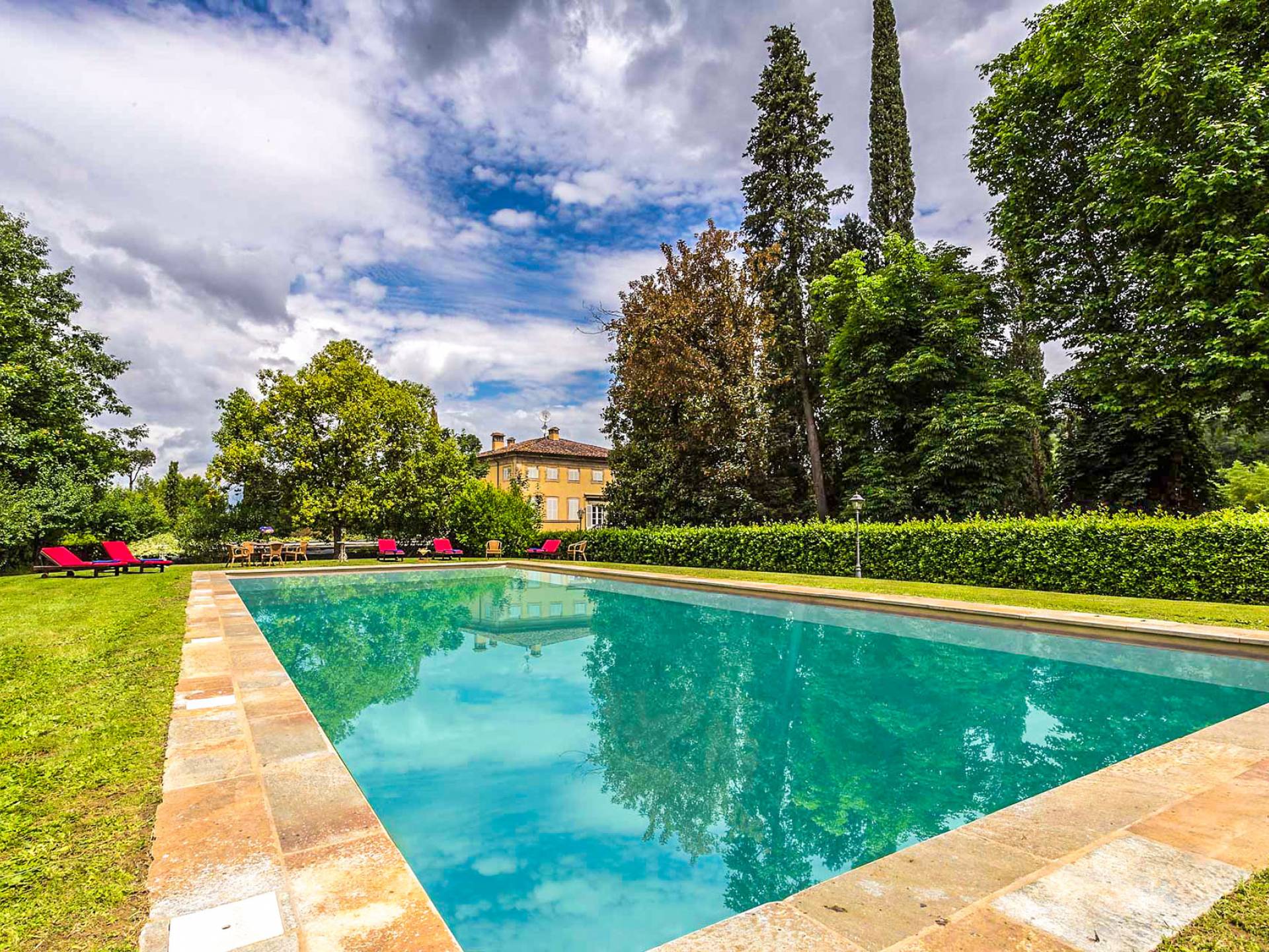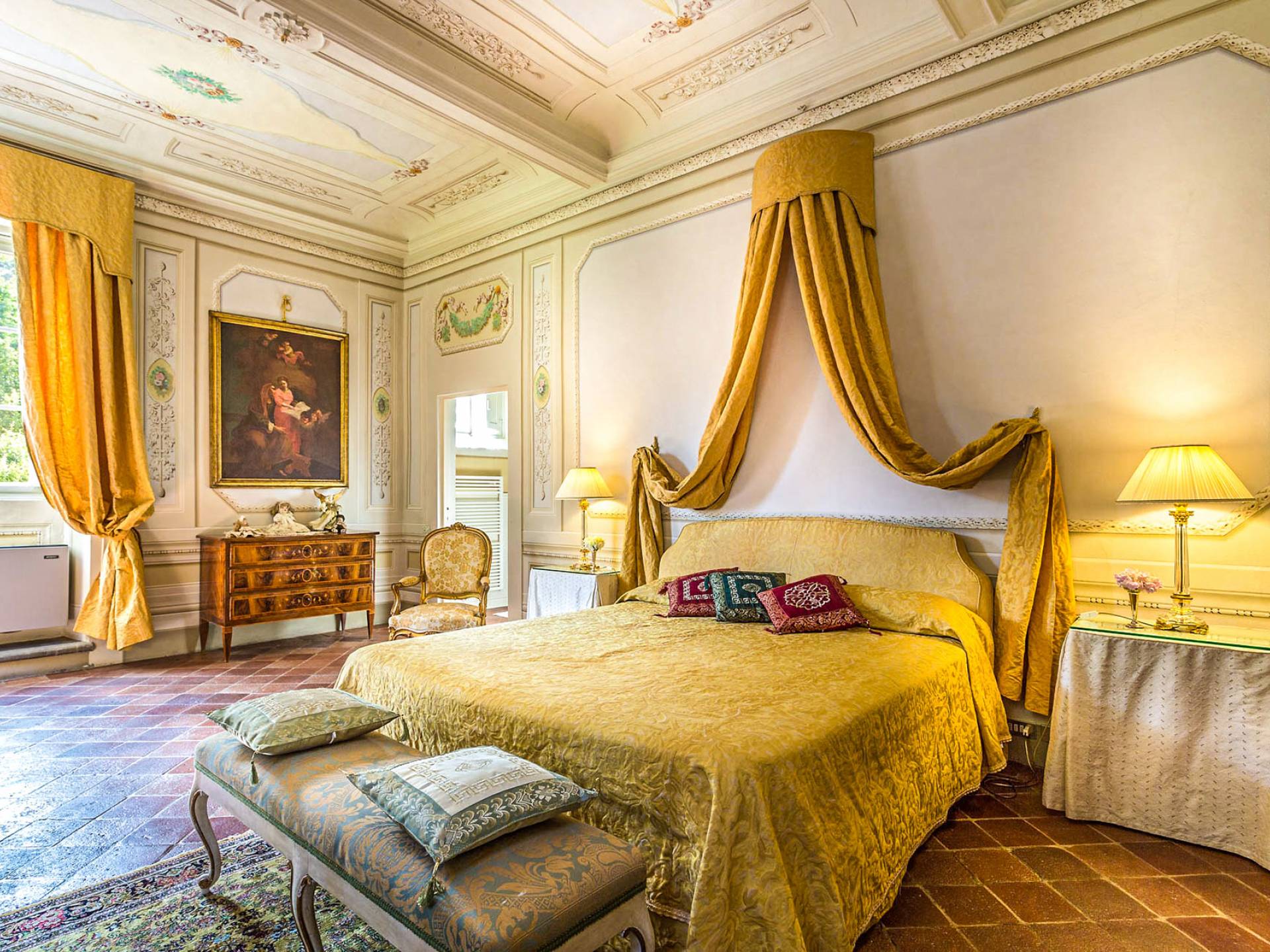 Le maestose camere affrescate si uniscono ai comfort moderni immersi in un vasto parco con piscina e laghetto privato con graziosi cigni. I nostri ospiti potranno beneficiare di 2 enormi sale da pranzo all'aperto e gazebo coperto di gelsomino. Originariamente costruita nel 1624 questa magnifica Villa fu la residenza estiva del Conte Cosimo Bernardini, la cui famiglia ha avuto per secoli un ruolo fondamentale nell'amministrazione della Repubblica di Lucca. Meravigliosi oggetti d'antiquariato, maestose stanze affrescate si uniscono ai comfort moderni per creare un'atmosfera esclusiva ed elegante.