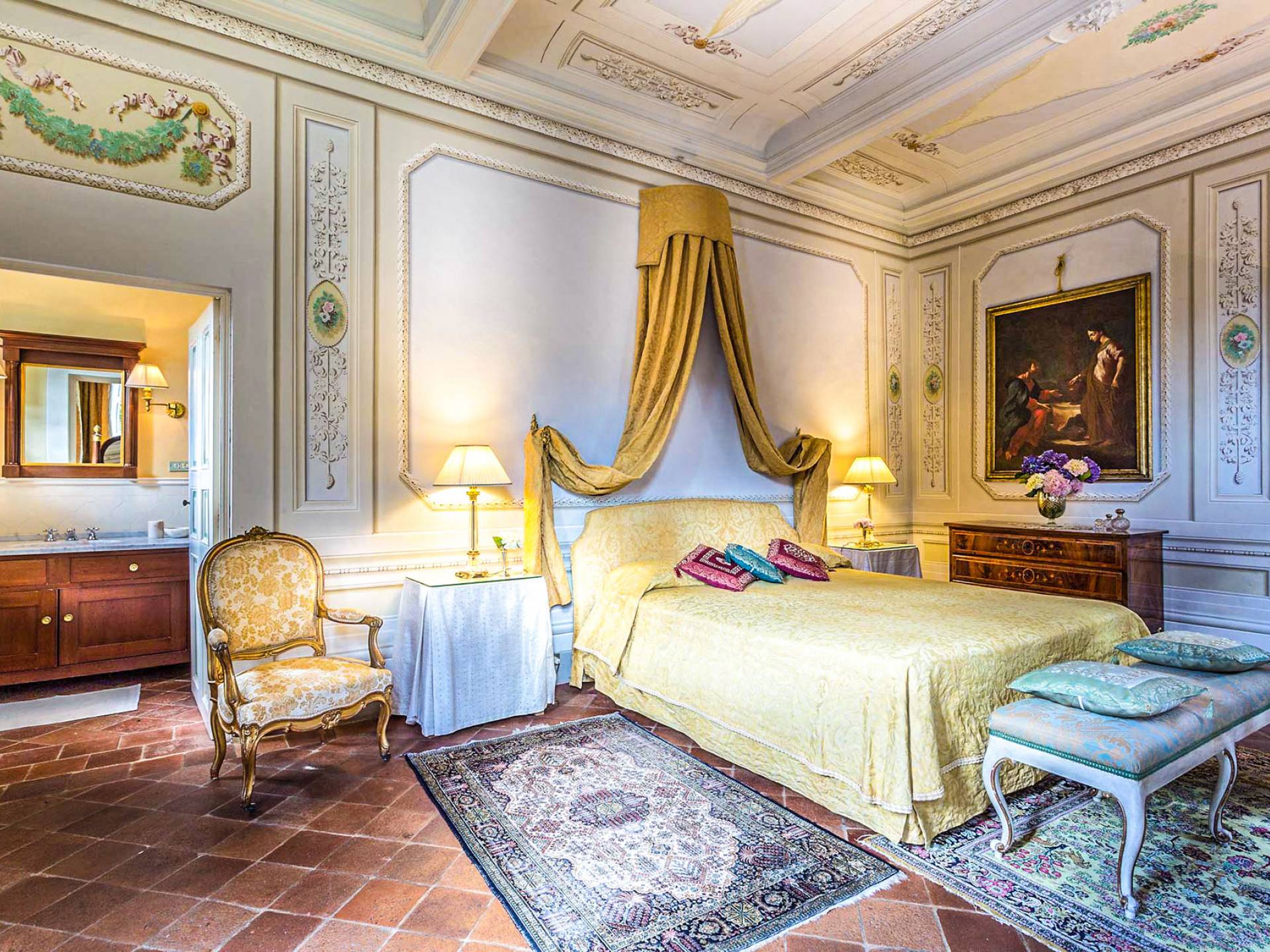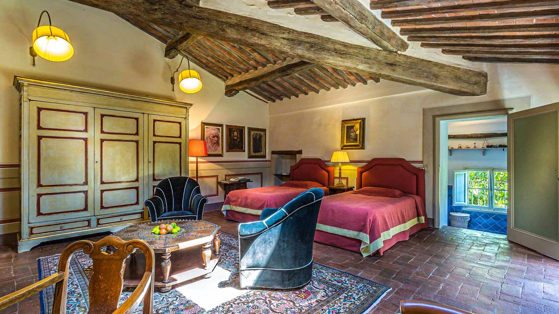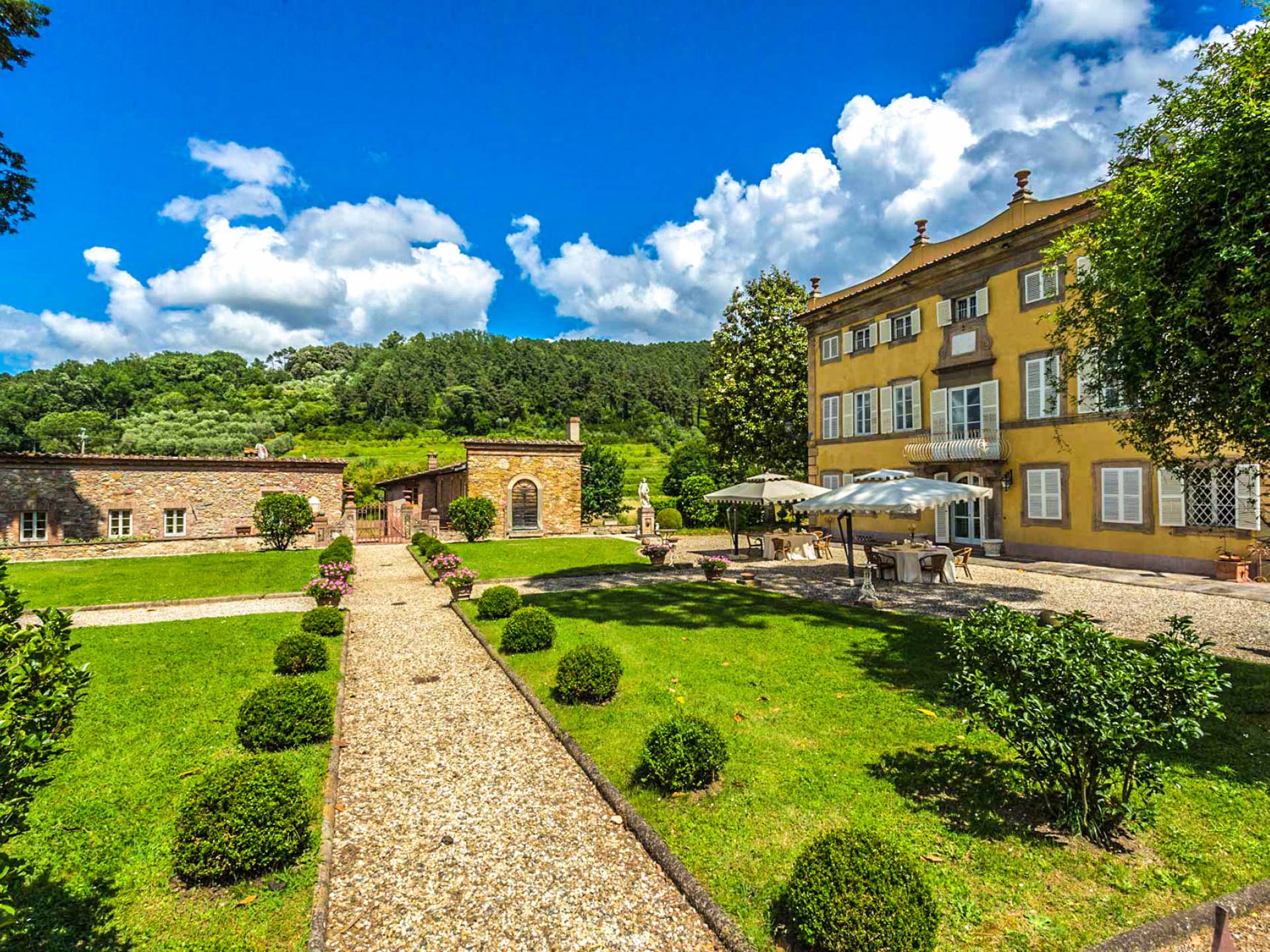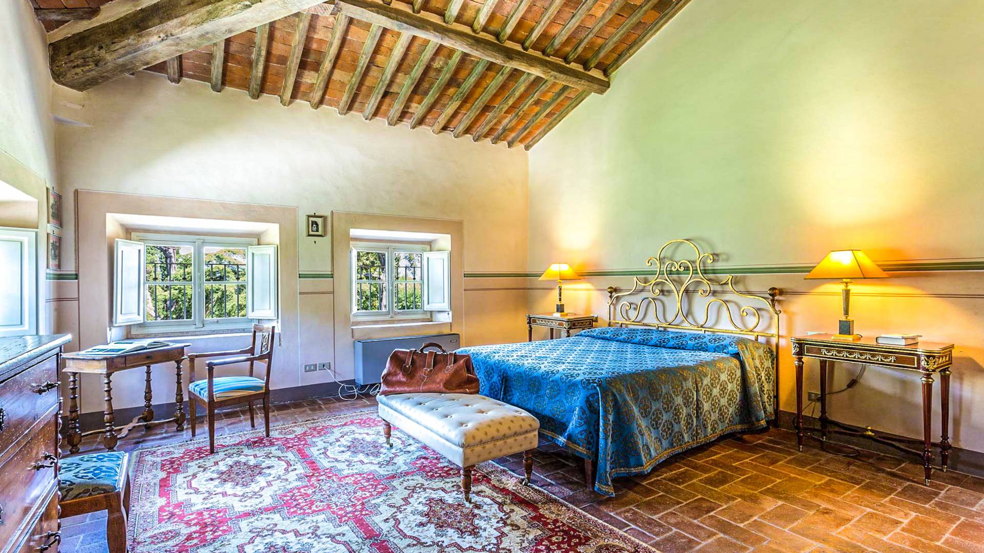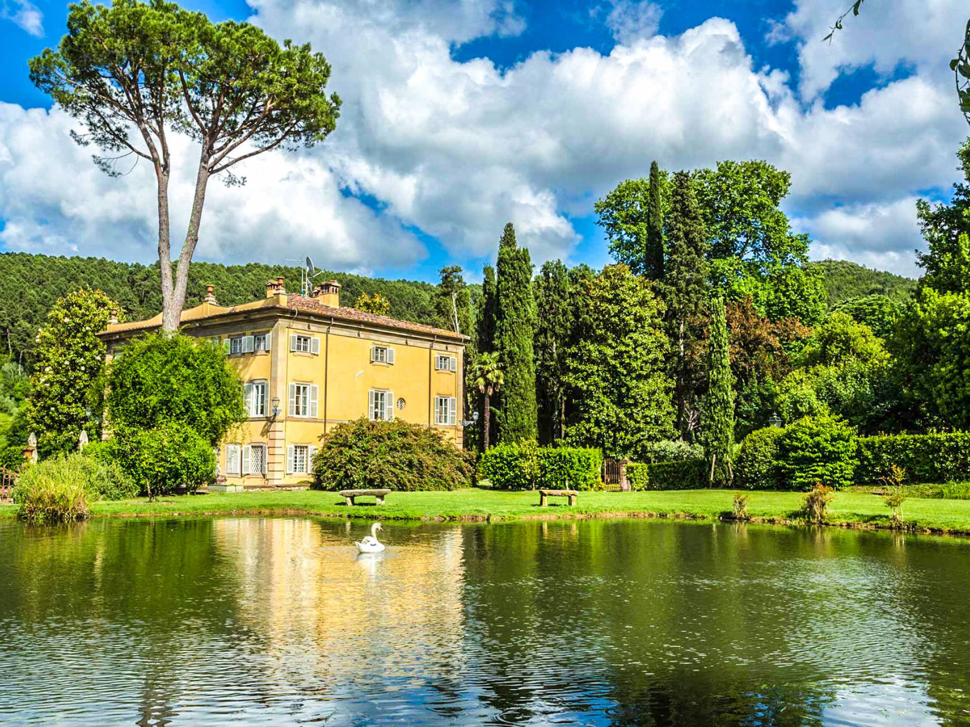 Le maestose camere affrescate si uniscono ai comfort moderni immersi in un vasto parco con piscina e laghetto privato con graziosi cigni. I nostri ospiti potranno beneficiare di 2 enormi sale da pranzo all'aperto e gazebo coperto di gelsomino. Originariamente costruita nel 1624 questa magnifica Villa fu la residenza estiva del Conte Cosimo Bernardini, la cui famiglia ha avuto per secoli un ruolo fondamentale nell'amministrazione della Repubblica di Lucca. Meravigliosi oggetti d'antiquariato, maestose stanze affrescate si uniscono ai comfort moderni per creare un'atmosfera esclusiva ed elegante.