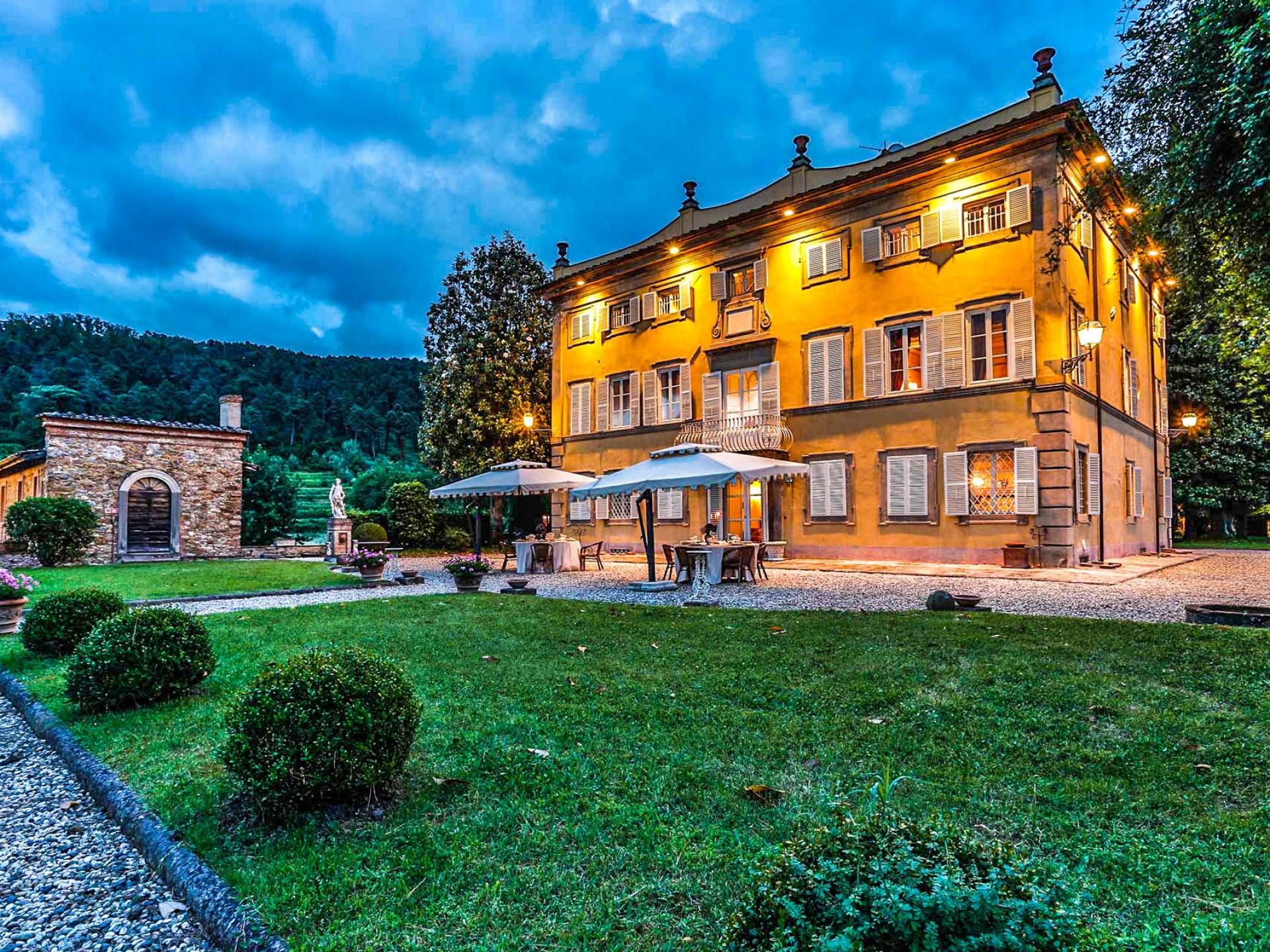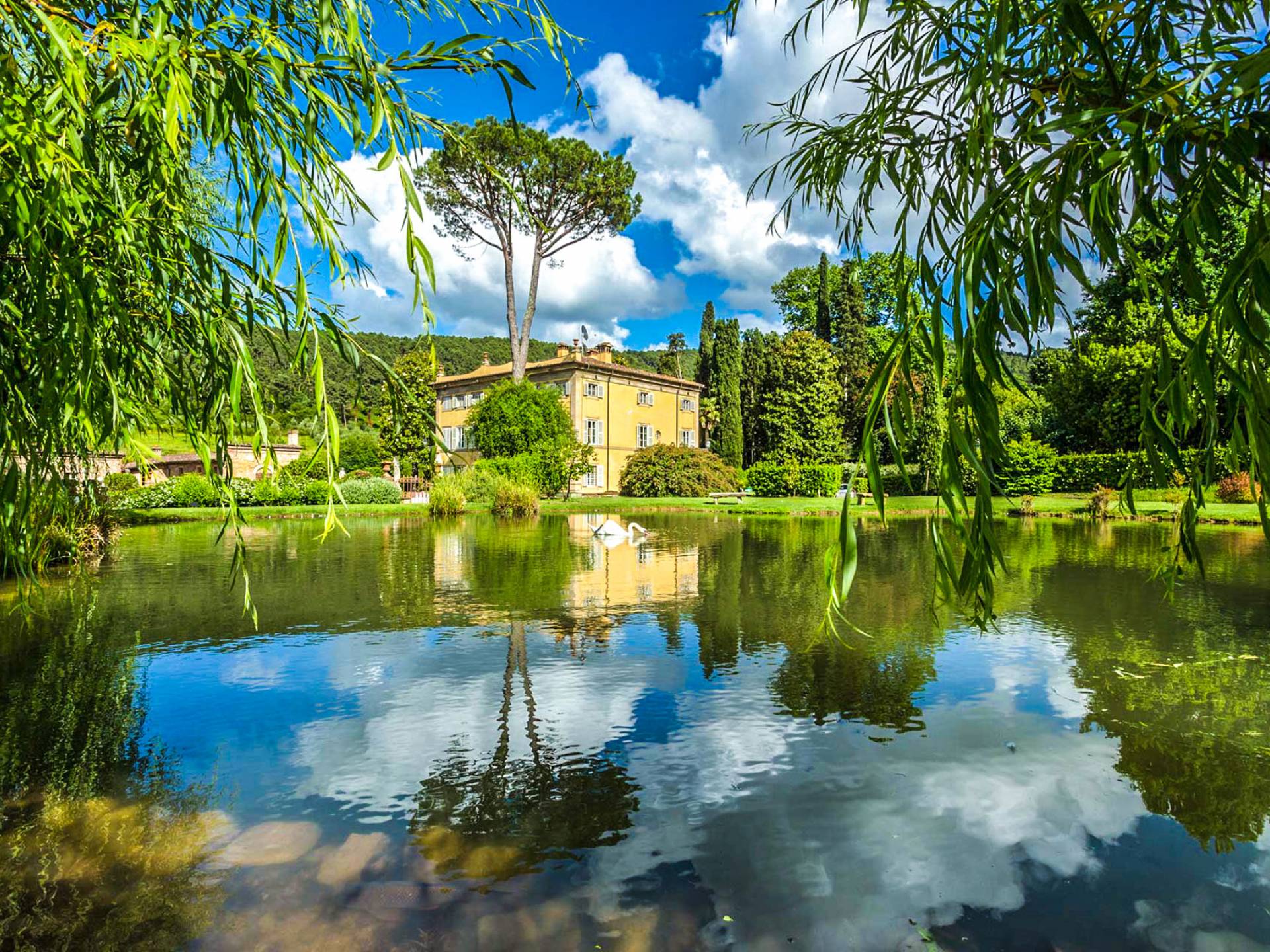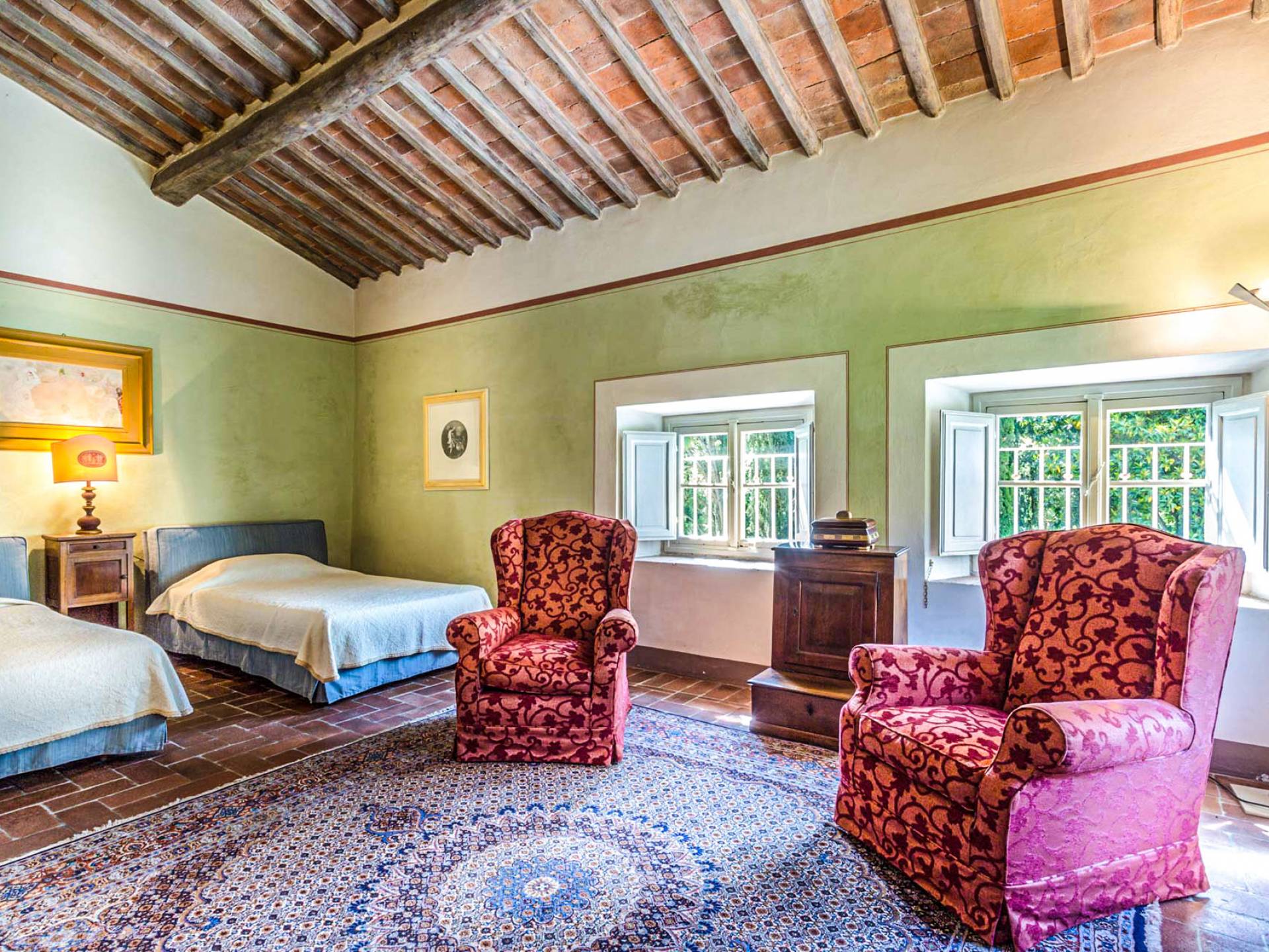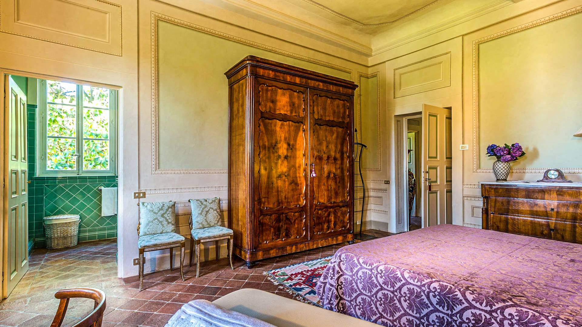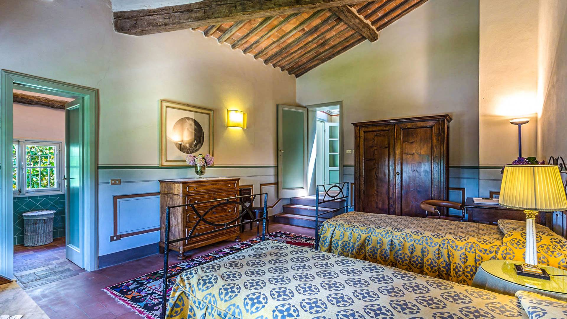 Le maestose camere affrescate si uniscono ai comfort moderni immersi in un vasto parco con piscina e laghetto privato con graziosi cigni. I nostri ospiti potranno beneficiare di 2 enormi sale da pranzo all'aperto e gazebo coperto di gelsomino. Originariamente costruita nel 1624 questa magnifica Villa fu la residenza estiva del Conte Cosimo Bernardini, la cui famiglia ha avuto per secoli un ruolo fondamentale nell'amministrazione della Repubblica di Lucca. Meravigliosi oggetti d'antiquariato, maestose stanze affrescate si uniscono ai comfort moderni per creare un'atmosfera esclusiva ed elegante.