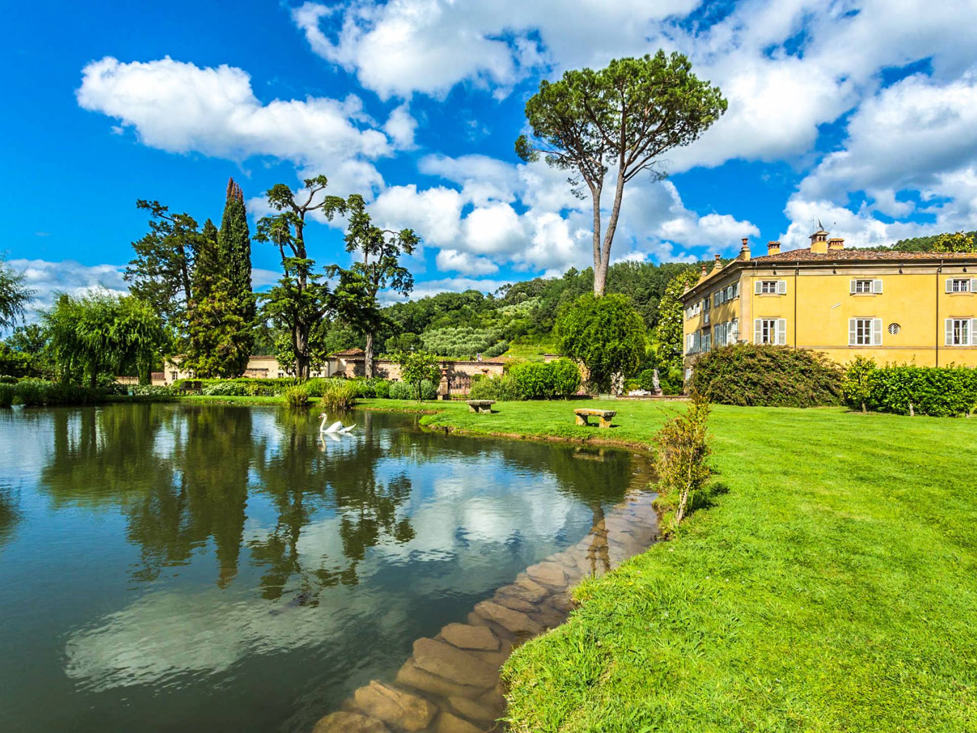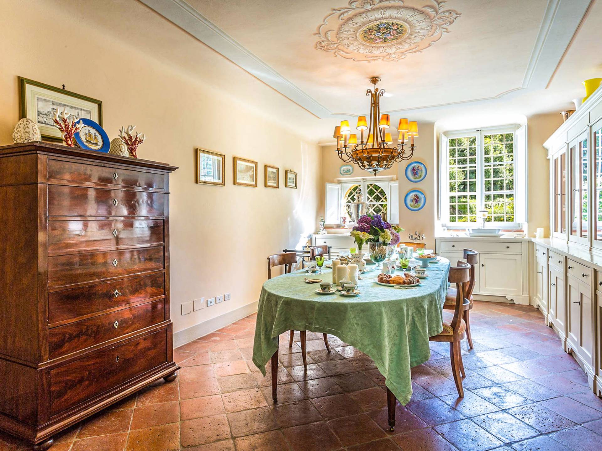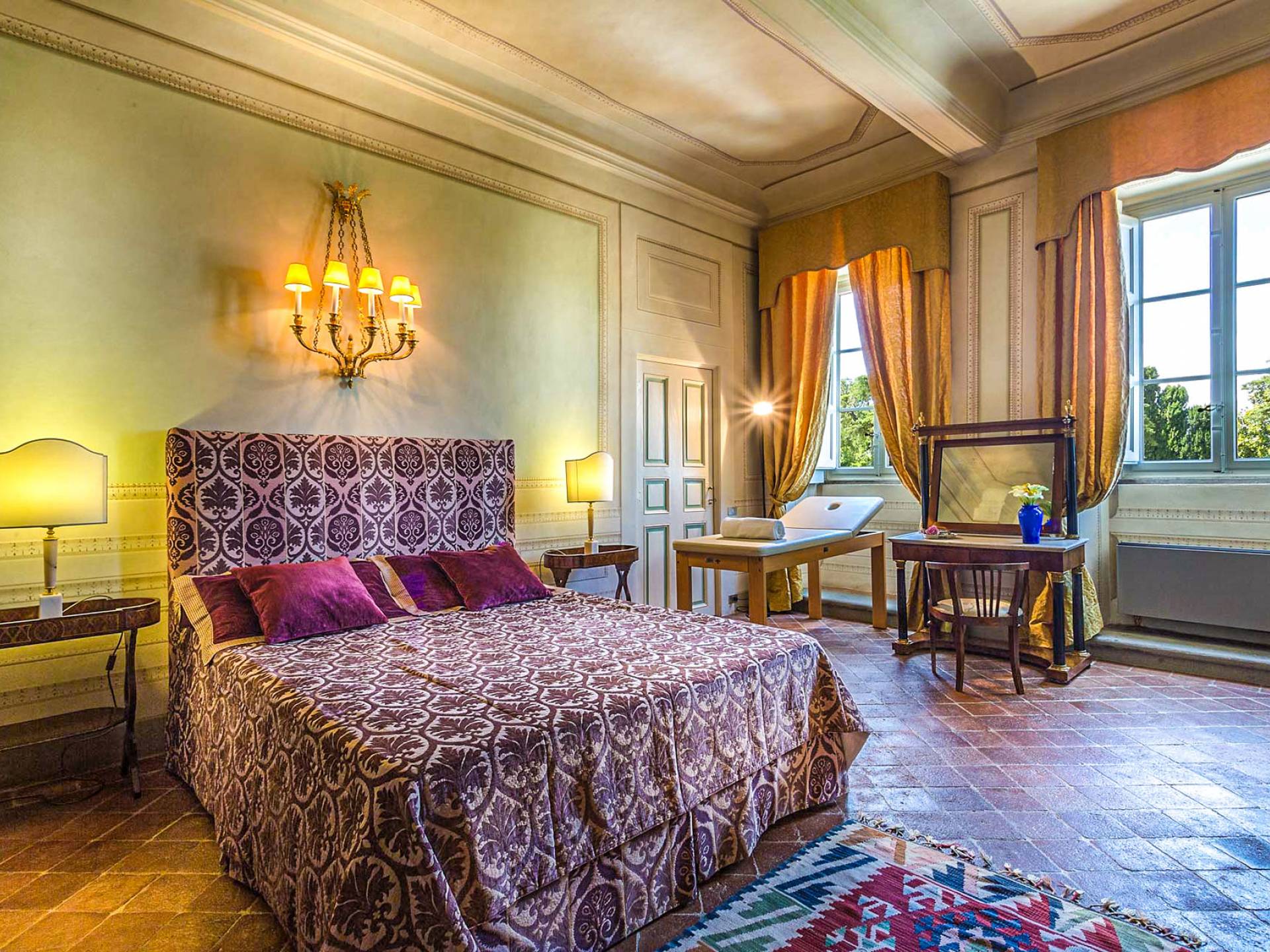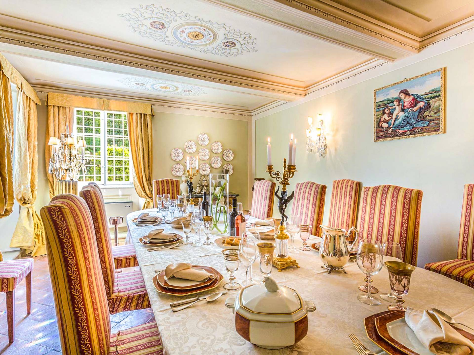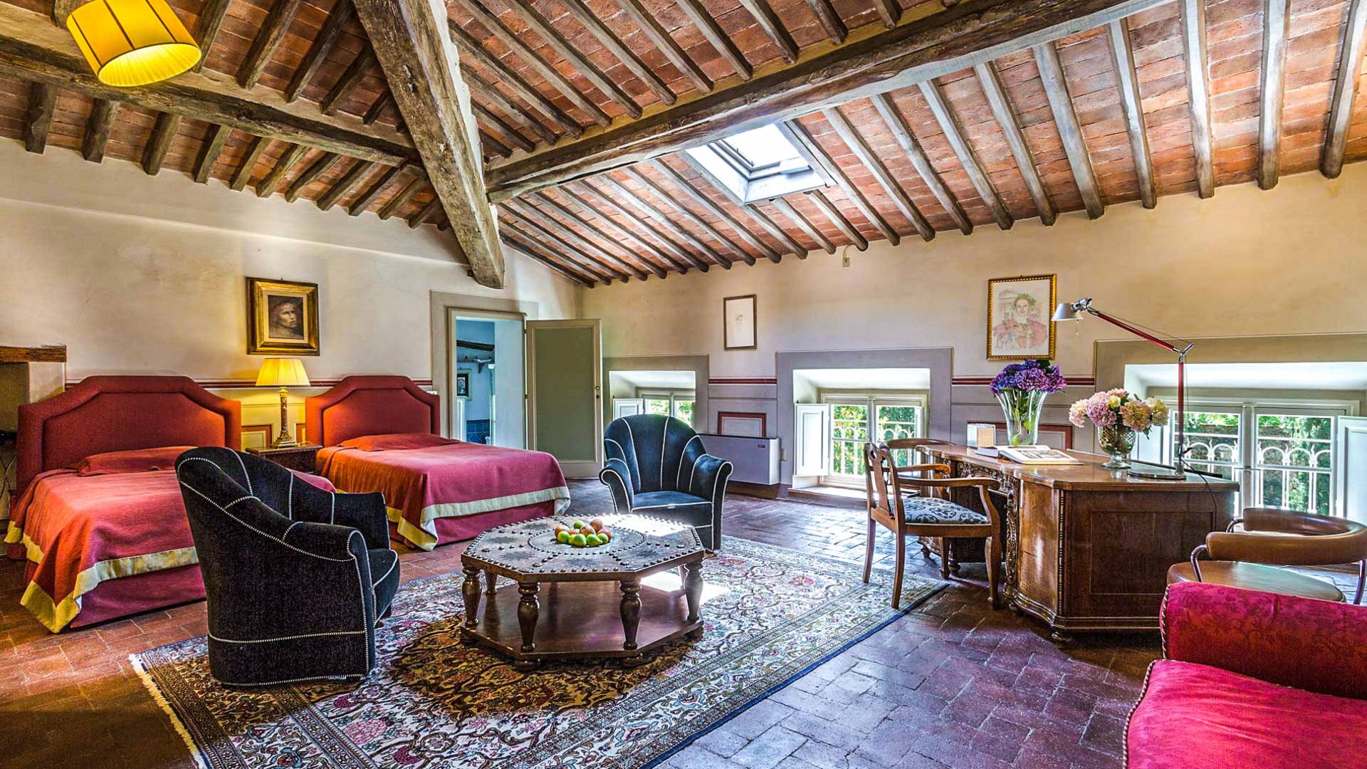 Le maestose camere affrescate si uniscono ai comfort moderni immersi in un vasto parco con piscina e laghetto privato con graziosi cigni. I nostri ospiti potranno beneficiare di 2 enormi sale da pranzo all'aperto e gazebo coperto di gelsomino. Originariamente costruita nel 1624 questa magnifica Villa fu la residenza estiva del Conte Cosimo Bernardini, la cui famiglia ha avuto per secoli un ruolo fondamentale nell'amministrazione della Repubblica di Lucca. Meravigliosi oggetti d'antiquariato, maestose stanze affrescate si uniscono ai comfort moderni per creare un'atmosfera esclusiva ed elegante.