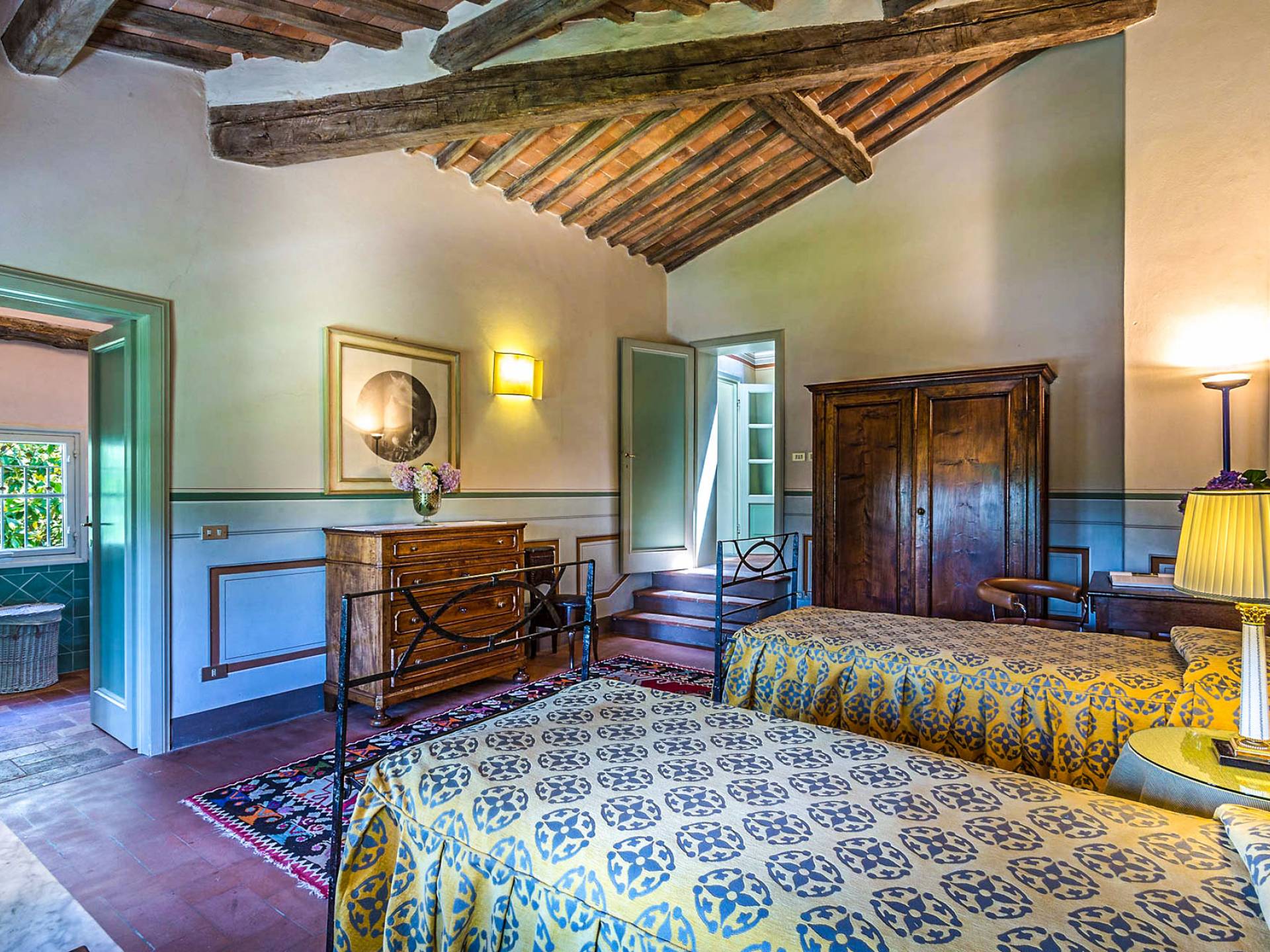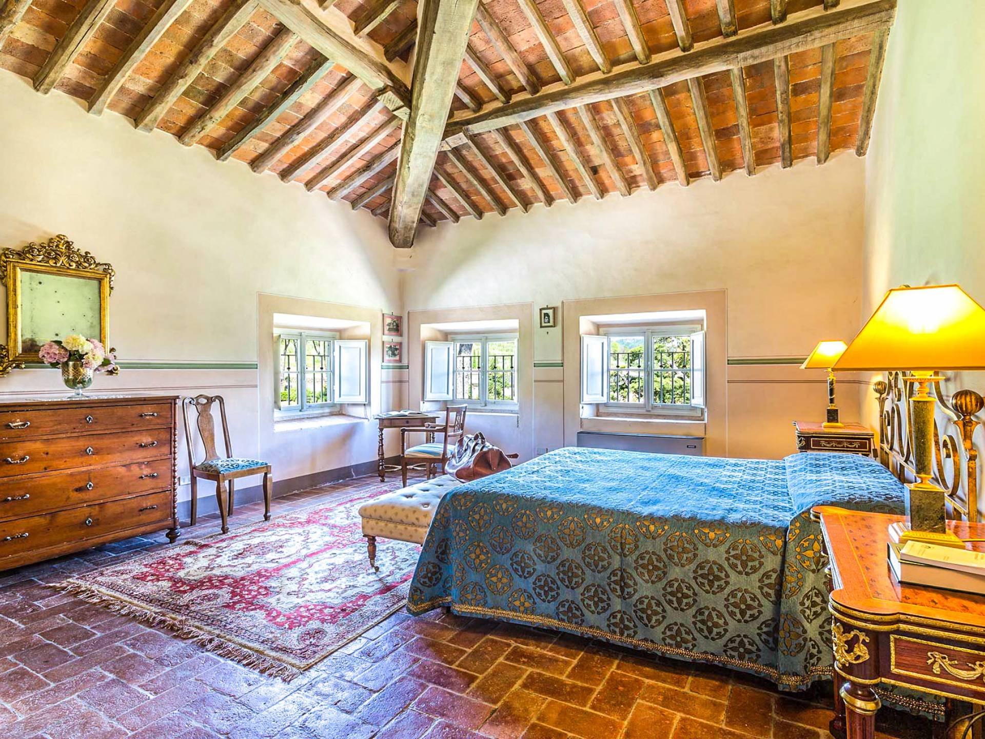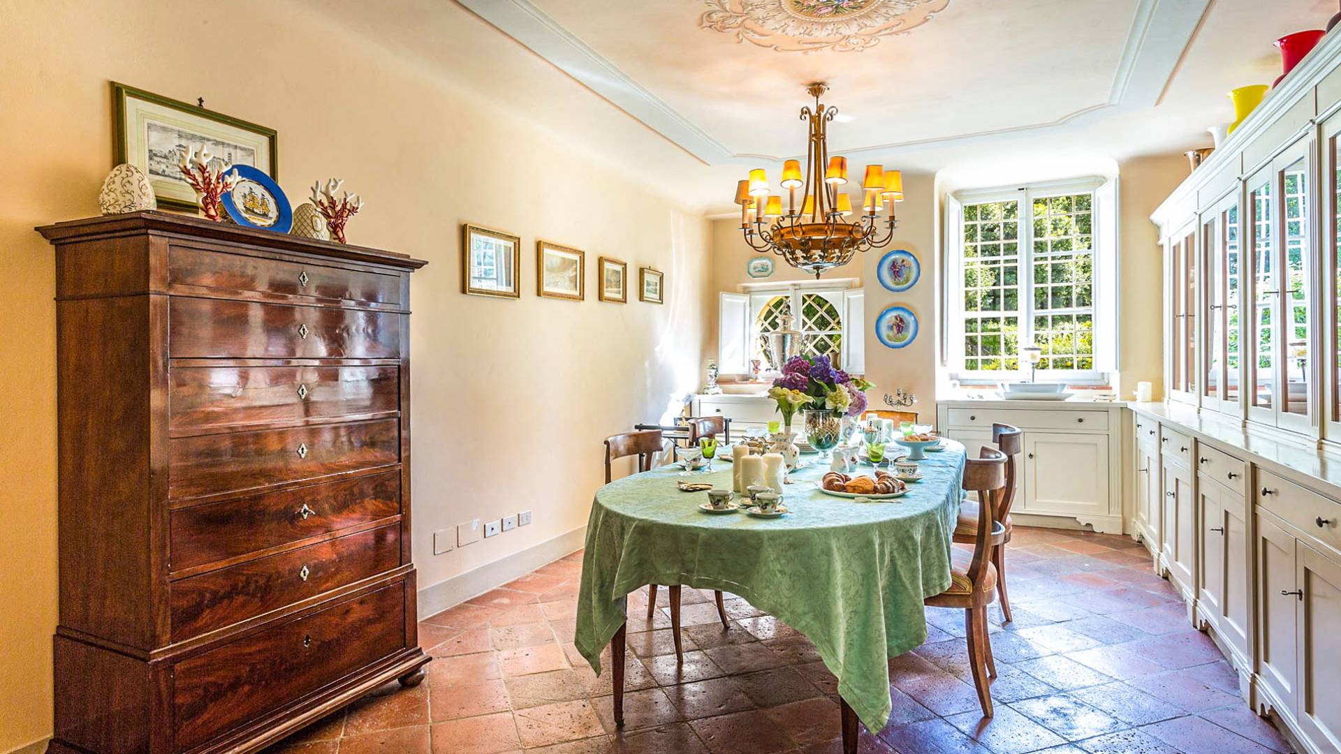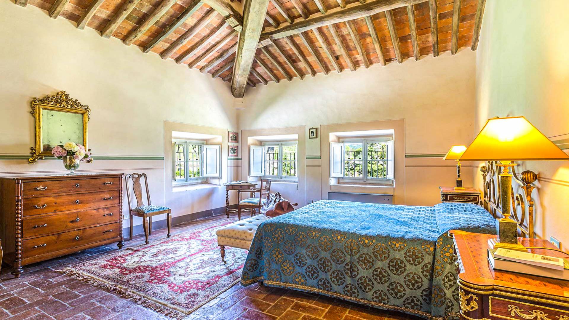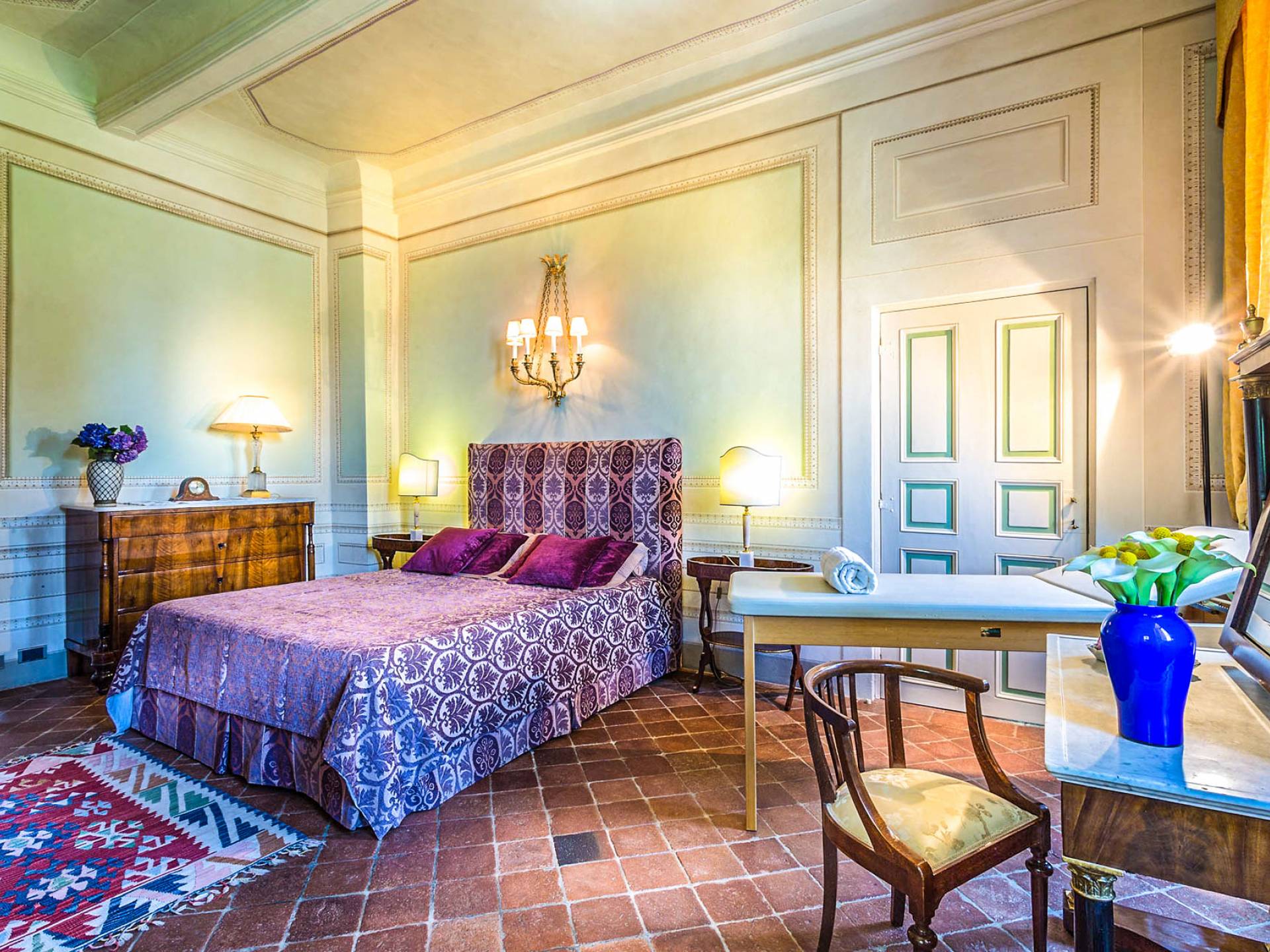 Le maestose camere affrescate si uniscono ai comfort moderni immersi in un vasto parco con piscina e laghetto privato con graziosi cigni. I nostri ospiti potranno beneficiare di 2 enormi sale da pranzo all'aperto e gazebo coperto di gelsomino. Originariamente costruita nel 1624 questa magnifica Villa fu la residenza estiva del Conte Cosimo Bernardini, la cui famiglia ha avuto per secoli un ruolo fondamentale nell'amministrazione della Repubblica di Lucca. Meravigliosi oggetti d'antiquariato, maestose stanze affrescate si uniscono ai comfort moderni per creare un'atmosfera esclusiva ed elegante.