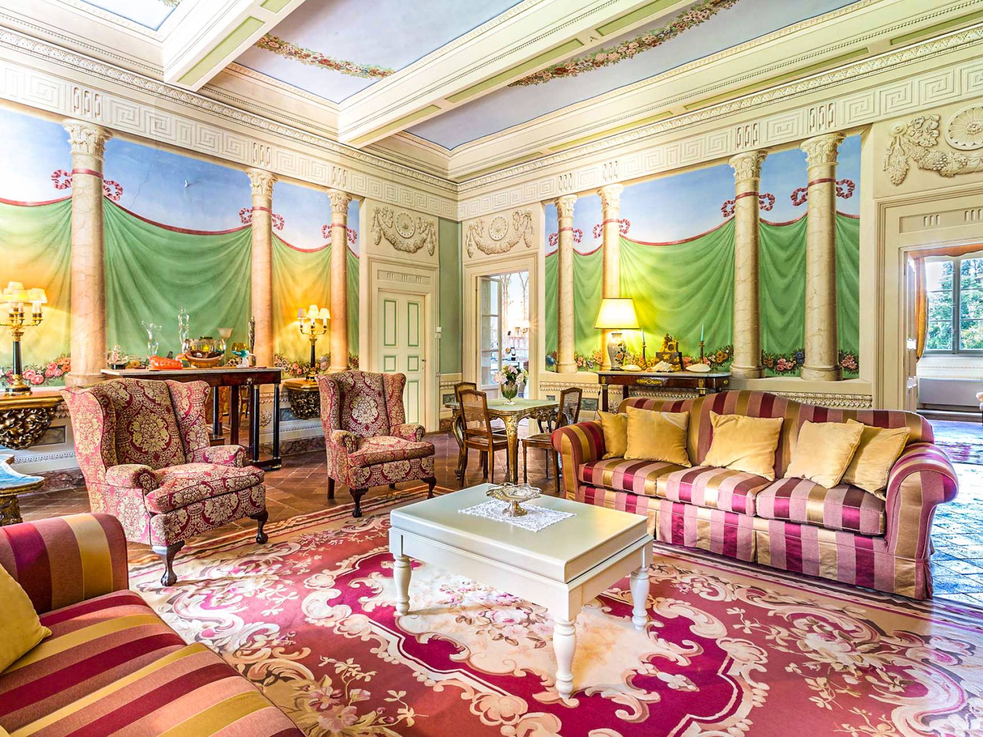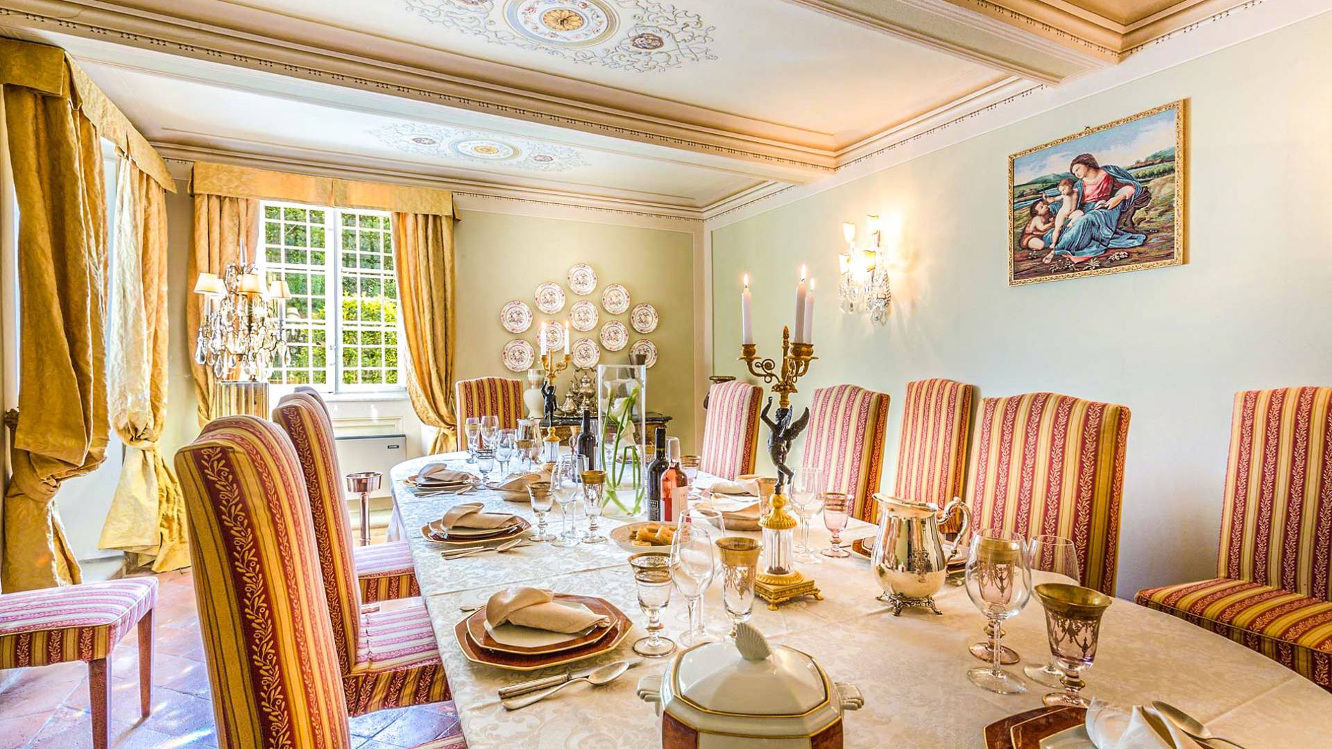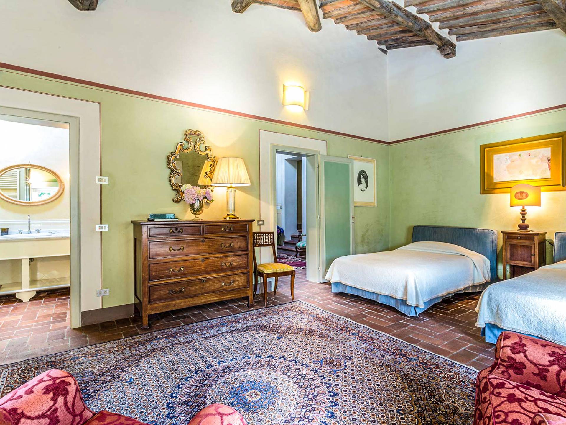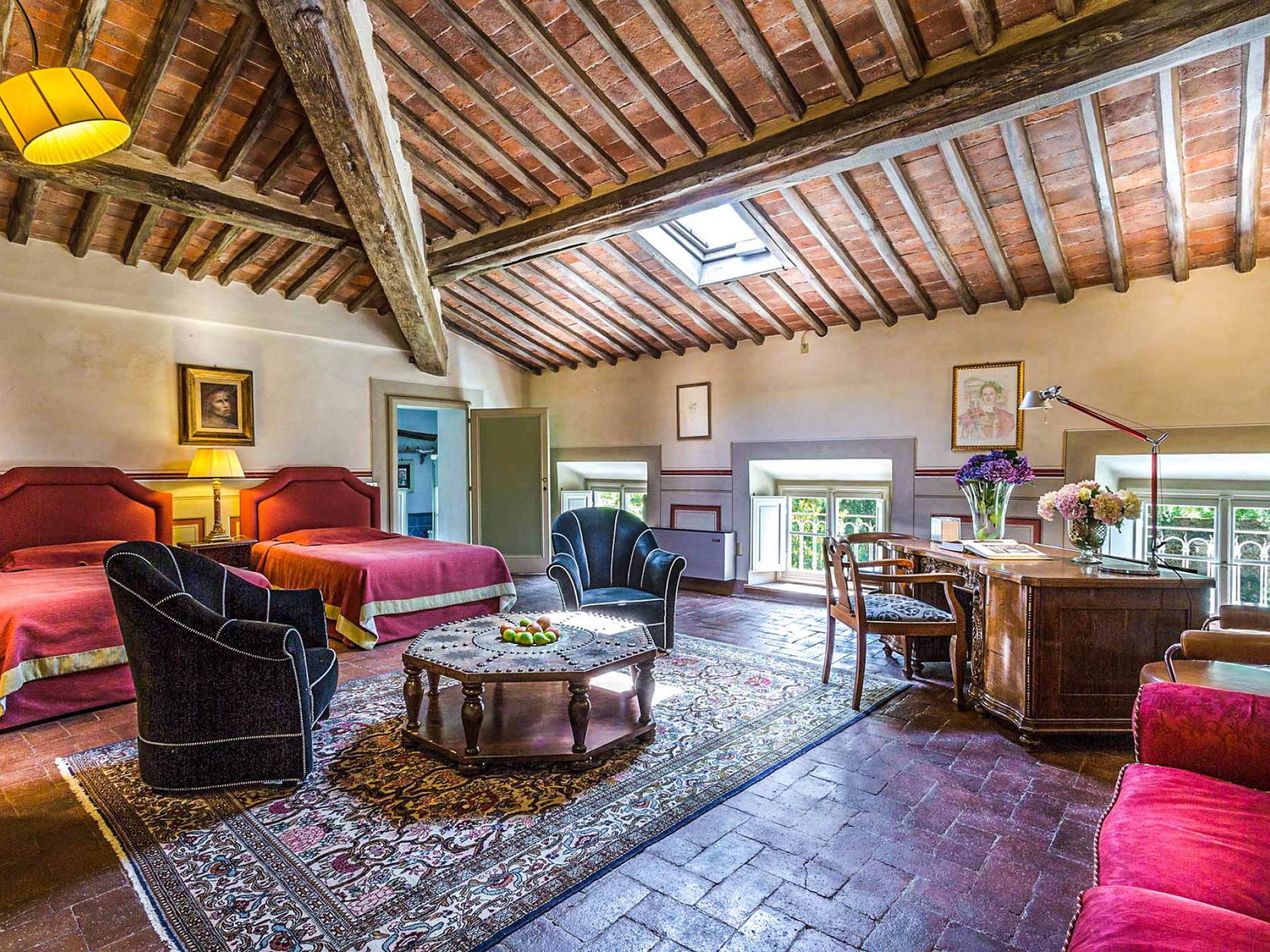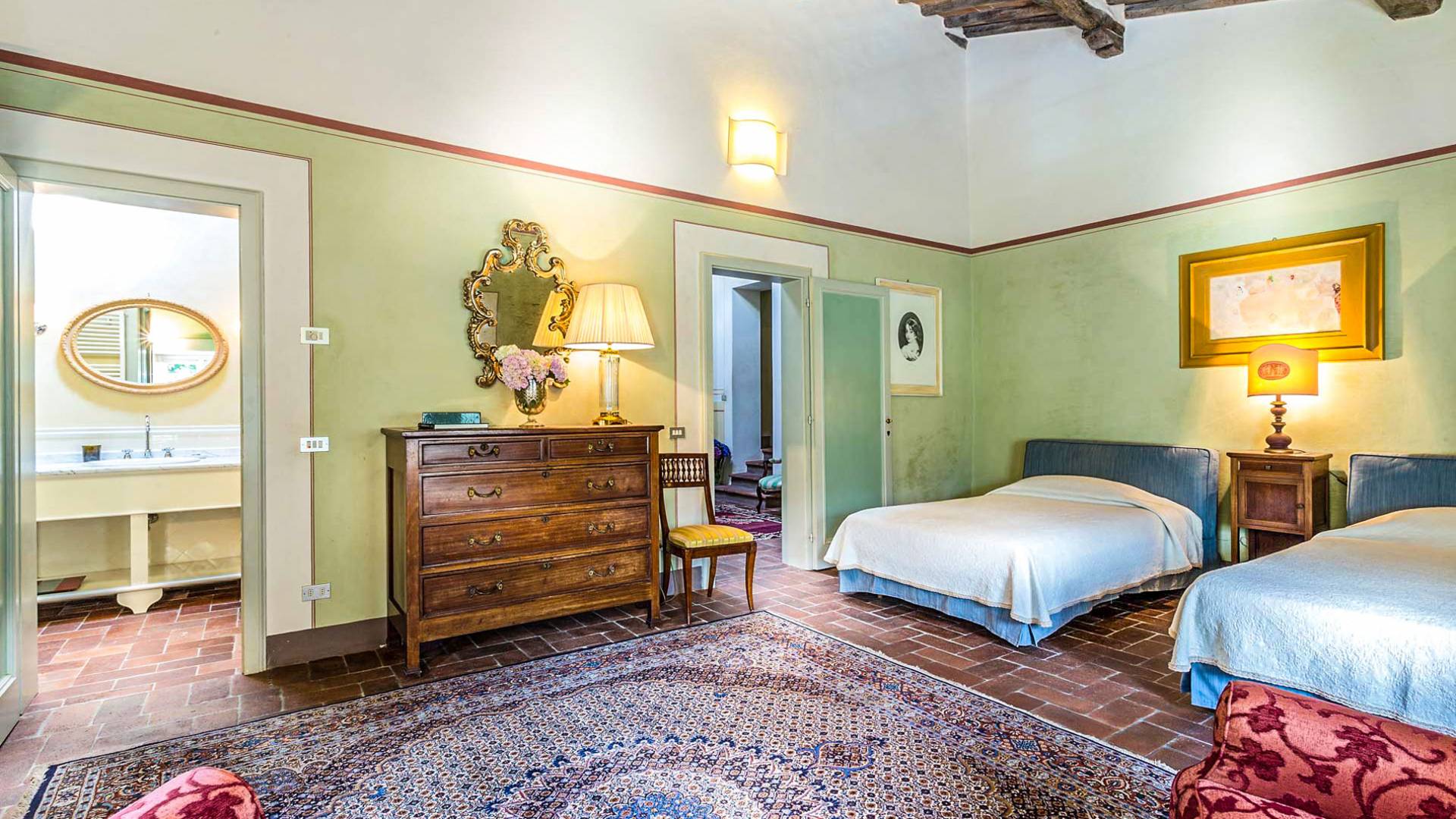 Le maestose camere affrescate si uniscono ai comfort moderni immersi in un vasto parco con piscina e laghetto privato con graziosi cigni. I nostri ospiti potranno beneficiare di 2 enormi sale da pranzo all'aperto e gazebo coperto di gelsomino. Originariamente costruita nel 1624 questa magnifica Villa fu la residenza estiva del Conte Cosimo Bernardini, la cui famiglia ha avuto per secoli un ruolo fondamentale nell'amministrazione della Repubblica di Lucca. Meravigliosi oggetti d'antiquariato, maestose stanze affrescate si uniscono ai comfort moderni per creare un'atmosfera esclusiva ed elegante.