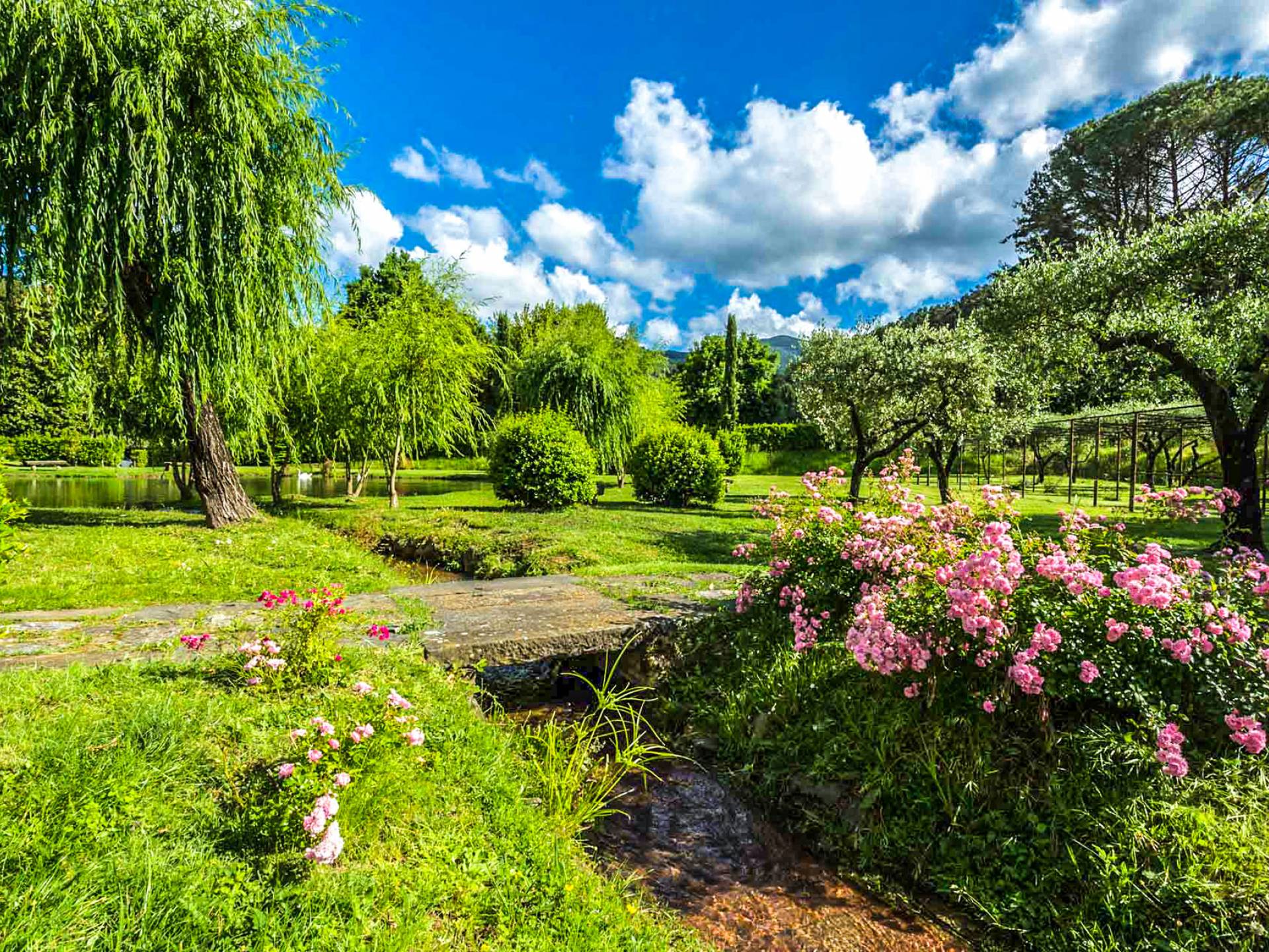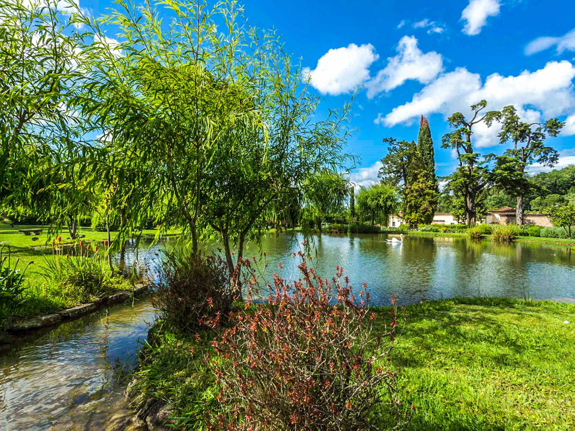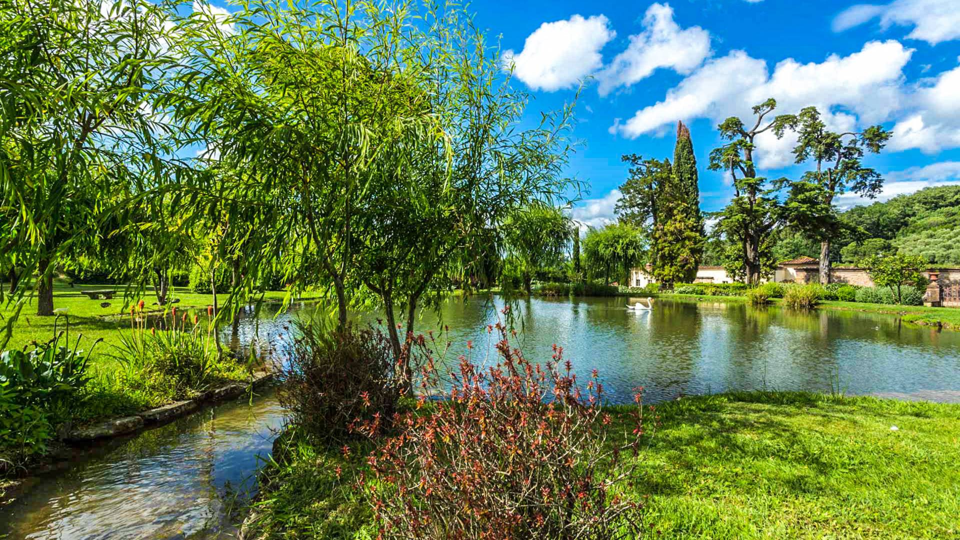 La villa è immersa in tranquilli giardini all'italiana attraverso i quali scorre un ruscello d'acqua dolce in due laghetti su cui si affaccia un ombroso salice piangente. I grandi cipressi e i profumati giardini di limoni ed erbe aromatiche creano lo sfondo perfetto per la piscina privata. Scopri la magica bellezza di Villa Lenka e goditi momenti ispirati di armonia, relax e raffinatezza. La Villa dispone di una bellissima piscina privata (20x10m, da 1,5m a 3m di profondità) e di una zona relax. I nostri ospiti beneficeranno di due imponenti sale da pranzo all'aperto: una di fronte alla Villa, la sua maestosa facciata e l'incantevole lago privato; un altro nel giardino all'italiana nel cortile sul retro con vista sull'area circostante. Il gazebo del gelsomino con un tavolo e alcune sedie è il luogo perfetto per godersi un rinfrescante aperitivo.