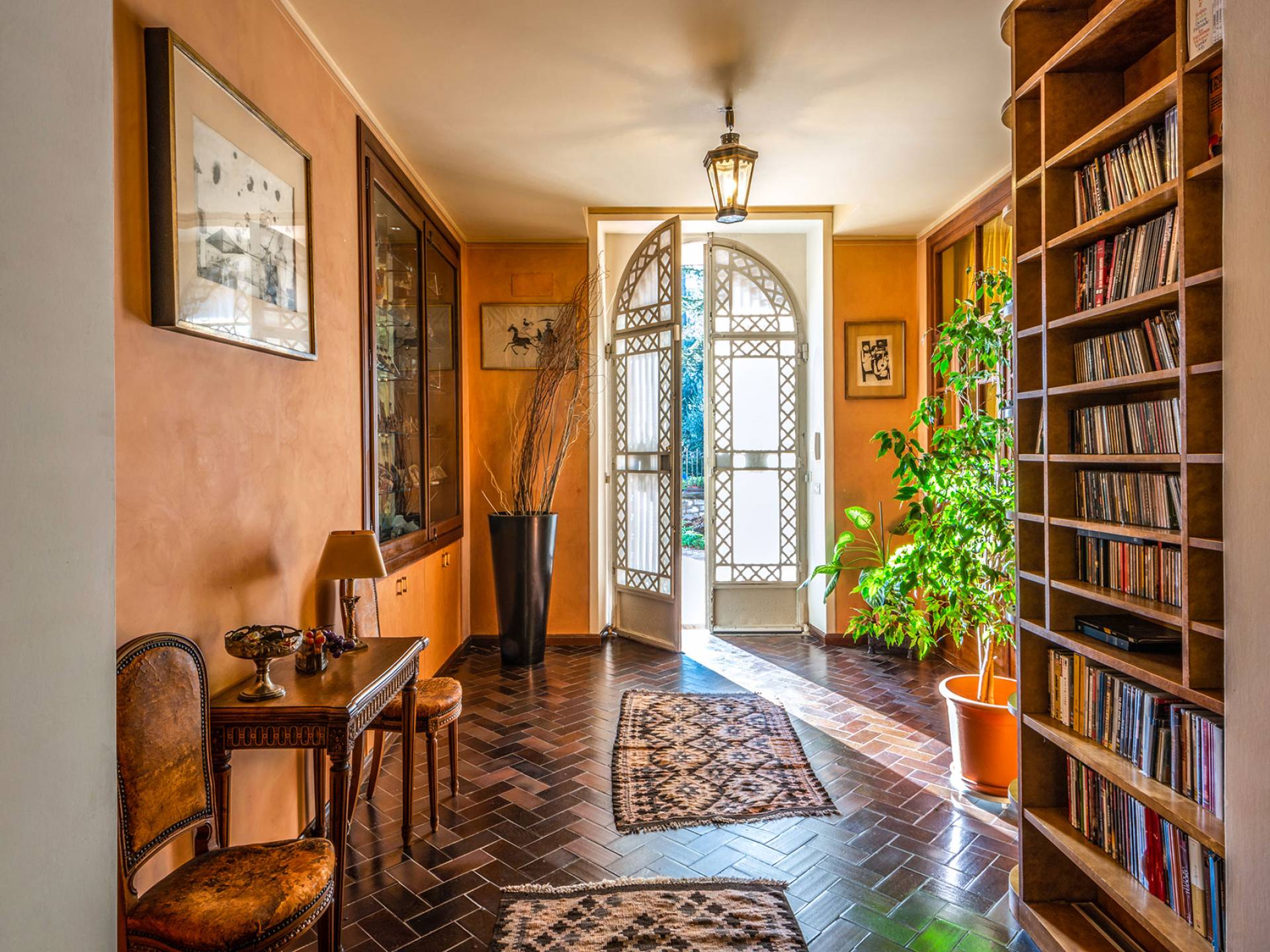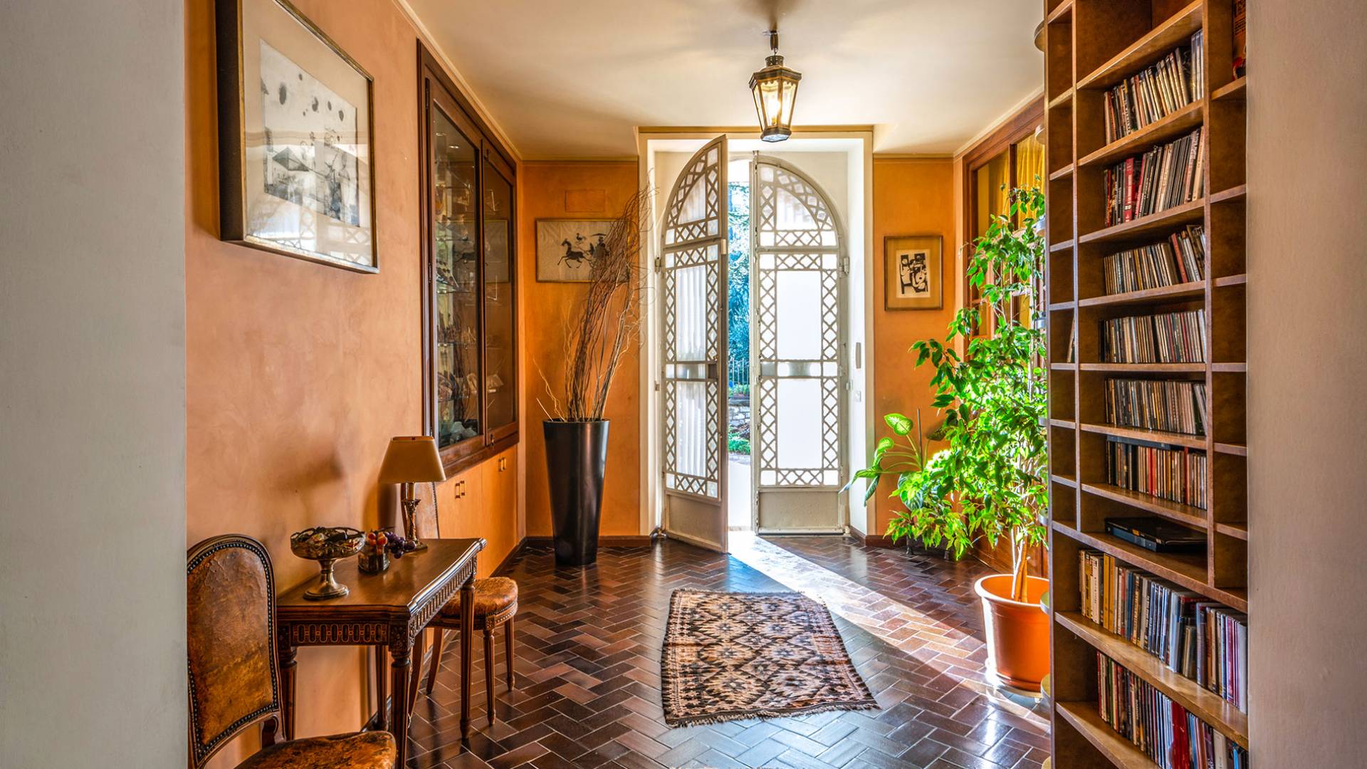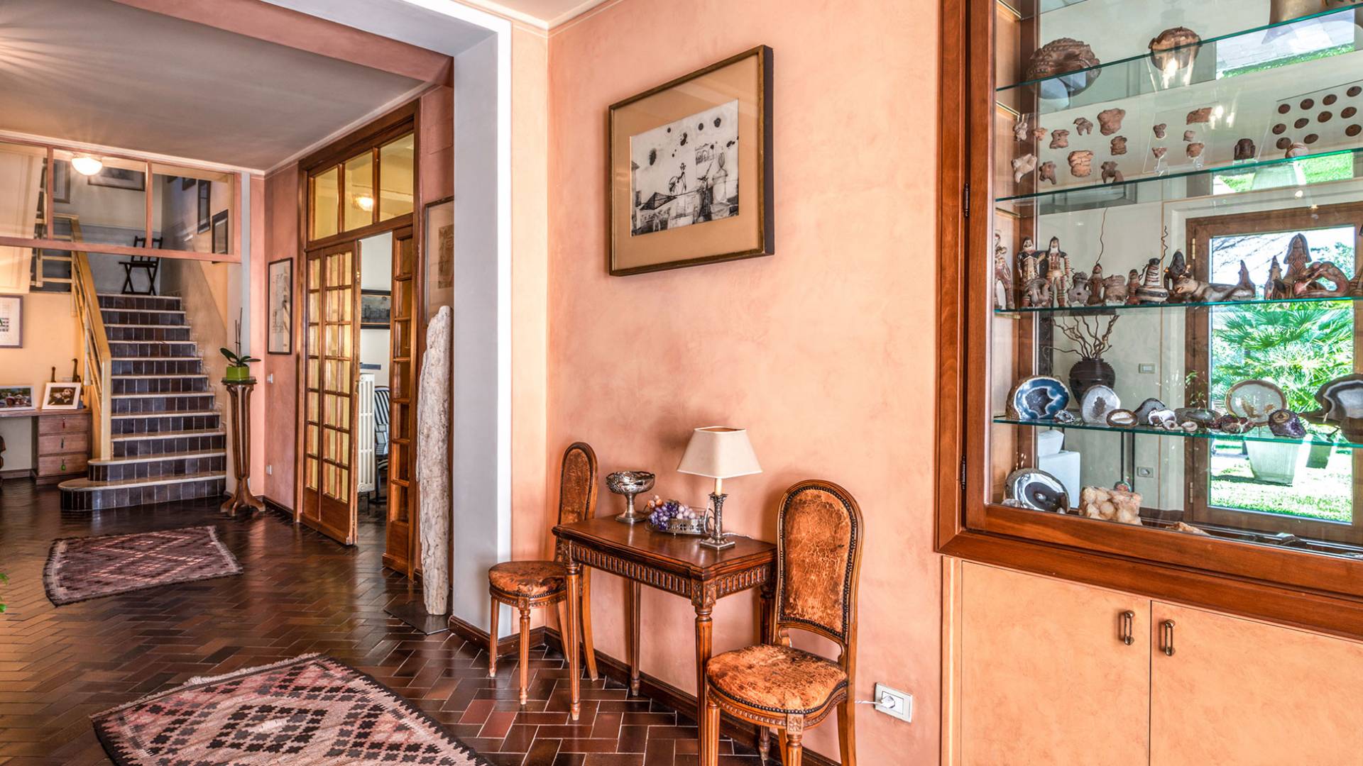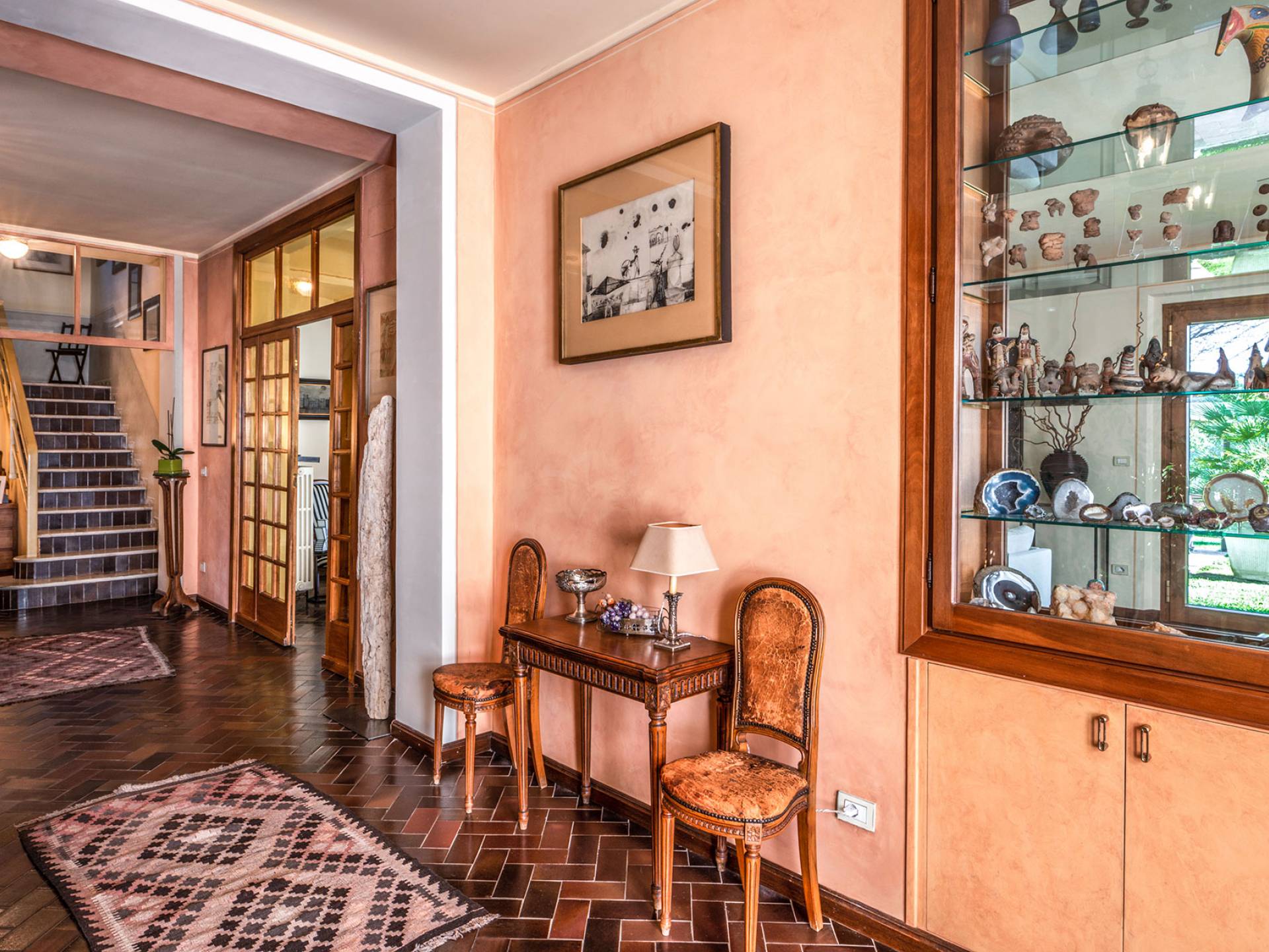 Dall'ingresso principale si accede ad un luminoso e ampio soggiorno con camino e divani. Attraverso porte-finestre si accede al giardino e a due gazebo, uno per aperitivi e relax, l'altro con tavolo da pranzo. Dall'altro lato del soggiorno, c'è un corridoio arredato con un'antica stufa veneziana in ceramica e un bel pianoforte verticale (Bechstein) che conduce al tavolo da pranzo. Un altro corridoio conduce a una cucina spaziosa e ben attrezzata con forno, microonde, frigorifero "side-by-side", tostapane, macchina da caffè Nespresso, lavastoviglie e tavolo per la colazione. Dalla cucina si accede facilmente al giardino e ai gazebo. Gli ospiti possono inoltre usufruire di una sala home theatre dotata di TV satellitare, lettori CD/DVD e impianto stereo di alta qualità. Due bagni con doccia compongono il resto di questo piano.