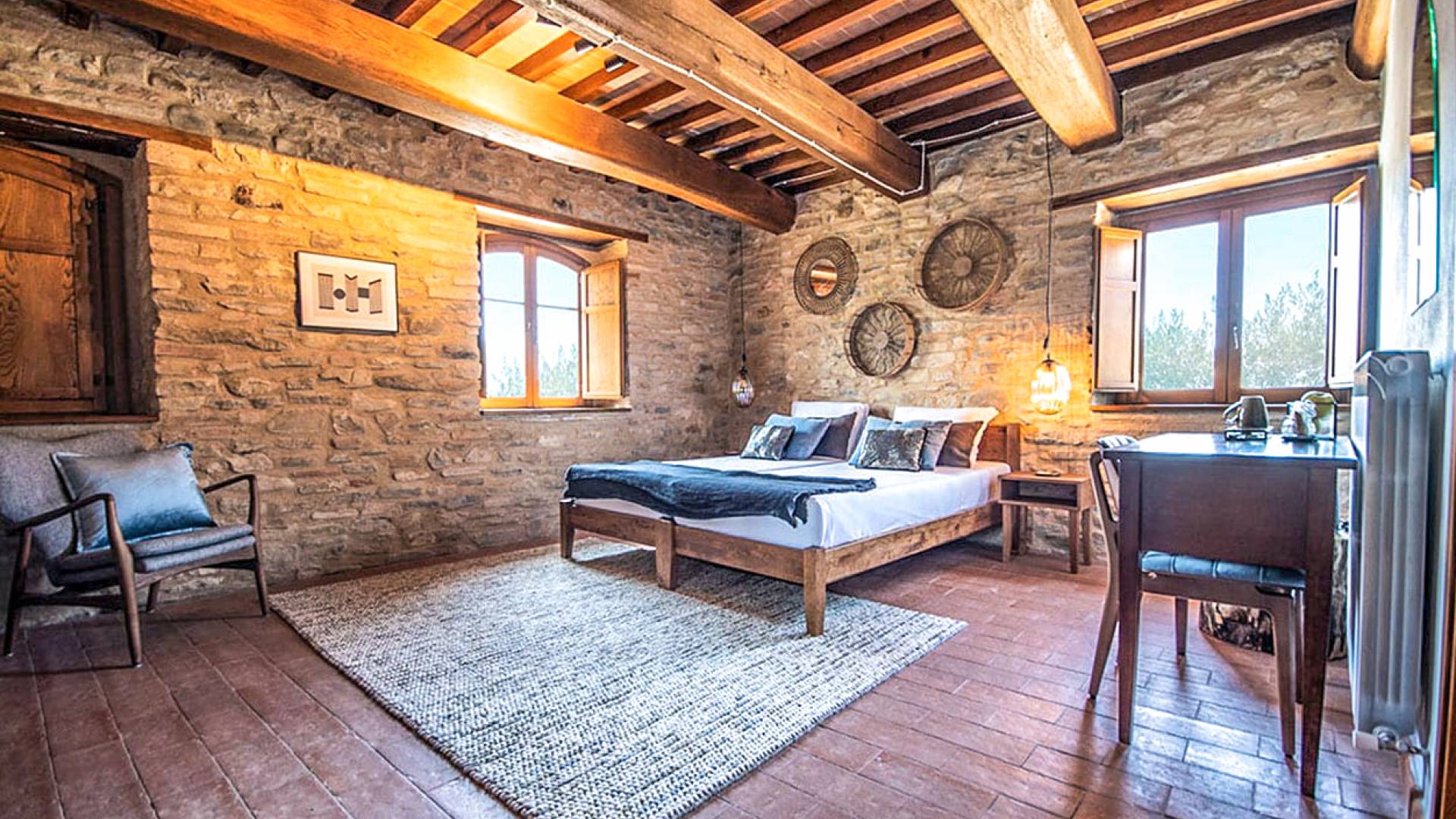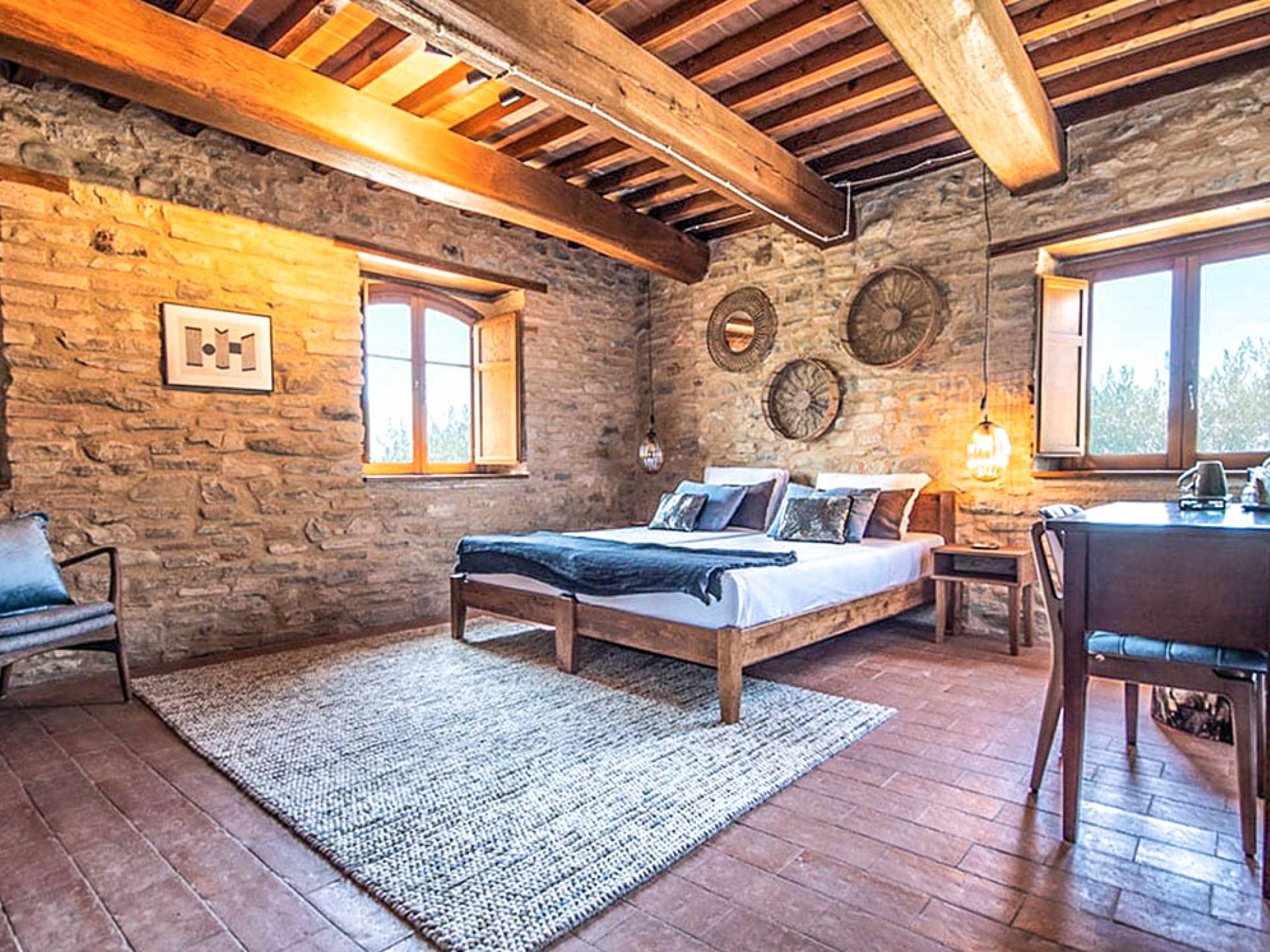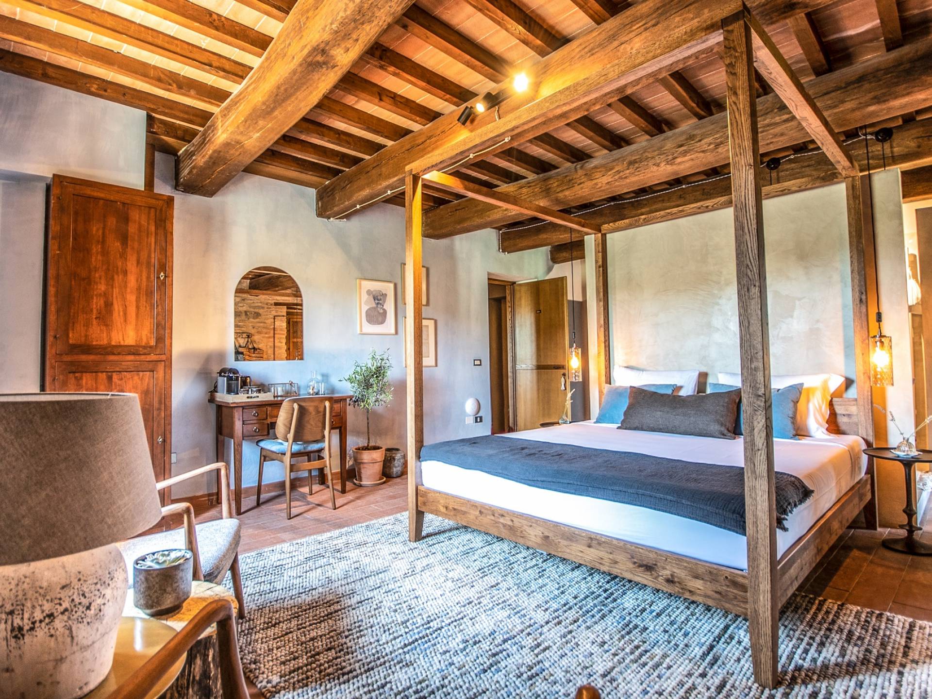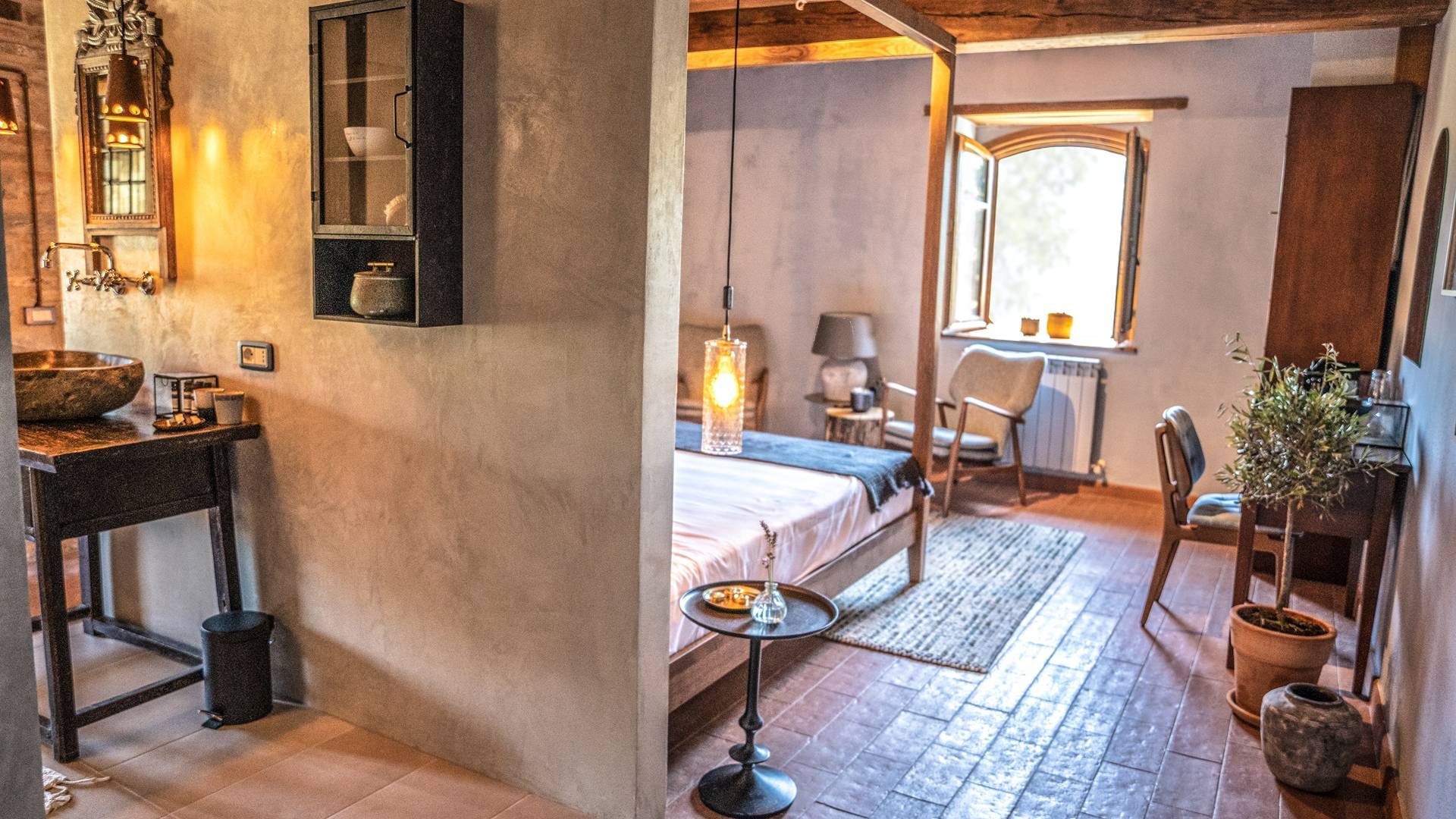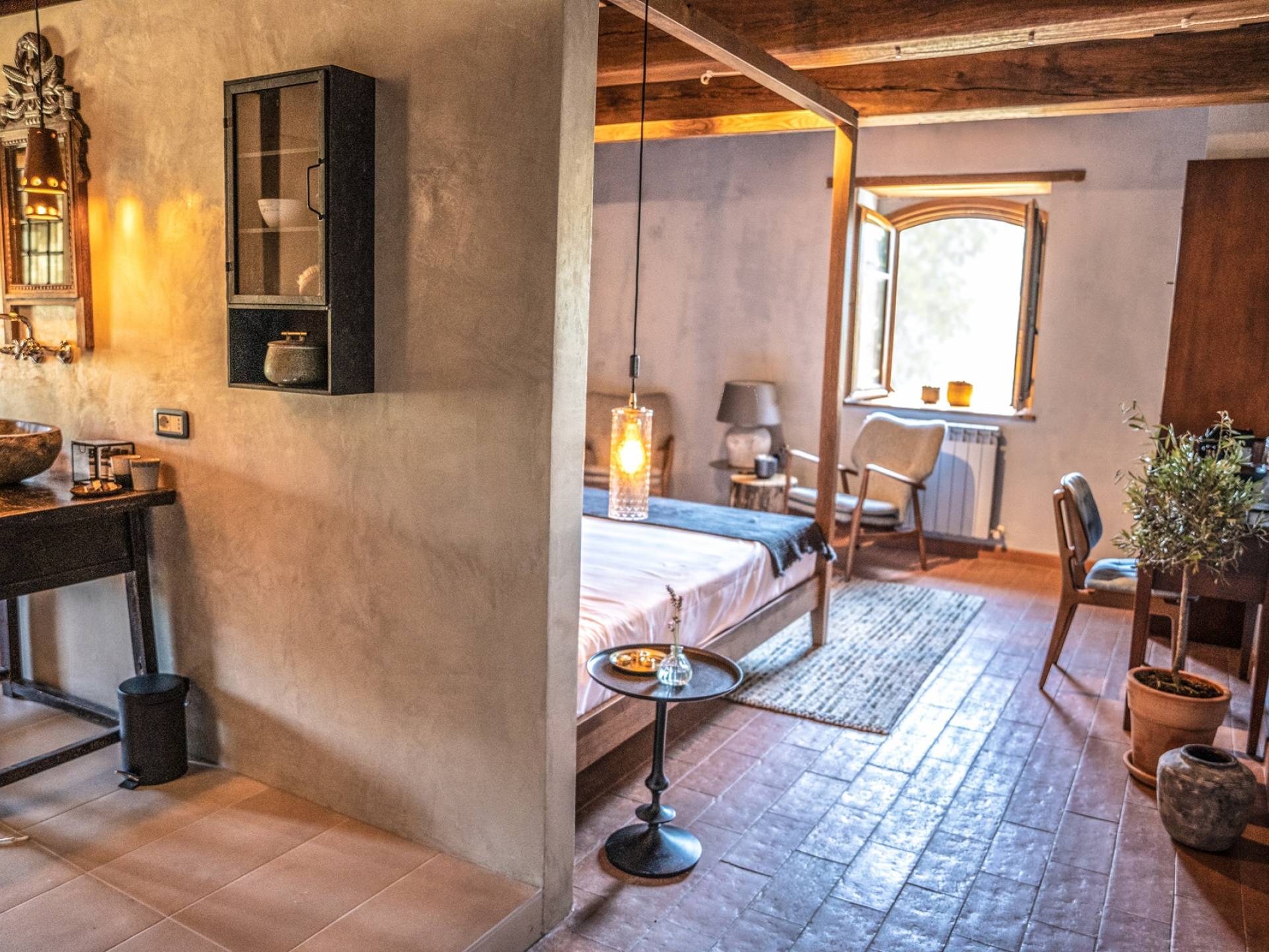 Enrico Suite al Borgo Castello Panicaglia è una camera familiare con due camere da letto separate e due bagni. Una camera ha un grande letto matrimoniale e l'altra camera ha 2 letti singoli. Adatto per 4 adulti o famiglie con 2-3 bambini (è possibile aggiungere un letto in camera). La camera ha una splendida vista sul giardino e sulle colline. Dispone inoltre di un terrazzino. La camera si trova al primo piano ed è raggiungibile dalla hall dell'hotel, ma dispone anche di un proprio ingresso esterno. Questa stanza ha un'enorme superficie totale di 70 metri quadrati!