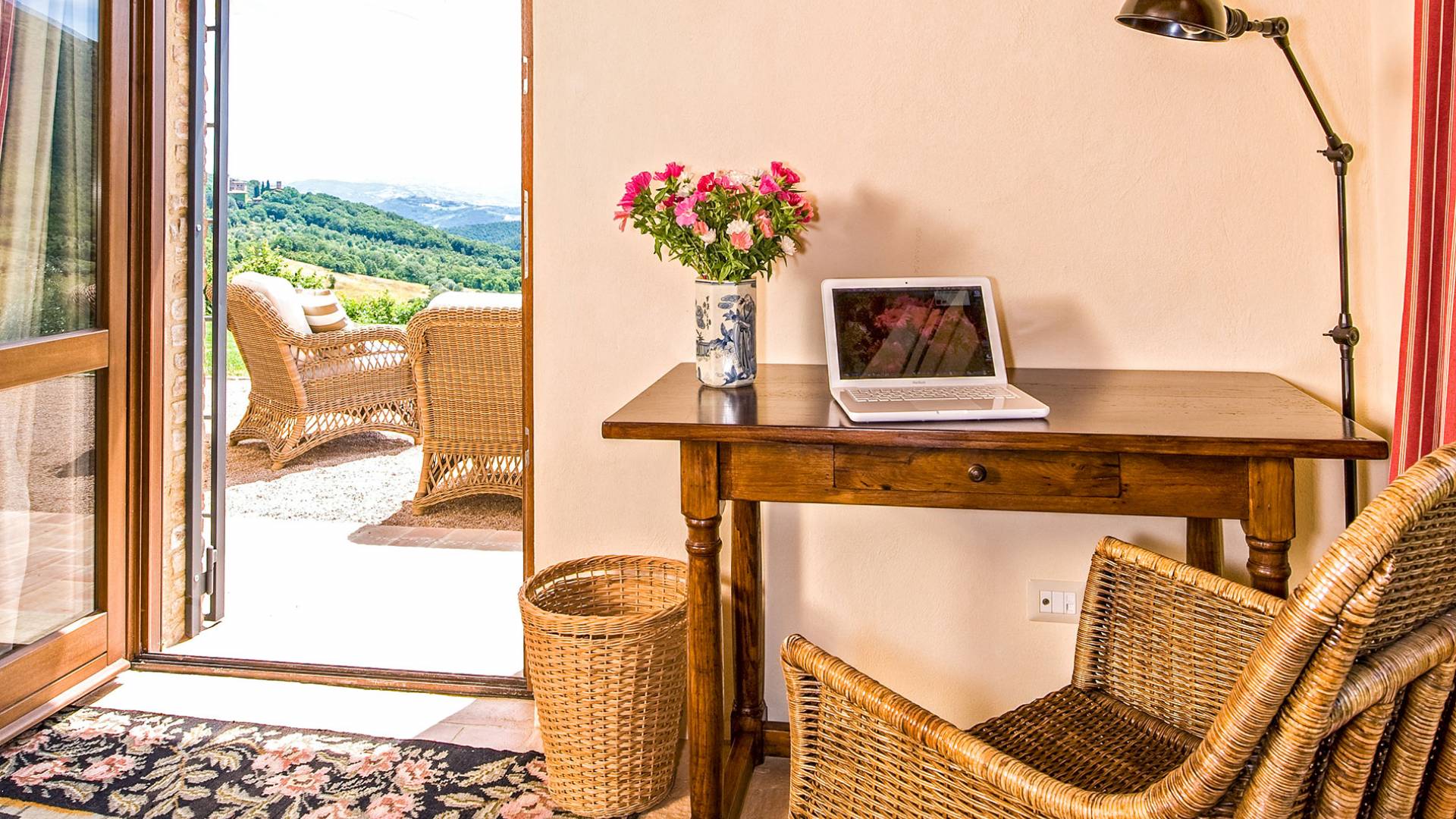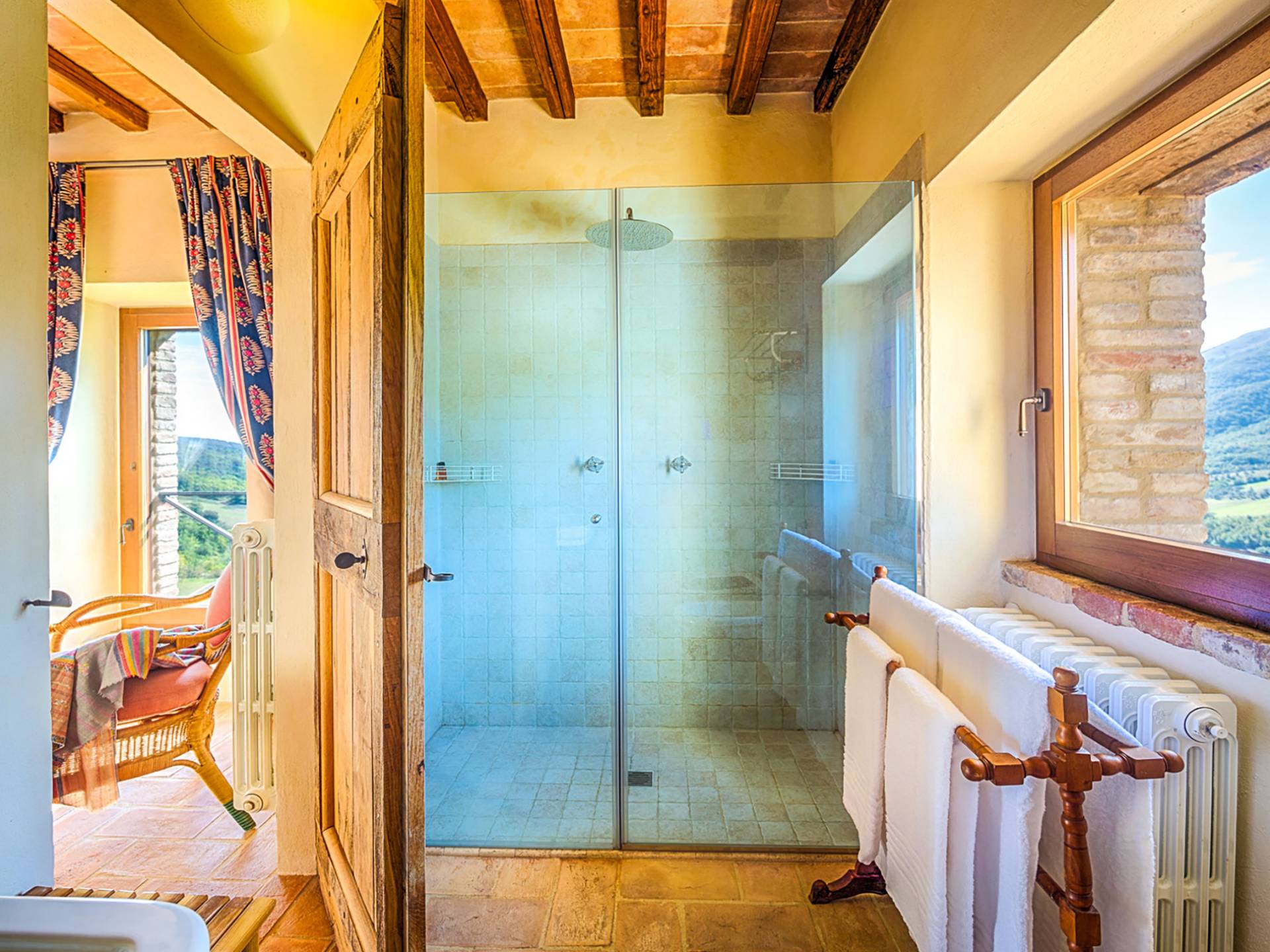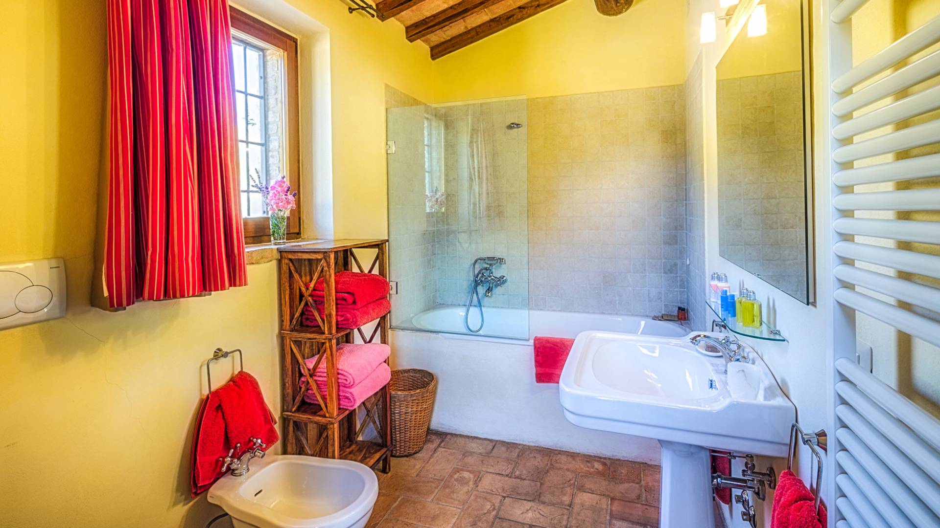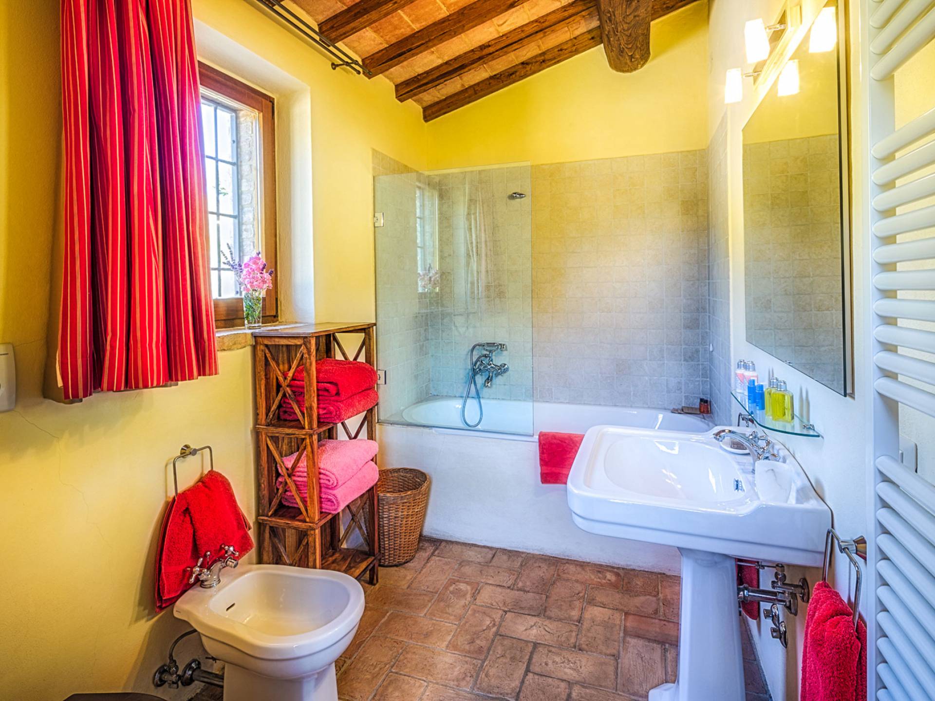 Con tre camere da letto, ognuna decorata individualmente con colori caldi e letti di grandi dimensioni dotati di biancheria realizzata con il miglior cotone italiano morbido, un elegante soggiorno con caminetto, l'atmosfera è intima ma lussuosa. Il piacere del silenzio, l'ambiente incantevole, la vicinanza a diversi piccoli paesi - uno, molto piccolo, è raggiungibile a piedi anche se consigliamo sempre di usare l'auto - con ristoranti, panetterie, mercatini biologici, negozi, chiesette nascoste e monumenti, per non parlare della vicinanza a Perugia e Cortona fanno tutti parte dell'esperienza di affittare questo piccolo gioiello.