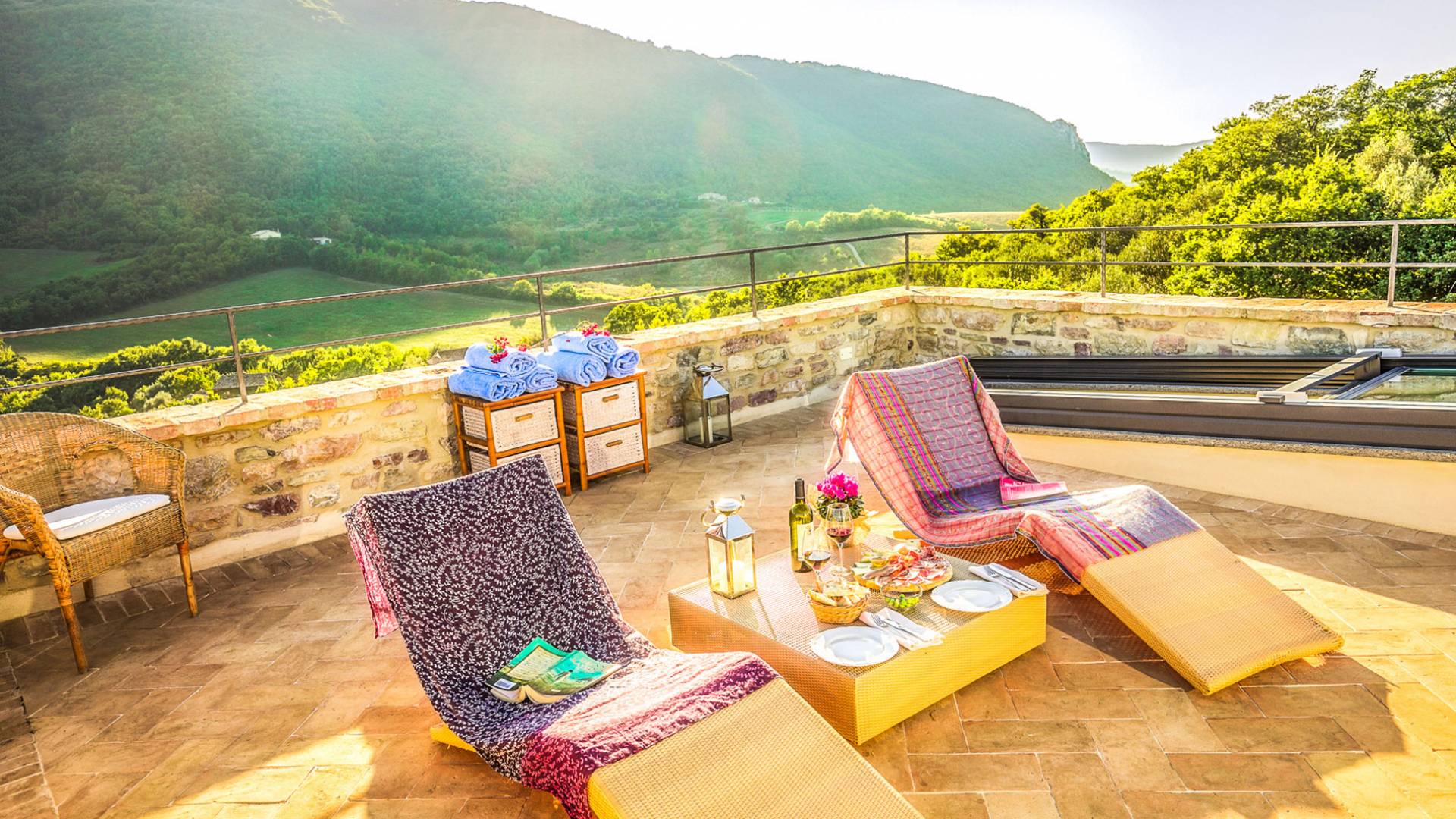 Villa Monte Perugia è una villetta unica nel suo genere ricostruita sui resti di una torre difensiva medievale, che offre una vista quasi introvabile, affascinante come la sottostante vallata boscosa. La piscina a sfioro e la sua spettacolare terrazza sul tetto offrono splendide viste panoramiche che rimangono scolpite nella memoria degli ospiti.