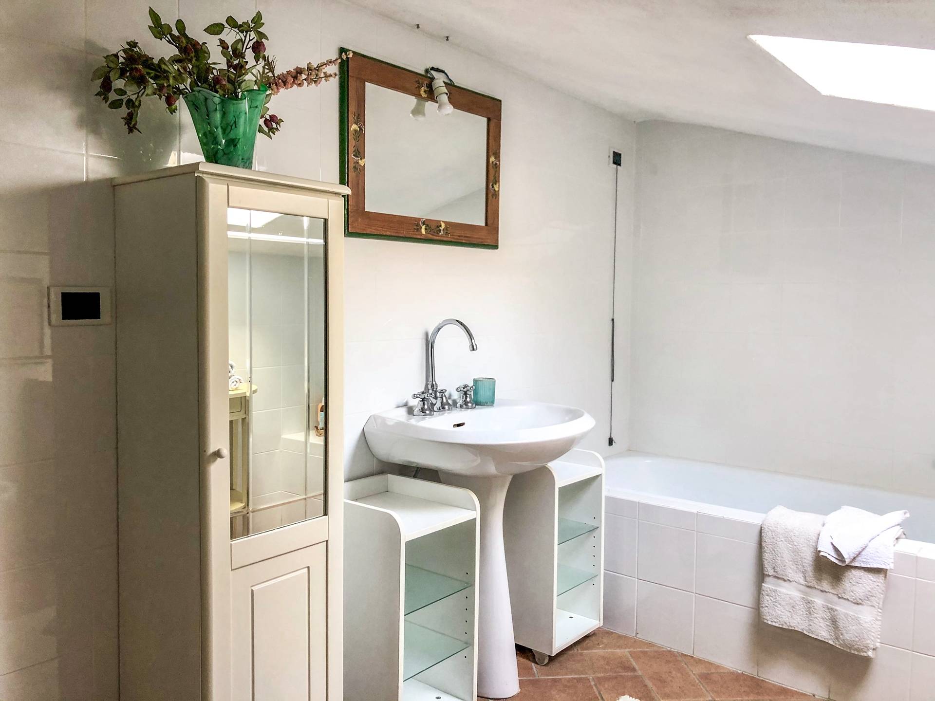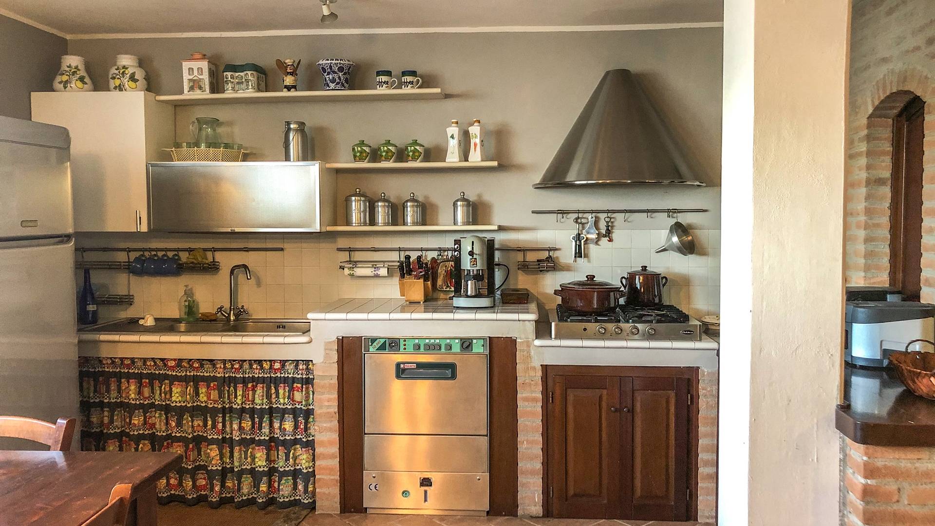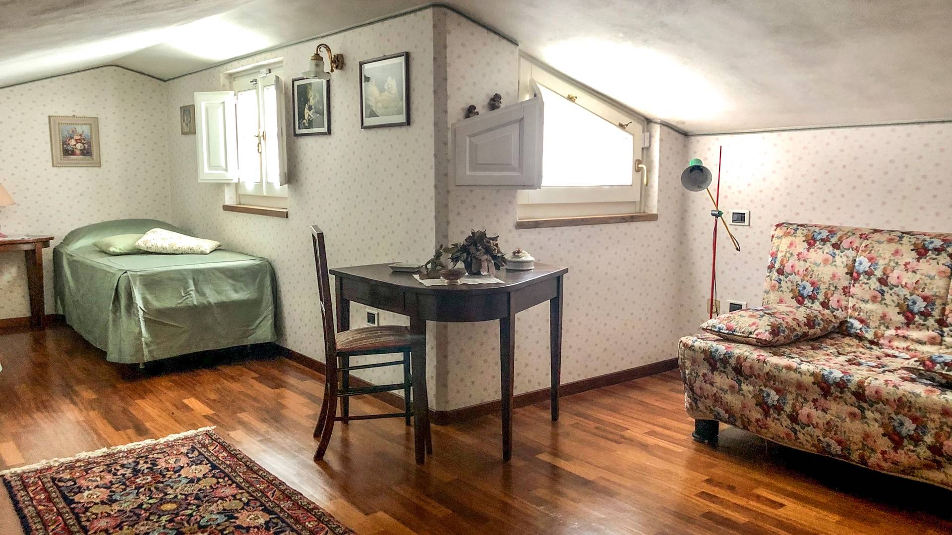 La casa su due piani dispone di una cucina con caminetto domestico da utilizzare per riscaldarsi nelle giornate più fredde. L'ambiente è completamente attrezzato: tavolo per 4 persone, lavello, piano cottura 5 fuochi, forno, frigorifero. La zona giorno è intima e accogliente. Al piano superiore si trova la zona notte con due camere da letto, di cui una dotata di due letti singoli, angolo TV con divano, angolo lettura e scrittura, e una seconda camera matrimoniale. C'è anche un bagno con vasca.