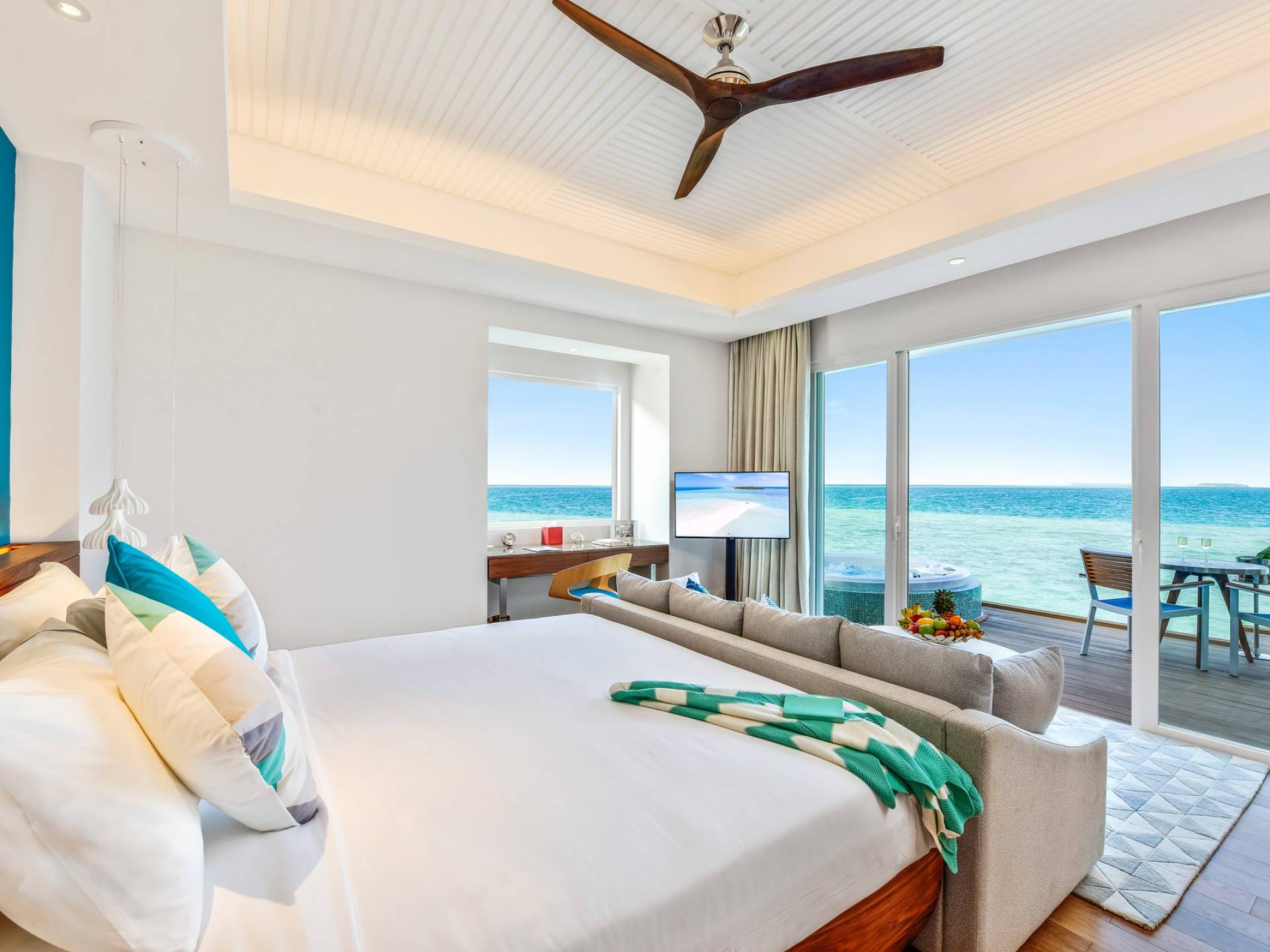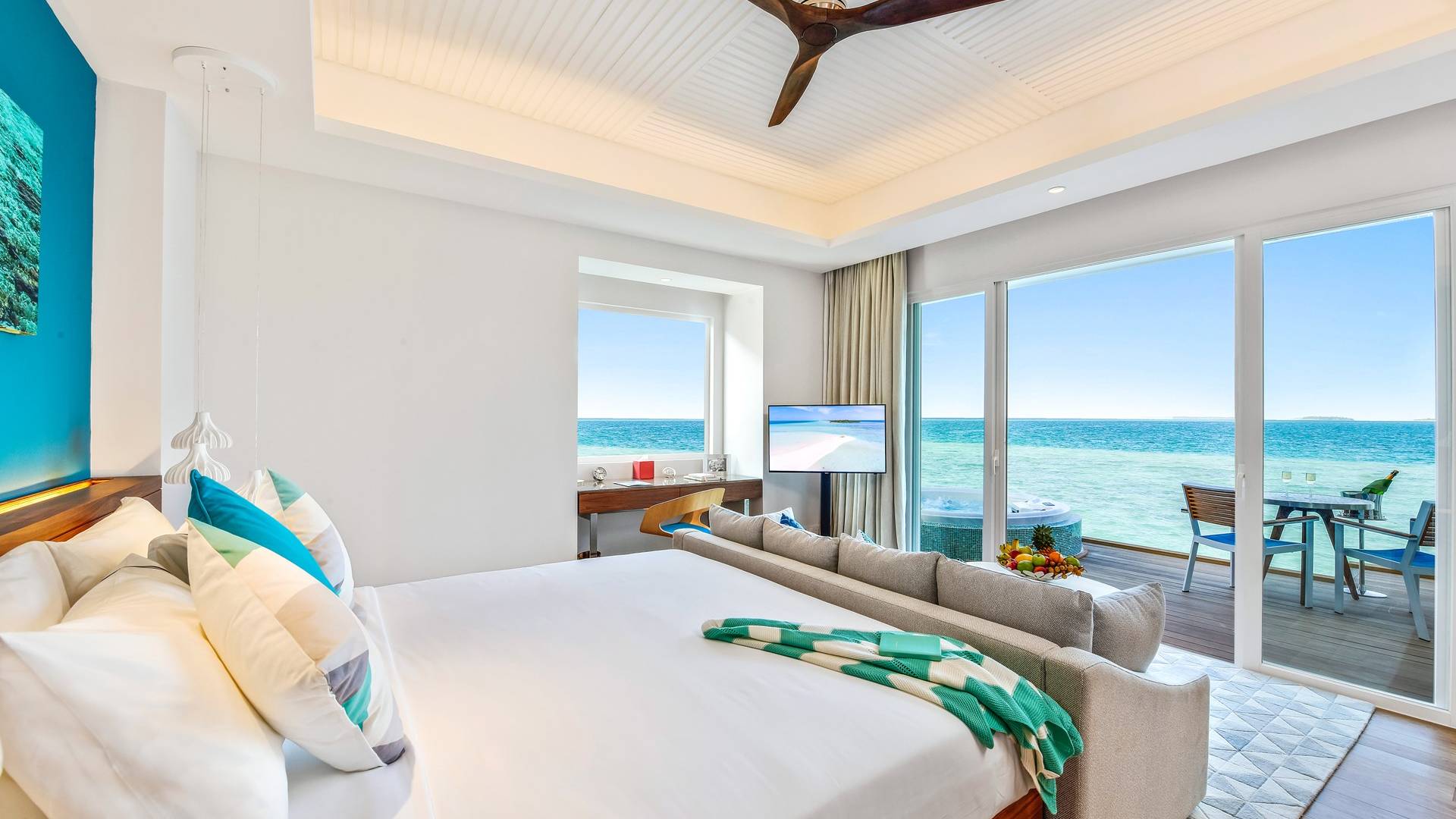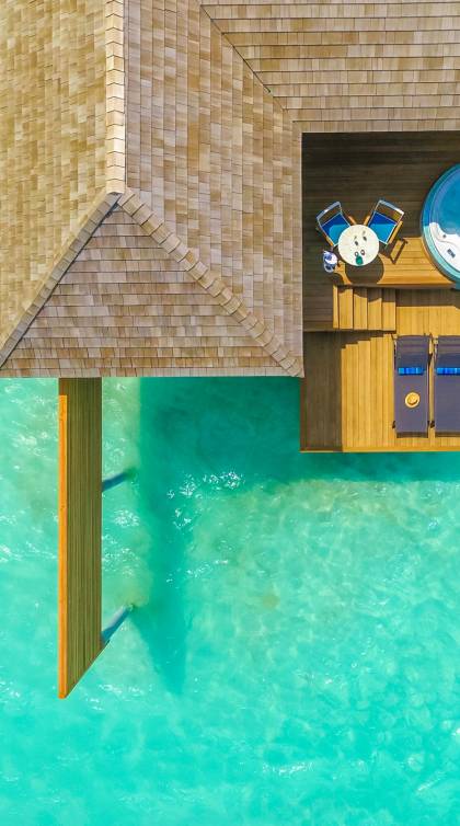 Benvenuto nel tuo rifugio sull'acqua spazioso ed elegante. Ammira le infinite viste dalla tua area privata e personale del ponte. Con l'accesso diretto all'oceano, puoi fare snorkeling e nuotare a tuo piacimento. Arroccato sull'acqua, con accesso diretto alla laguna, queste ville sono perfette per chi cerca il massimo rifugio sull'acqua. Dotato di una terrazza solarium privata con lettini e di un bagno con vista perfetta sull'ampia laguna di Kandima. La tua dose giornaliera di “vitamina mare” è garantita.