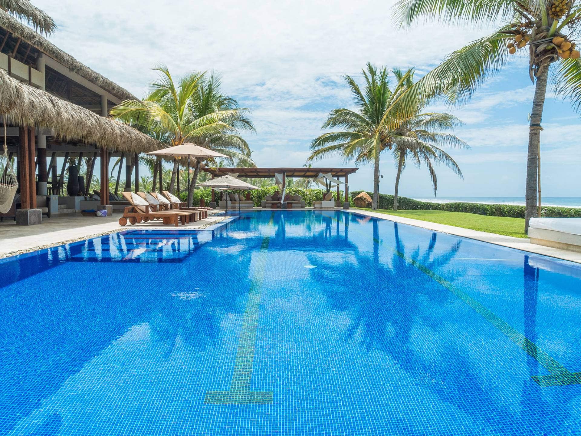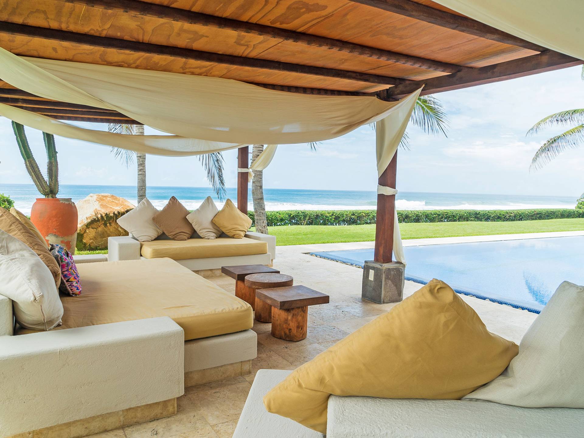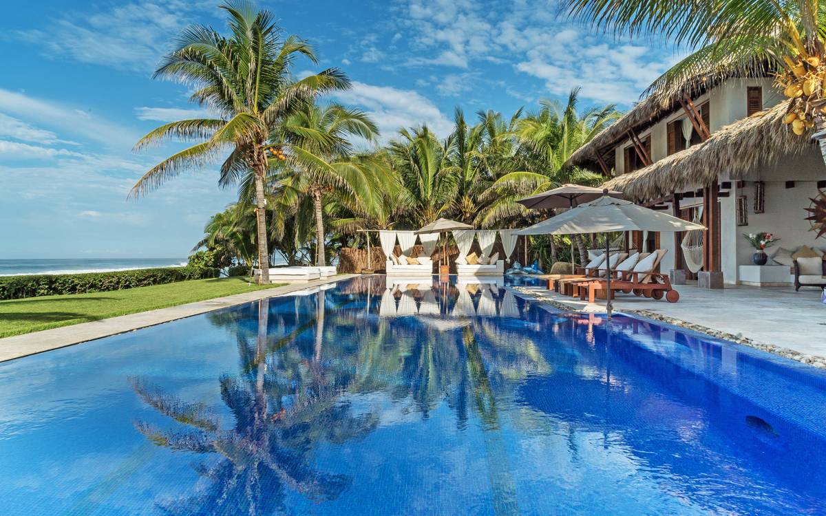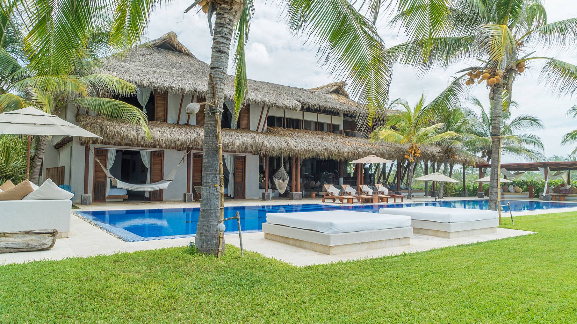 Casa Emelina è una nuova esclusiva villa tenuta fronte mare nel mezzo di un paradiso pacifico. È una casa vacanza da sogno costruita in stile messicano con un fantastico tetto palapa fresco e fresco circondato da un grande giardino verde con erba, palme e un lago. Il tempo qui è fantastico tutto l'anno.