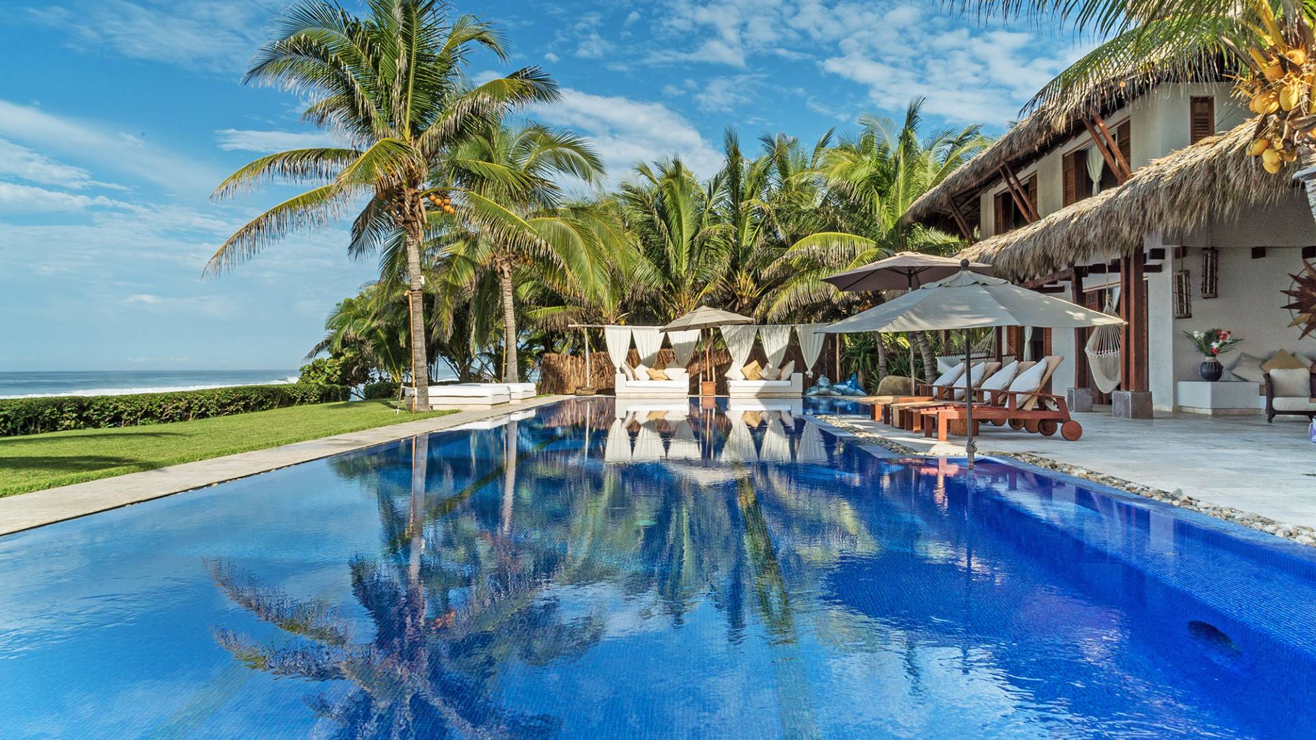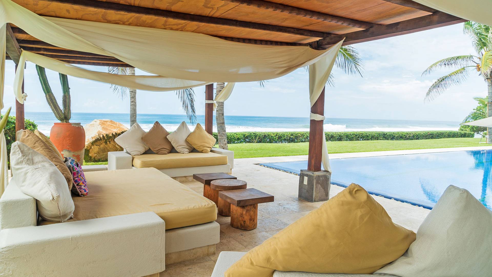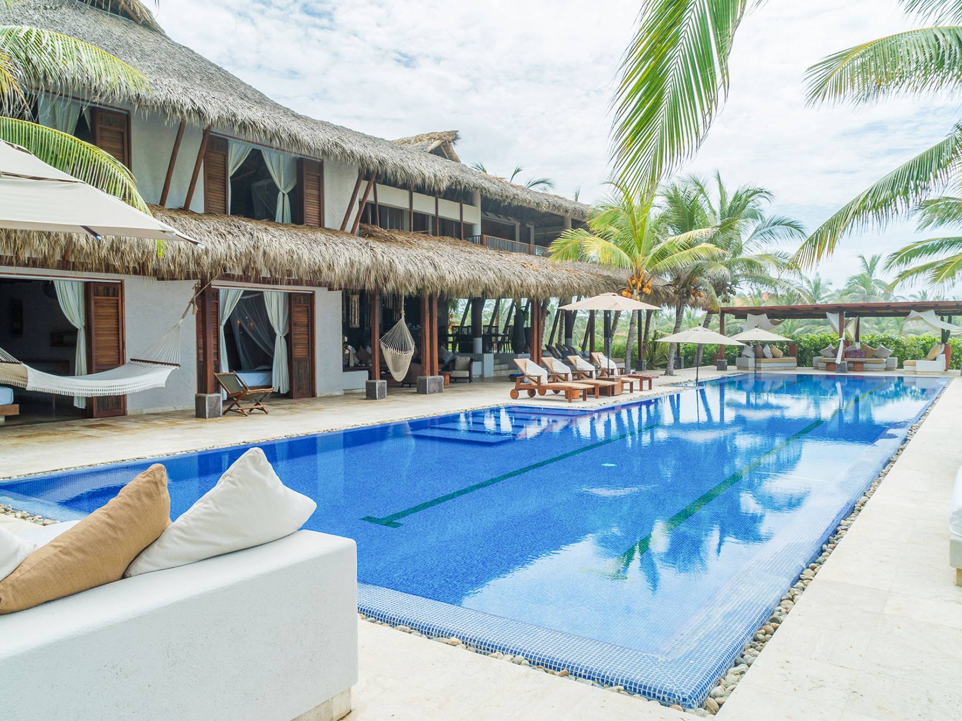 Casa Emelina è una nuova esclusiva villa tenuta fronte mare nel mezzo di un paradiso pacifico. È una casa vacanza da sogno costruita in stile messicano con un fantastico tetto palapa fresco e fresco circondato da un grande giardino verde con erba, palme e un lago. Il tempo qui è fantastico tutto l'anno.
